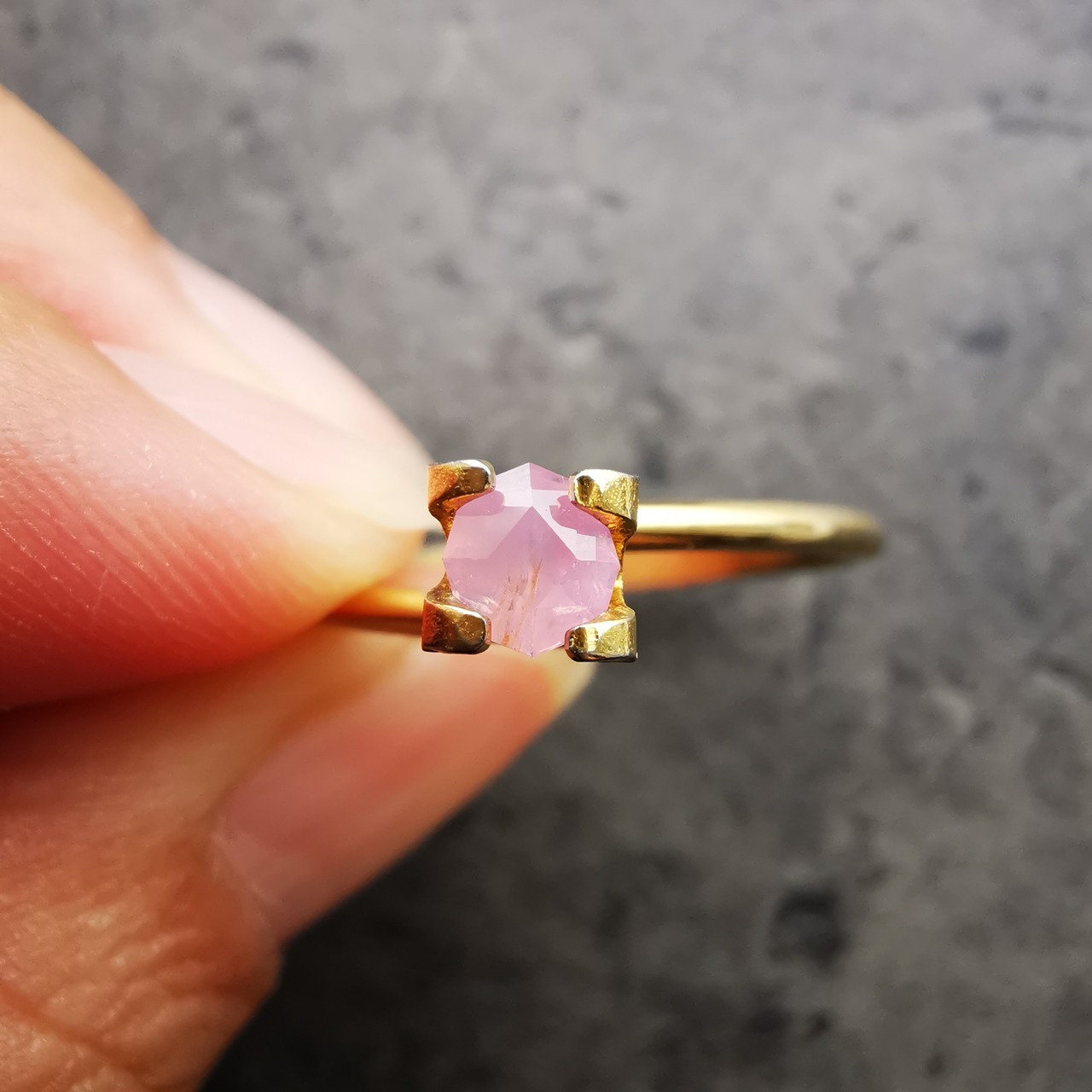 ベトナム産らしいミルキーな撫子色のピンクサファイアです。