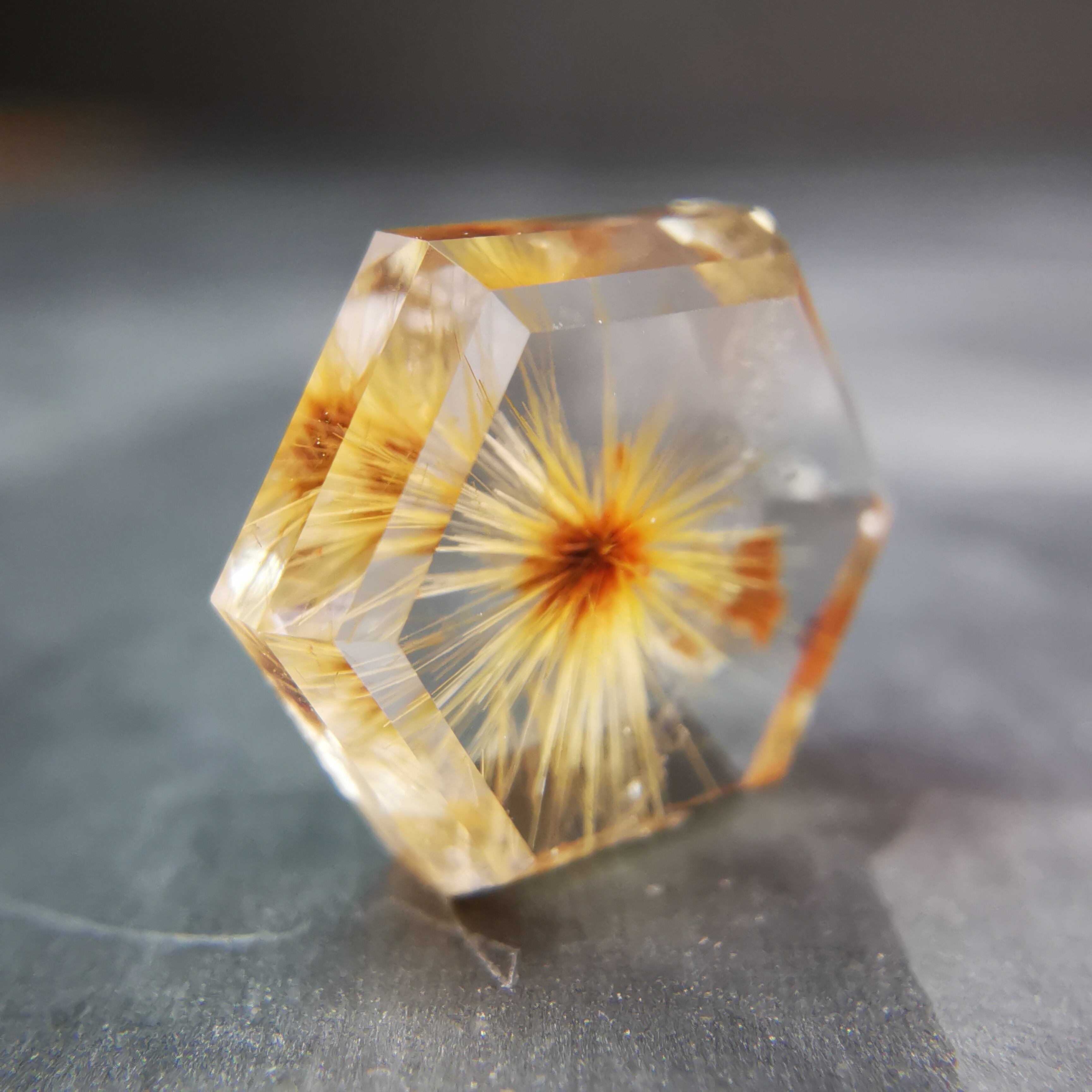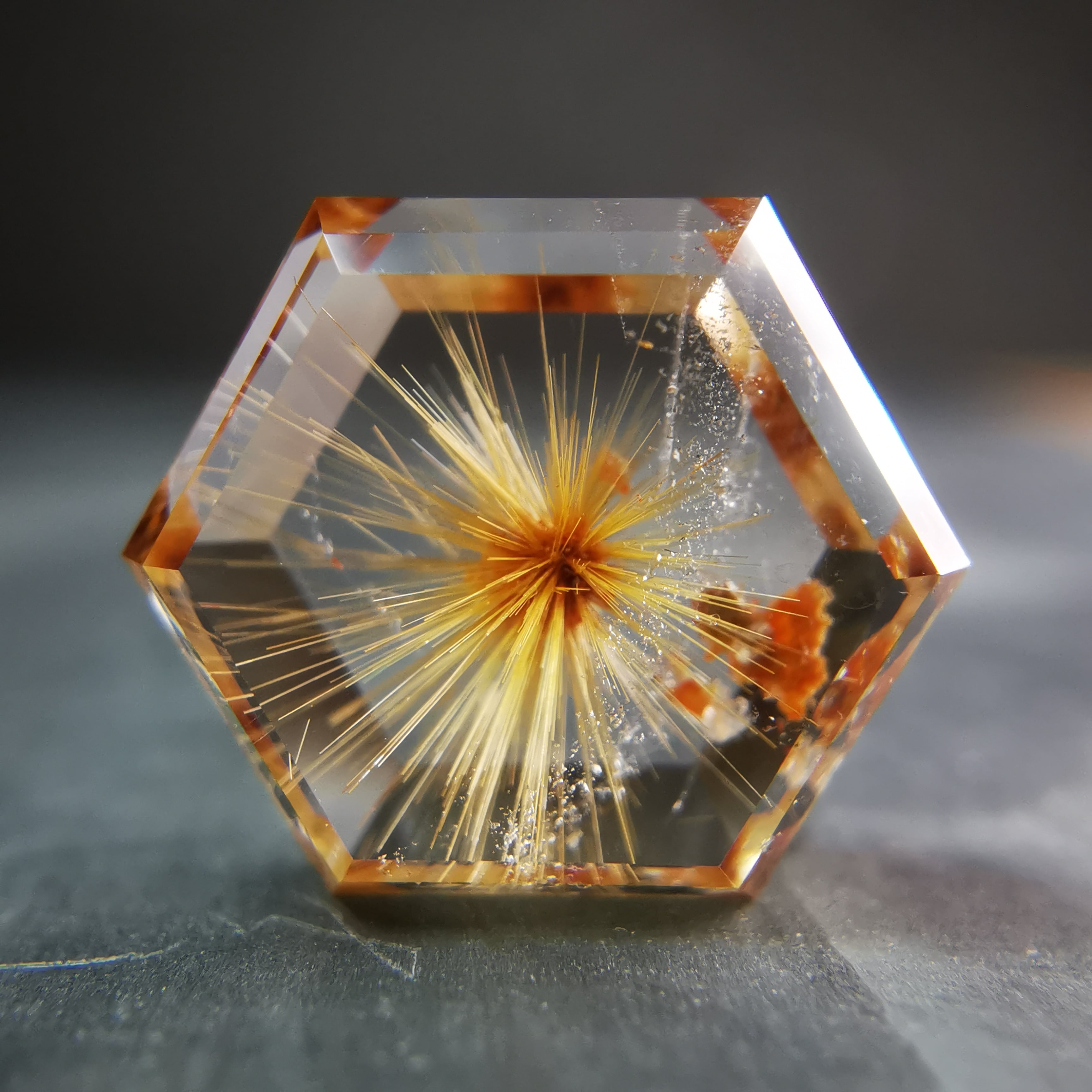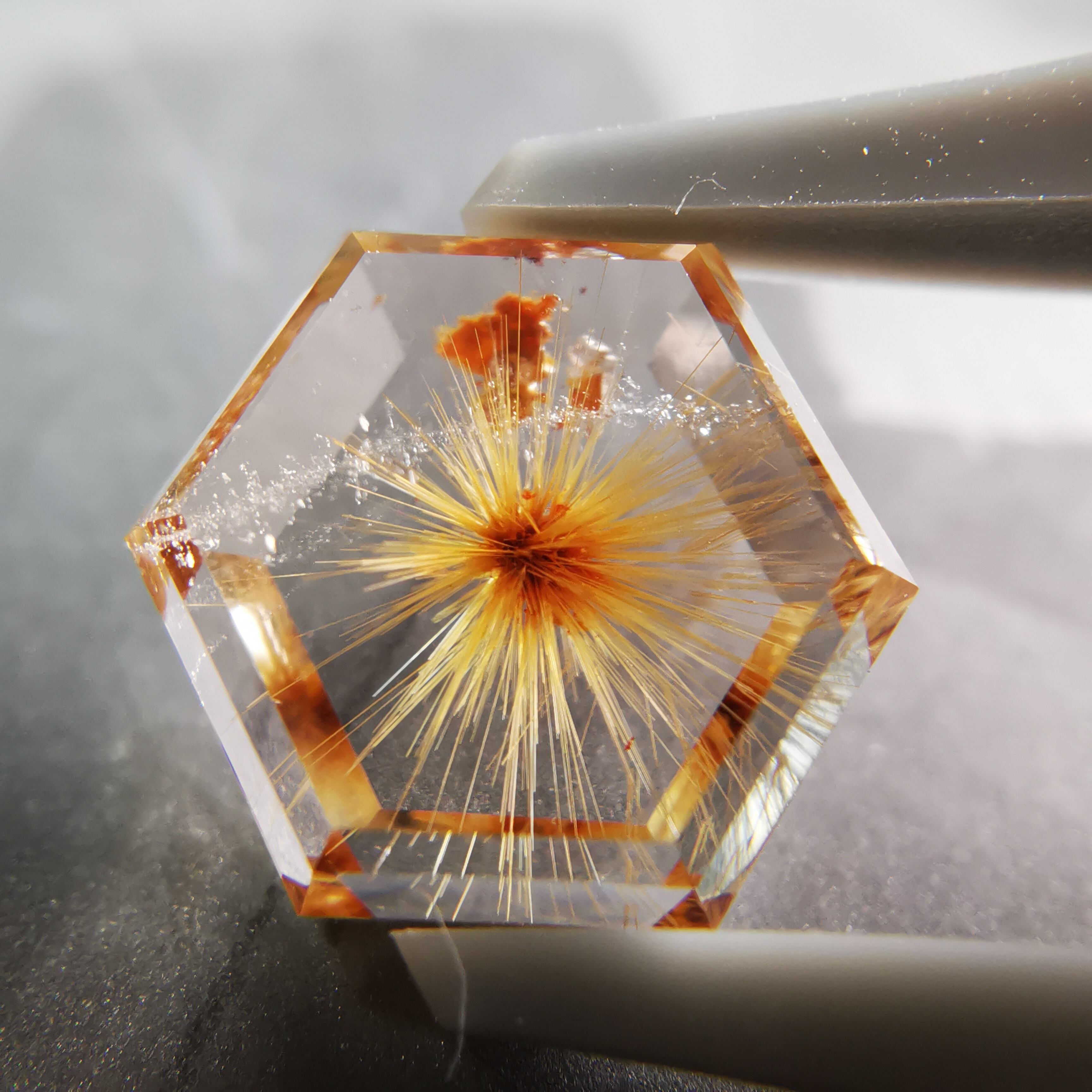 フラワールチルクォーツとは、結晶の中心から放射状に伸びる針状のルチルの形状が、花のように見えるため、そのように呼ばれるようになったクォーツです。