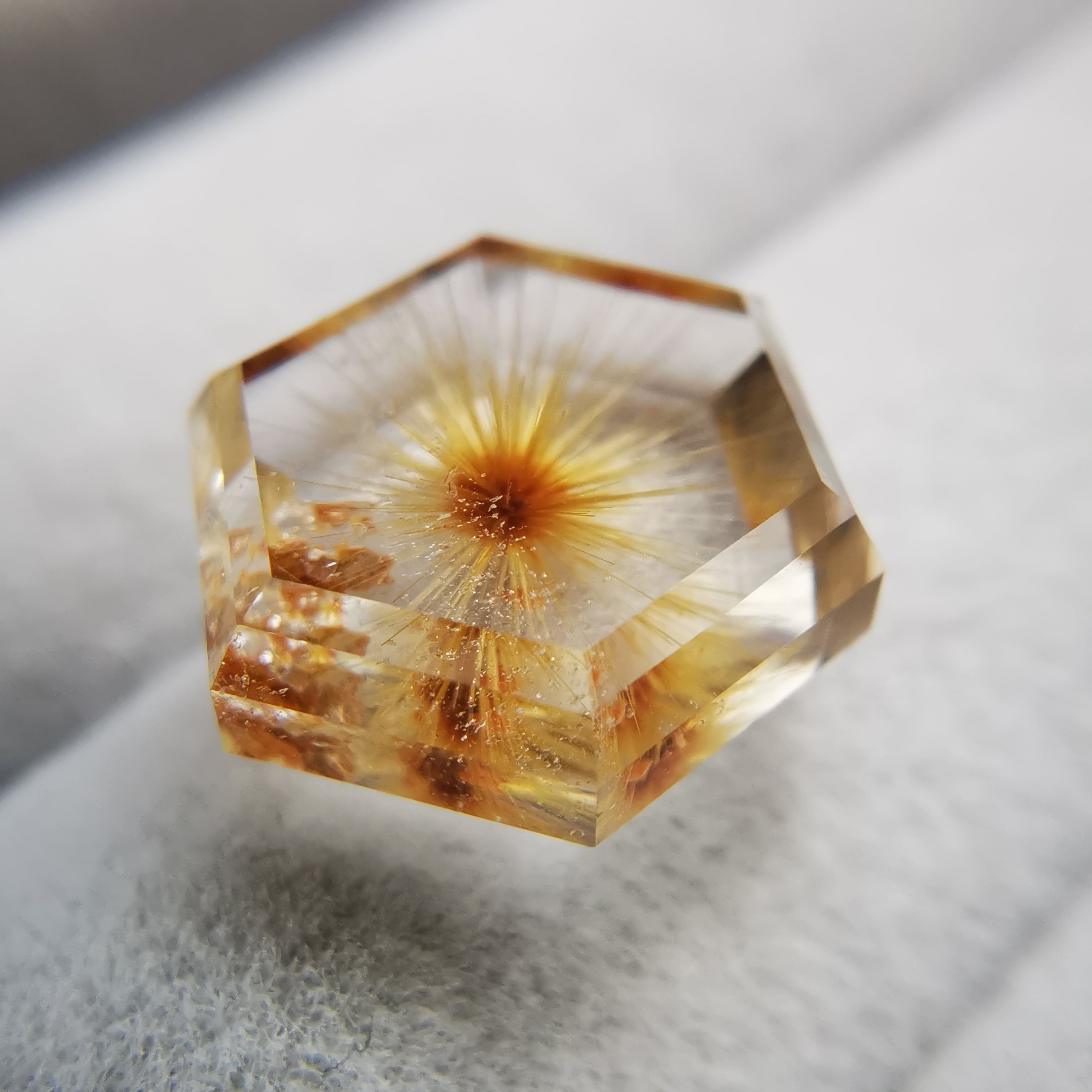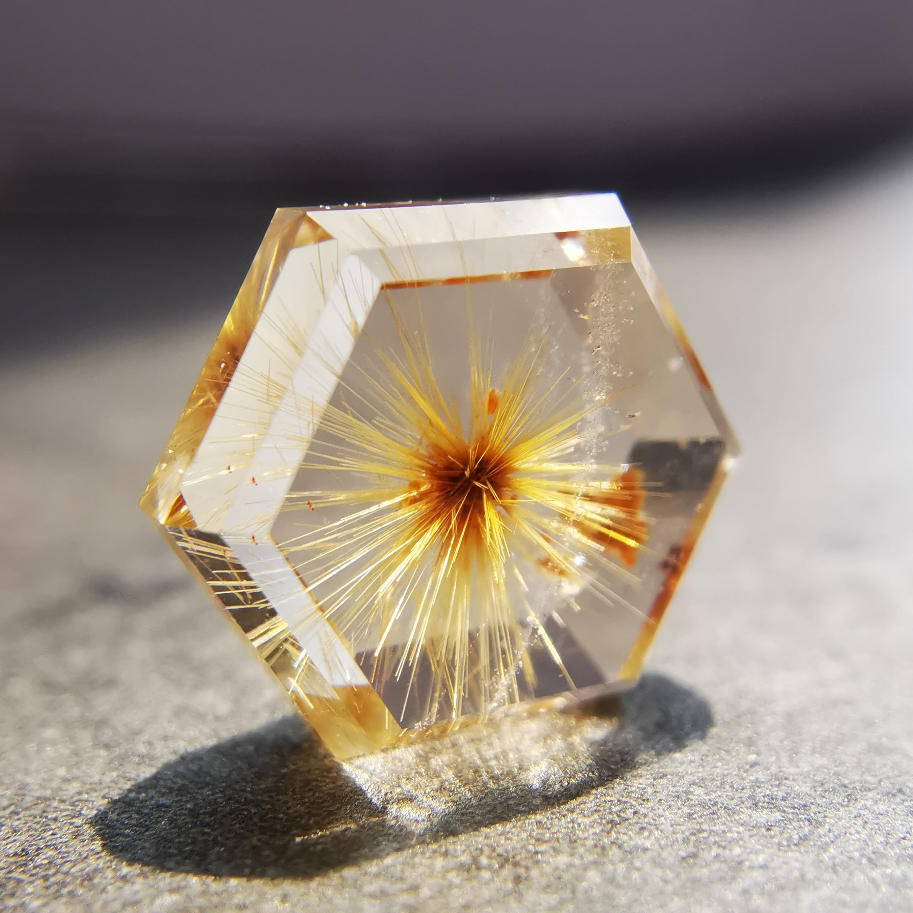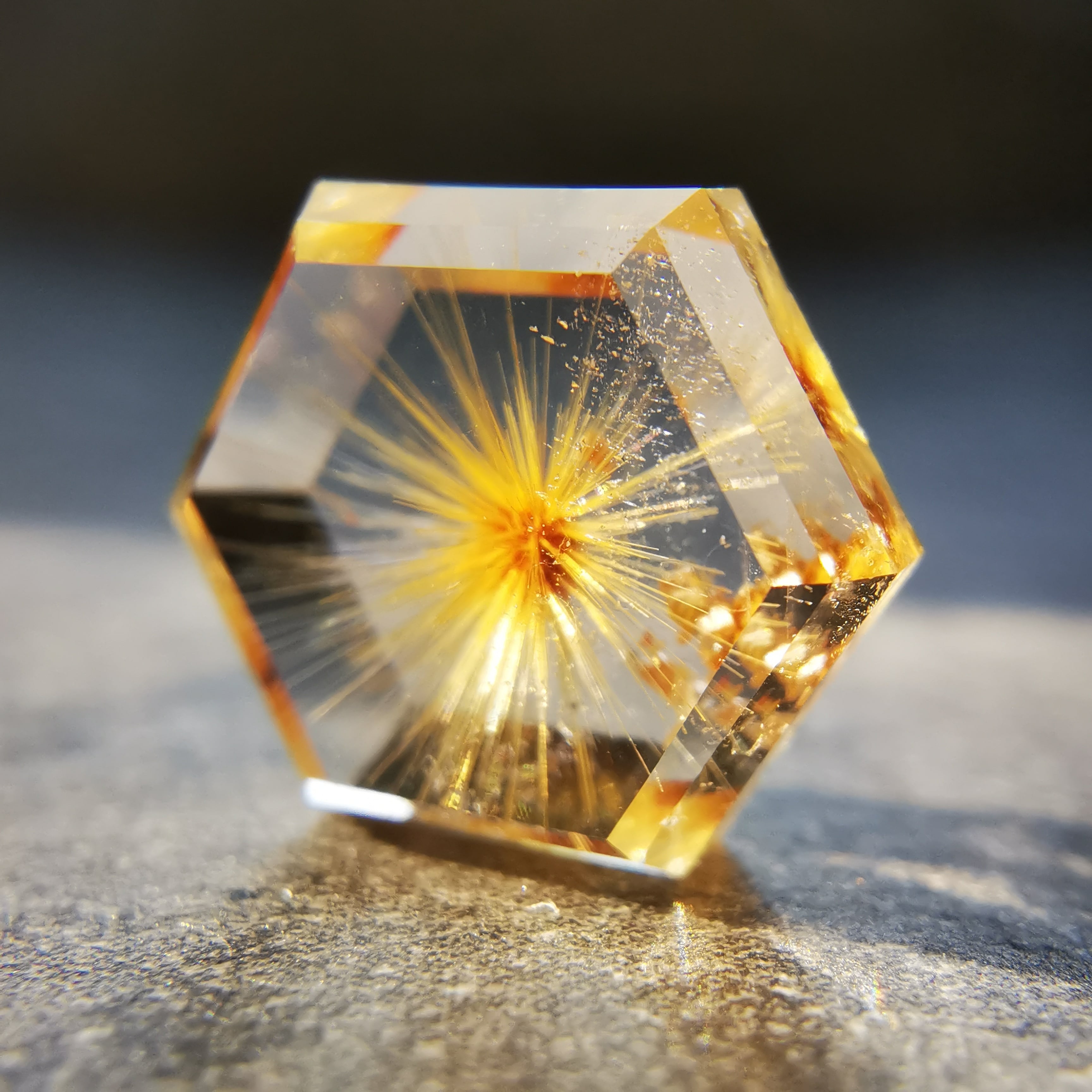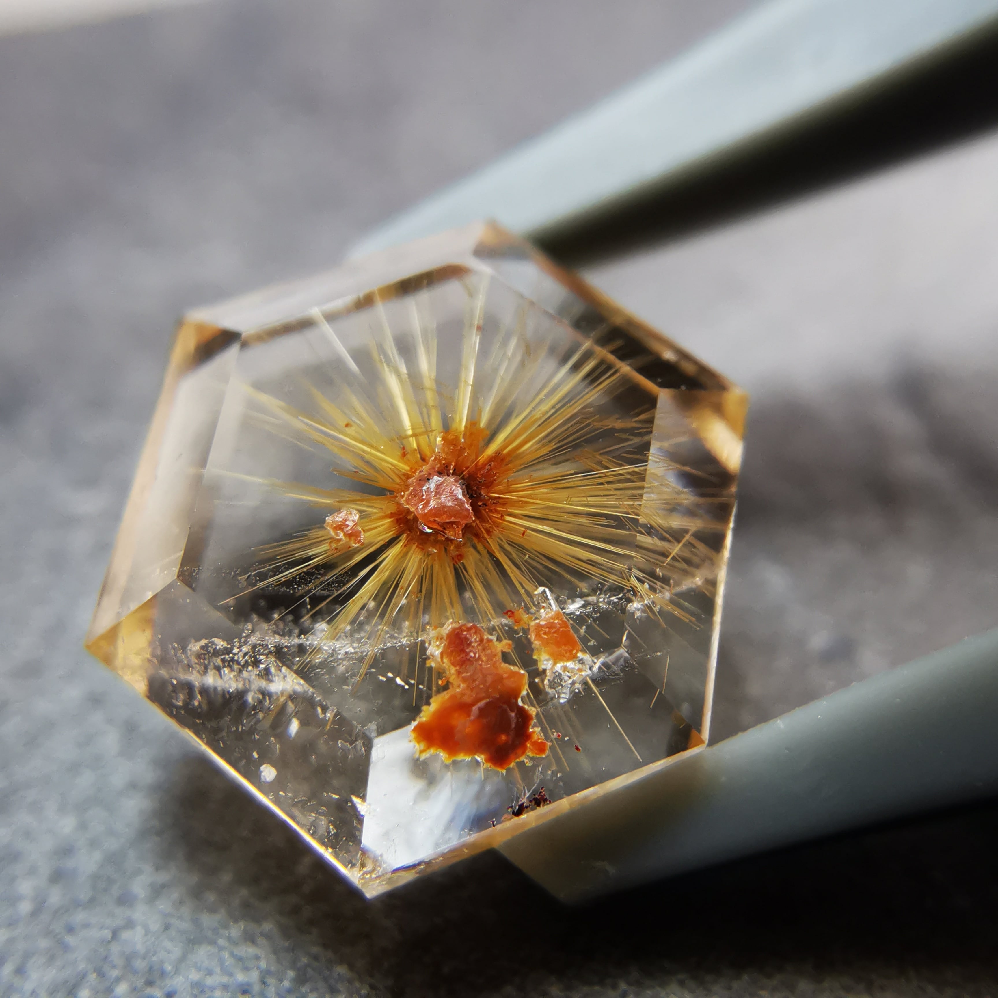 フラワールチルクォーツとは、結晶の中心から放射状に伸びる針状のルチルの形状が、花のように見えるため、そのように呼ばれるようになったクォーツです。