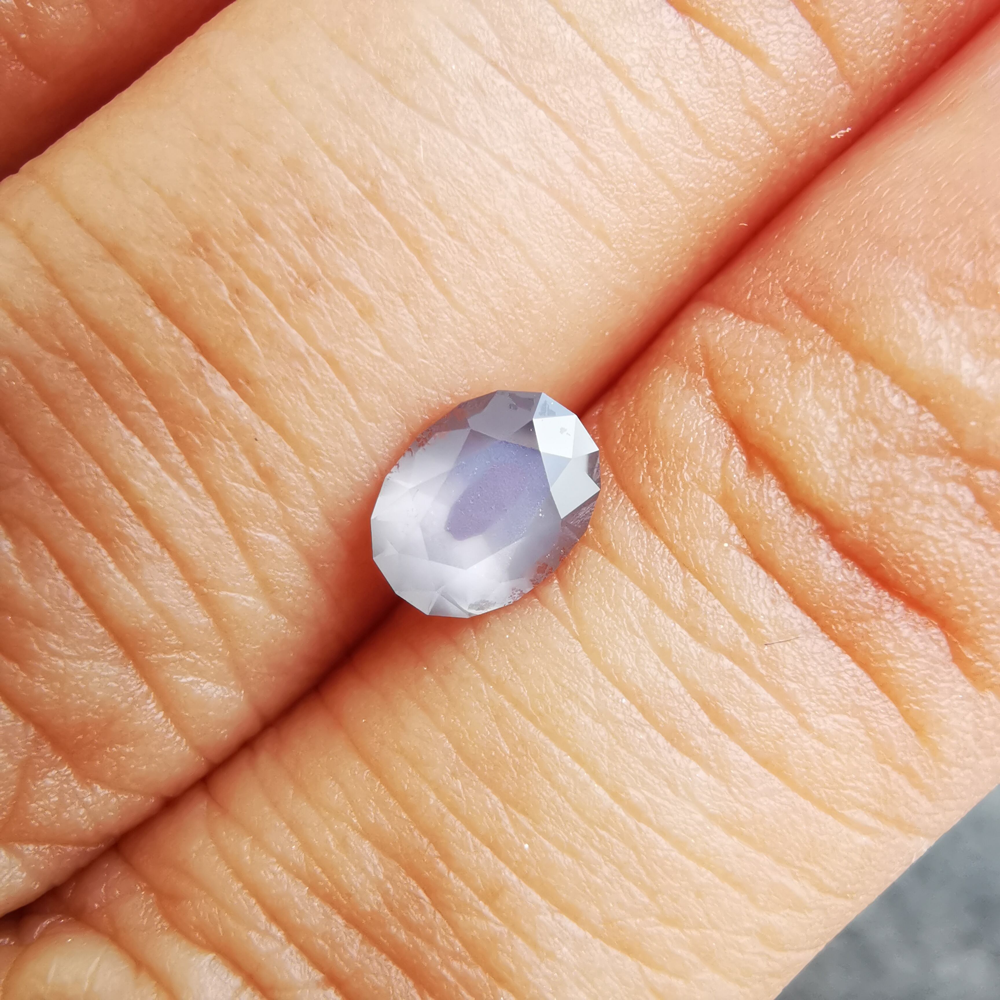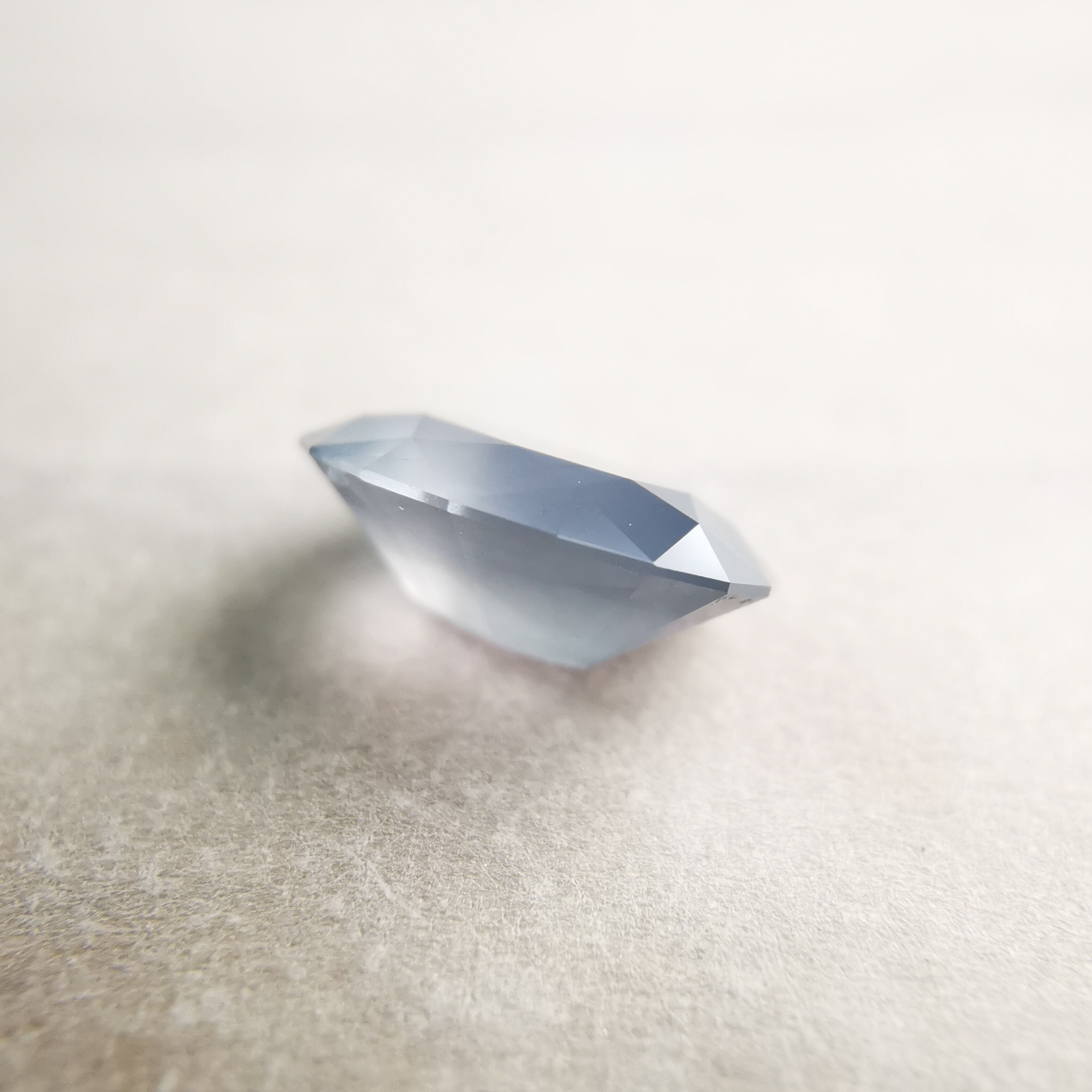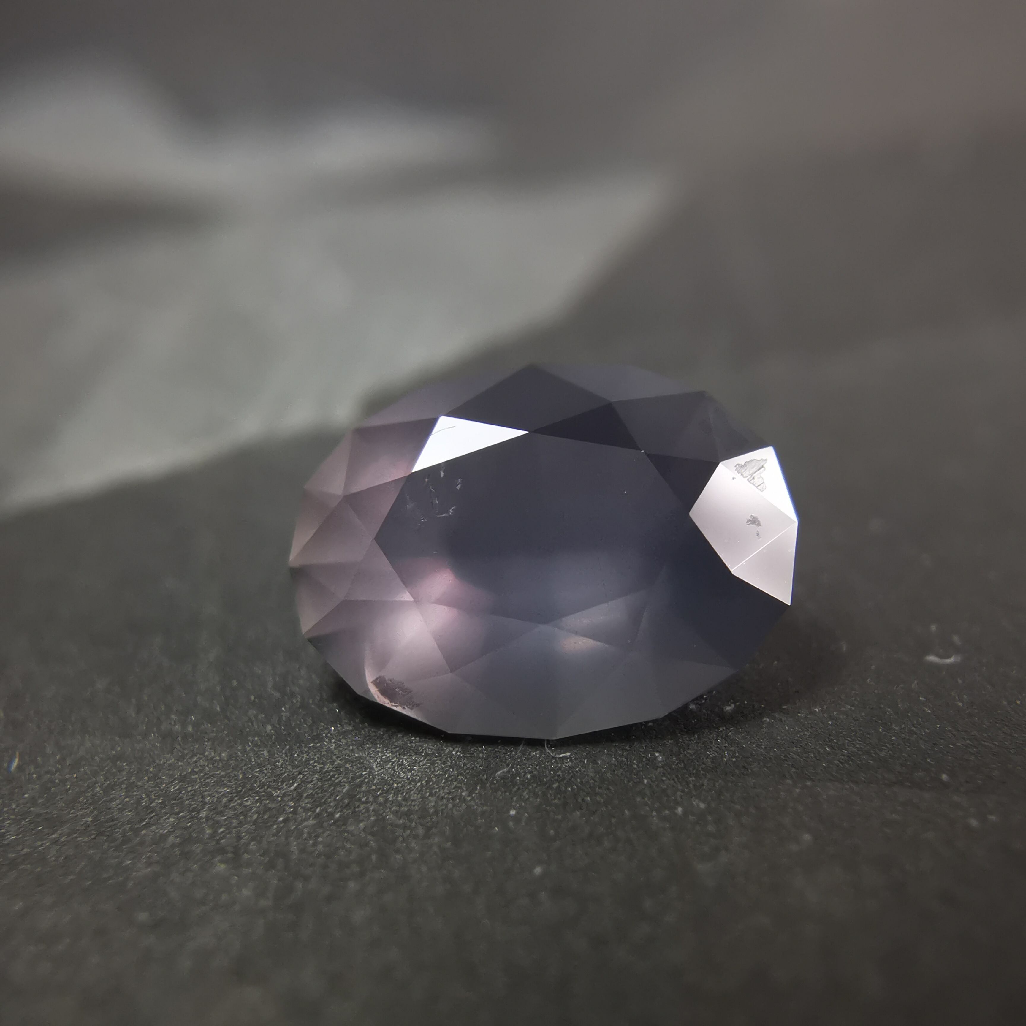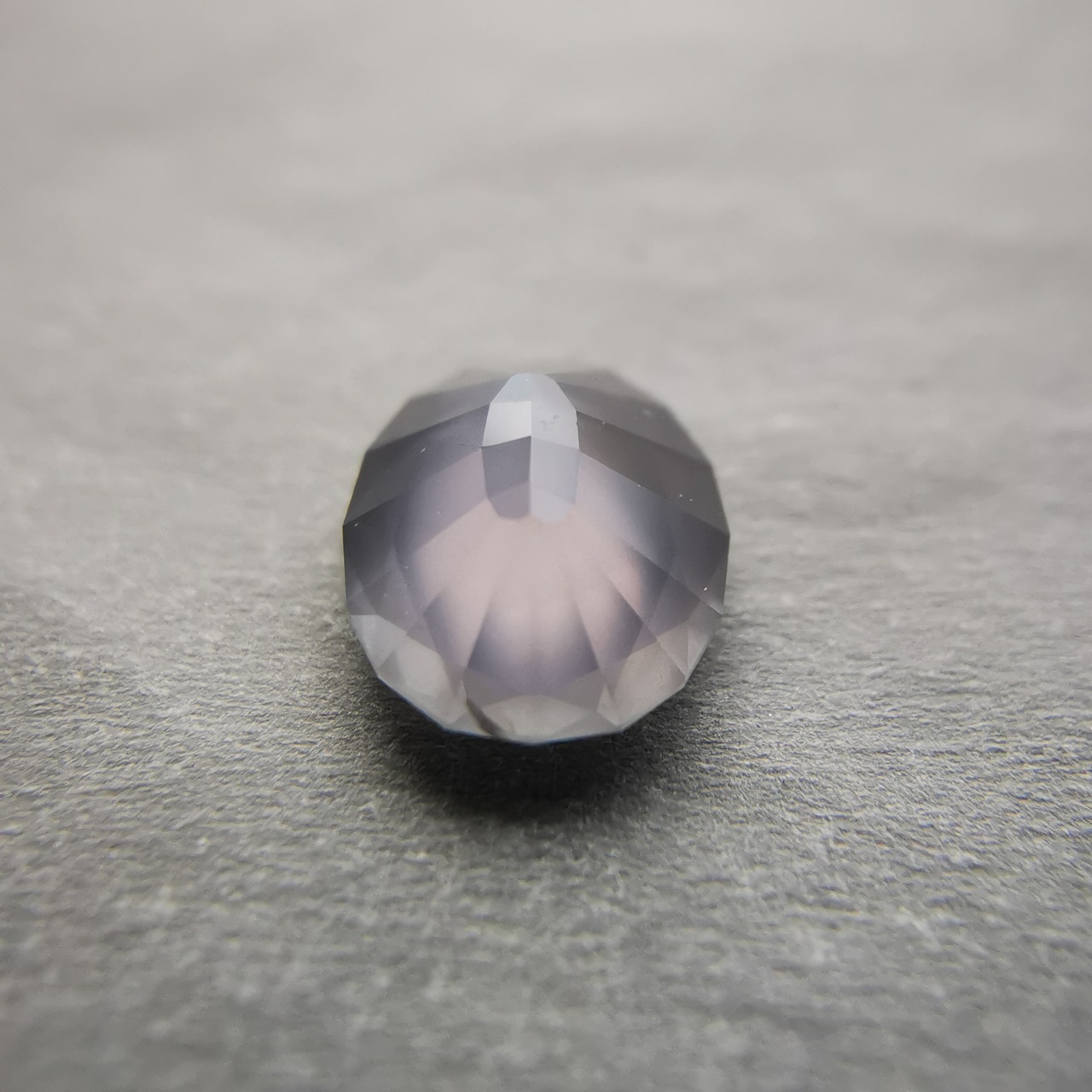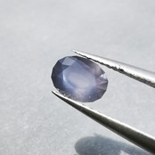 宝石のグレーには大きく2種類、黒を薄めたグレーと、黒と白を混ぜたグレーがありますが、こちらは後者のグレー、ややパープルピンクみのある銀鼠色のサファイアです。