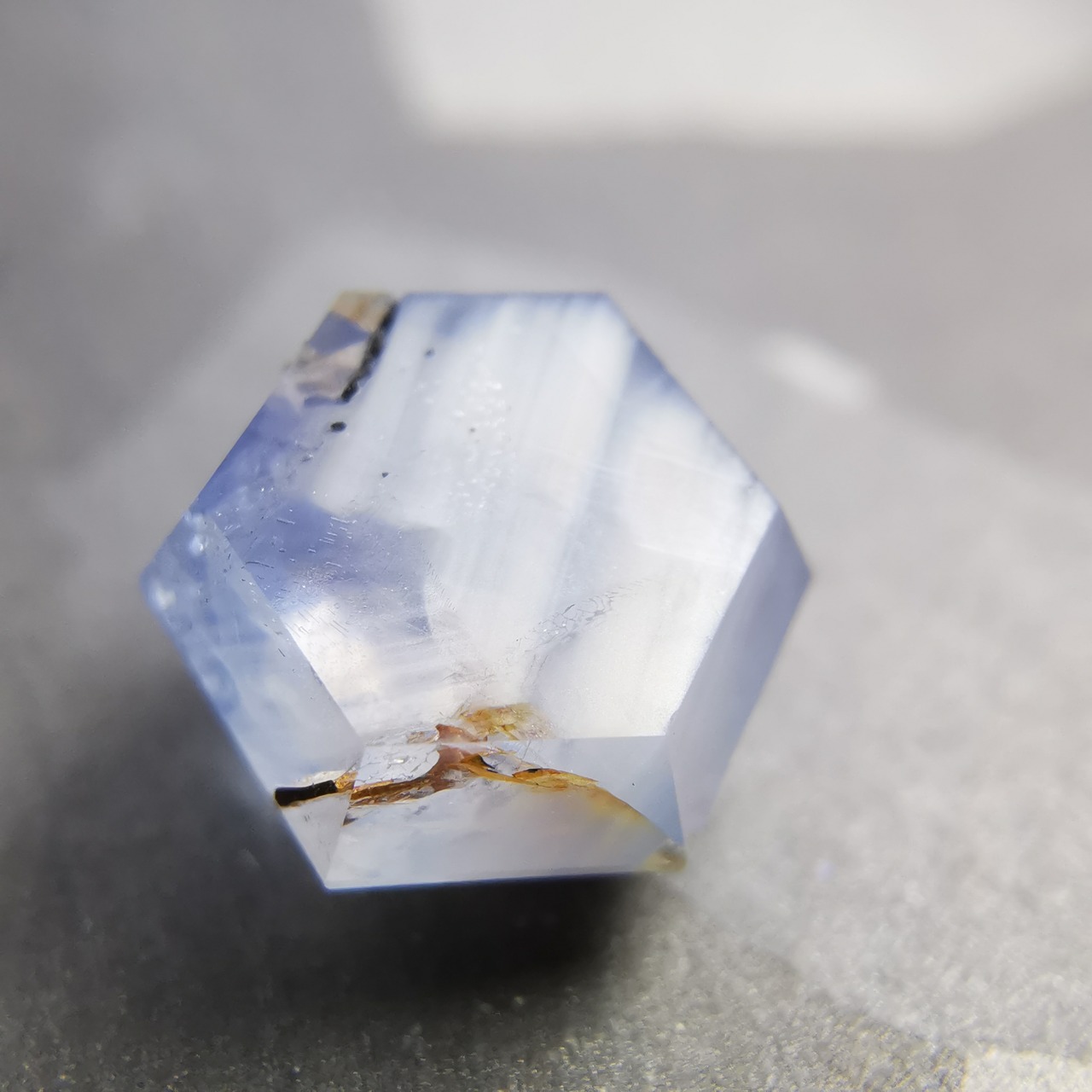シルクインクルージョンの向こうにいる黄色いインクルージョンの気配、シルクの隙間を縫うように現れる透明な青い道、裏側は濃厚なシルクの成長線、スターサファイアの時には目が向かなかったような個性が楽しい一石です。