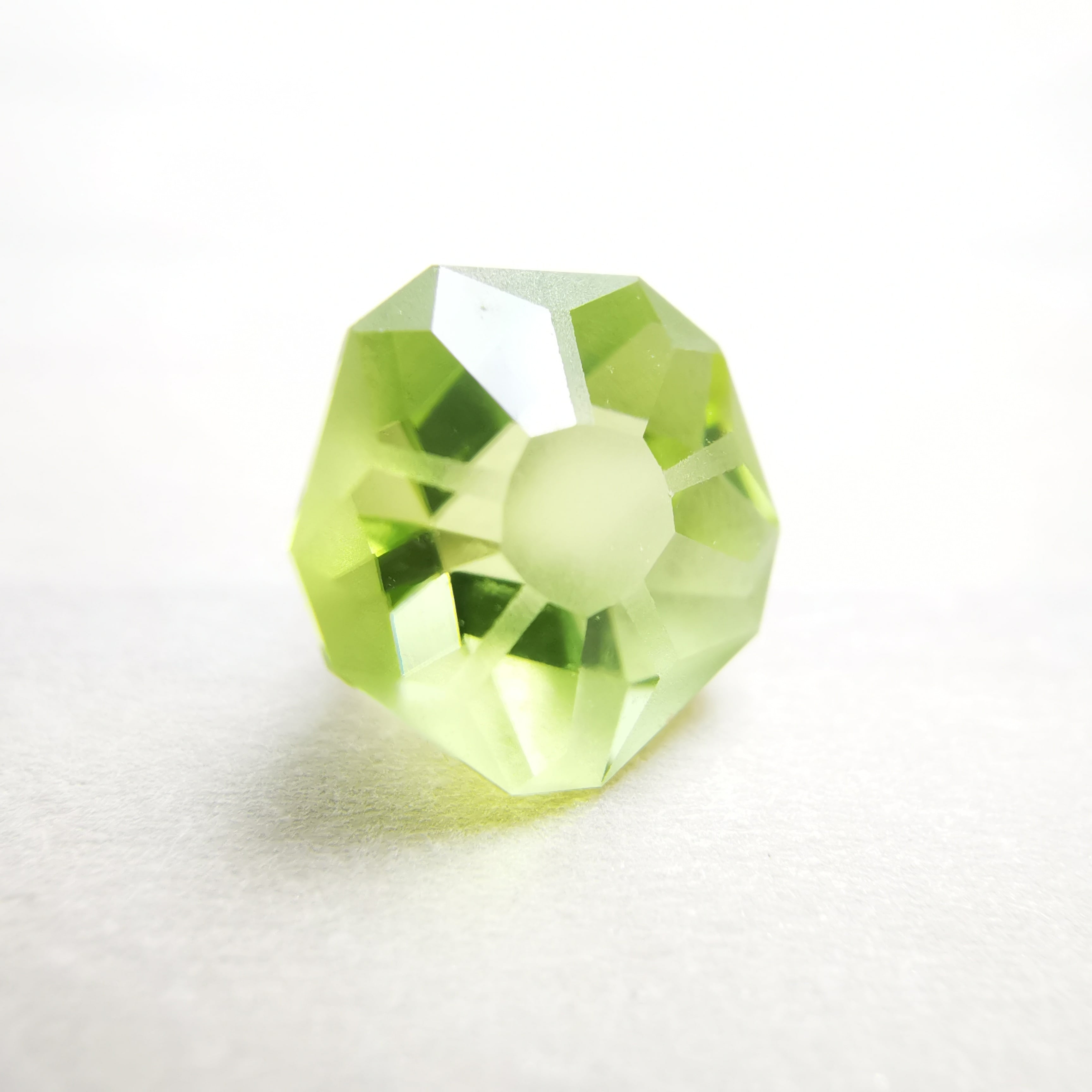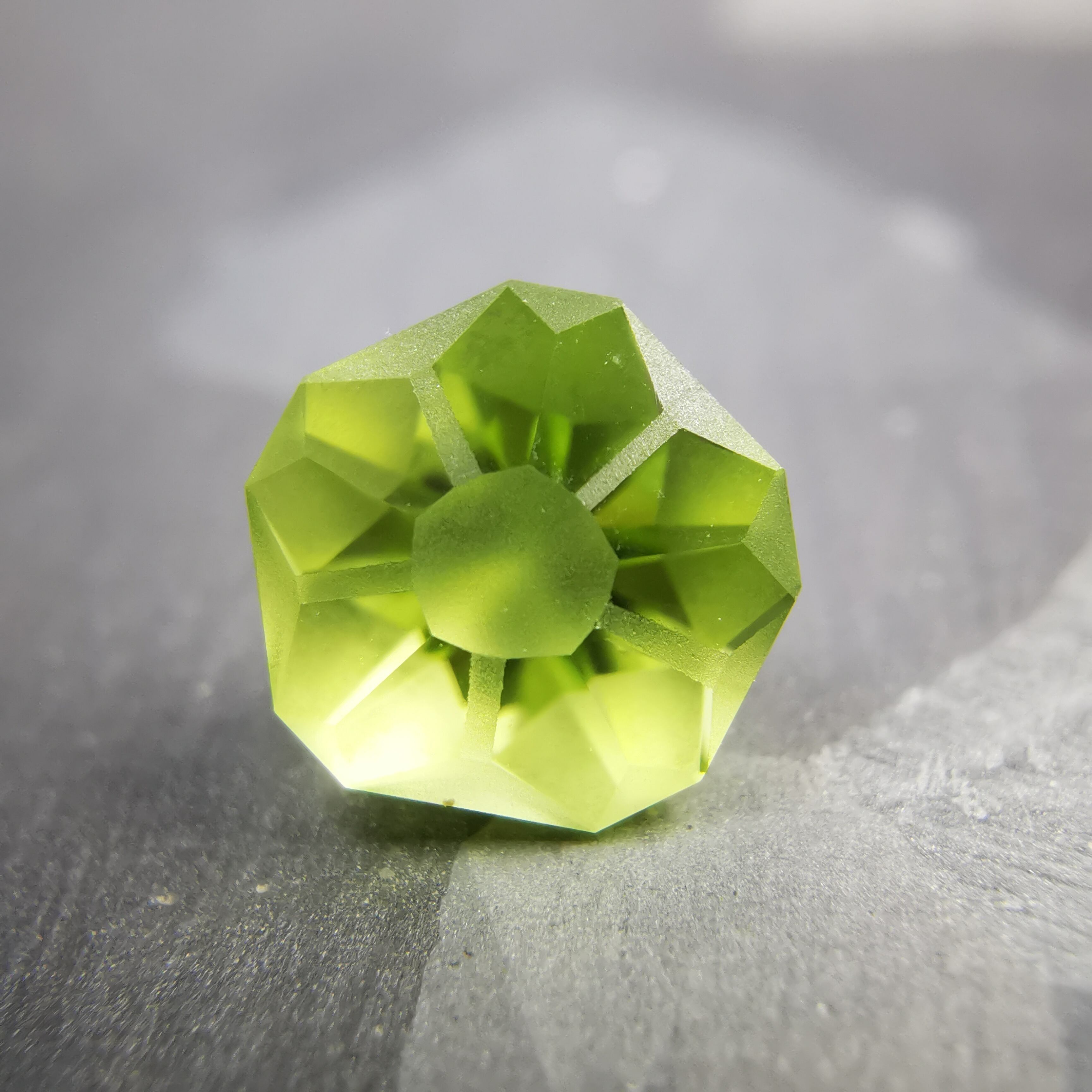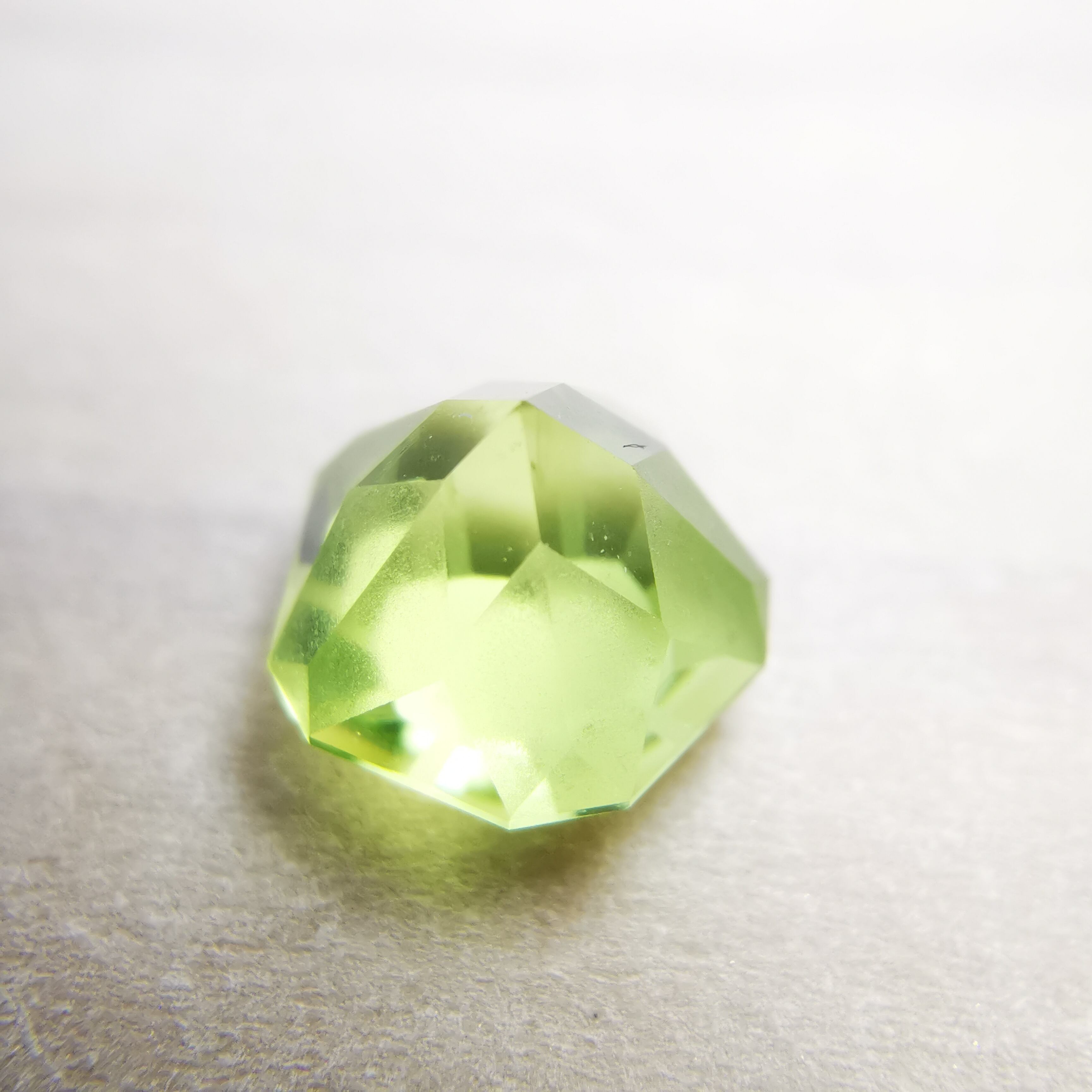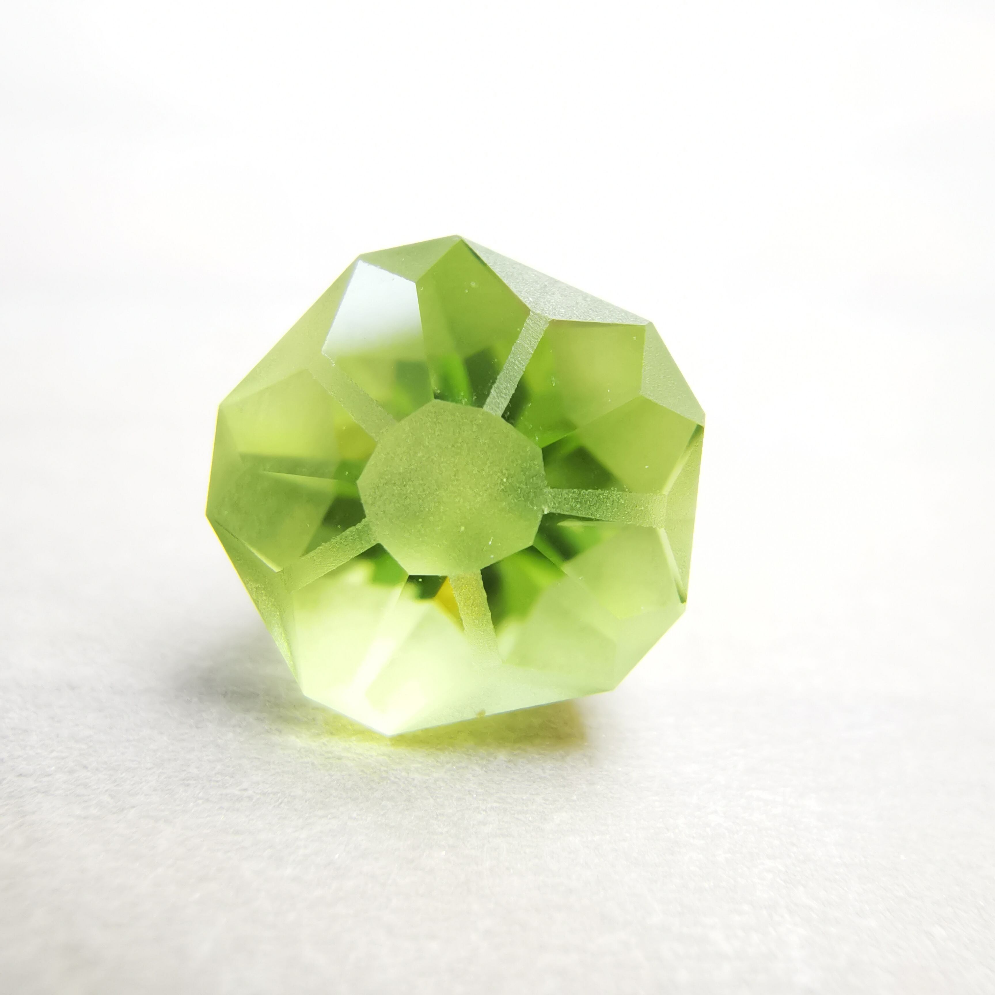 ペリドットは品質が安定しているがために、個性を見出すのが難しいと思っていたのですが、カットで思い切り個性を出してみました。