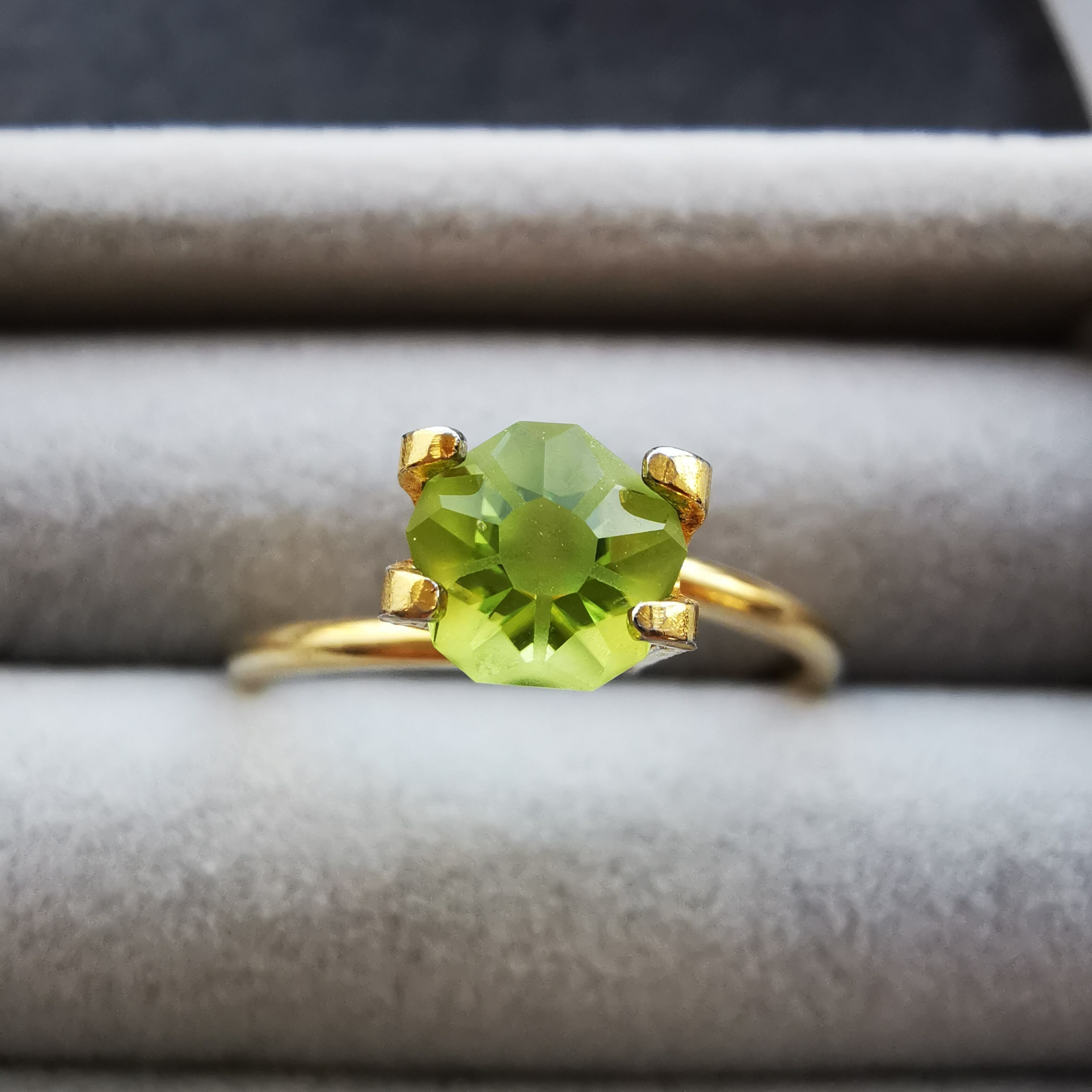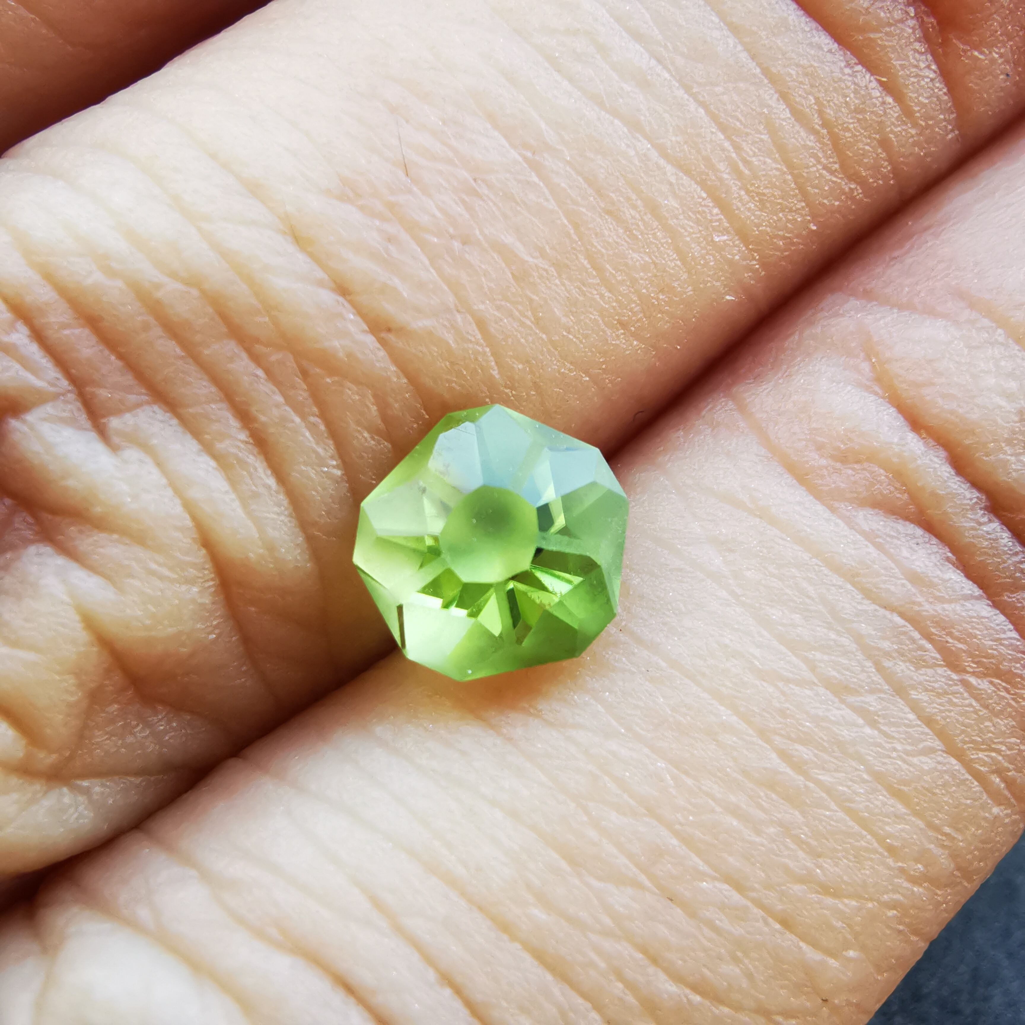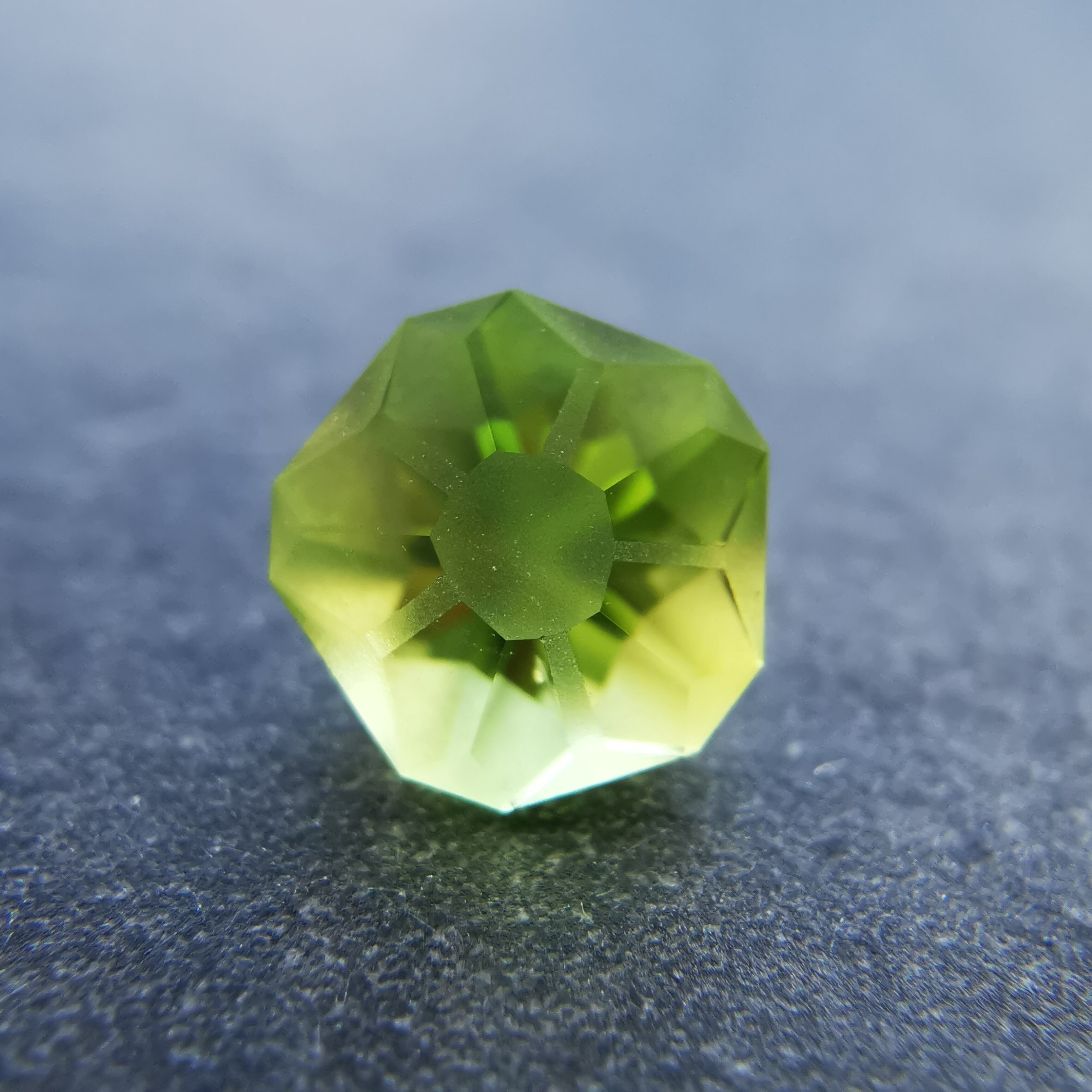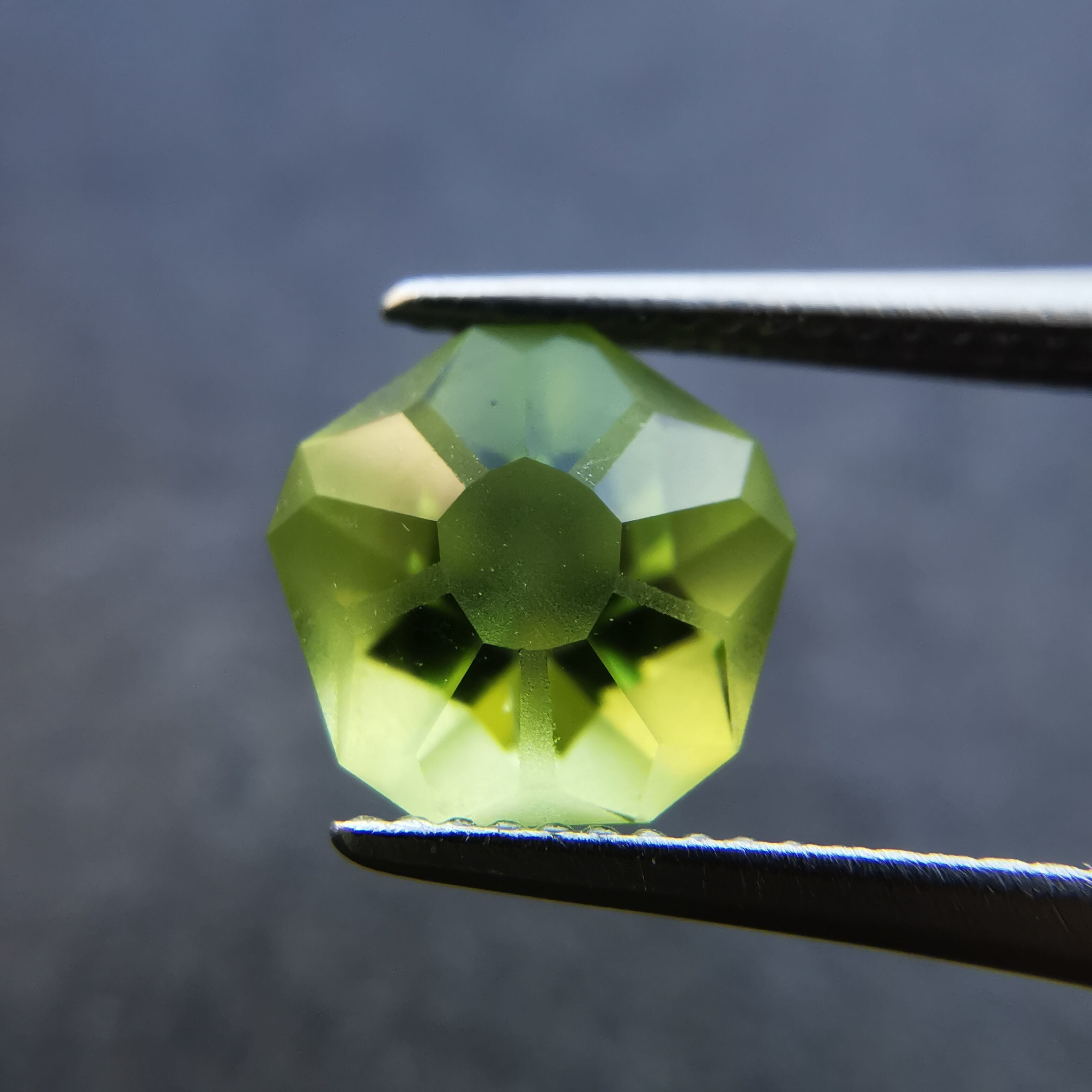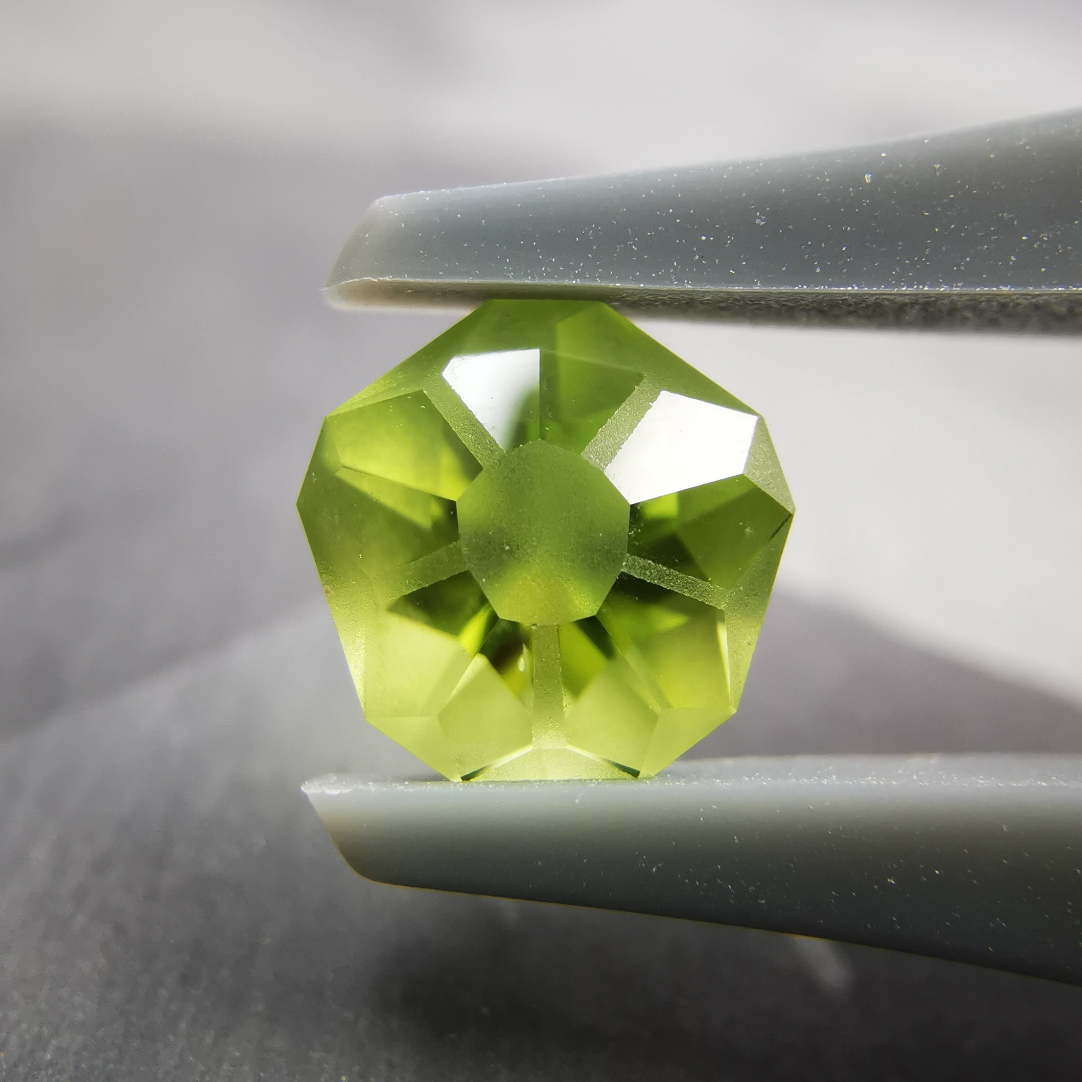 ペリドットは品質が安定しているがために、個性を見出すのが難しいと思っていたのですが、カットで思い切り個性を出してみました。
