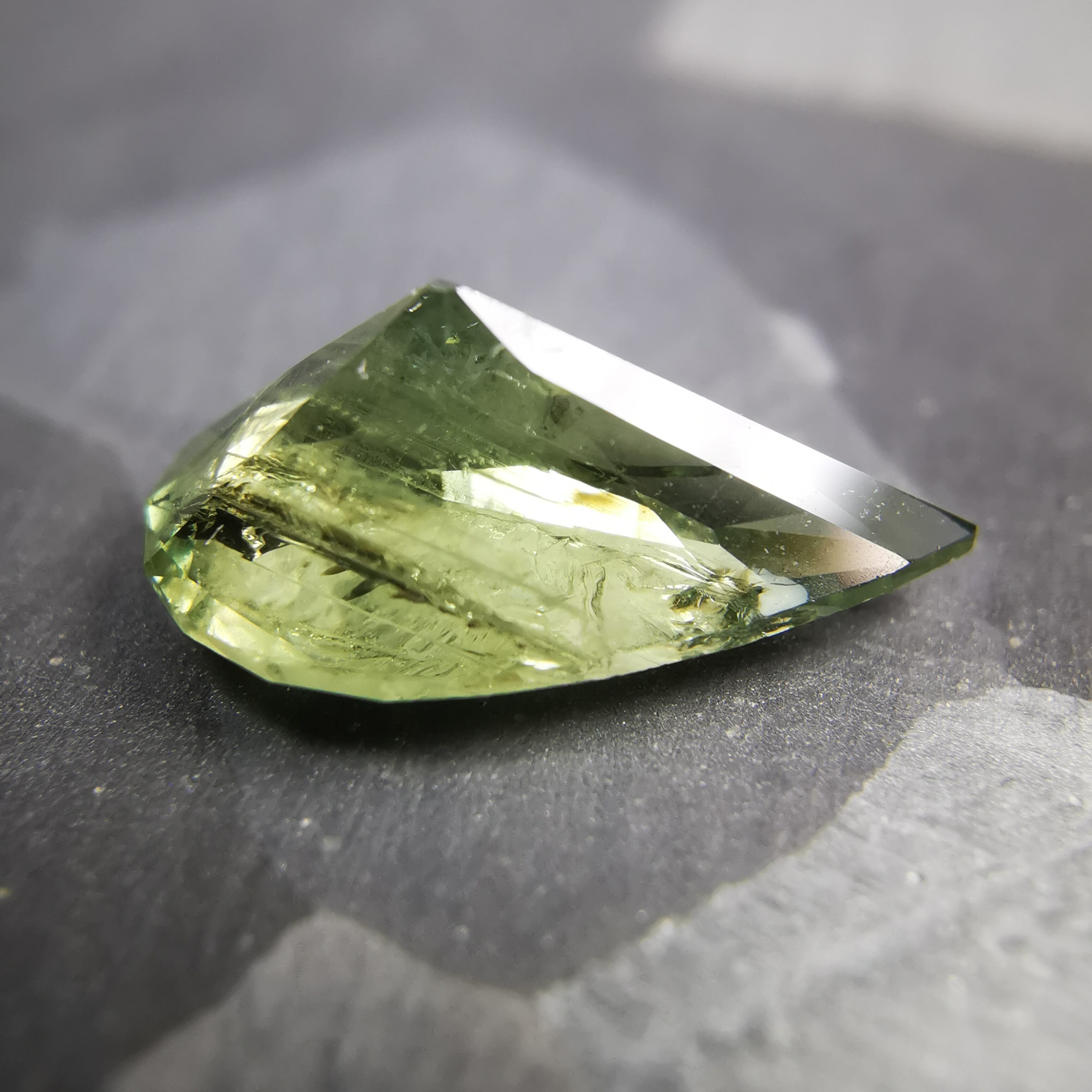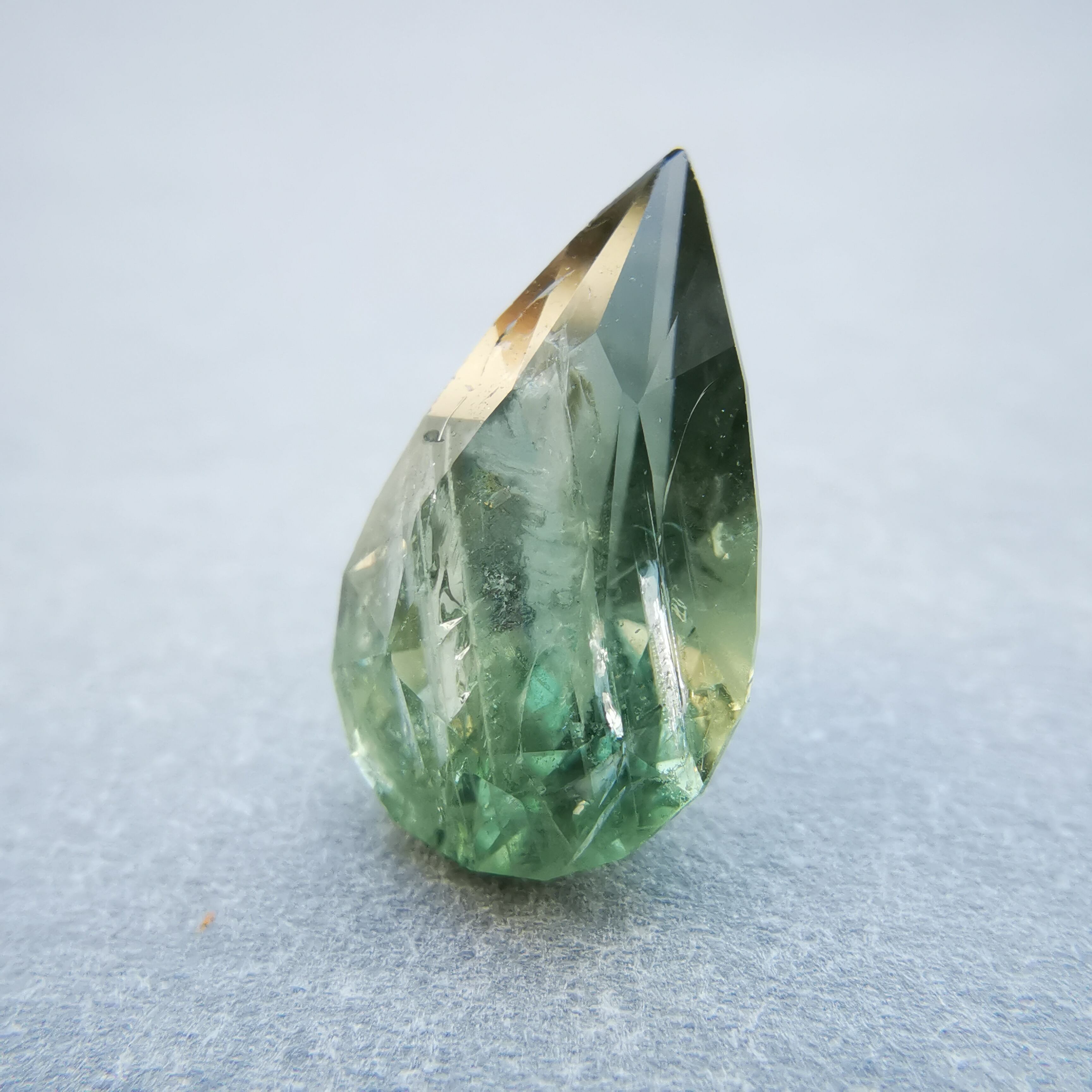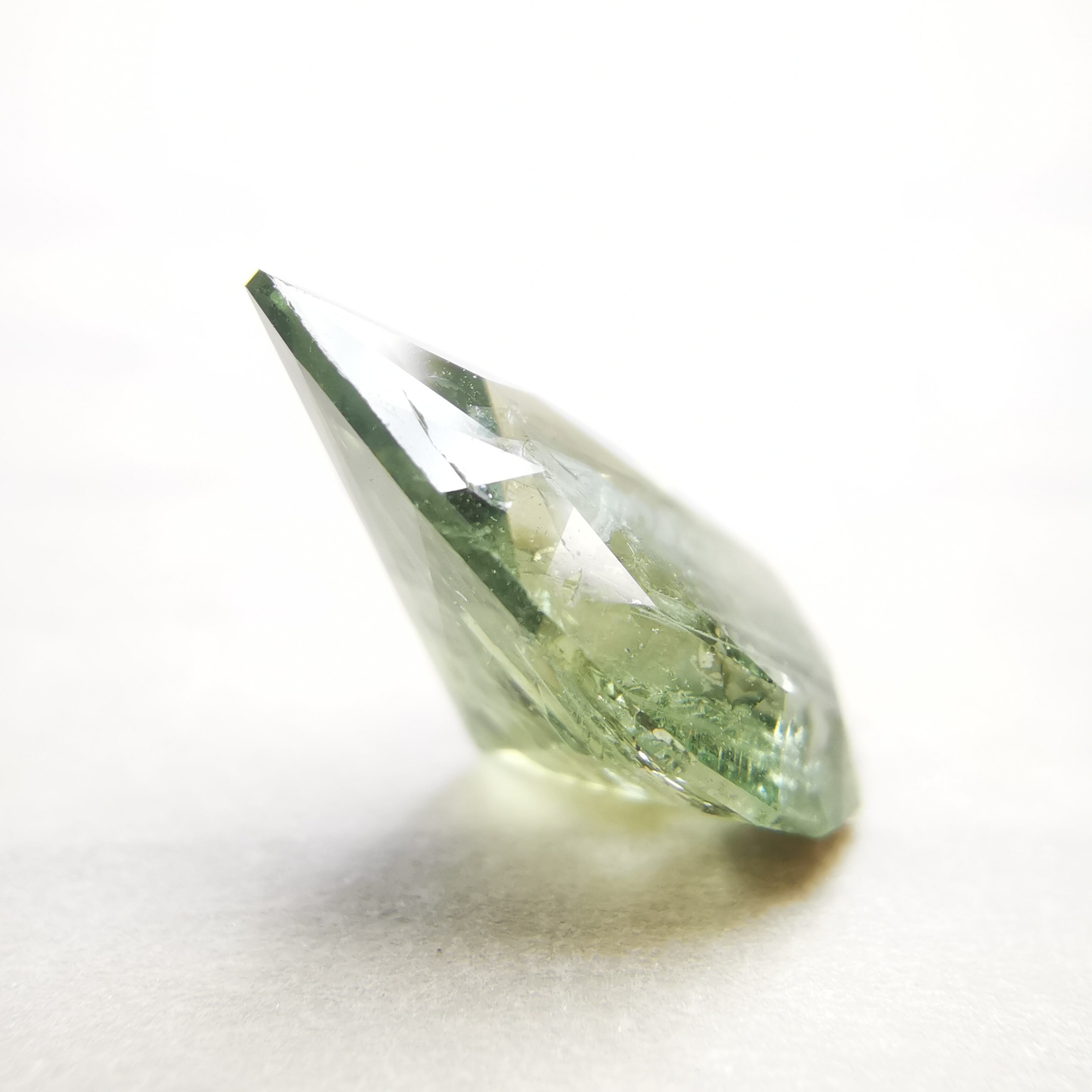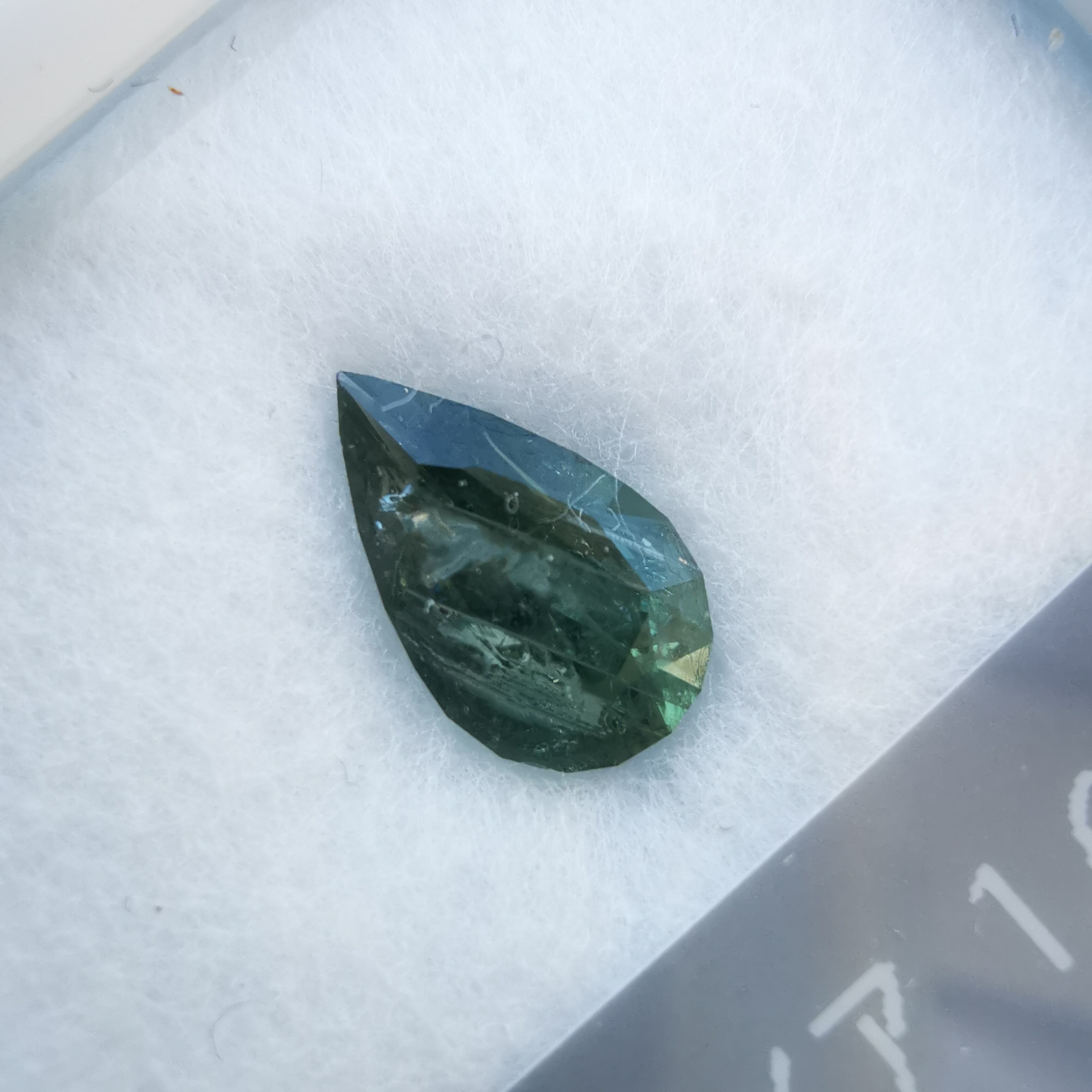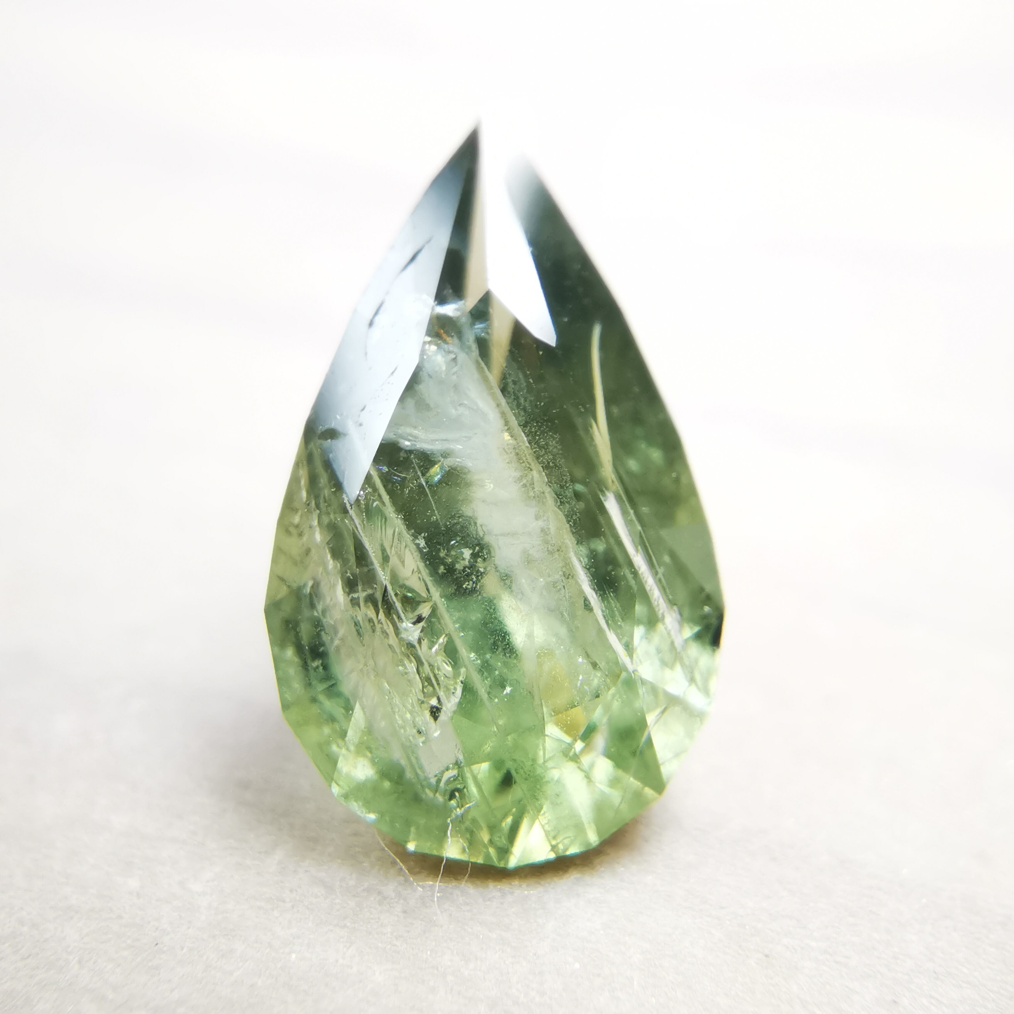 すっと伸びる長めのペアシェイプ、アメリカ人カッターR氏の特徴である、キュレットの先端を切り落としたオープンキューレットカットです。