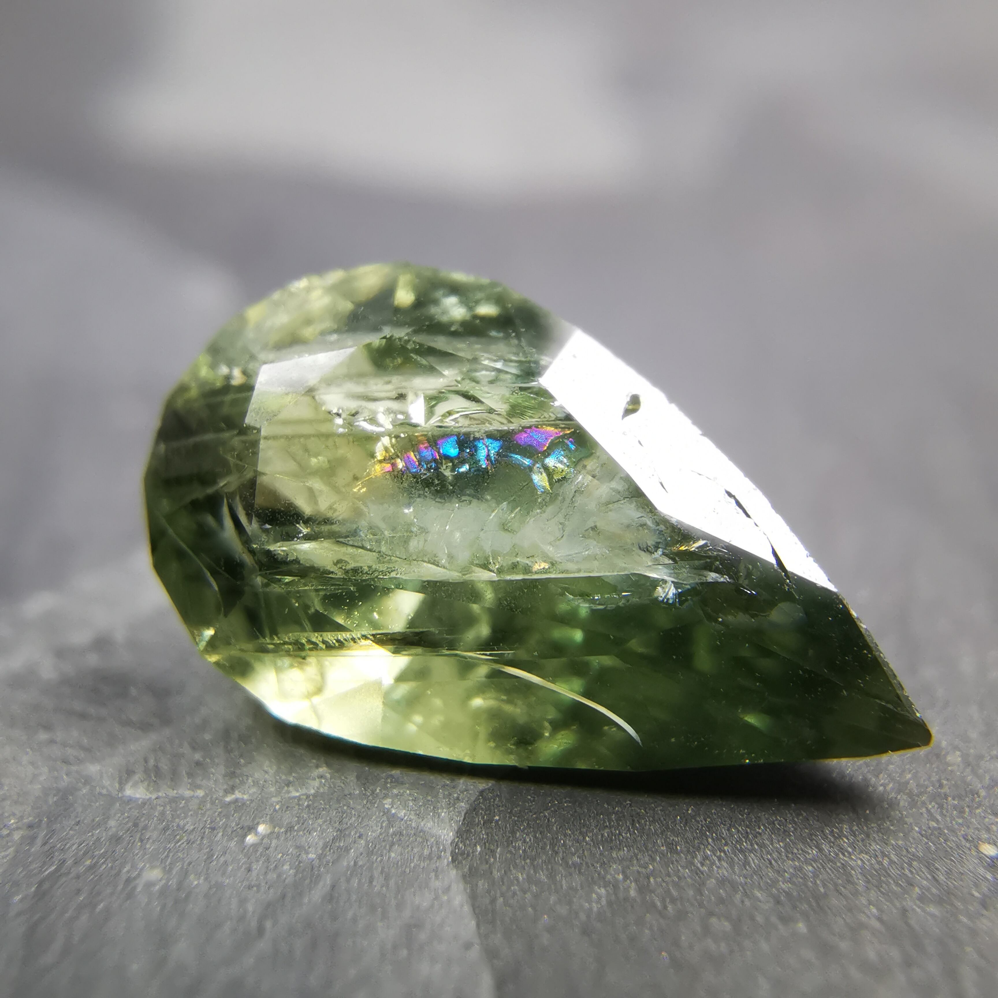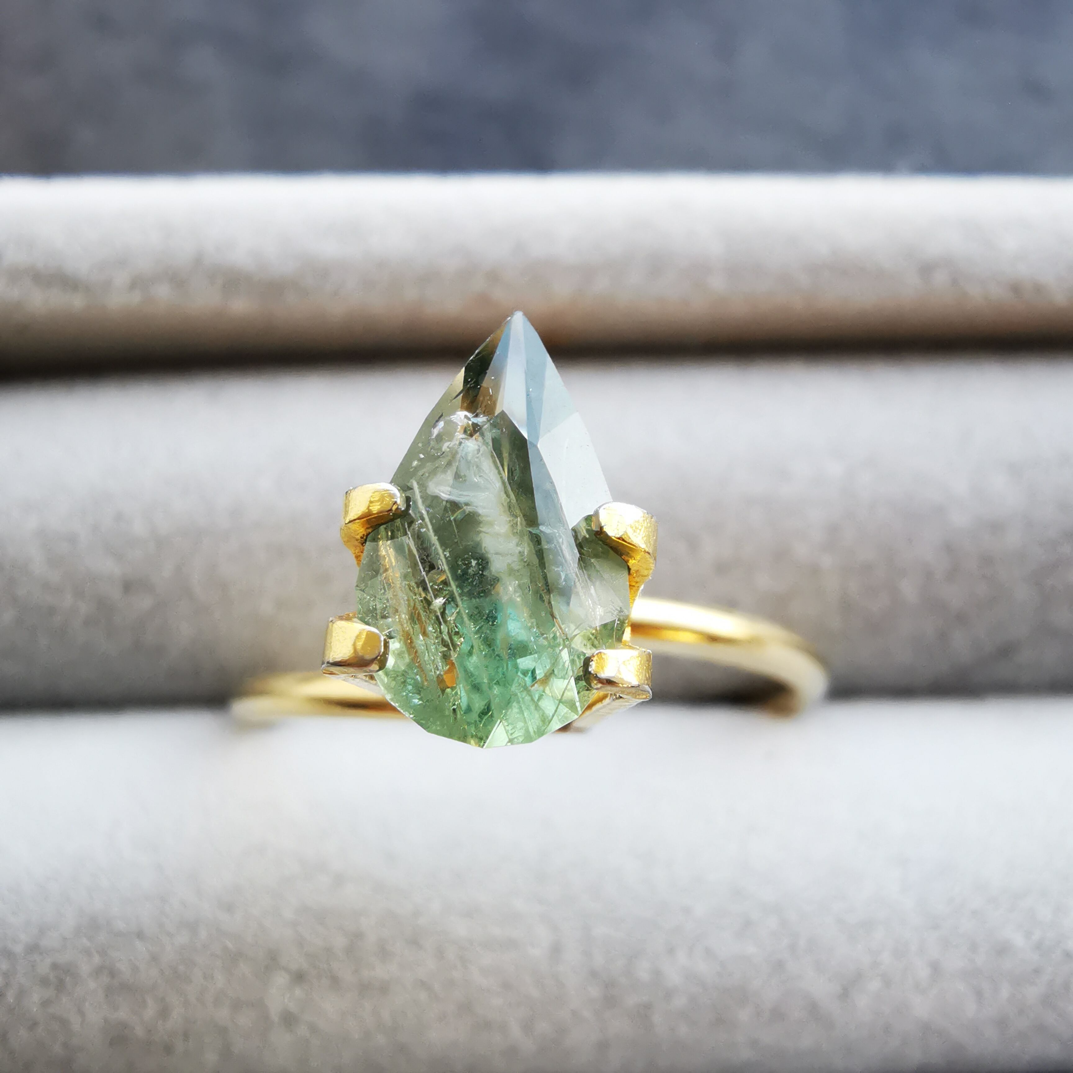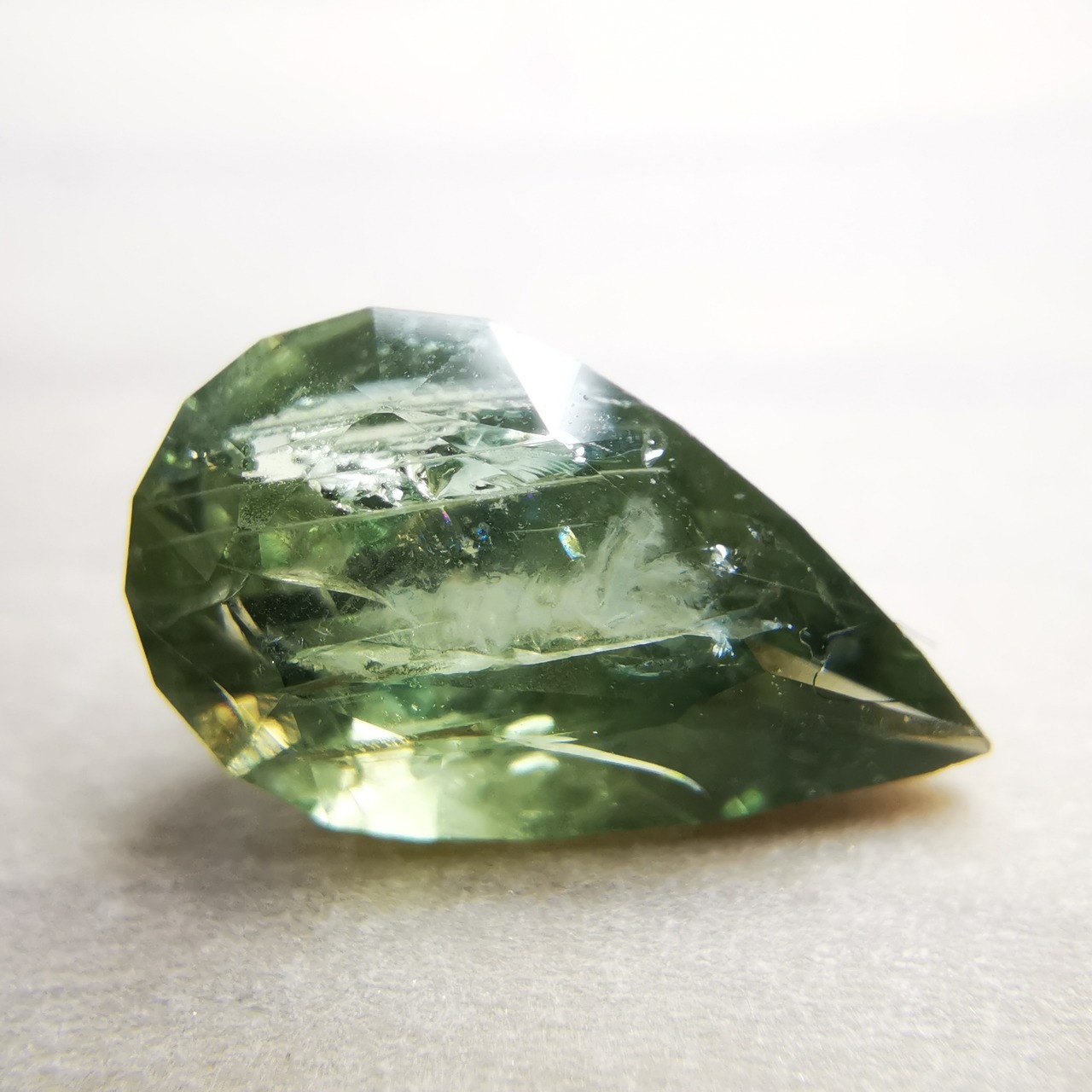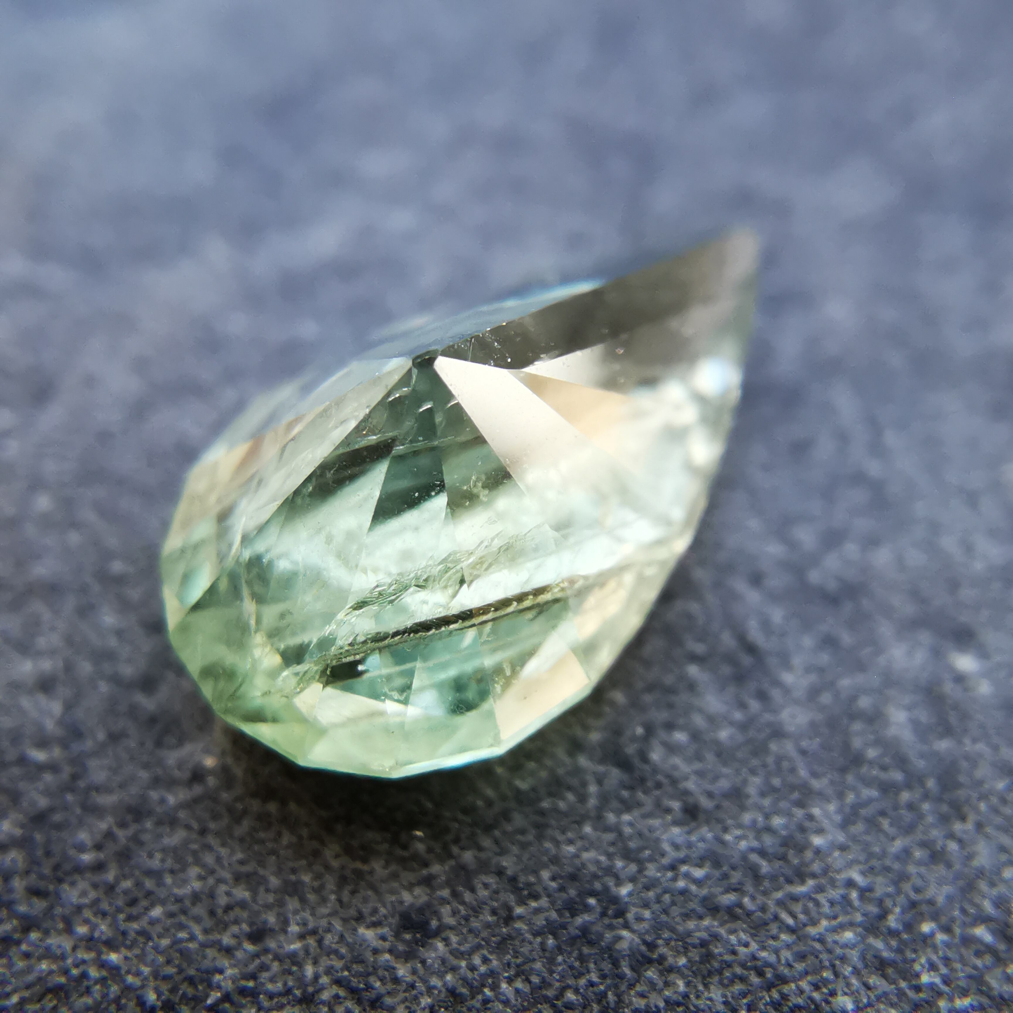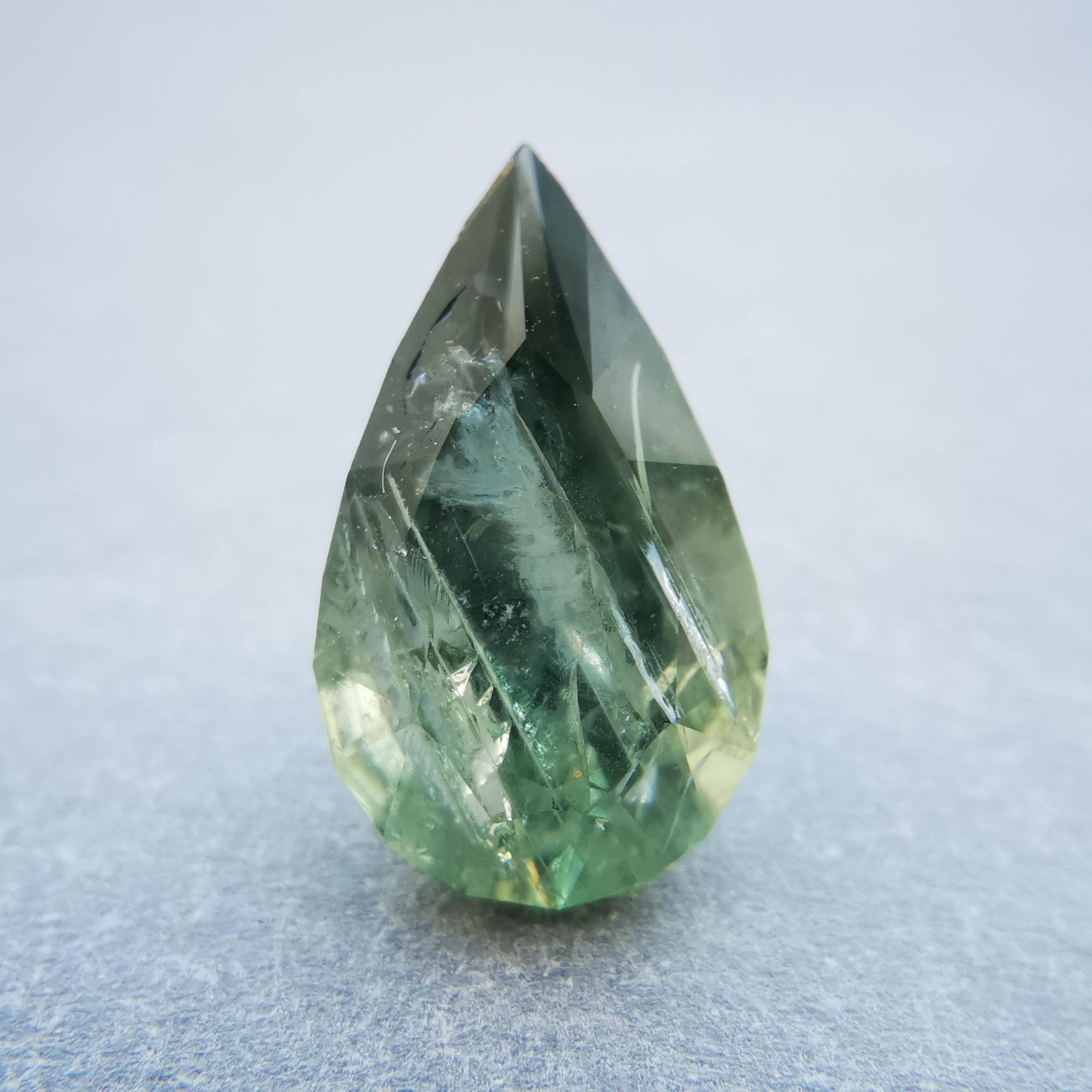 すっと伸びる長めのペアシェイプ、アメリカ人カッターR氏の特徴である、キュレットの先端を切り落としたオープンキューレットカットです。