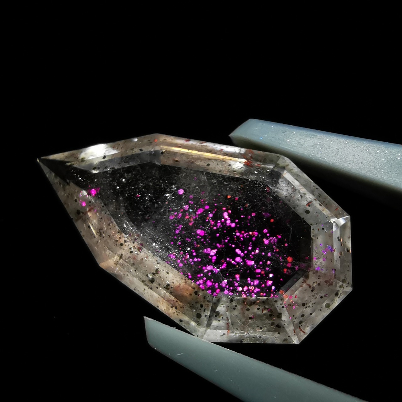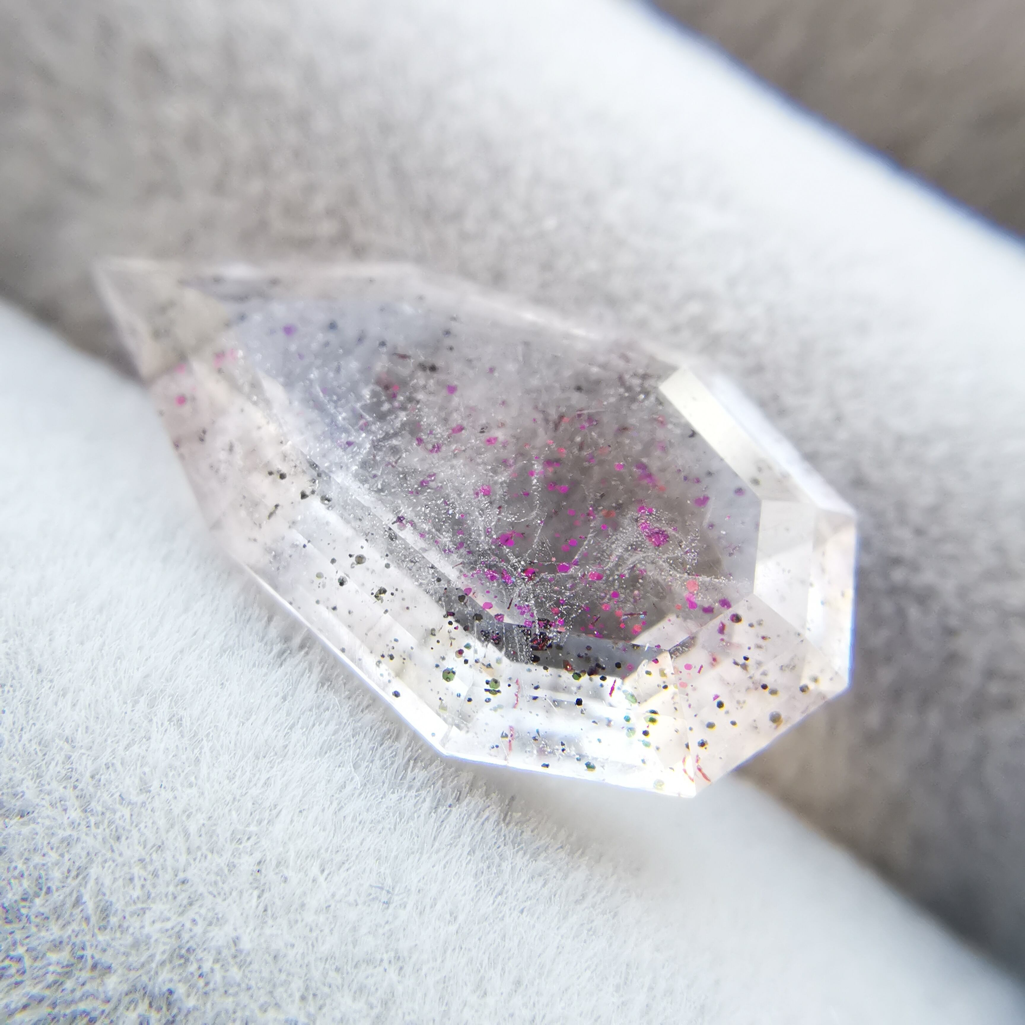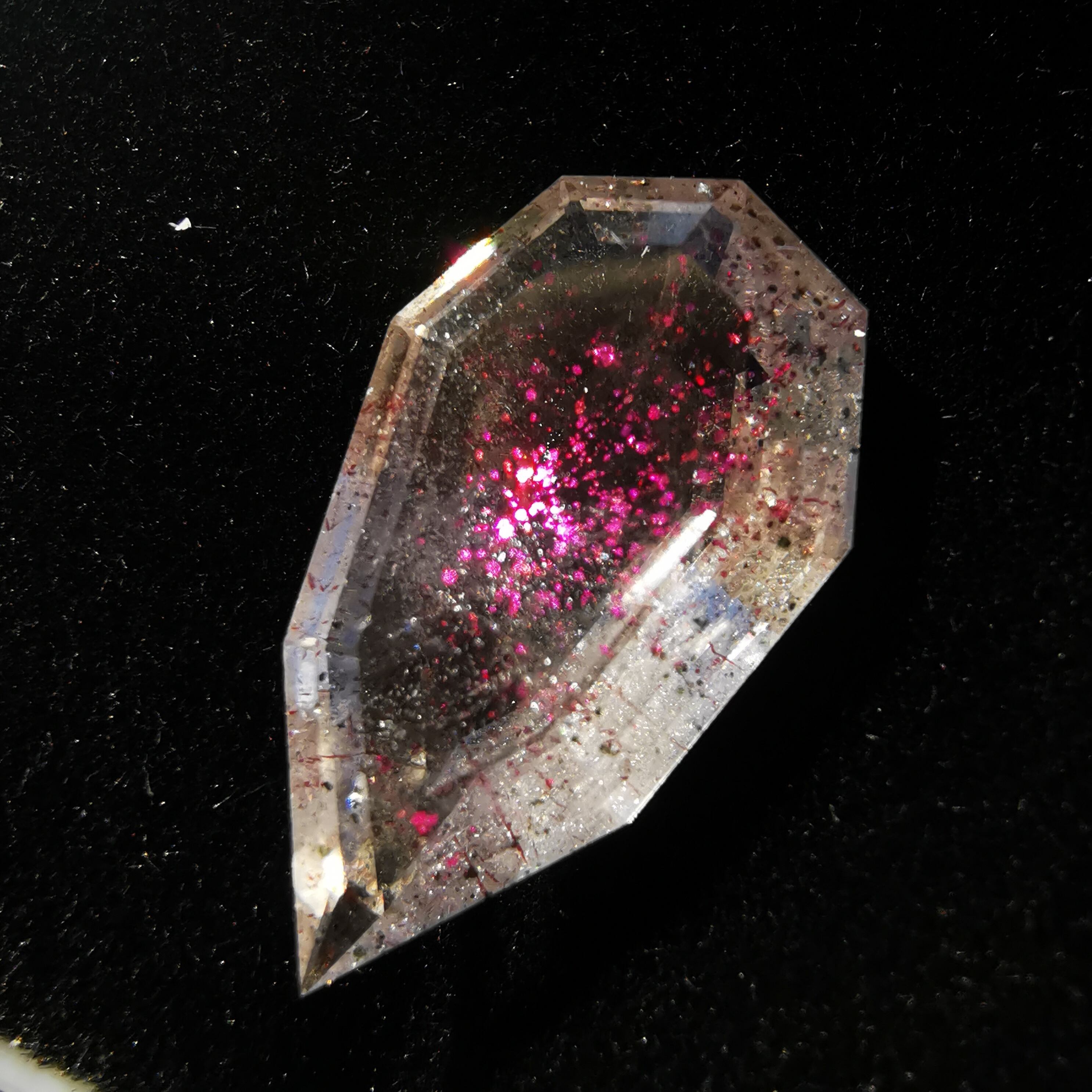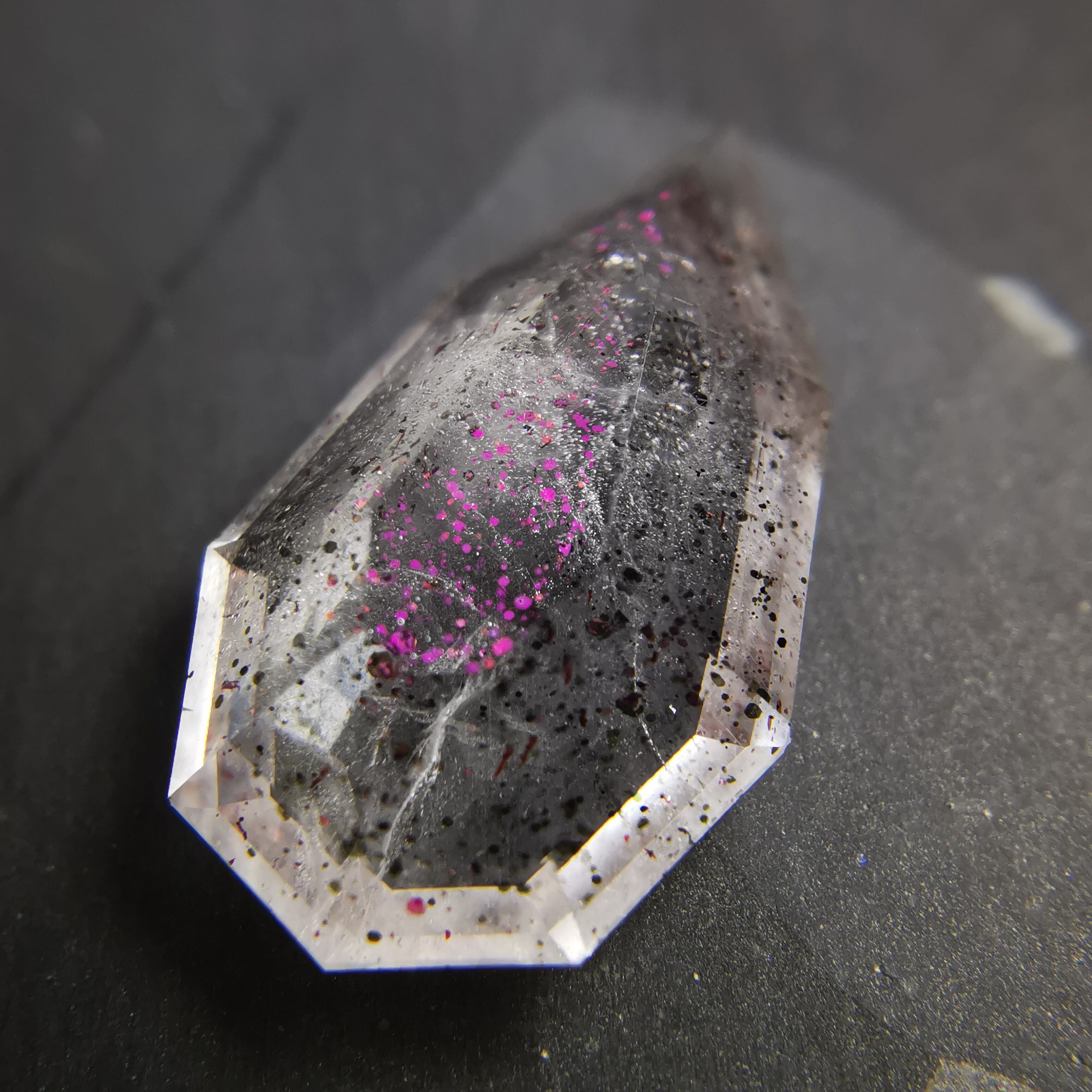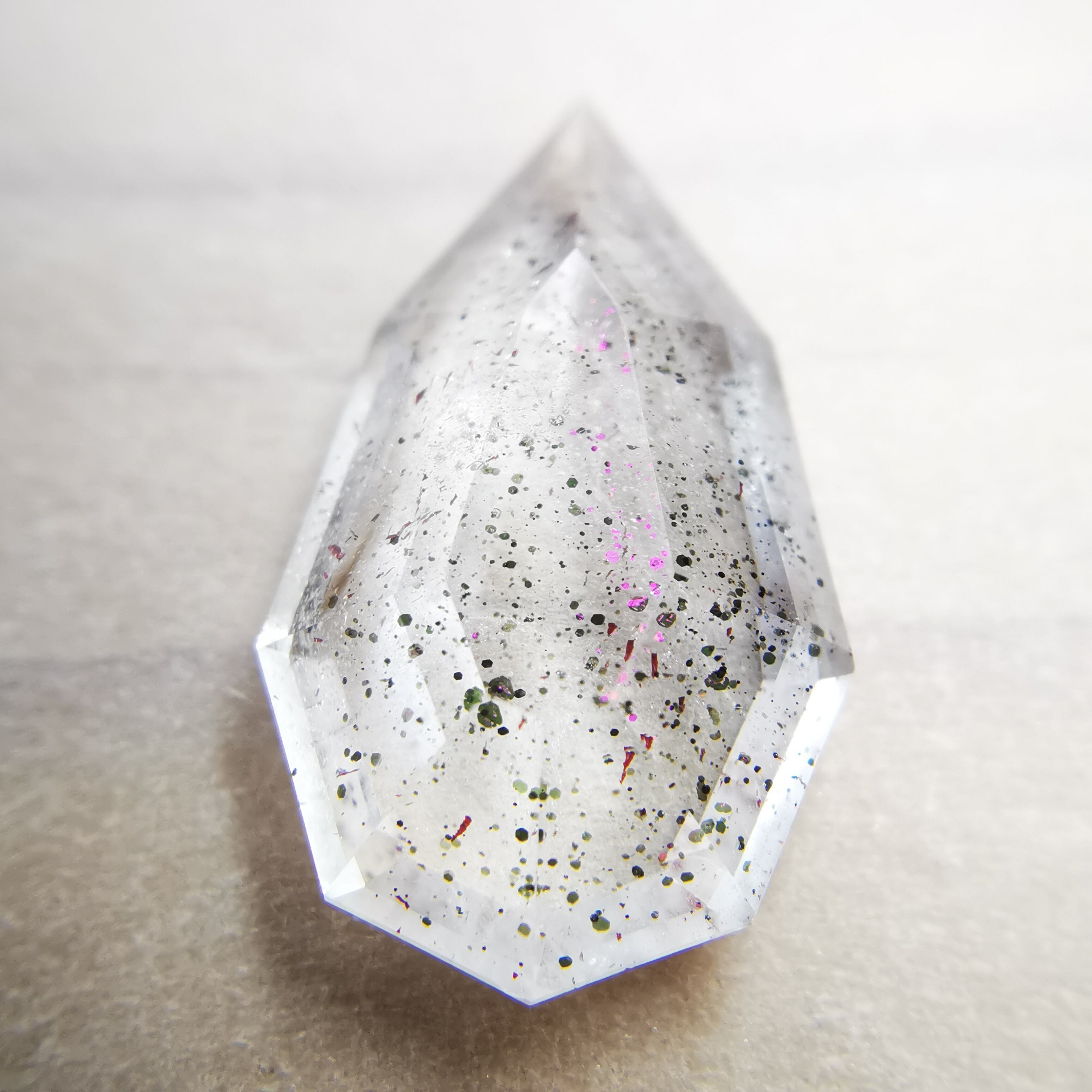 ショッキングピンクのラメ/コべライトが、まるでティンカーベルが振りまく魔法の粉のようなので、ティンカーベルクォーツと呼ばれています。