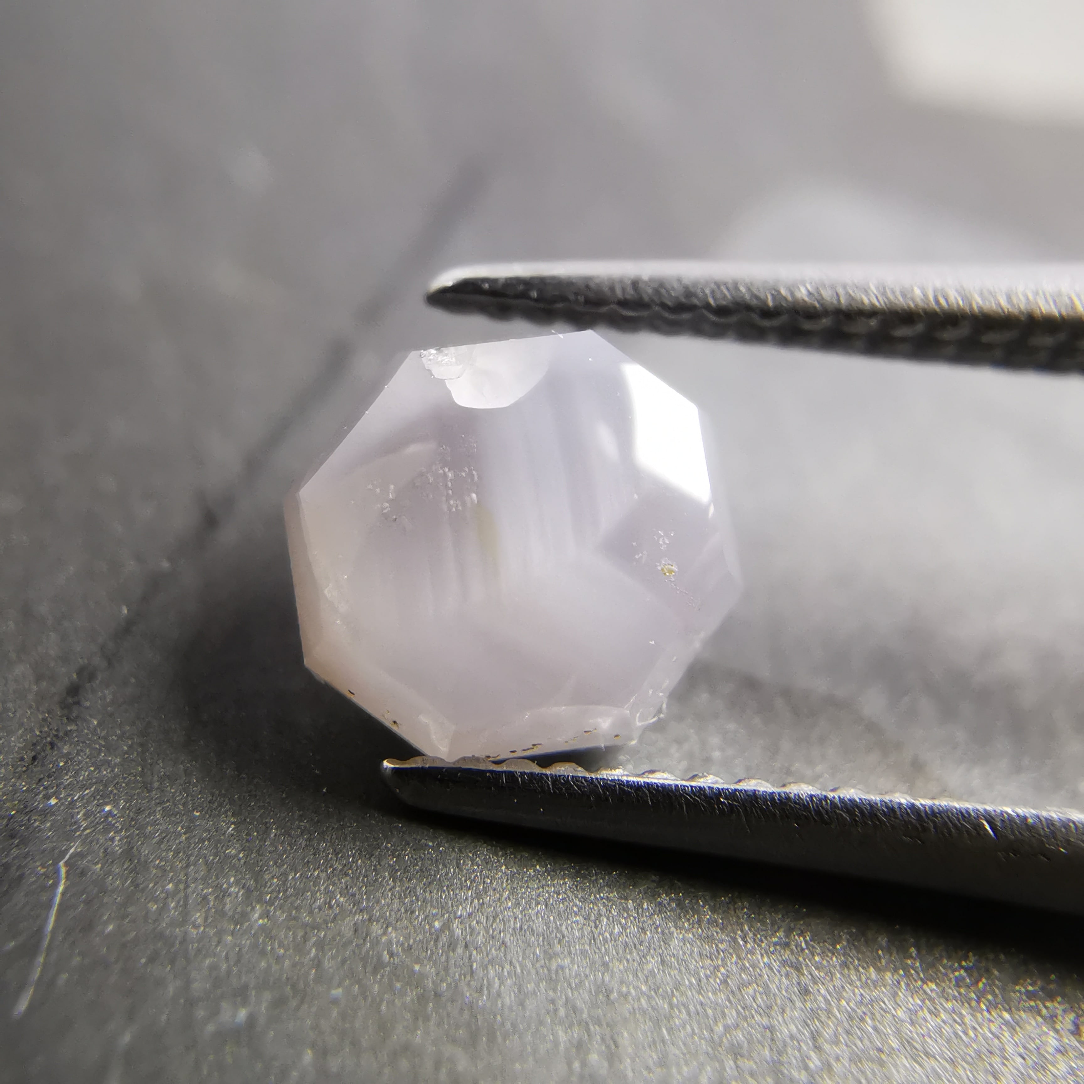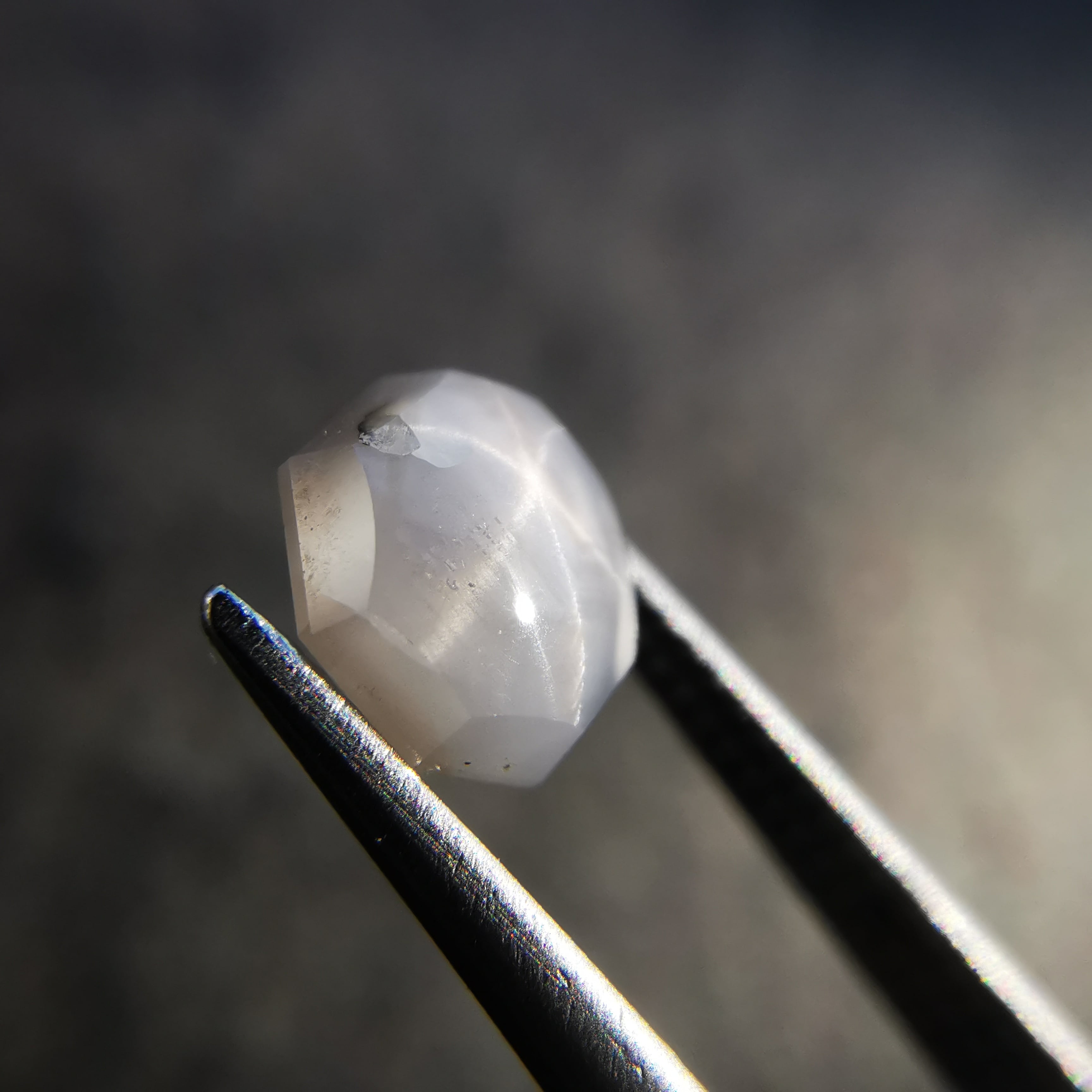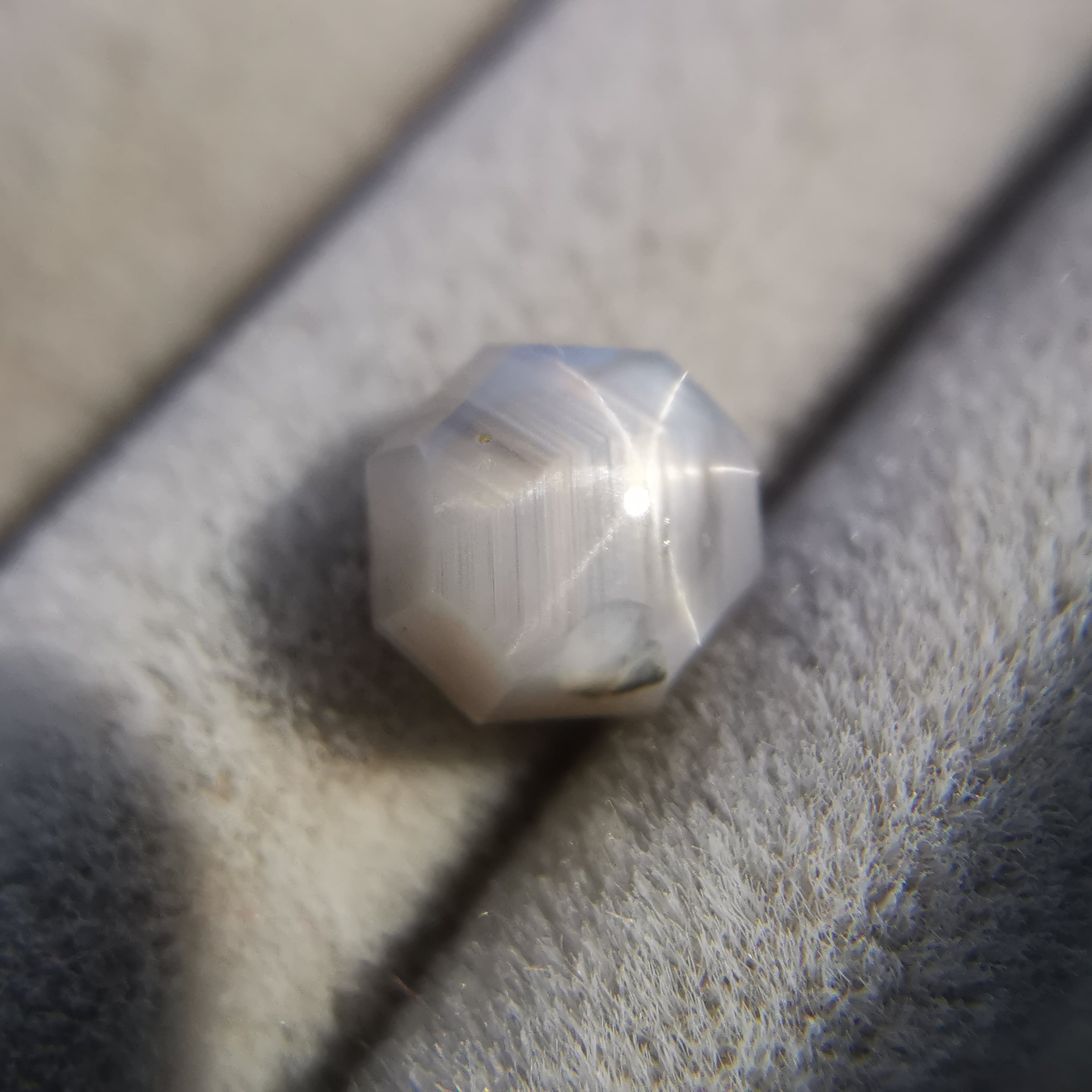 スターサファイアと言えば、カボションカットばかりですが、スターを残したままカットにも個性を出したいと、小粒のスターサファイアを八角形にリカットしました。