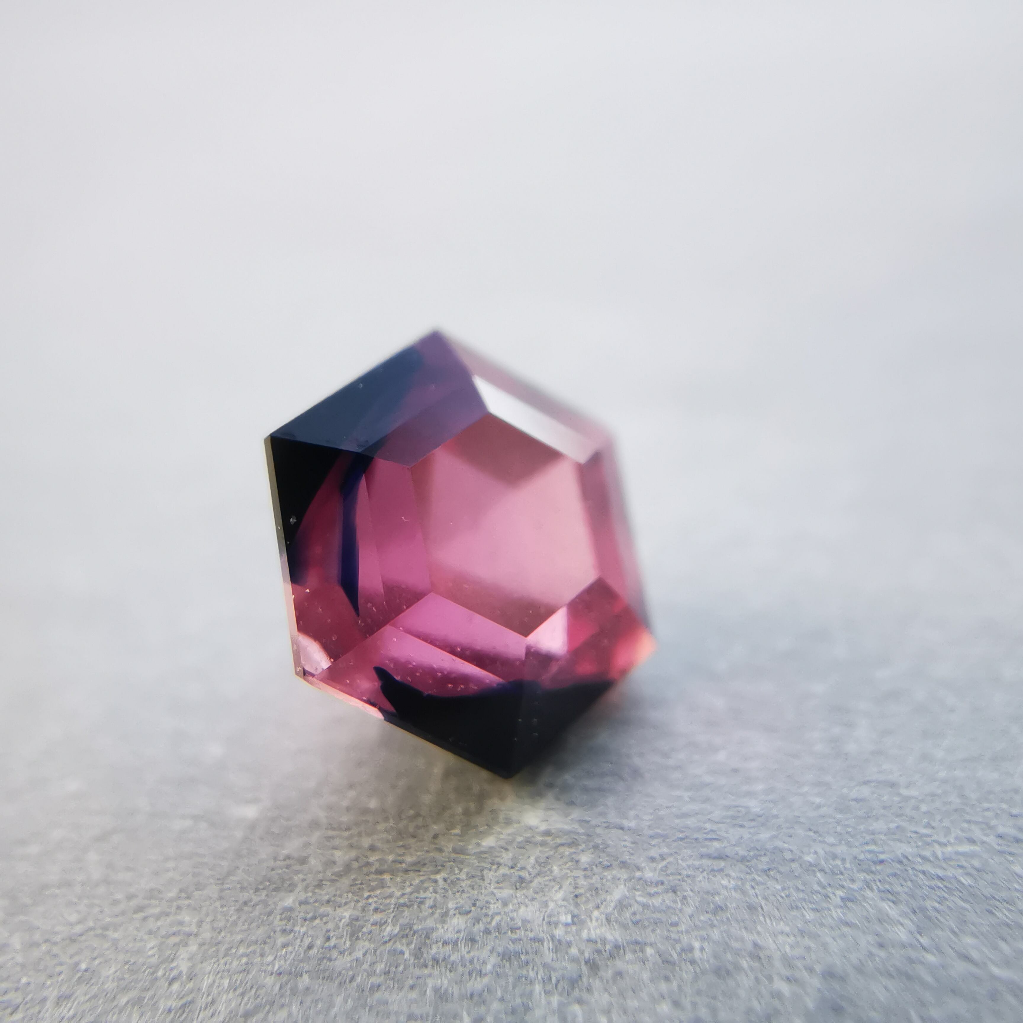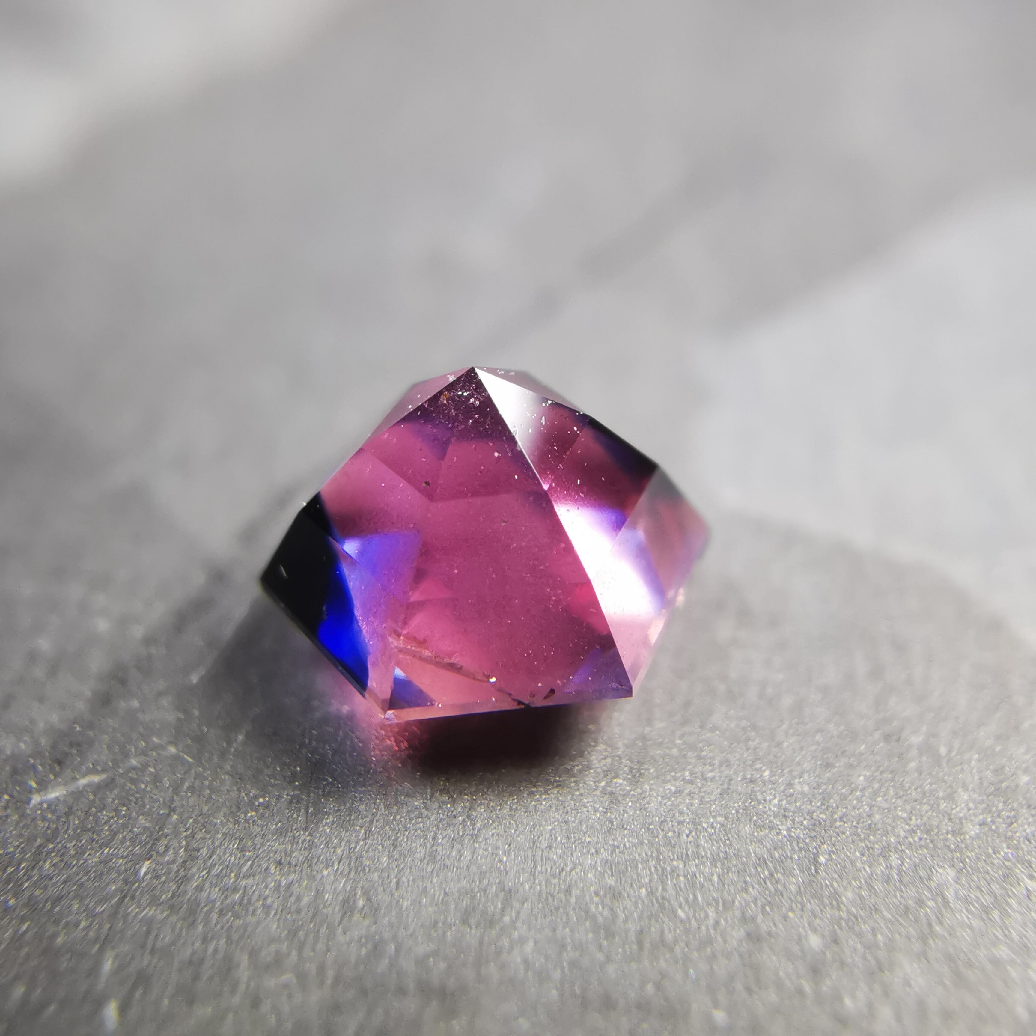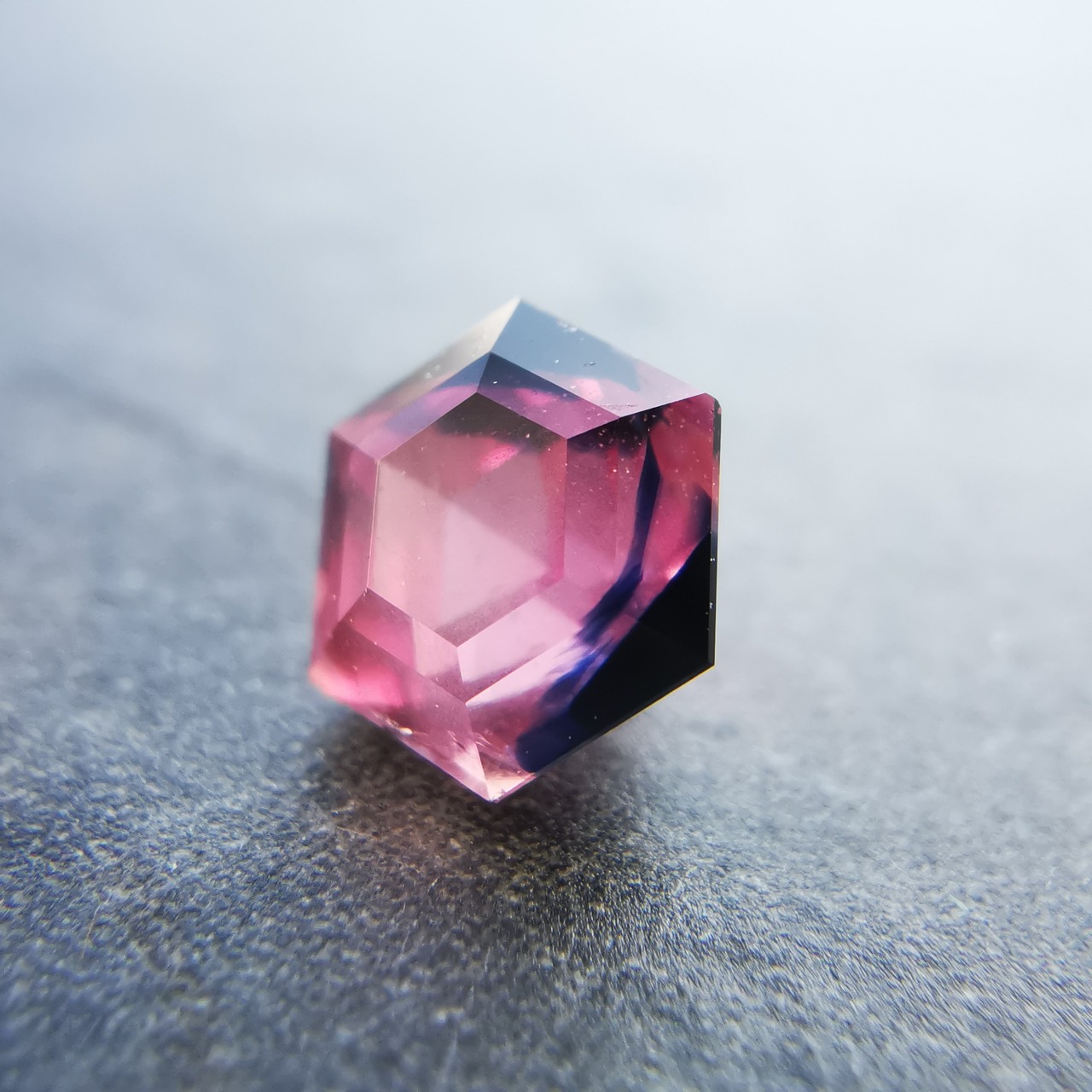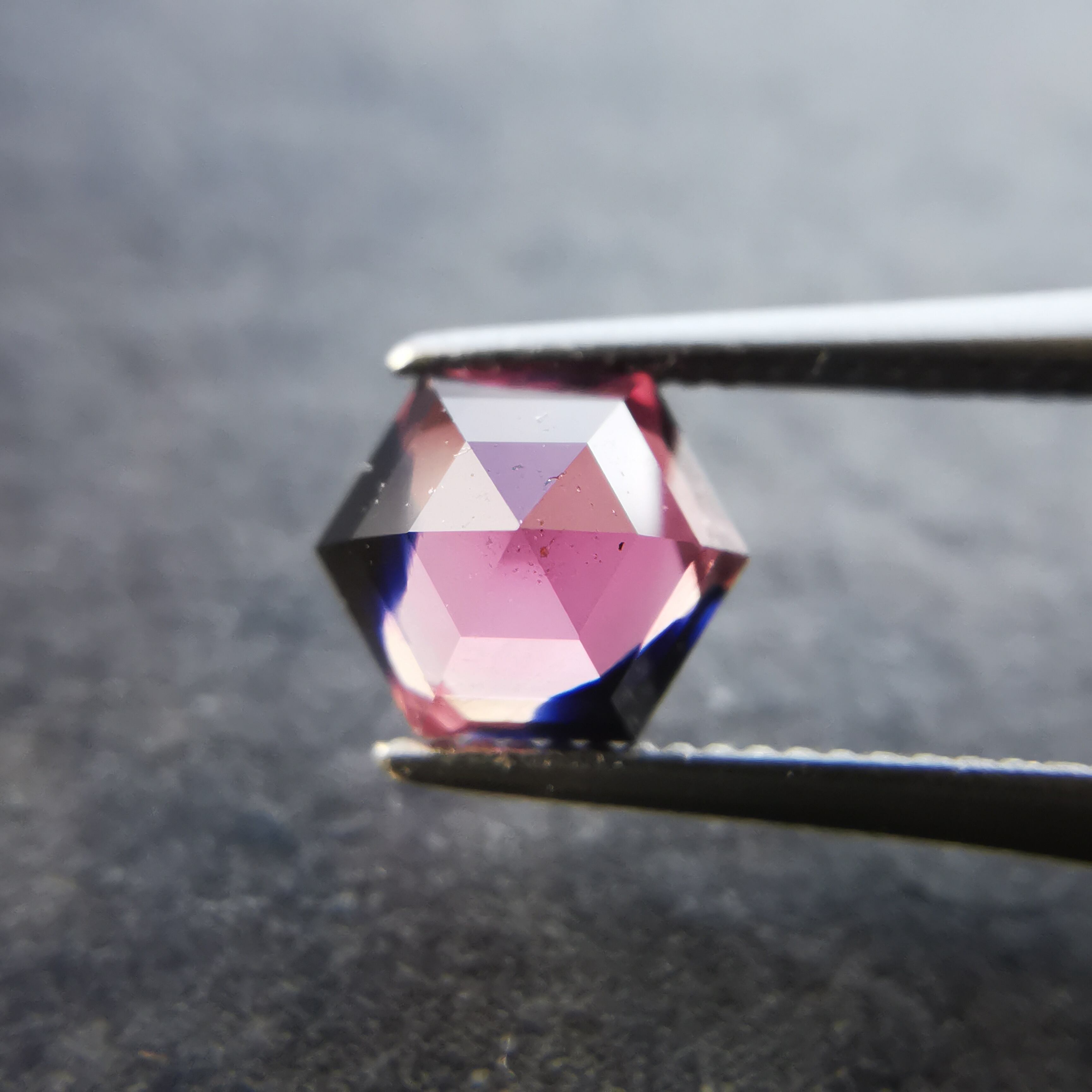 灰みのシクラメンピンクと、極暗い青/濃藍のバイカラーのサファイアです。