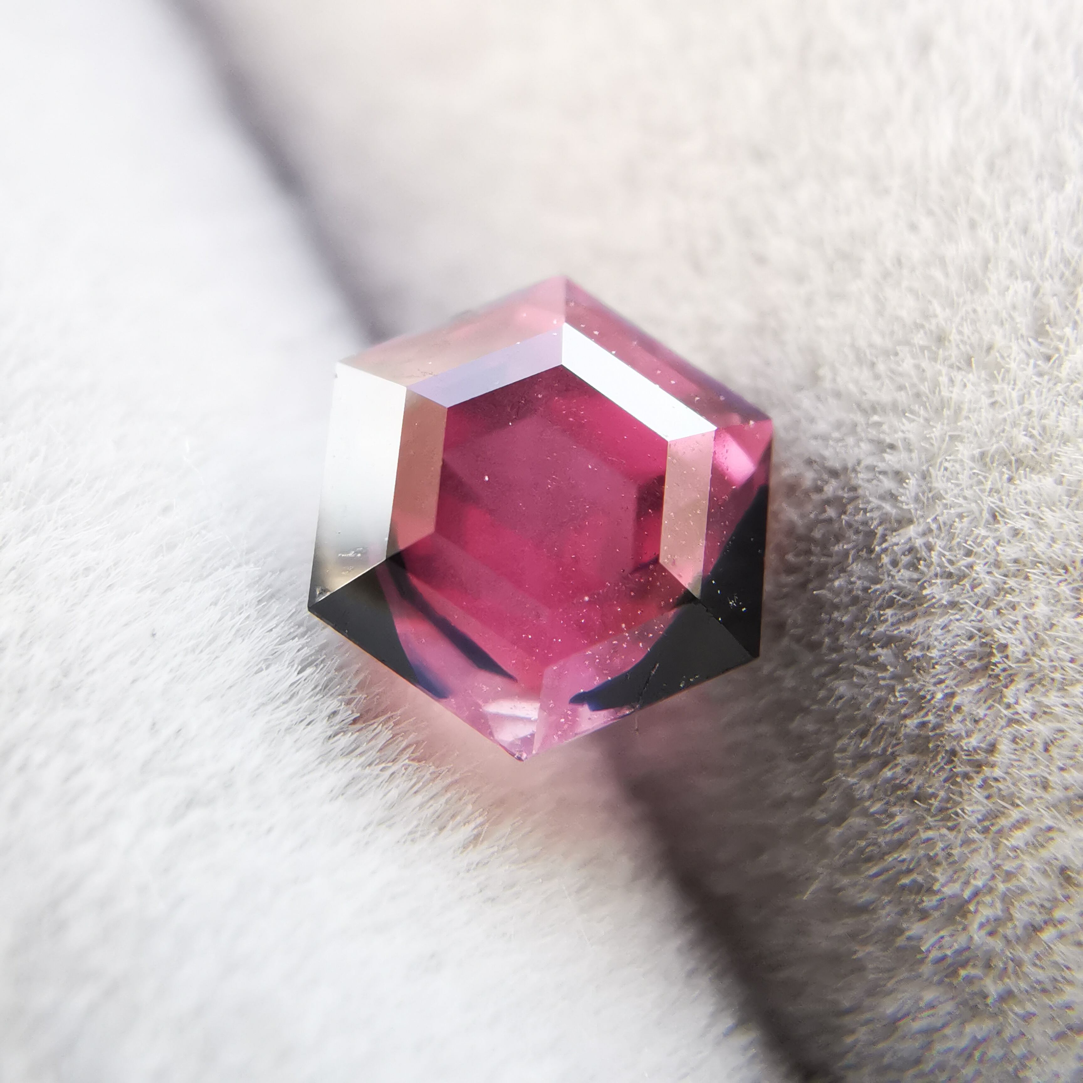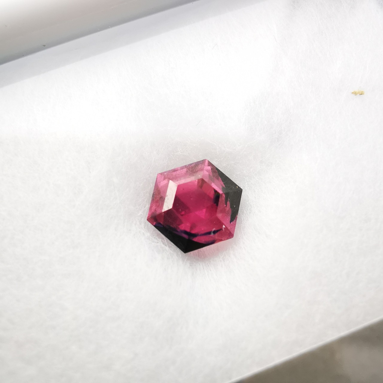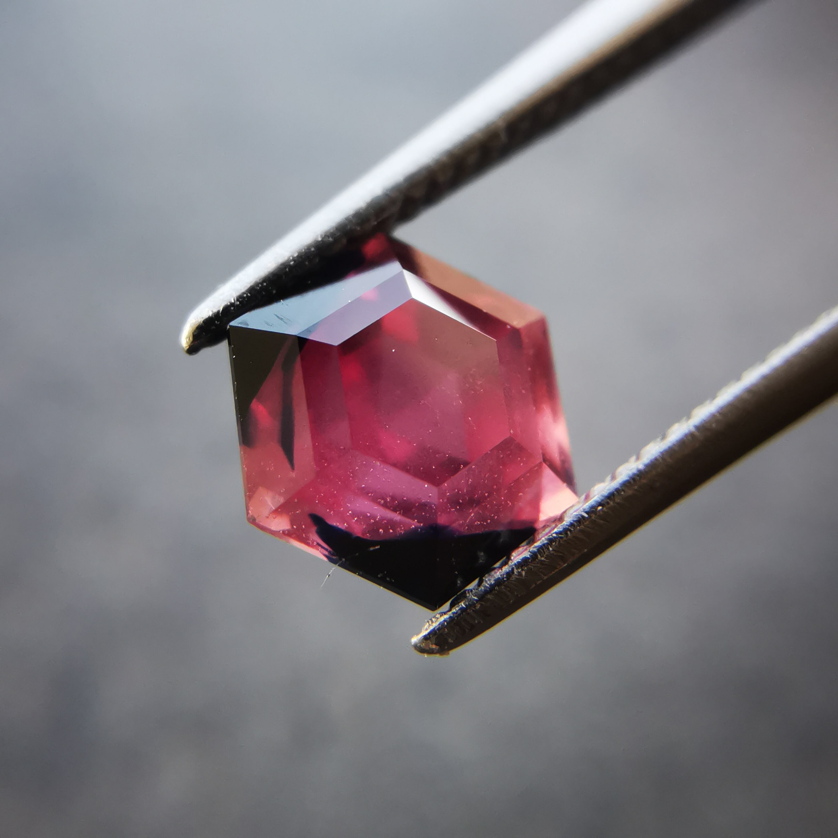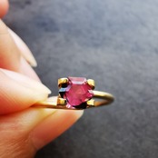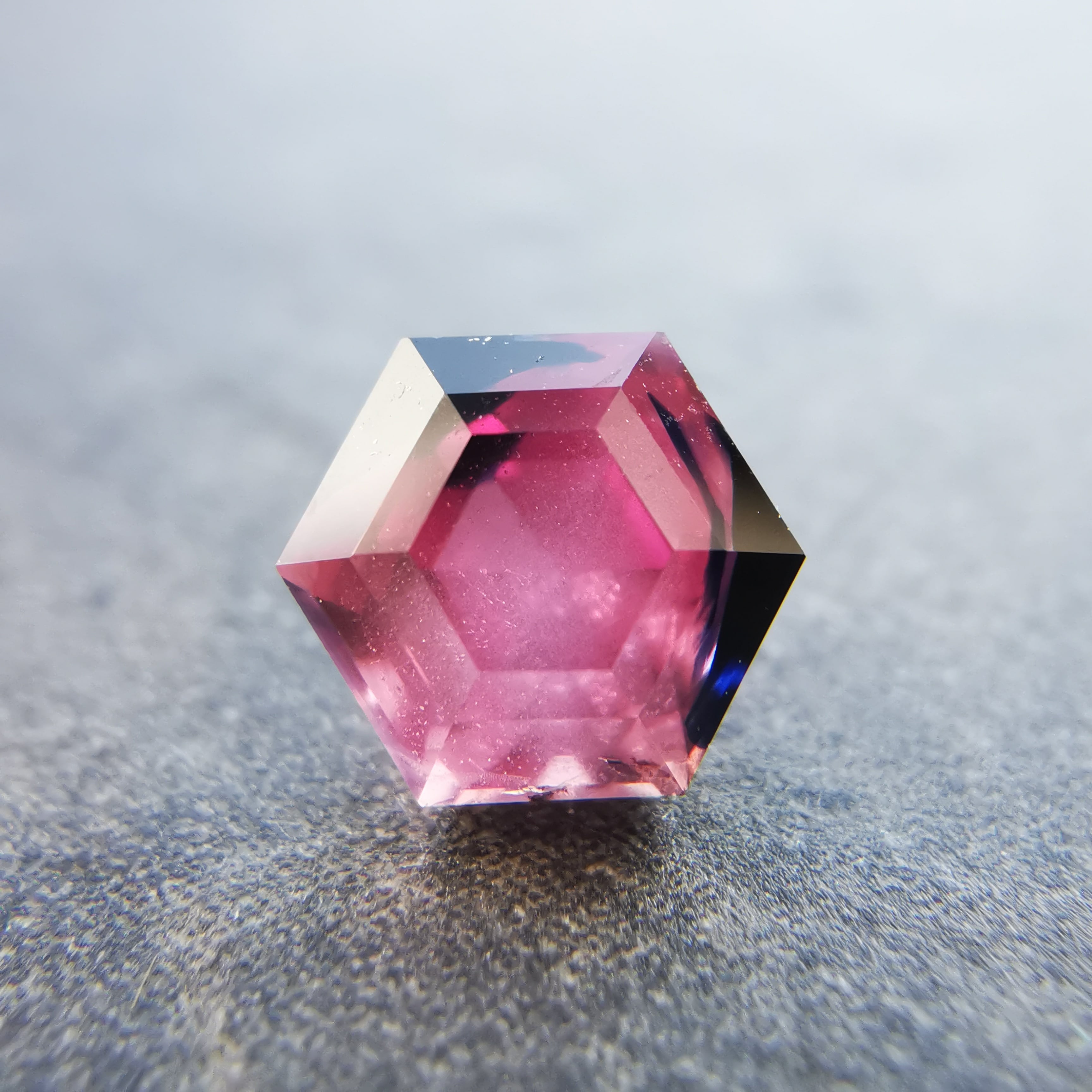 灰みのシクラメンピンクと、極暗い青/濃藍のバイカラーのサファイアです。