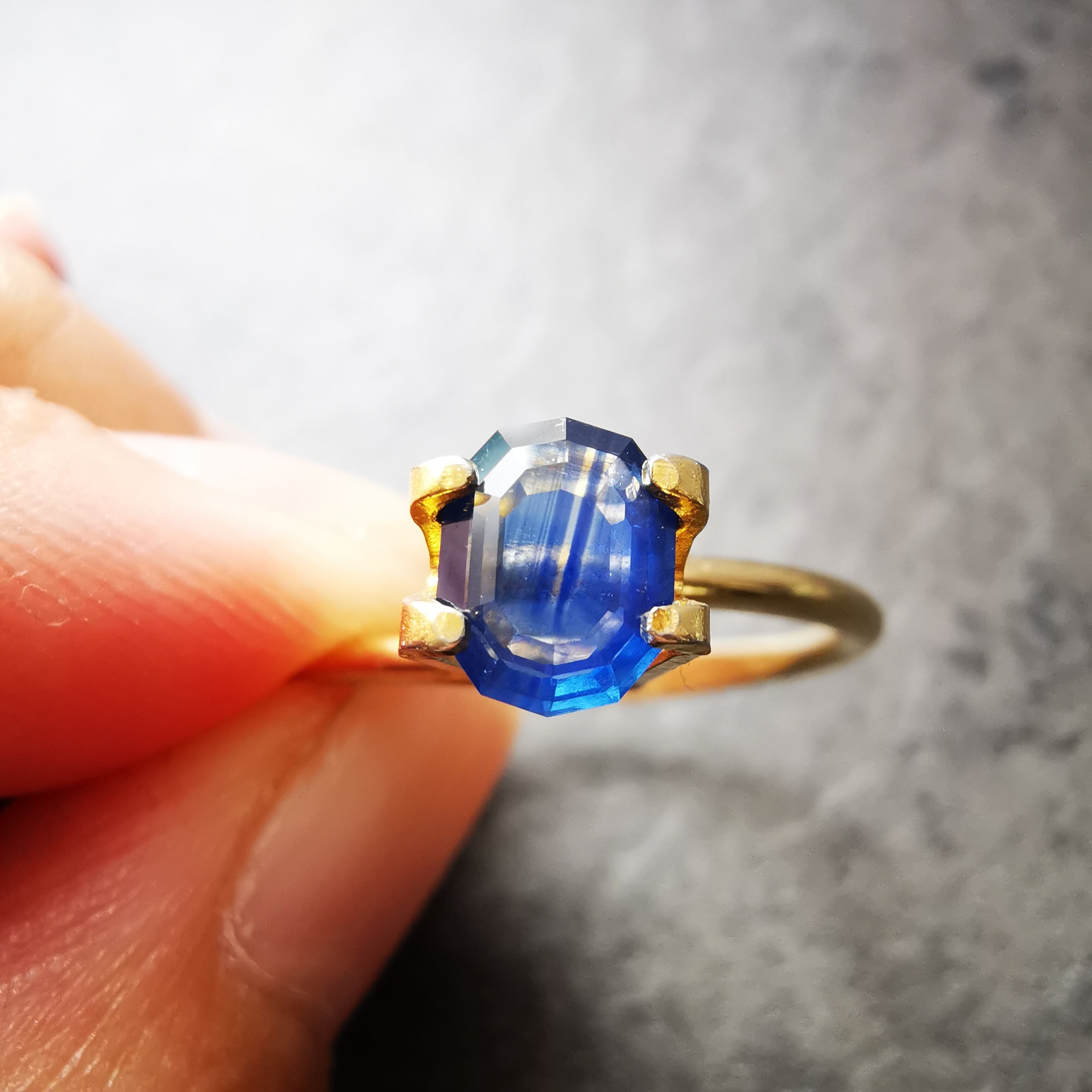 少しもやっとしたサファイアブルー、ポートレイトカットの一石です。