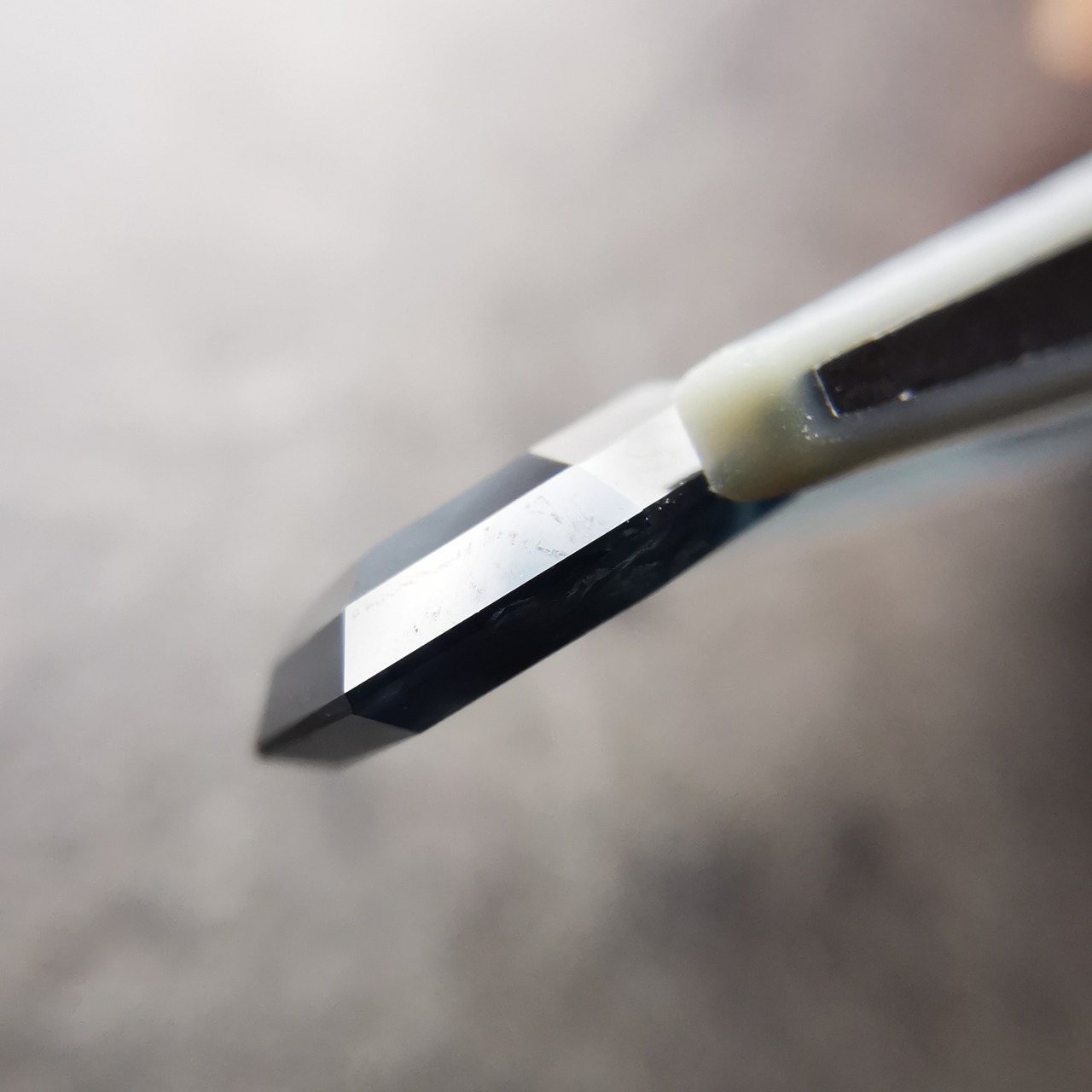 光にかざすと、放射状の結晶構造、トラピッチェを見ることが出来ます。