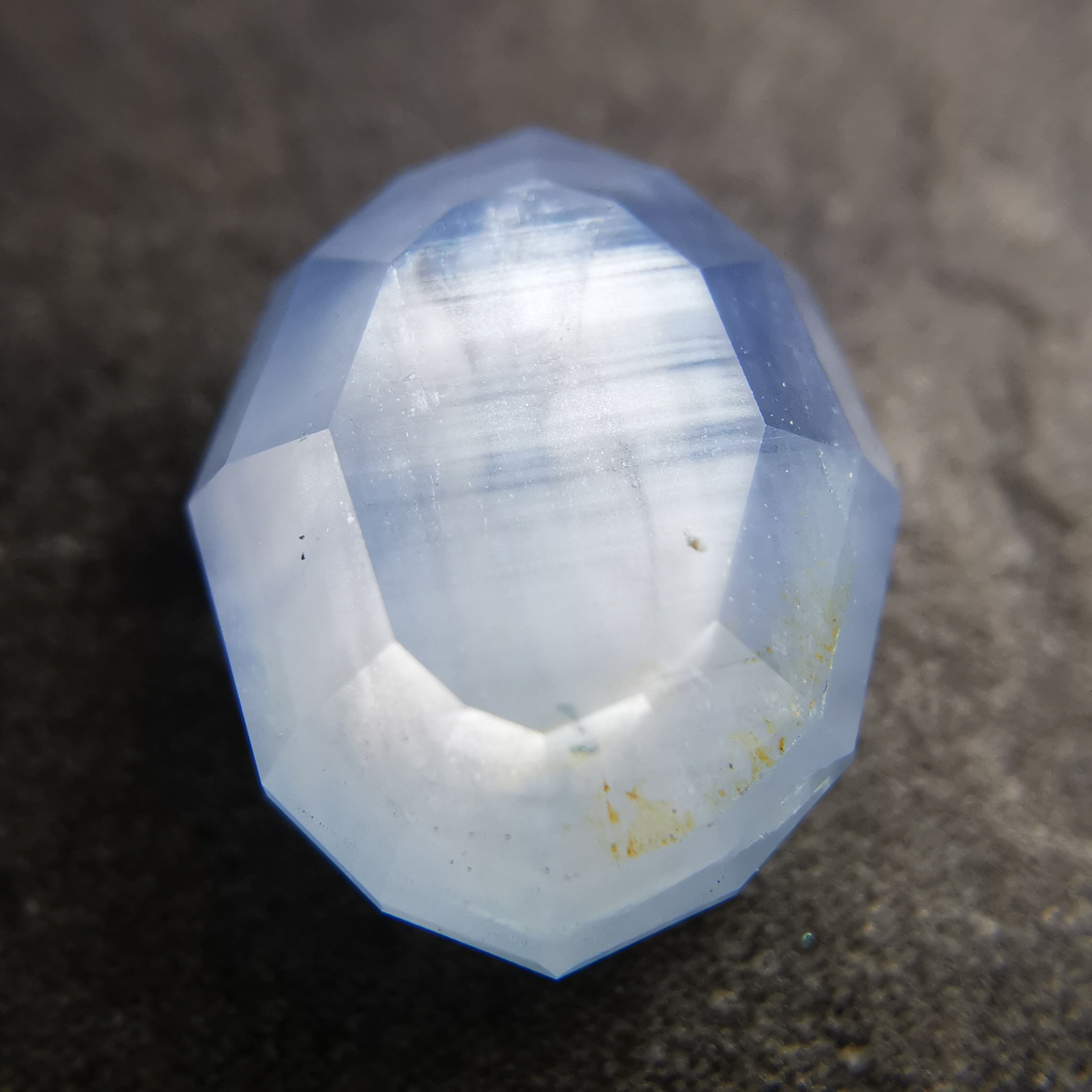 とても大粒のスターサファイアを、多角形のフラットバックカットにリカットしました。