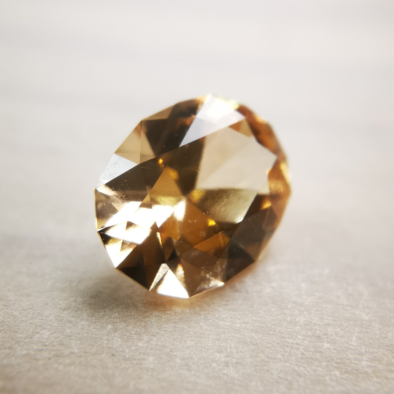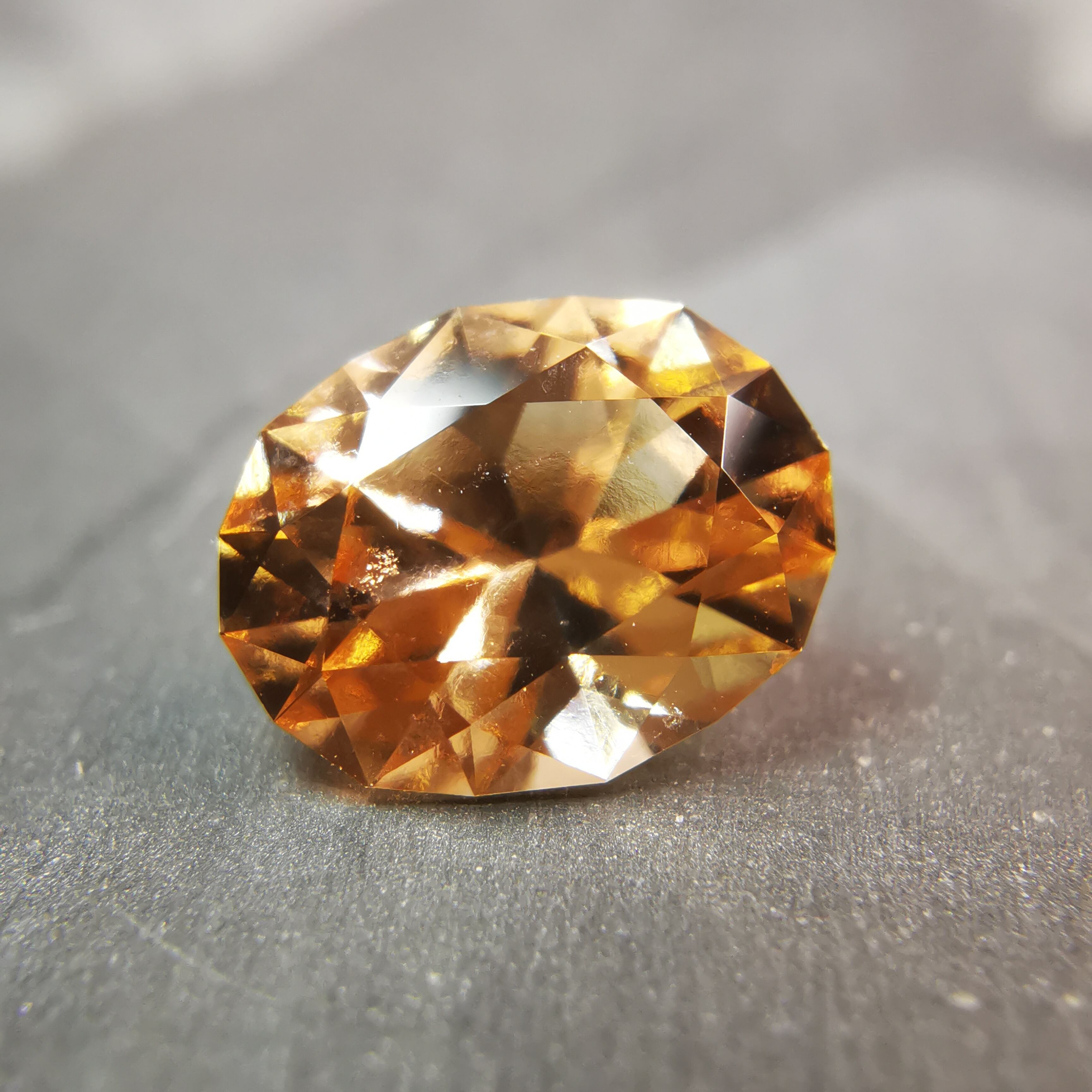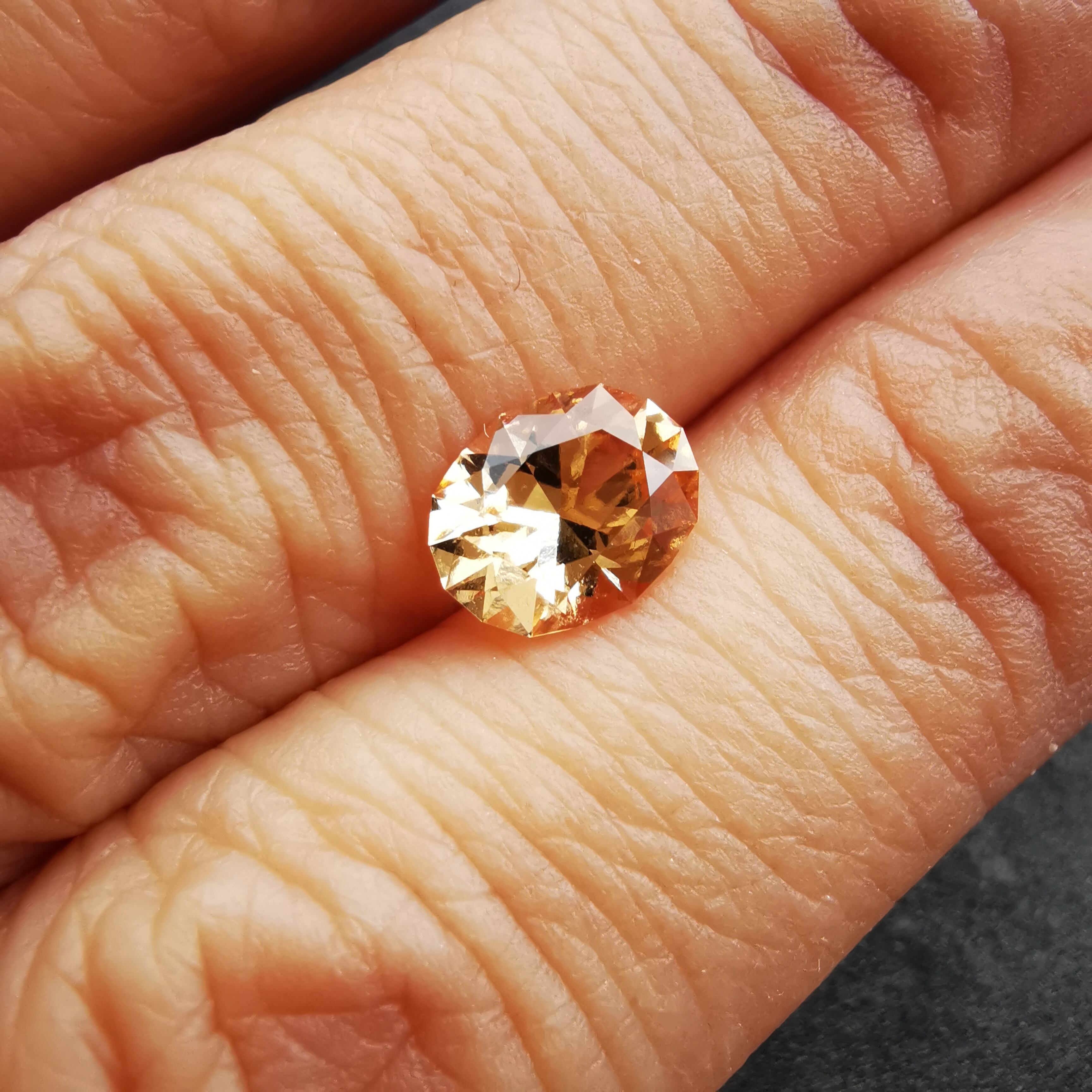柔らかなオレンジ/アプリコット色が優しげな印象で、とても明るくきらめく、グロシュラー(ヘソナイト)ガーネットです。