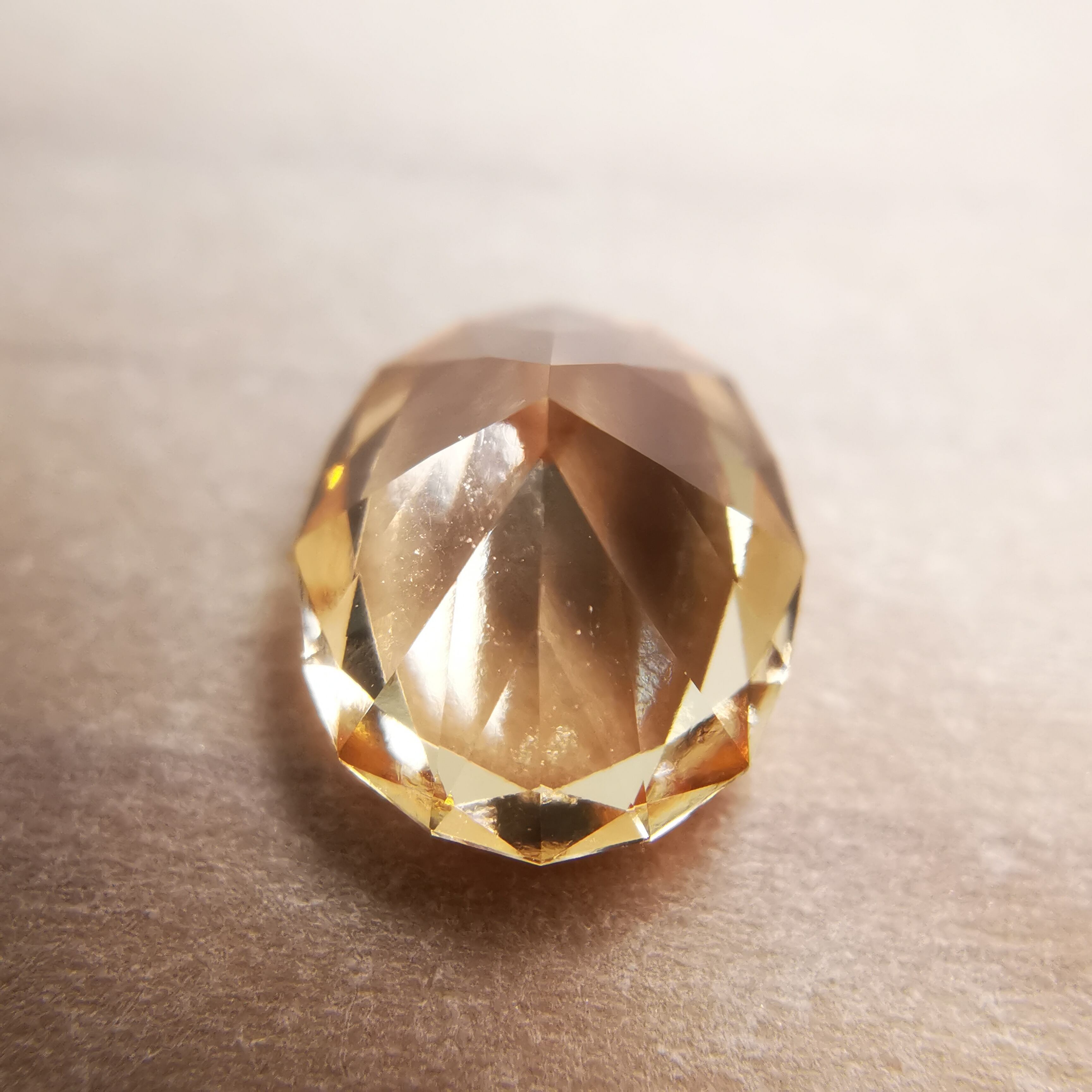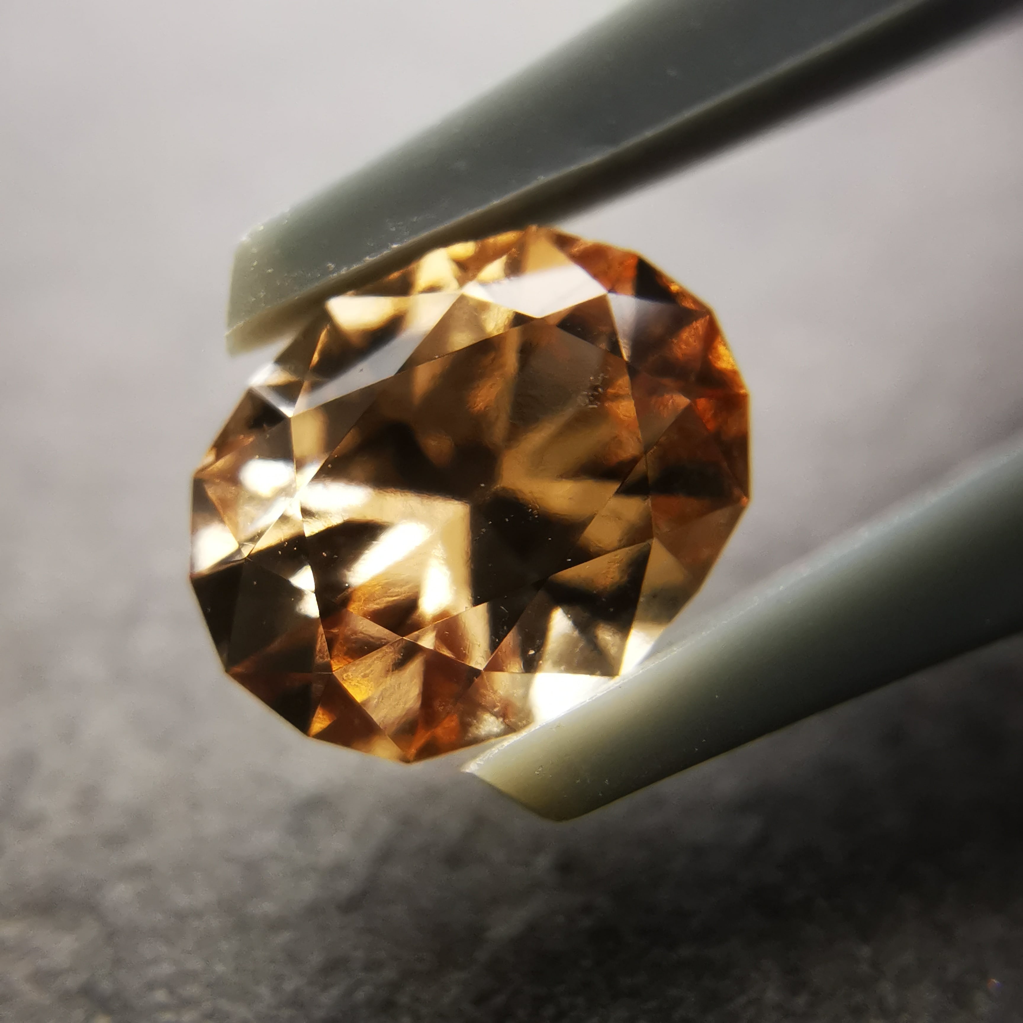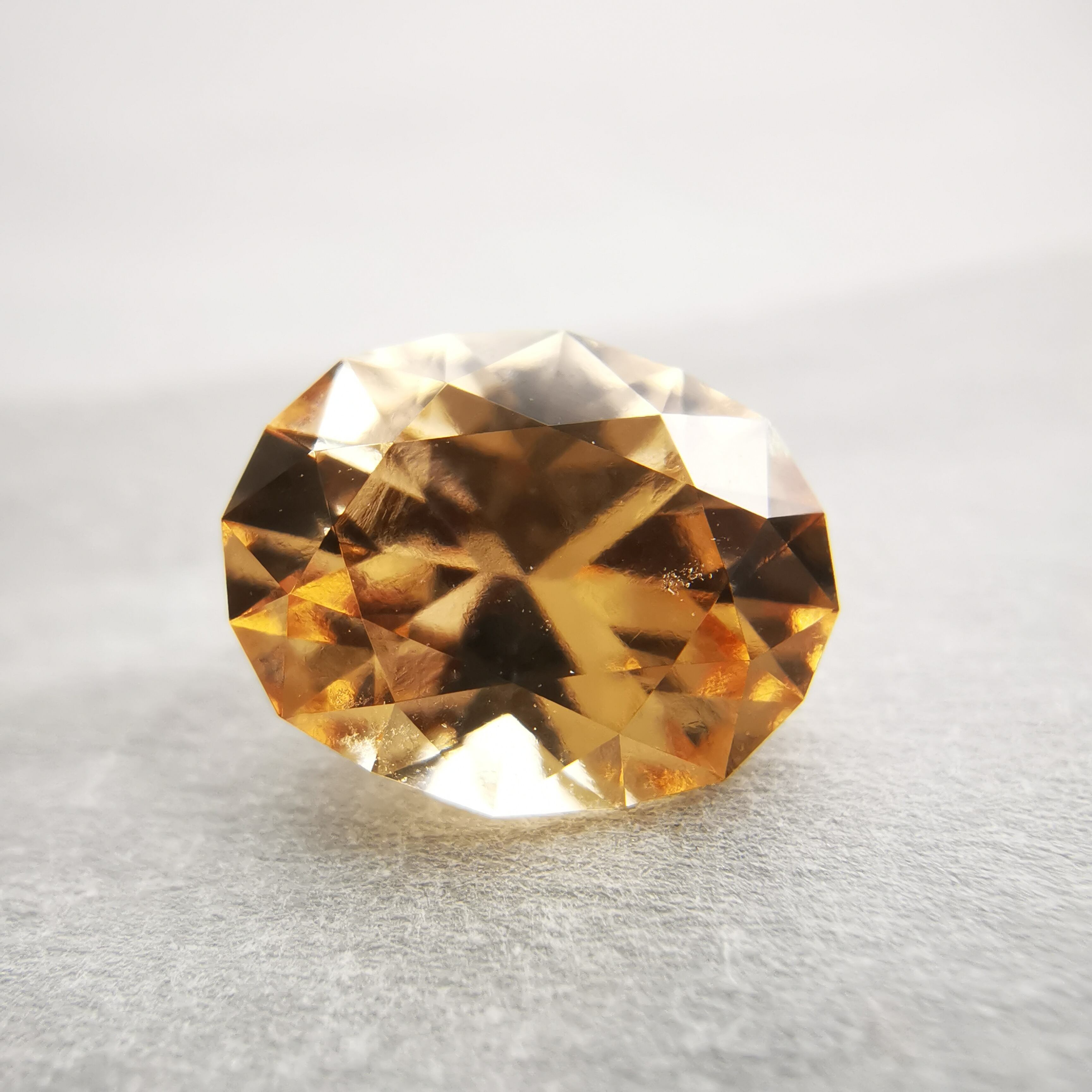 柔らかなオレンジ/アプリコット色が優しげな印象で、とても明るくきらめく、グロシュラー(ヘソナイト)ガーネットです。