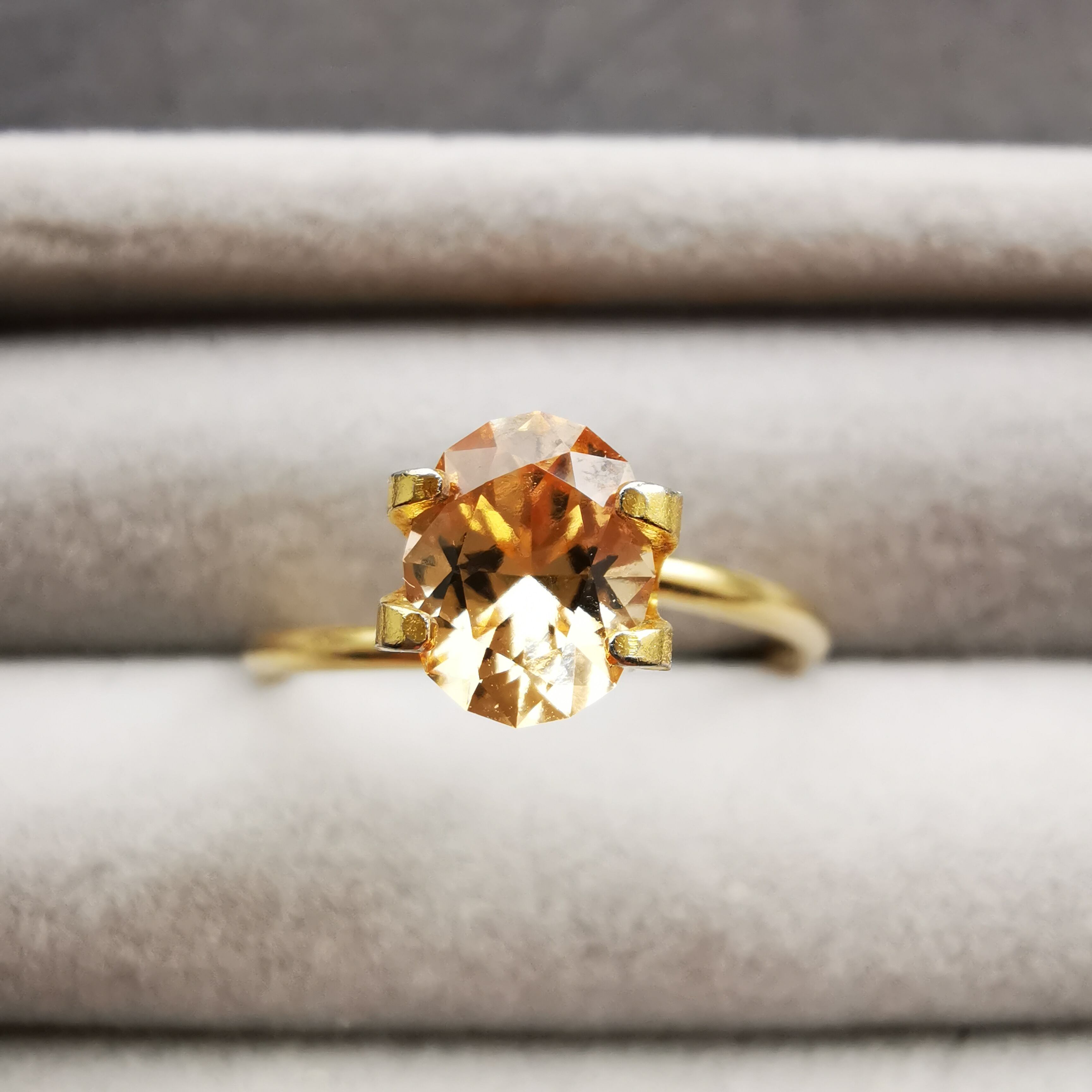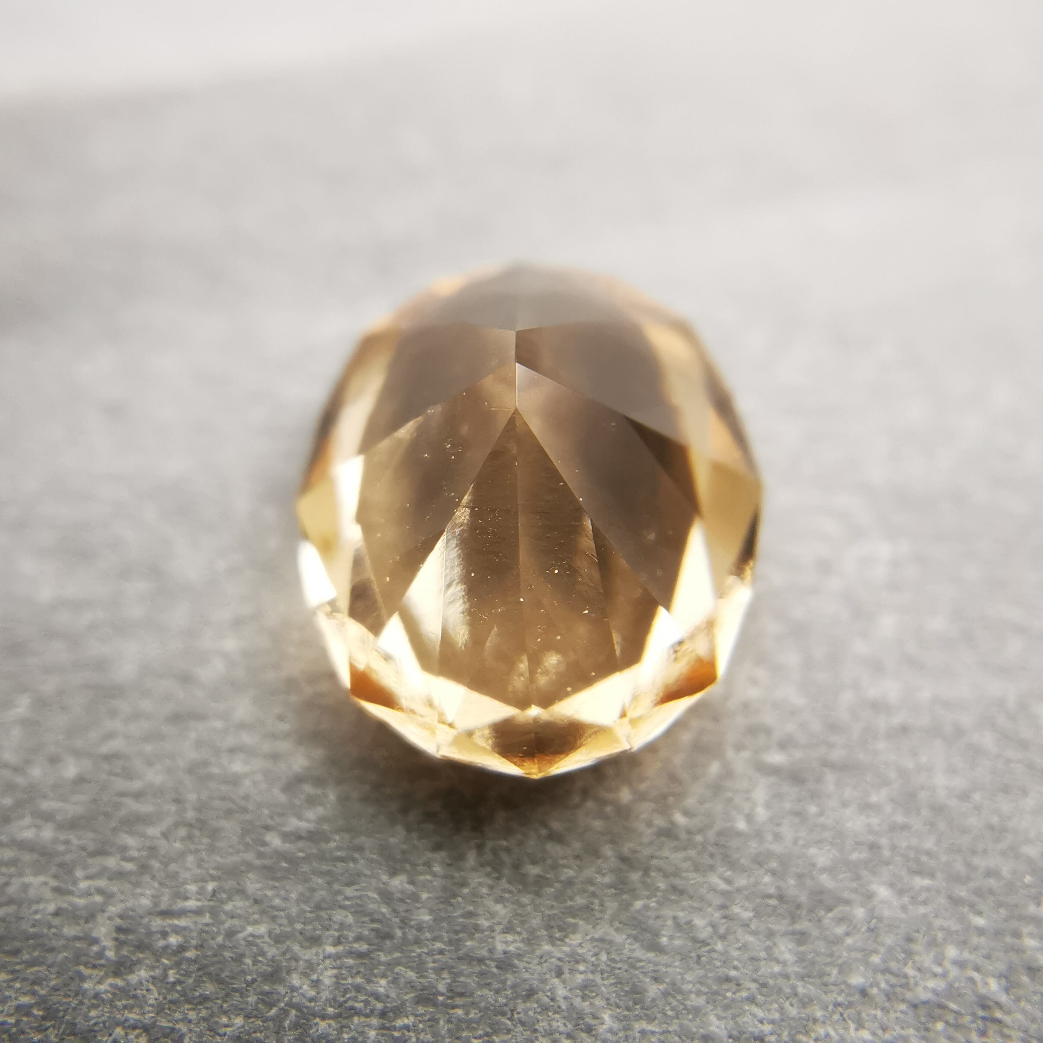 ルーペで見ると、糖蜜状のインクルージョンがもやもやとして、ヘソナイトらしさも感じますが、きらめきには影響がない程度です。