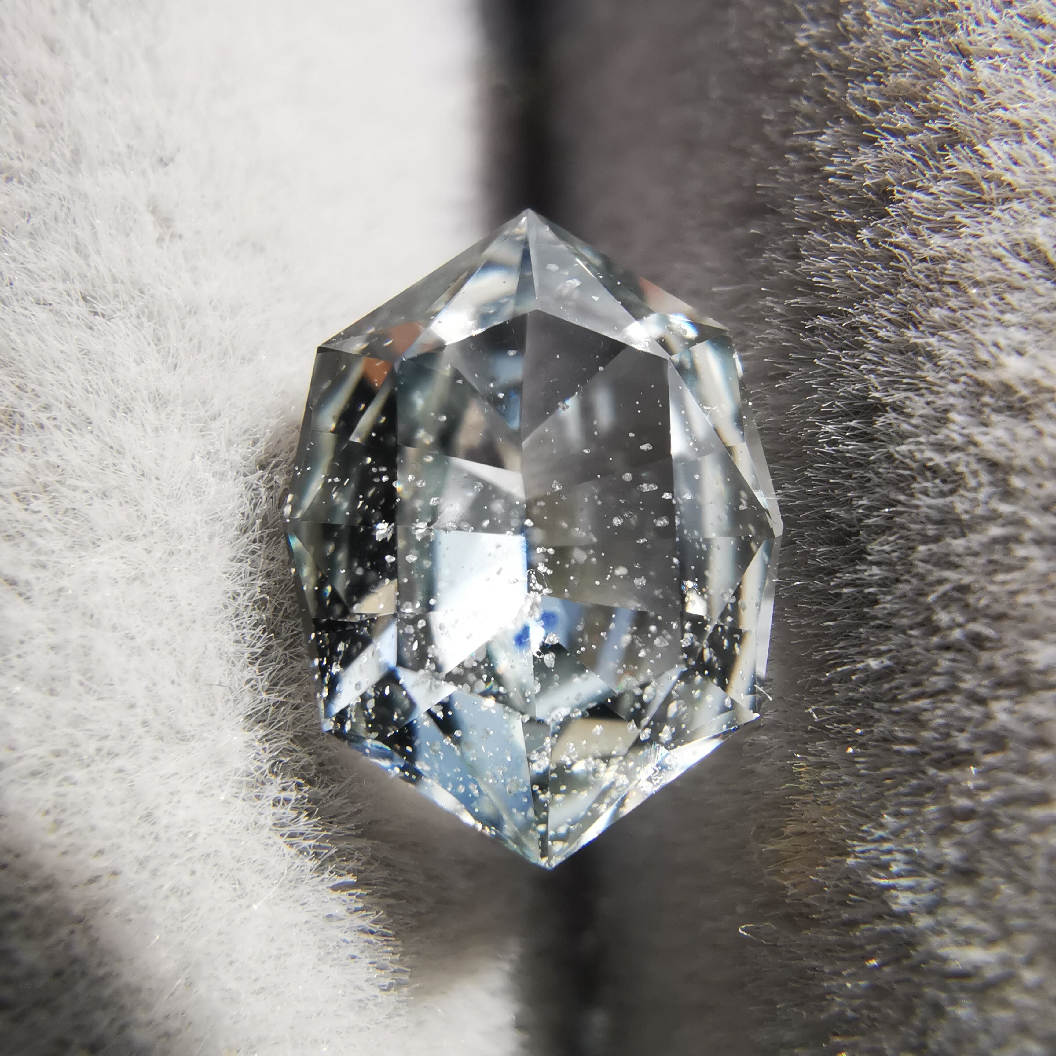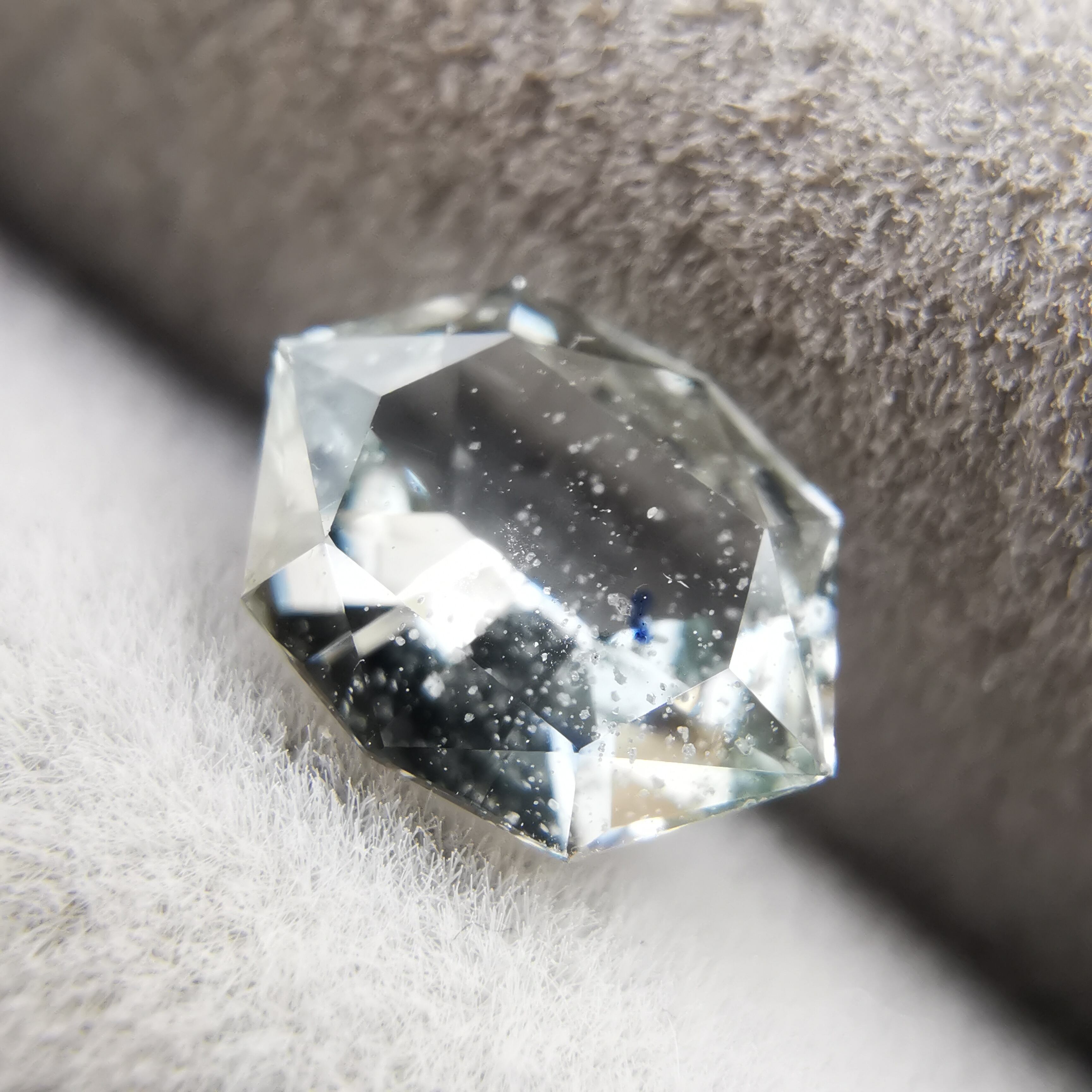これまで、泡のような内包物のサファイアをいくつかご紹介してきましたが、こちらは雪のような内包物のサファイアです。