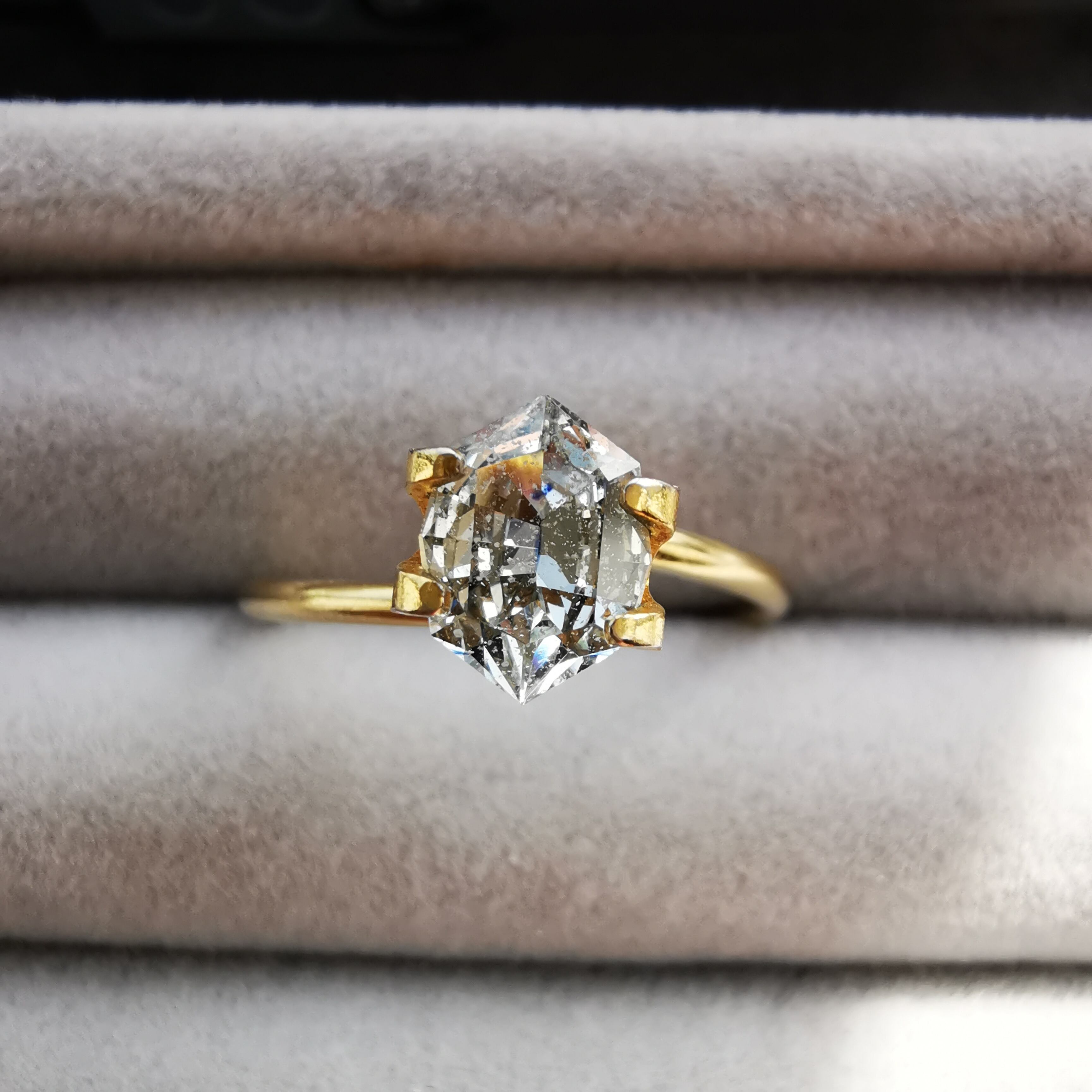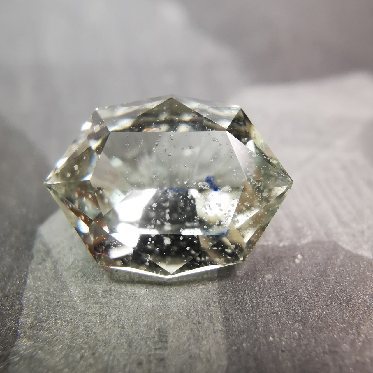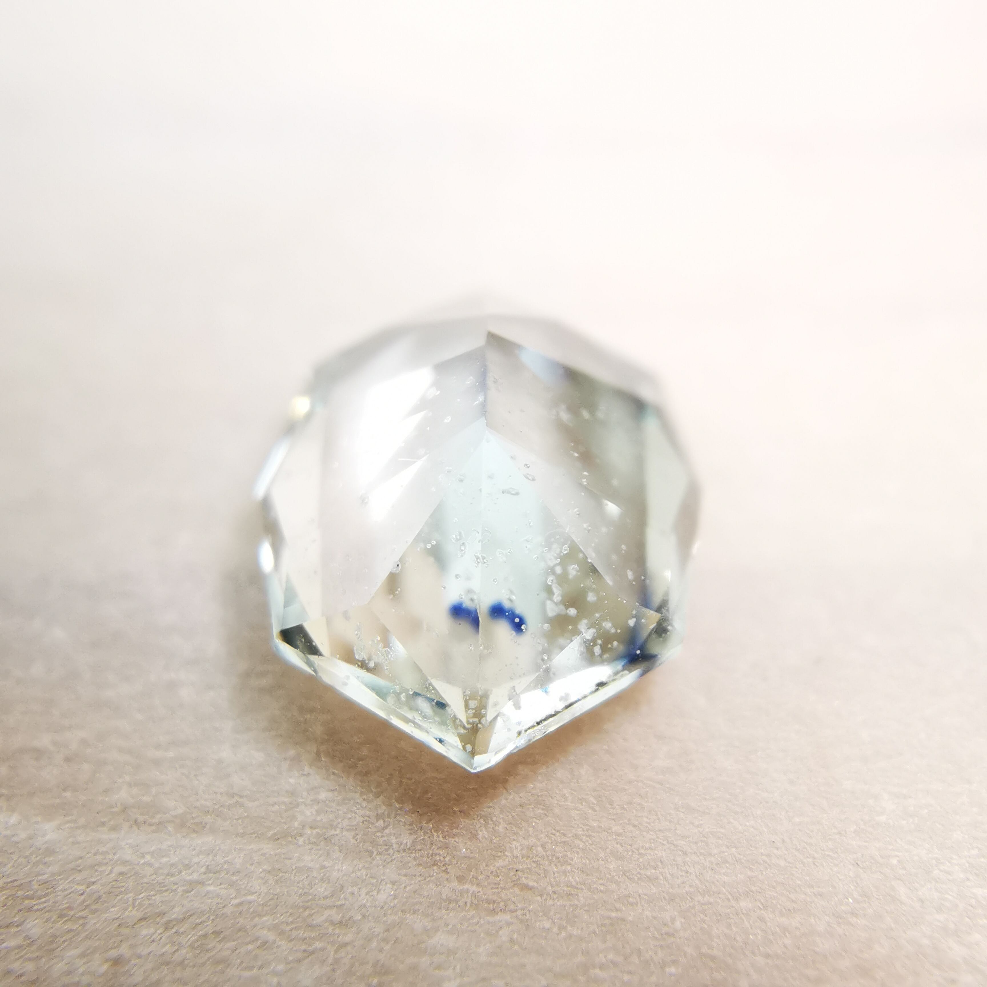 わずかに黄緑みでカラーレスに近いですが、1ヶ所だけちょんとブルーが入った個性的な一石です。