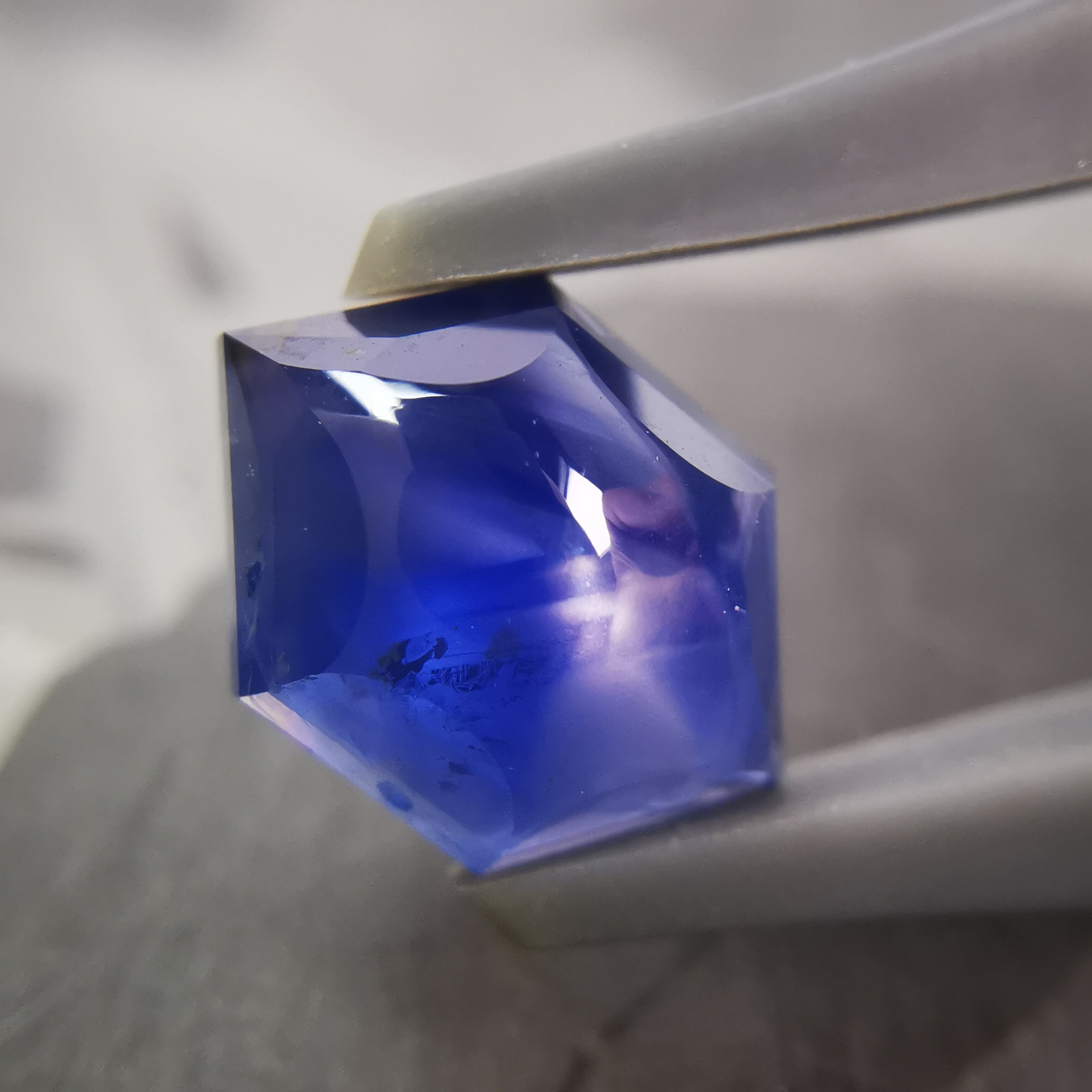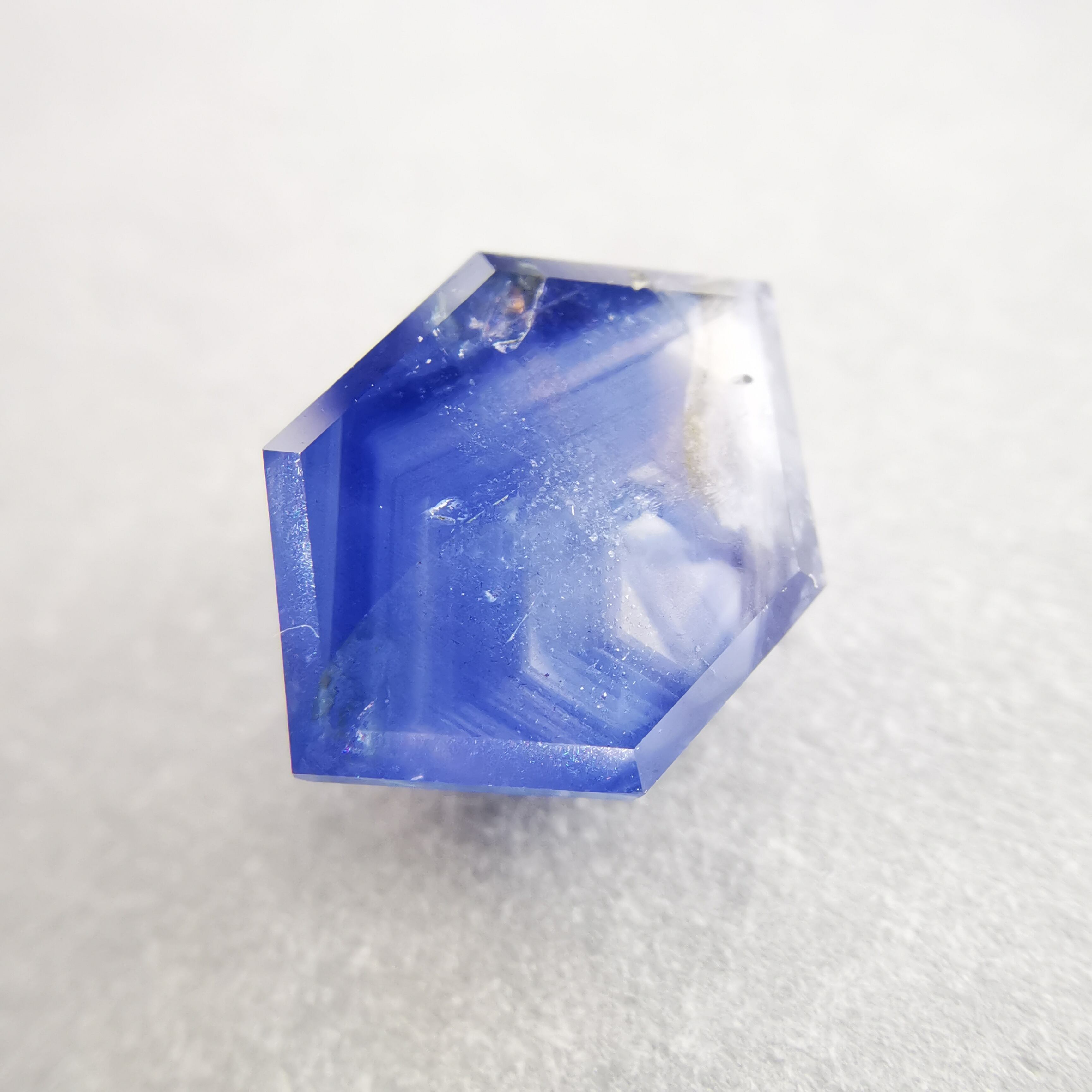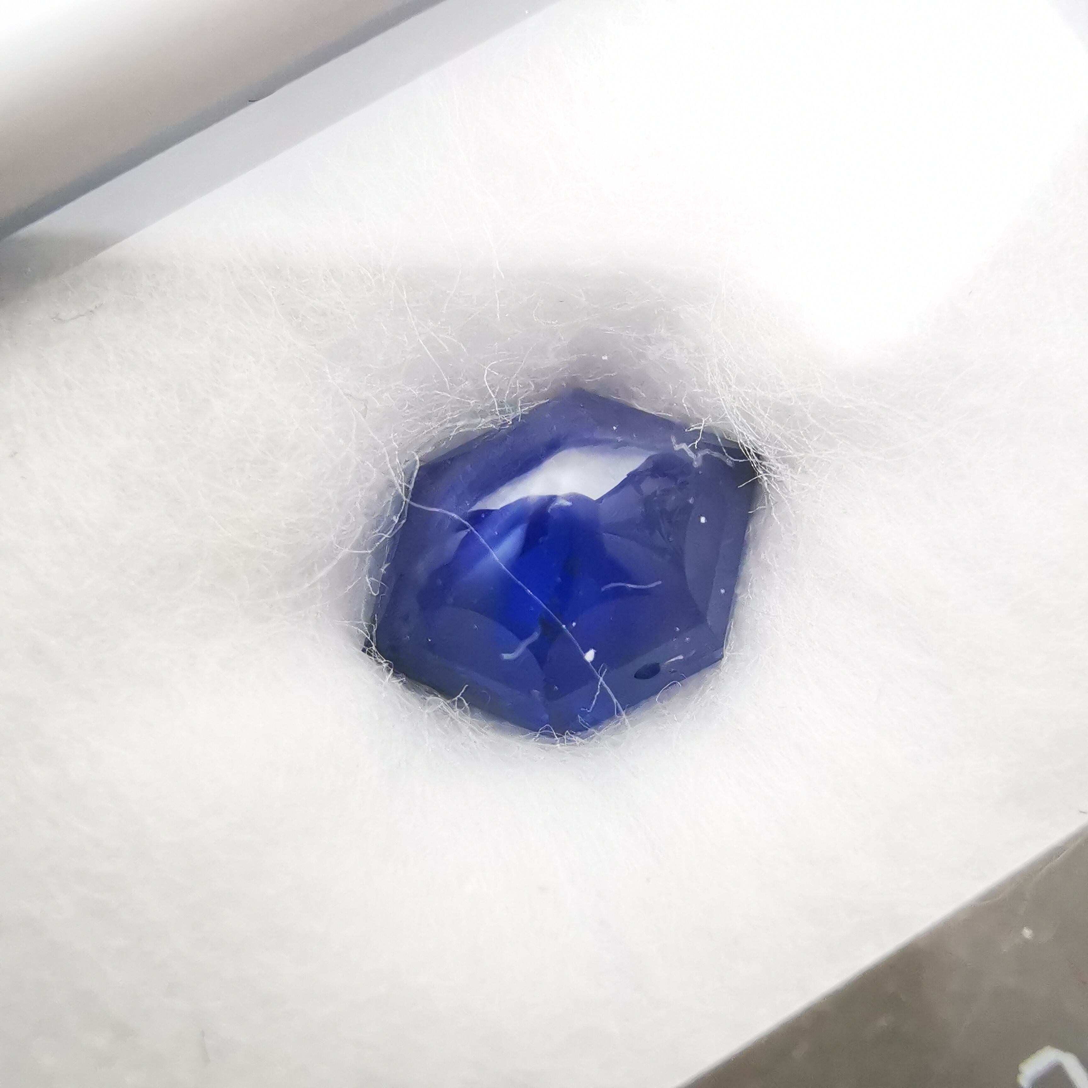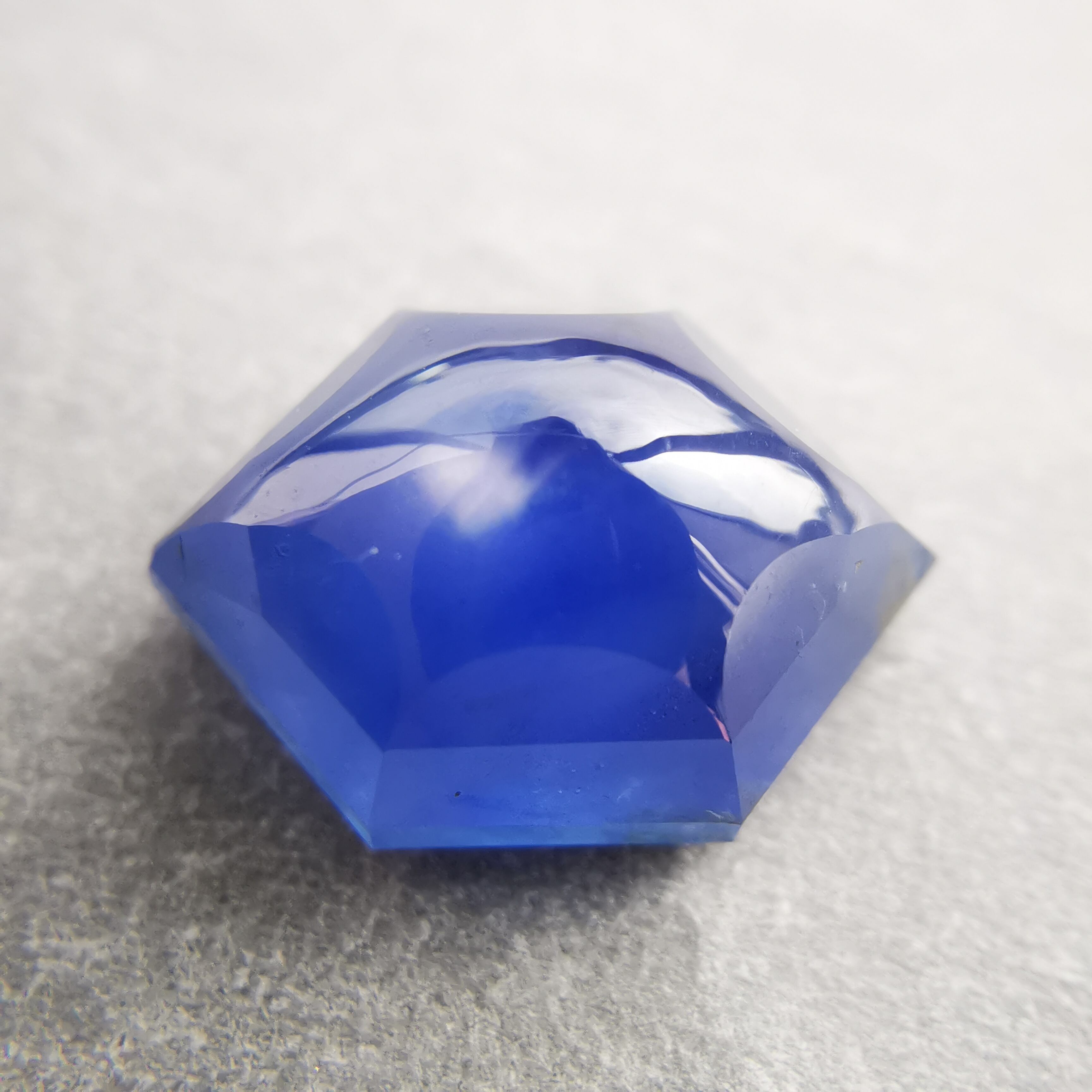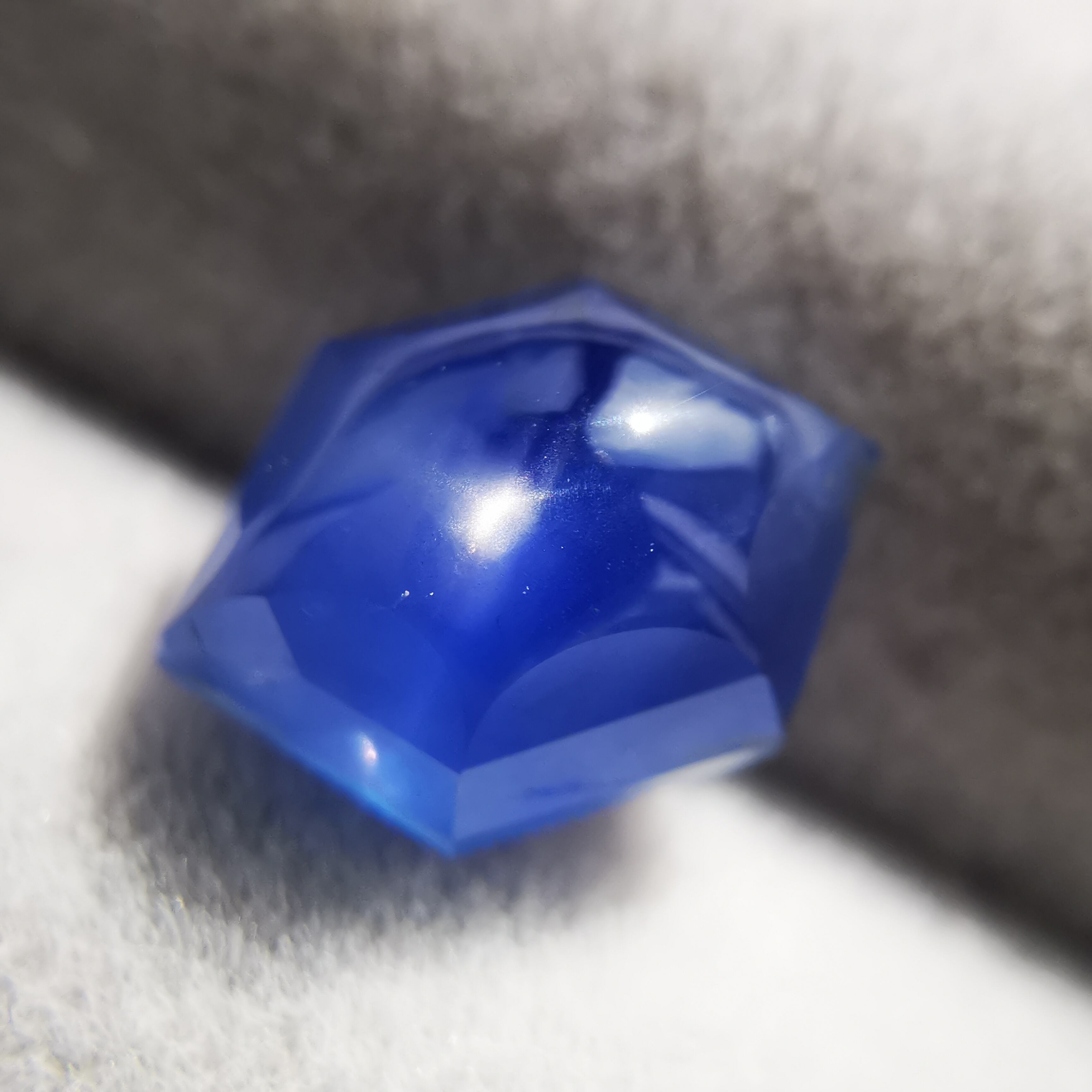 深いブルーのスターサファイアを、スターを残したまま六角形にリカットしました。
