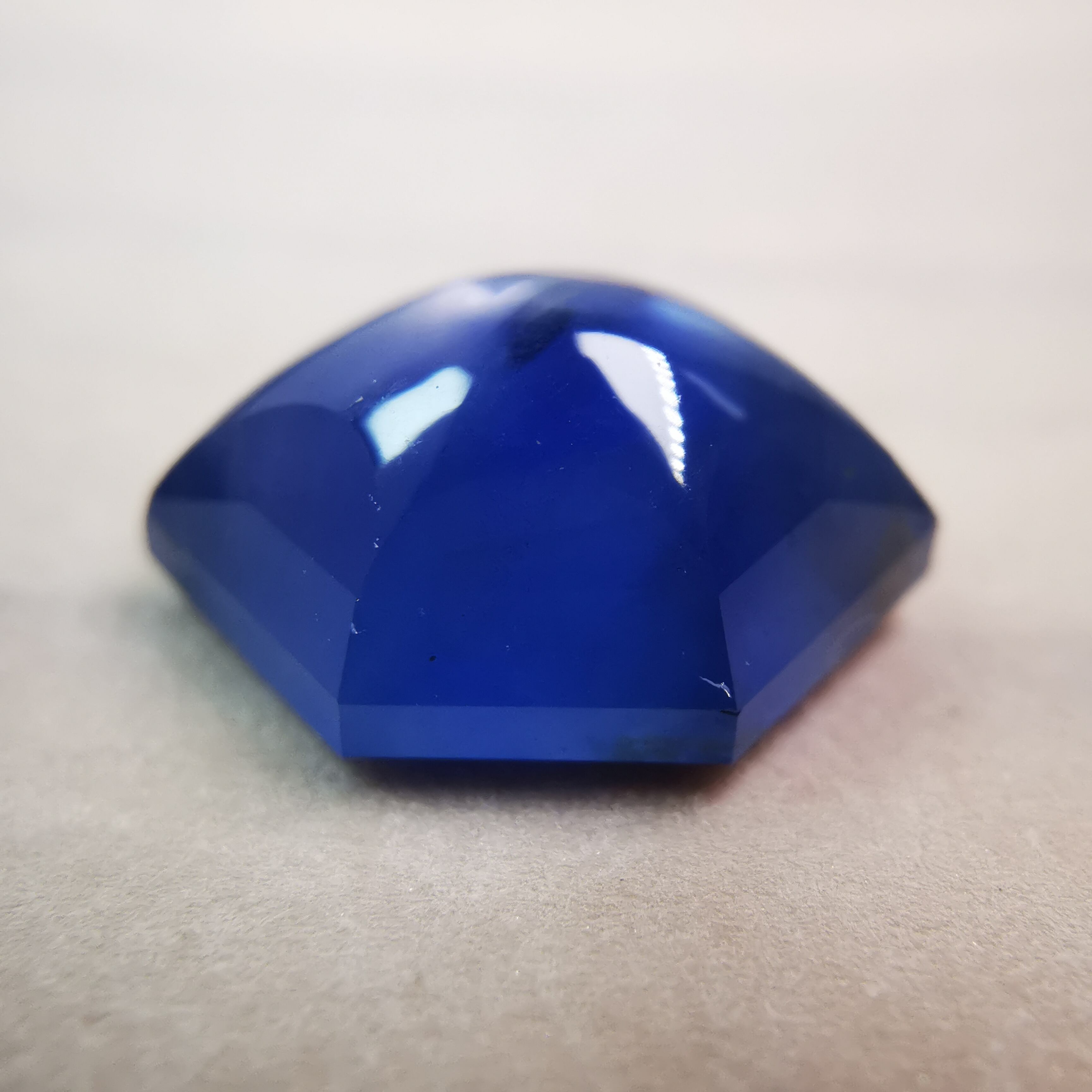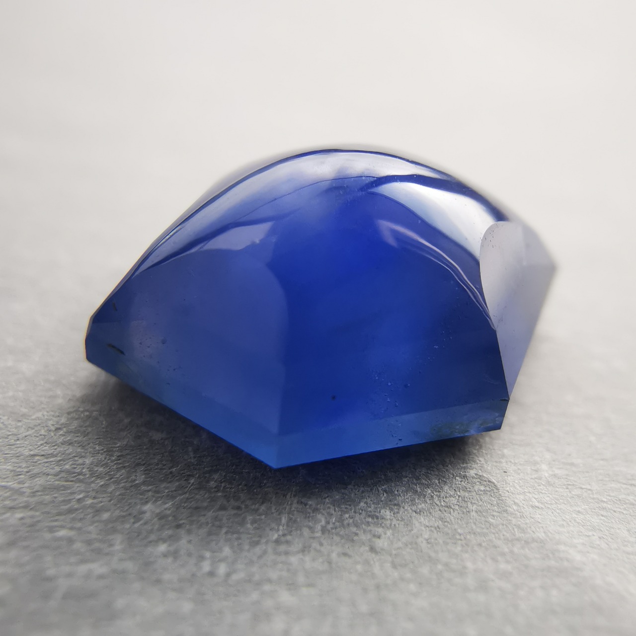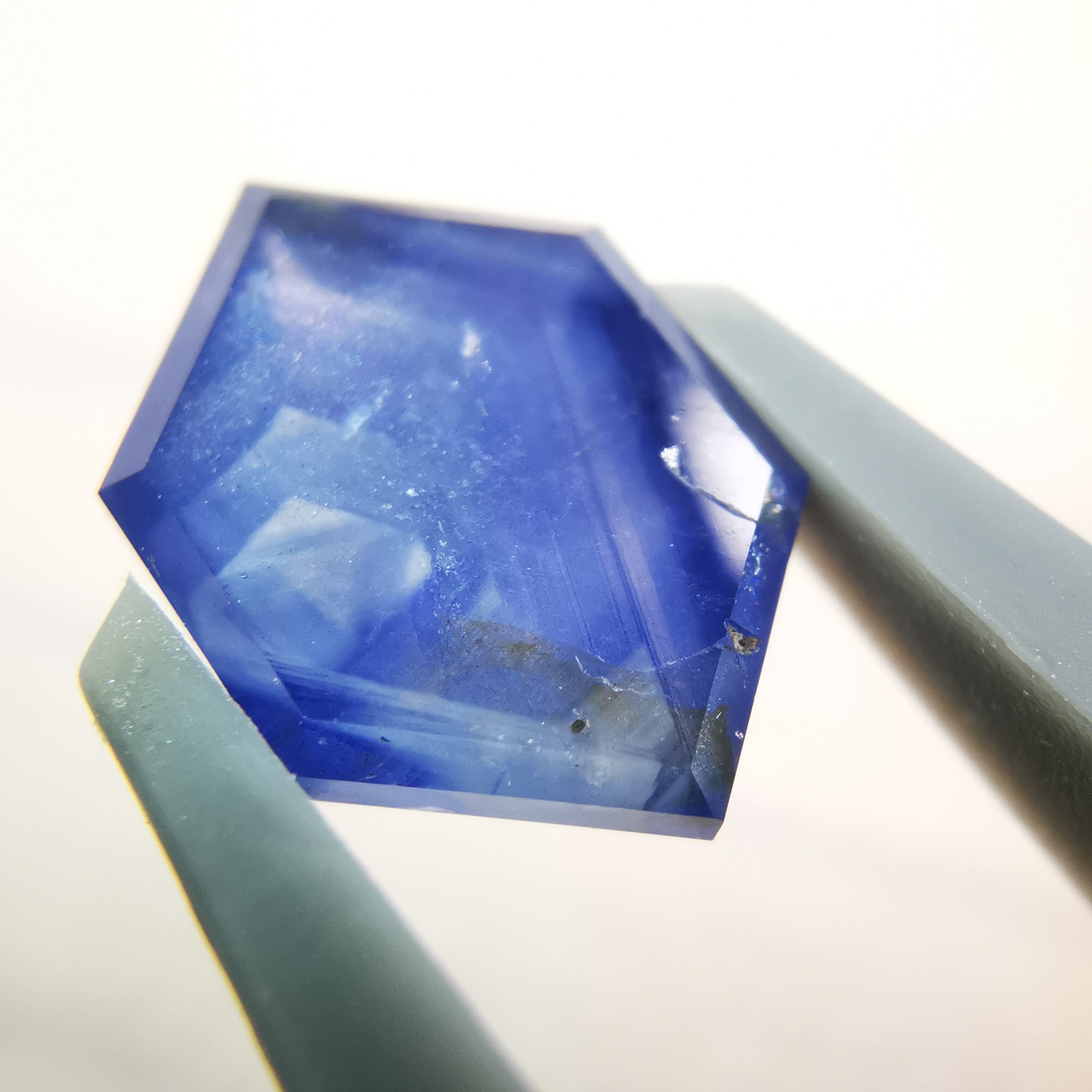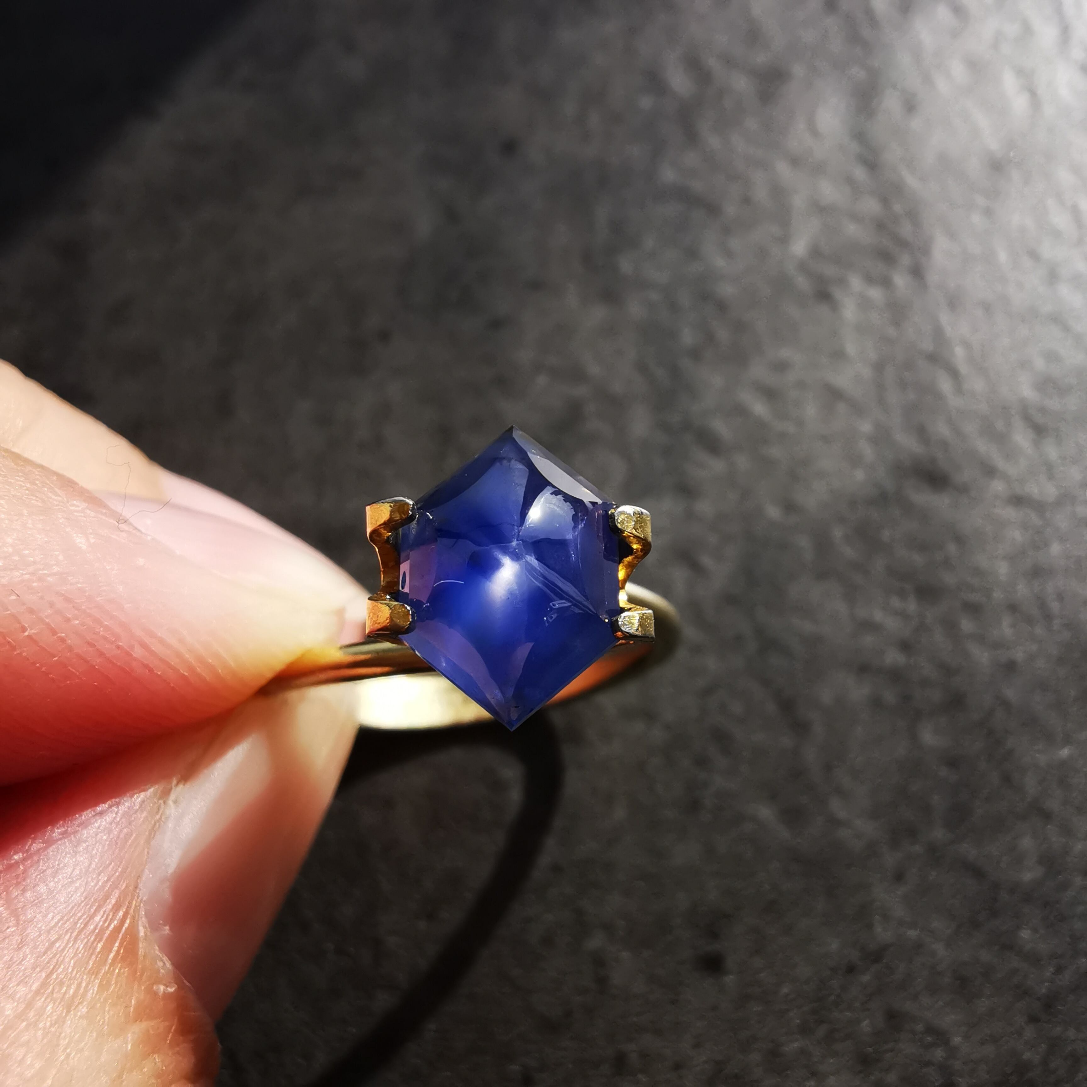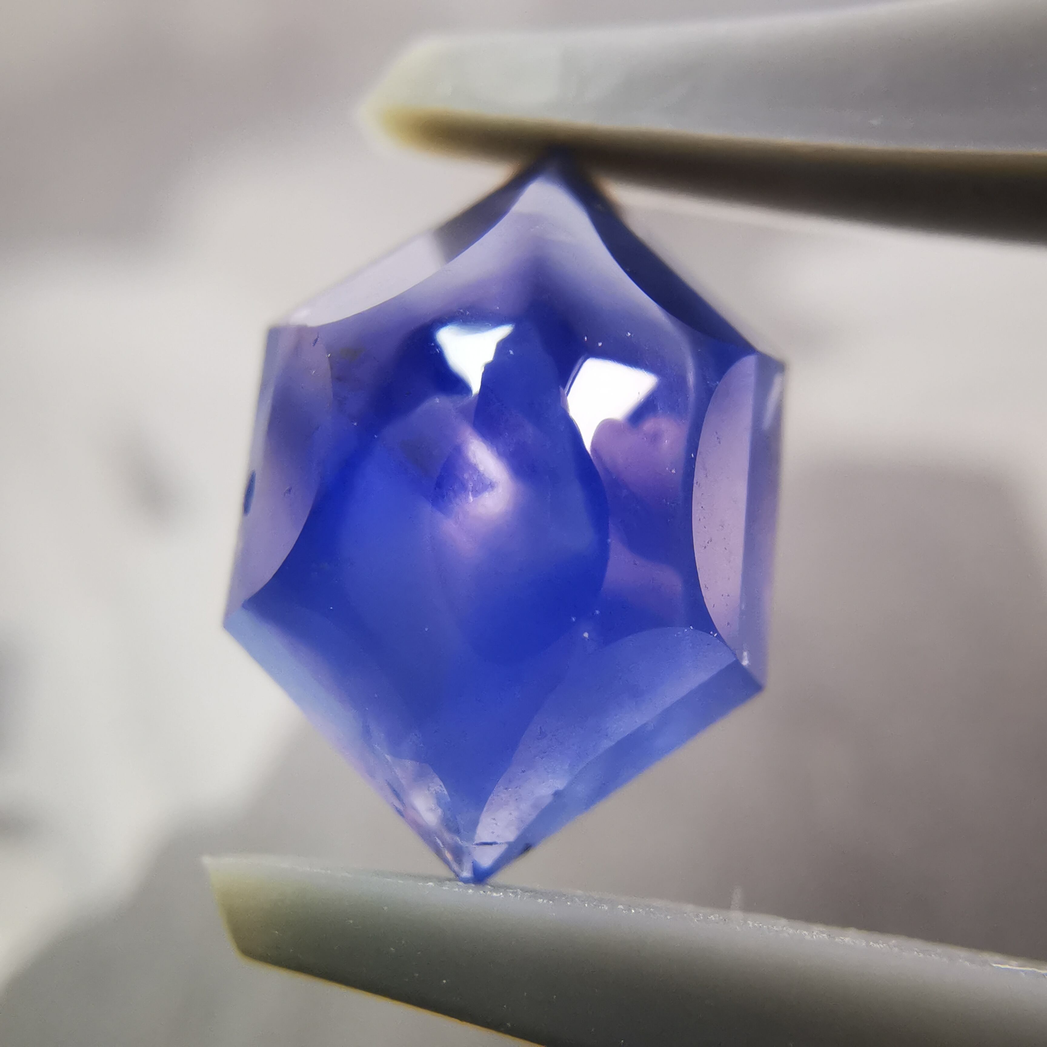 深いブルーのスターサファイアを、スターを残したまま六角形にリカットしました。