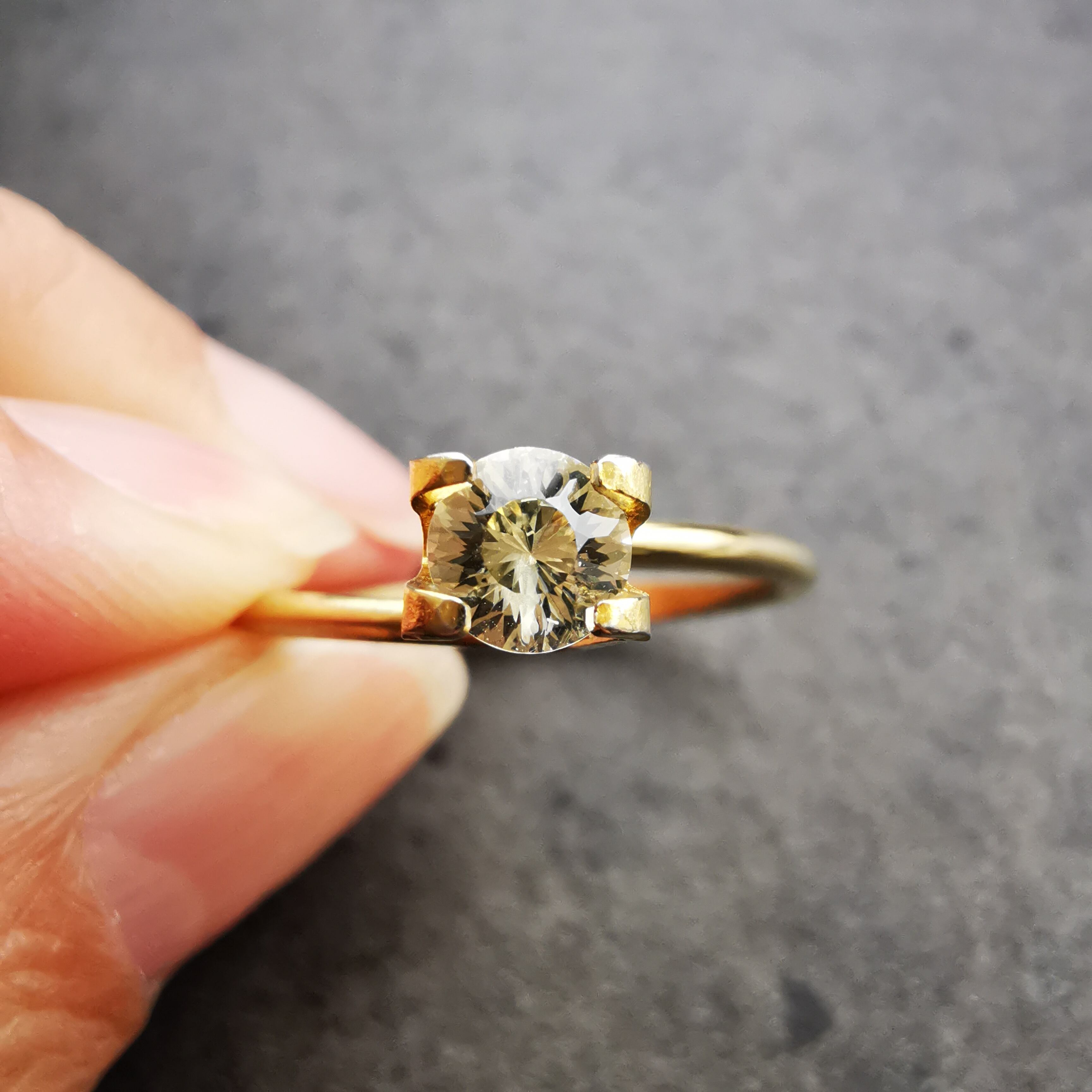 クラウンには花びら一枚一枚の形が刻まれており、パビリオンの緻密なカットが重なると、とても微細なきらめきを見せます。