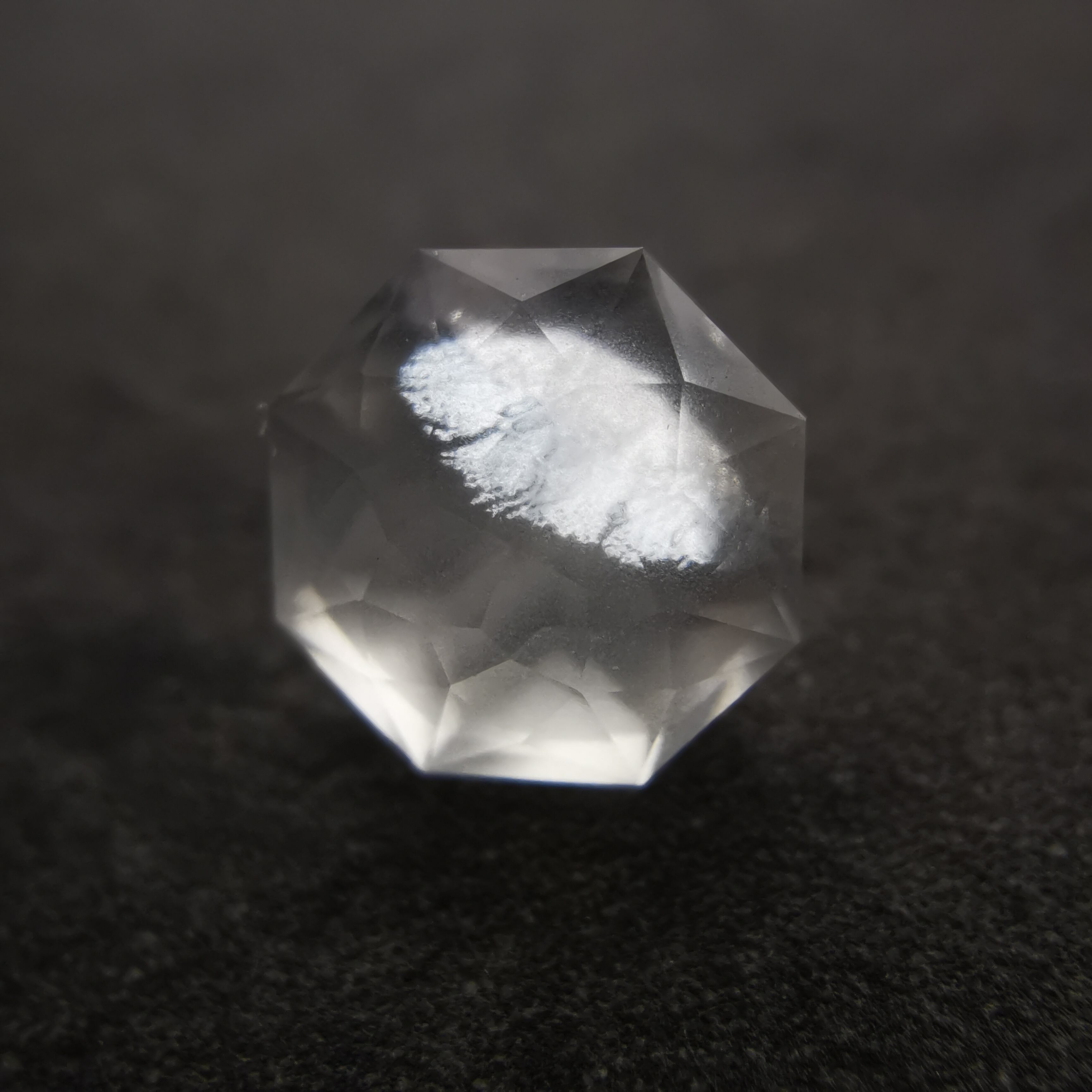 全体に半透明で、ムーンストーン特有の光学効果アデュラレッセンスはかなり控えめですが、パビリオン側に、極々わずかにブルーシラーが現れます。