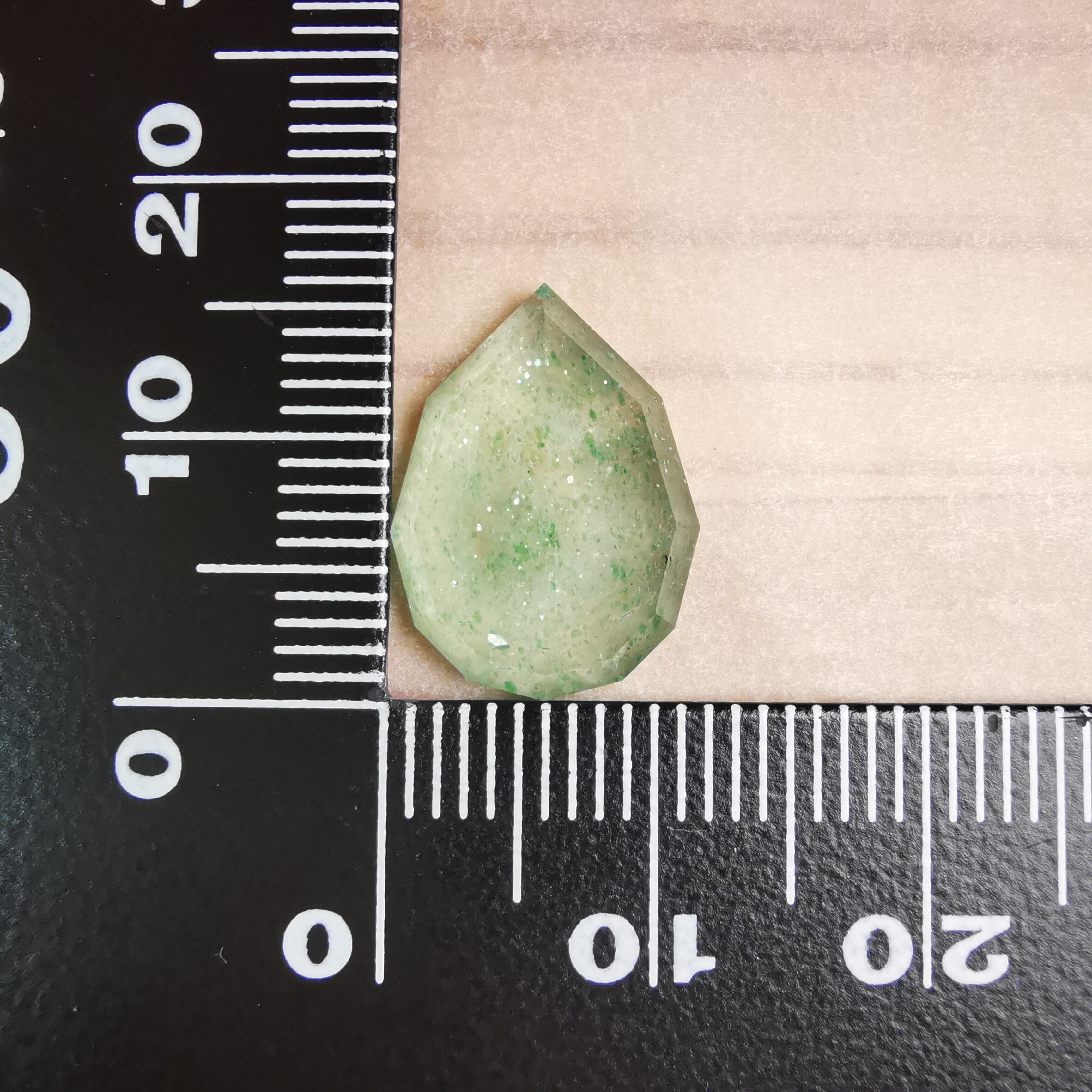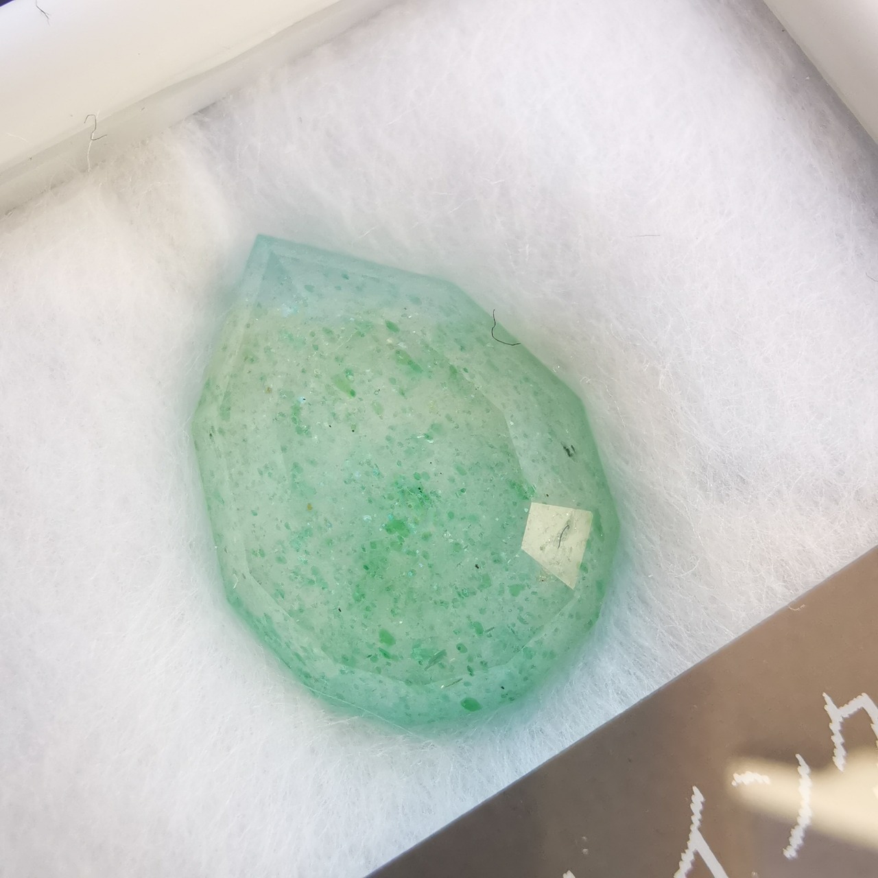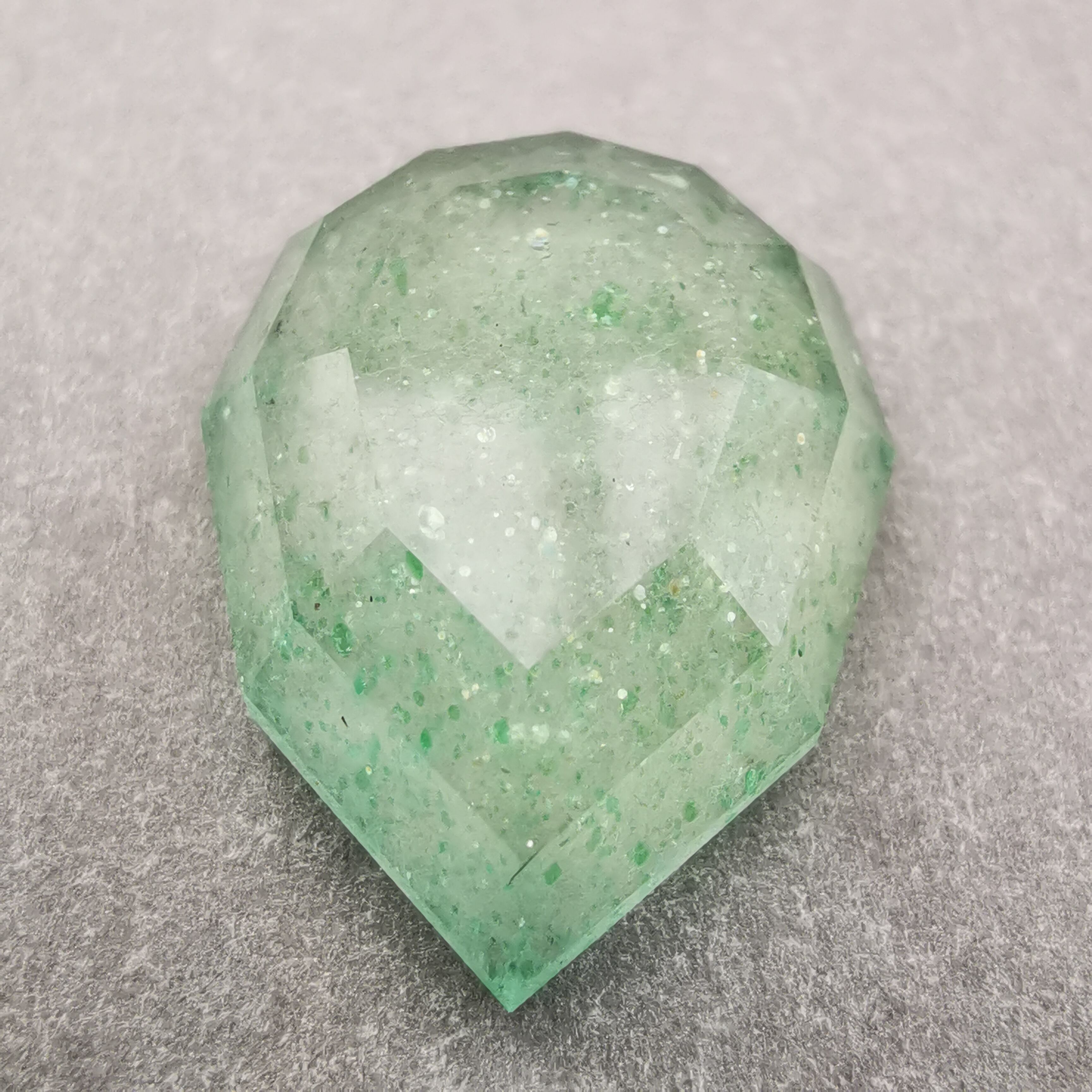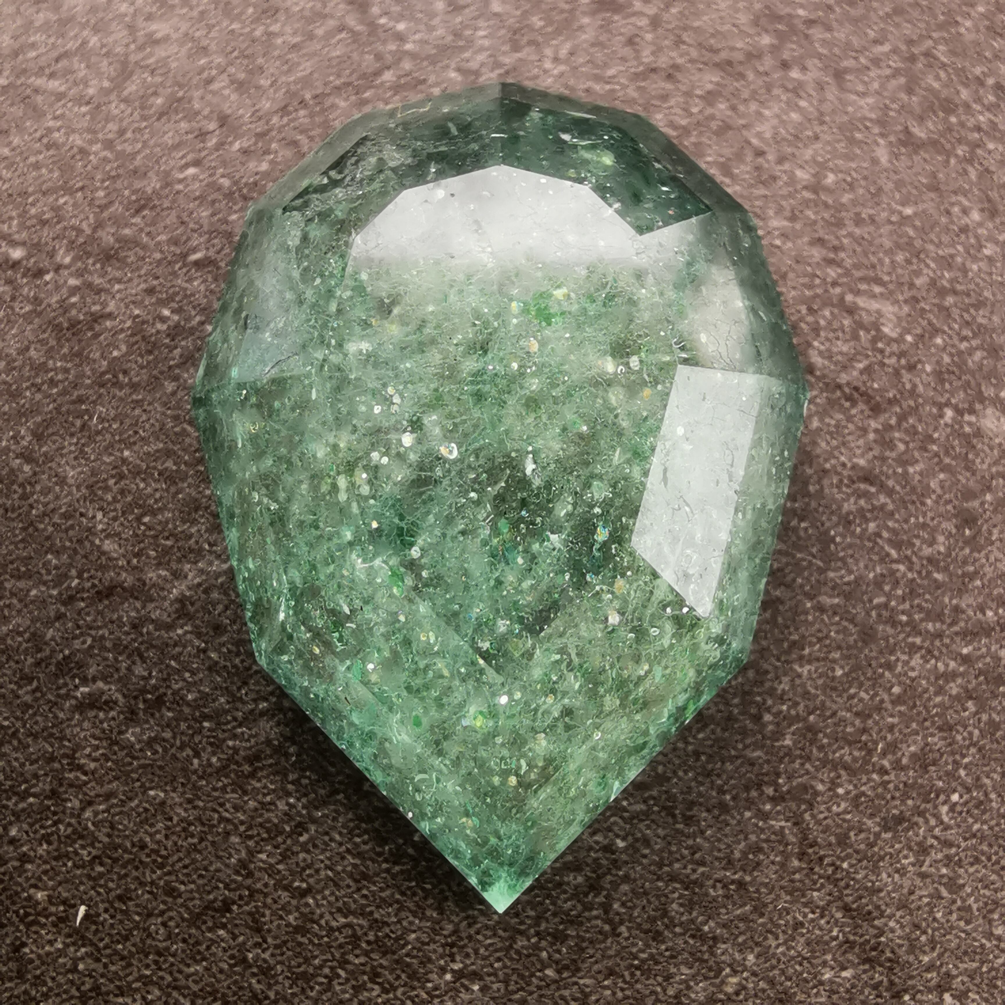 爽やかなグリーンの内包物に、陽に当たるとキラキラと光り、ラムネの炭酸ようにシュワシュワと弾けます。