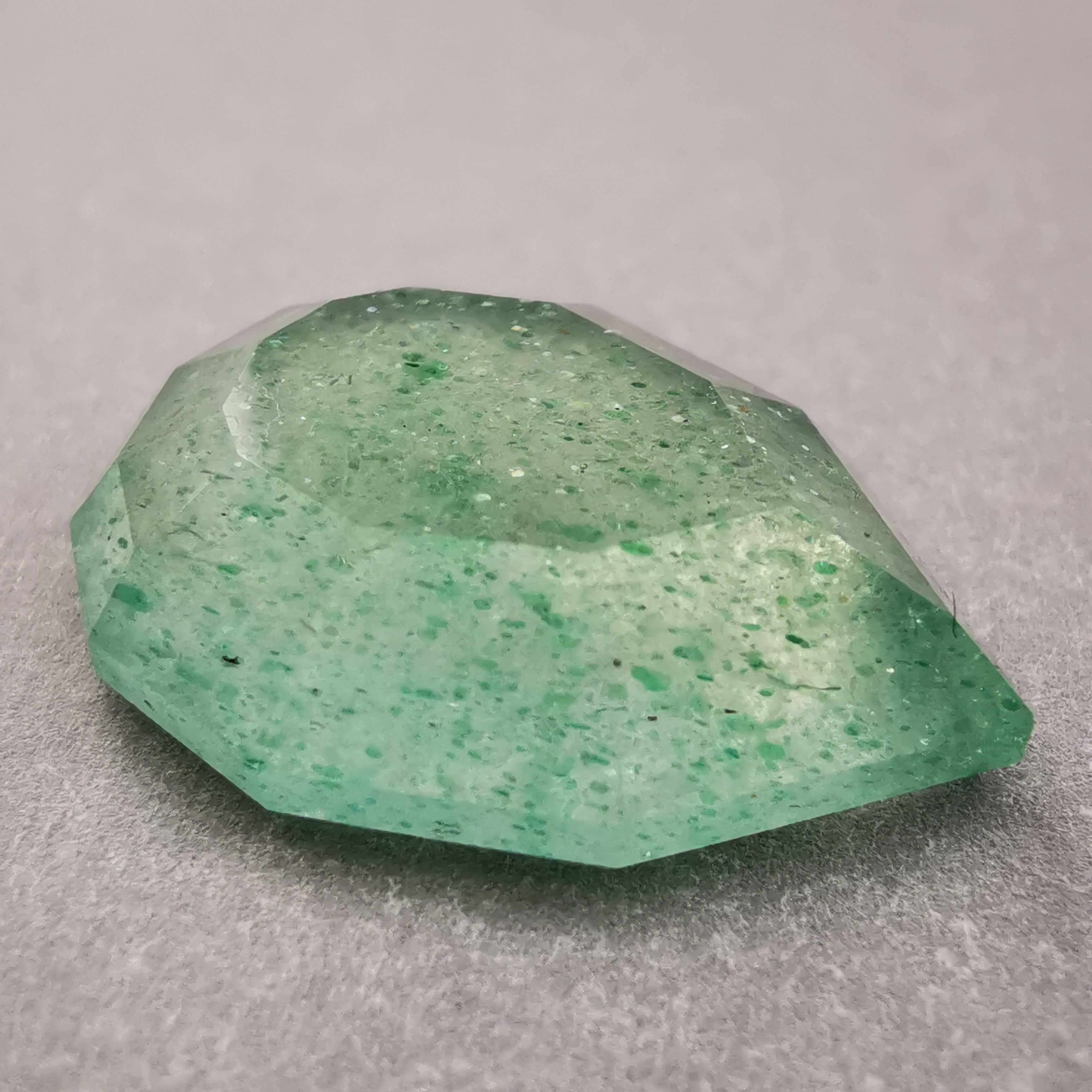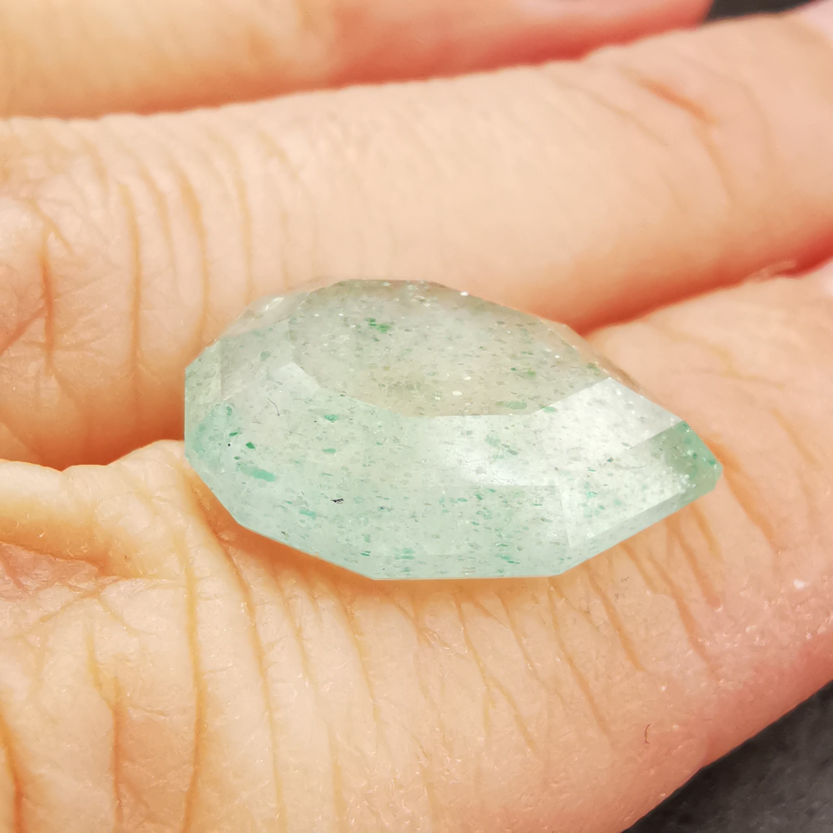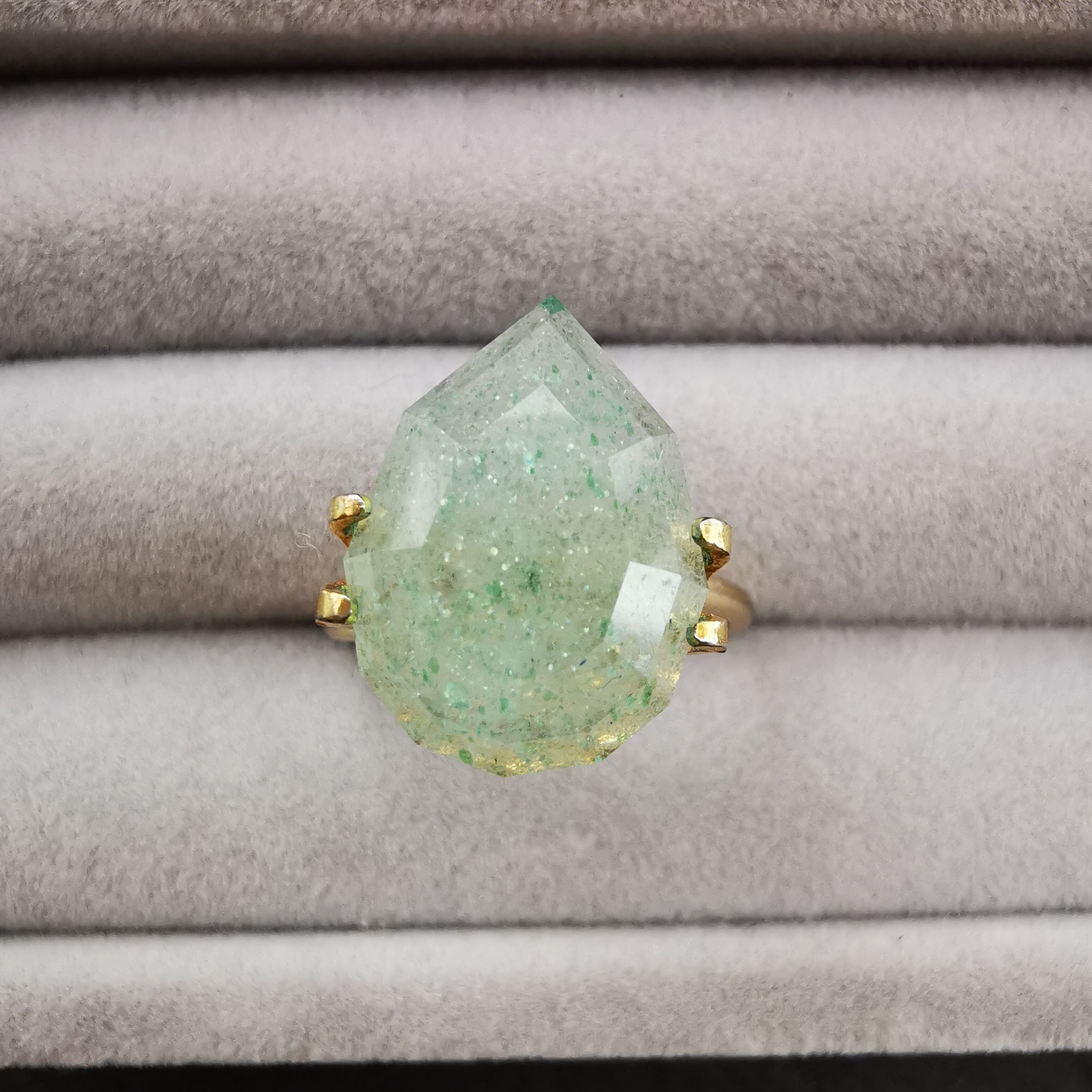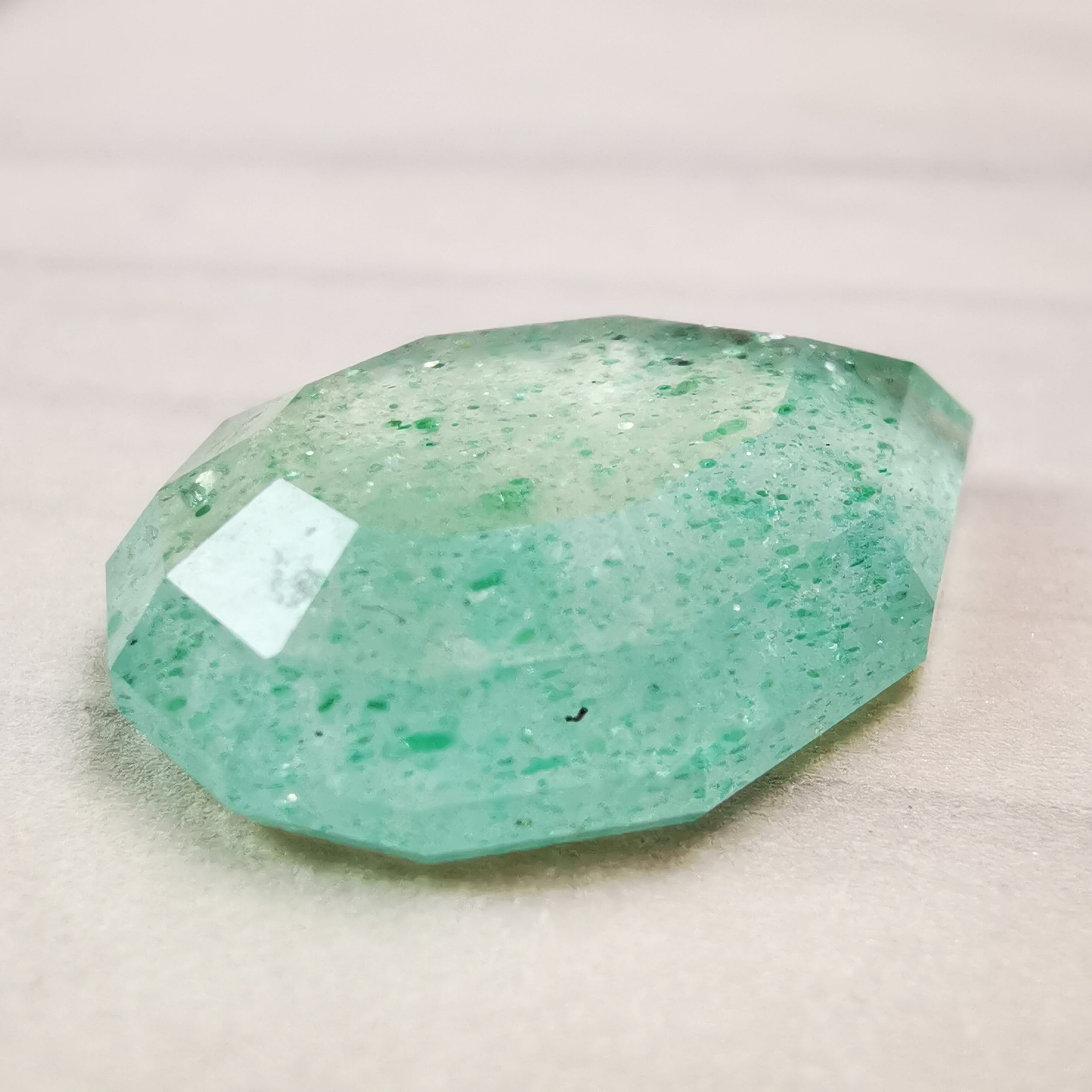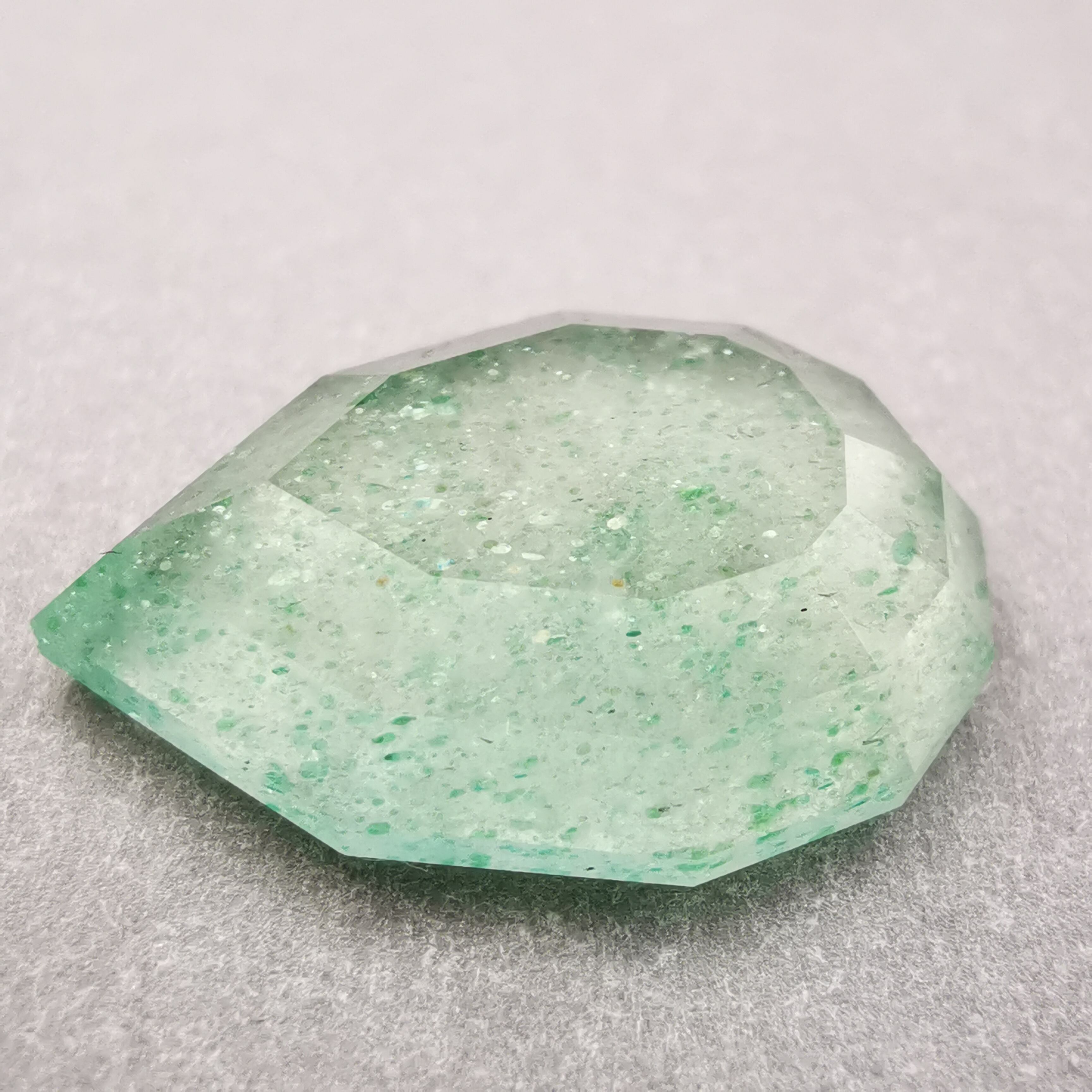 爽やかなグリーンの内包物に、陽に当たるとキラキラと光り、ラムネの炭酸ようにシュワシュワと弾けます。