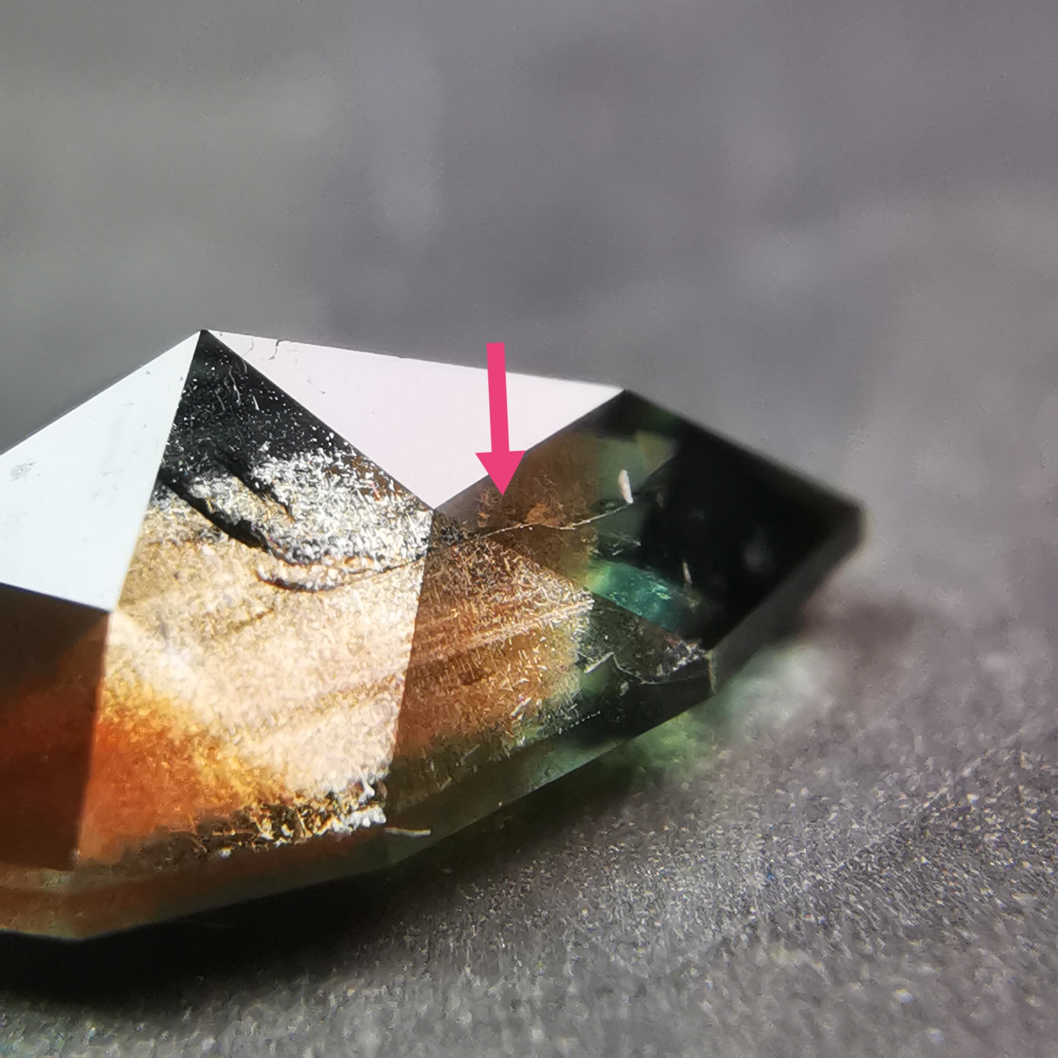 元はファセットカットでしたが、テーブル面からシラーが遠く、かなり強い光でもほとんどシラーが光らなかったためです。