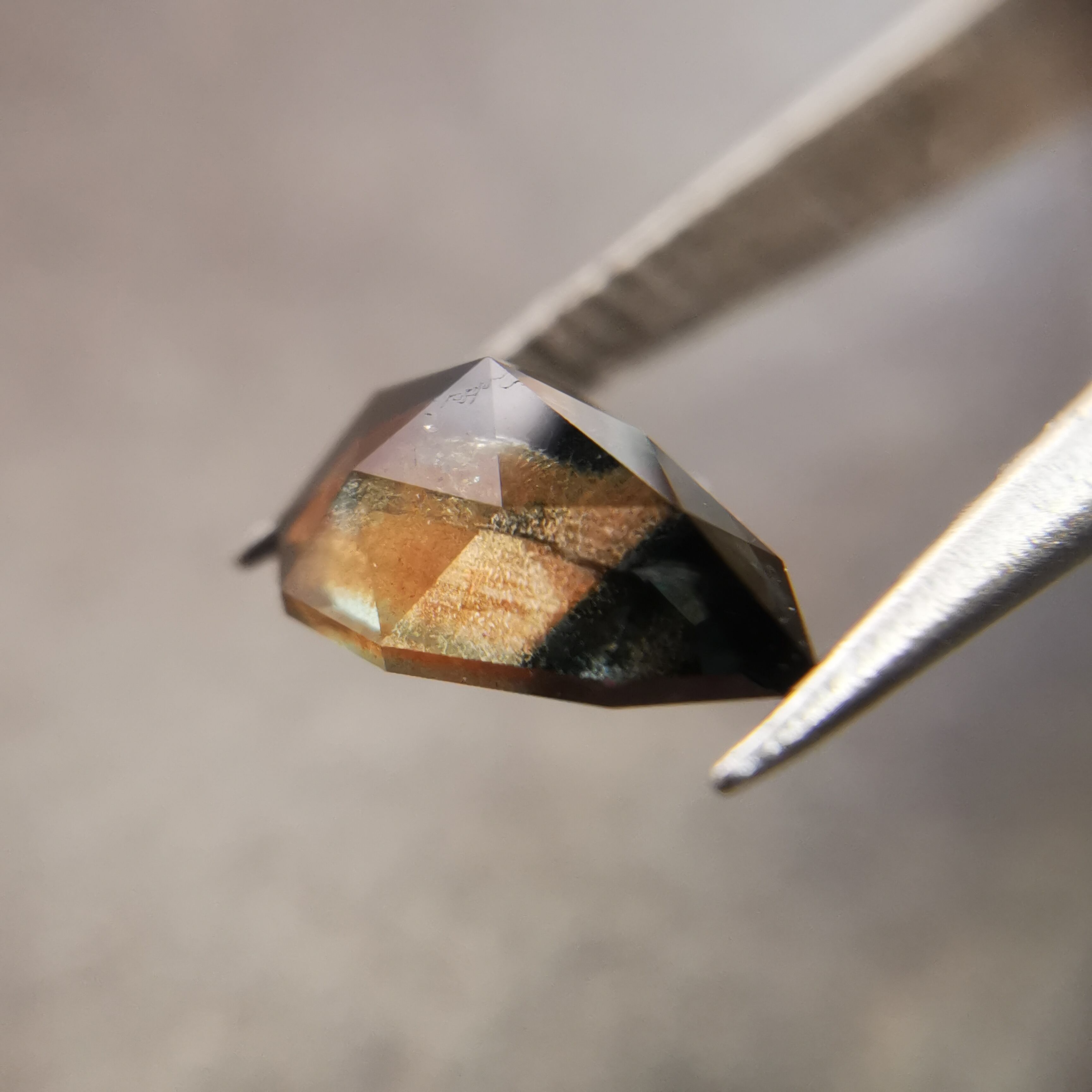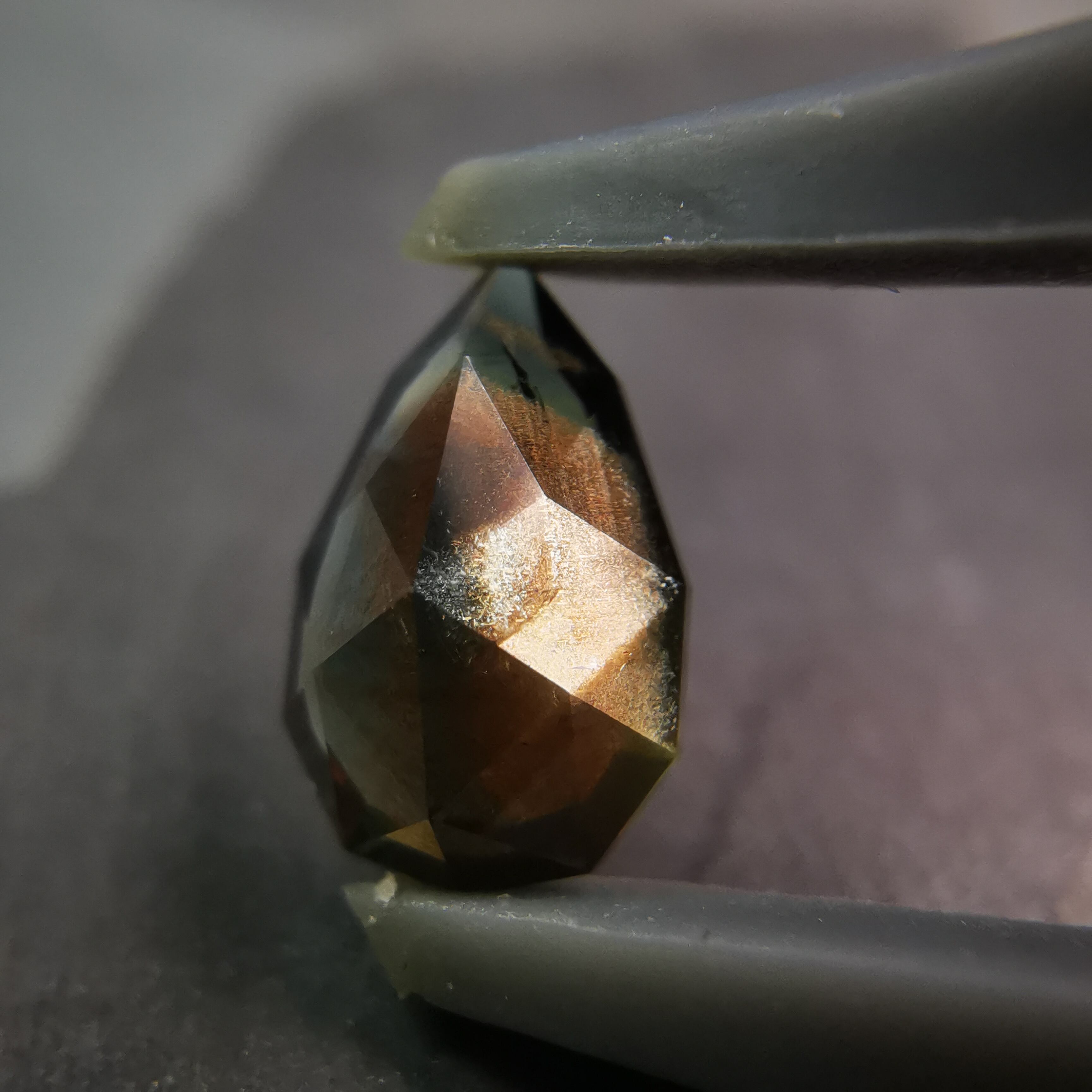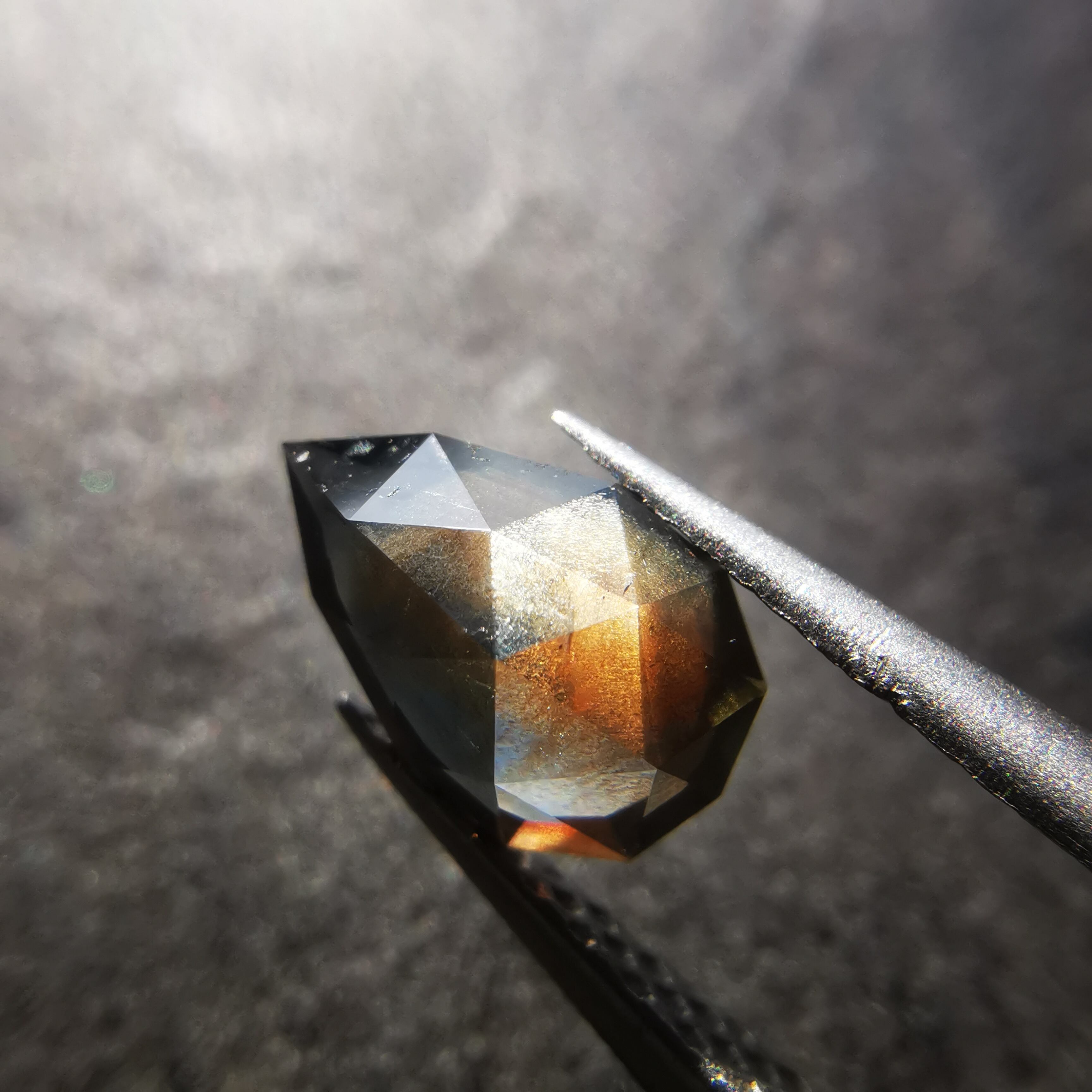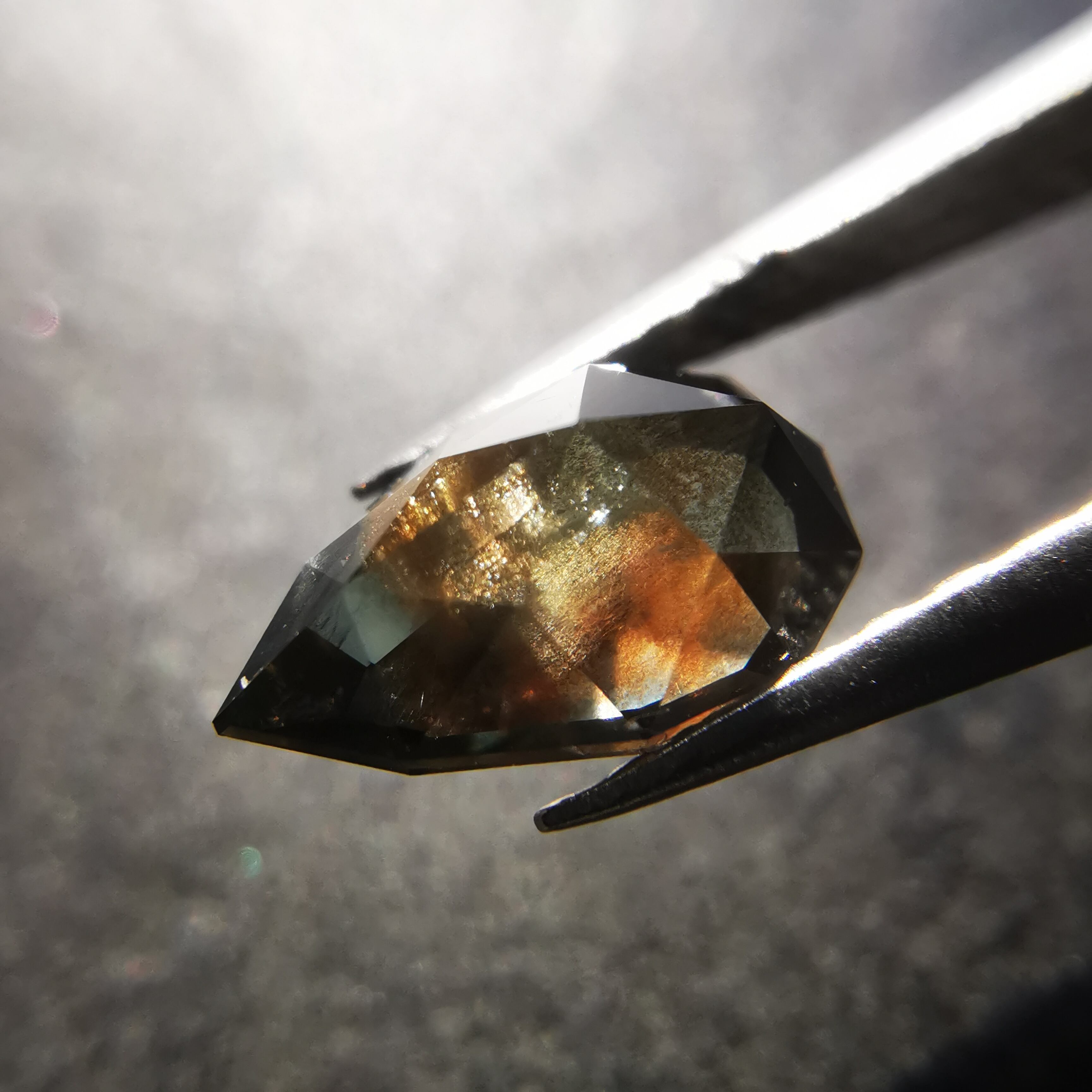 ローズカットの先端からおしりにかけて、シルバー、ゴールド、ブロンズ色のシラーが現れます。