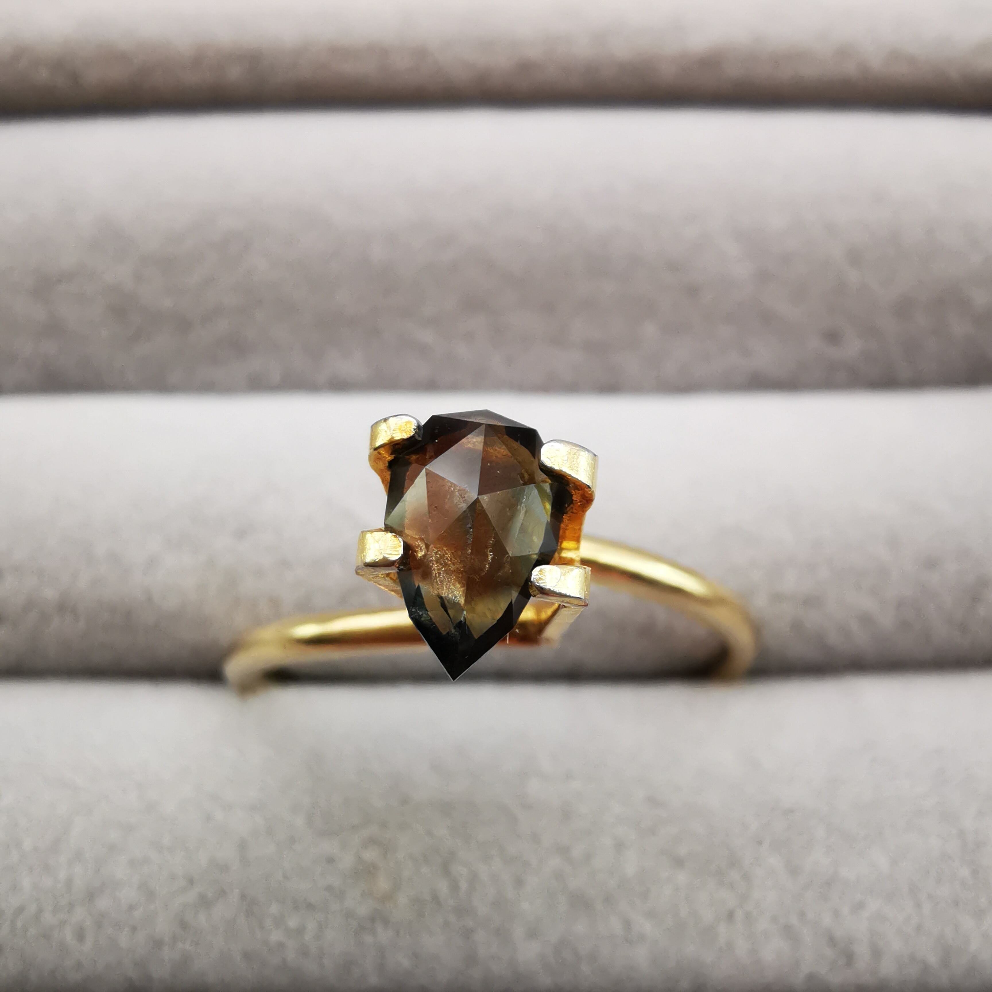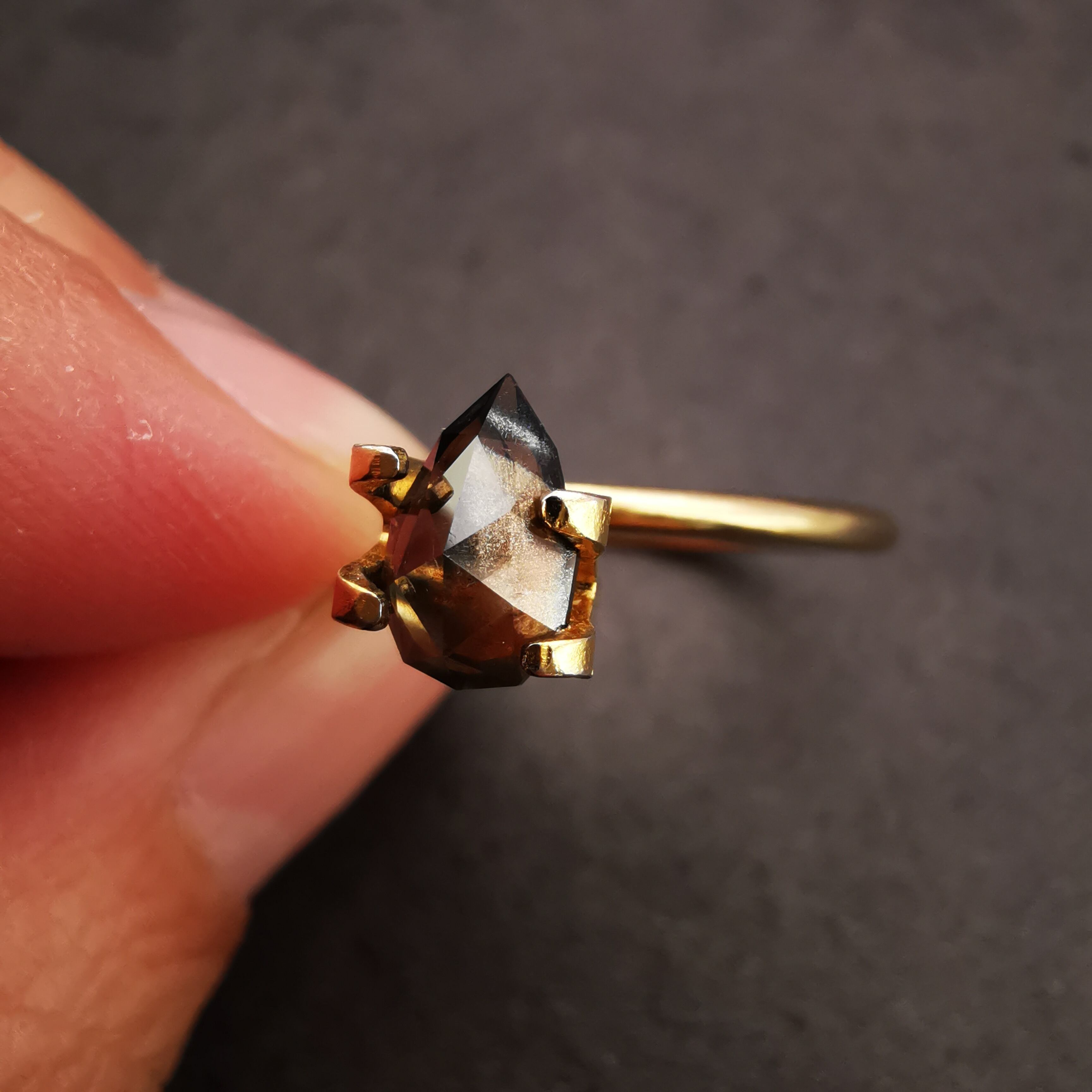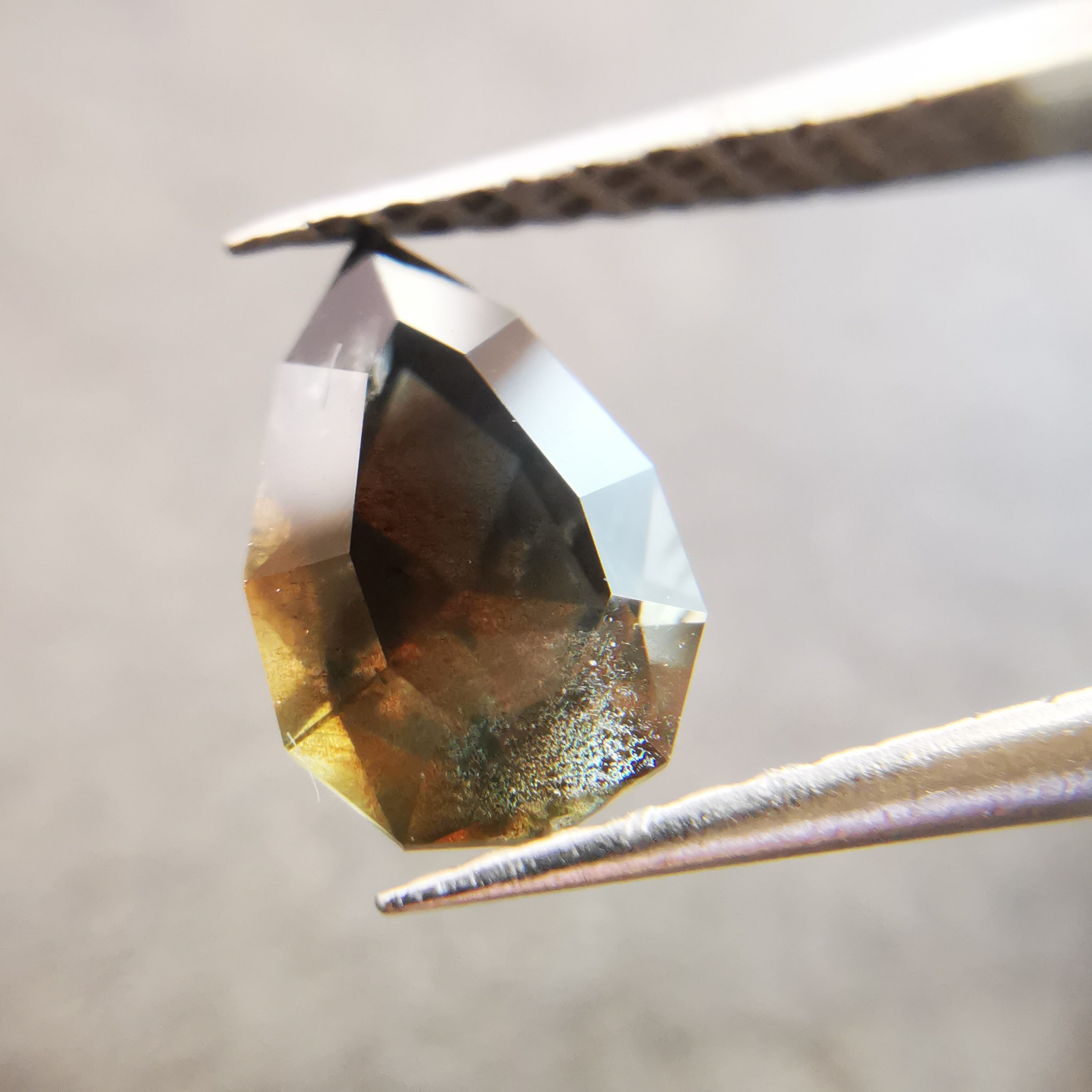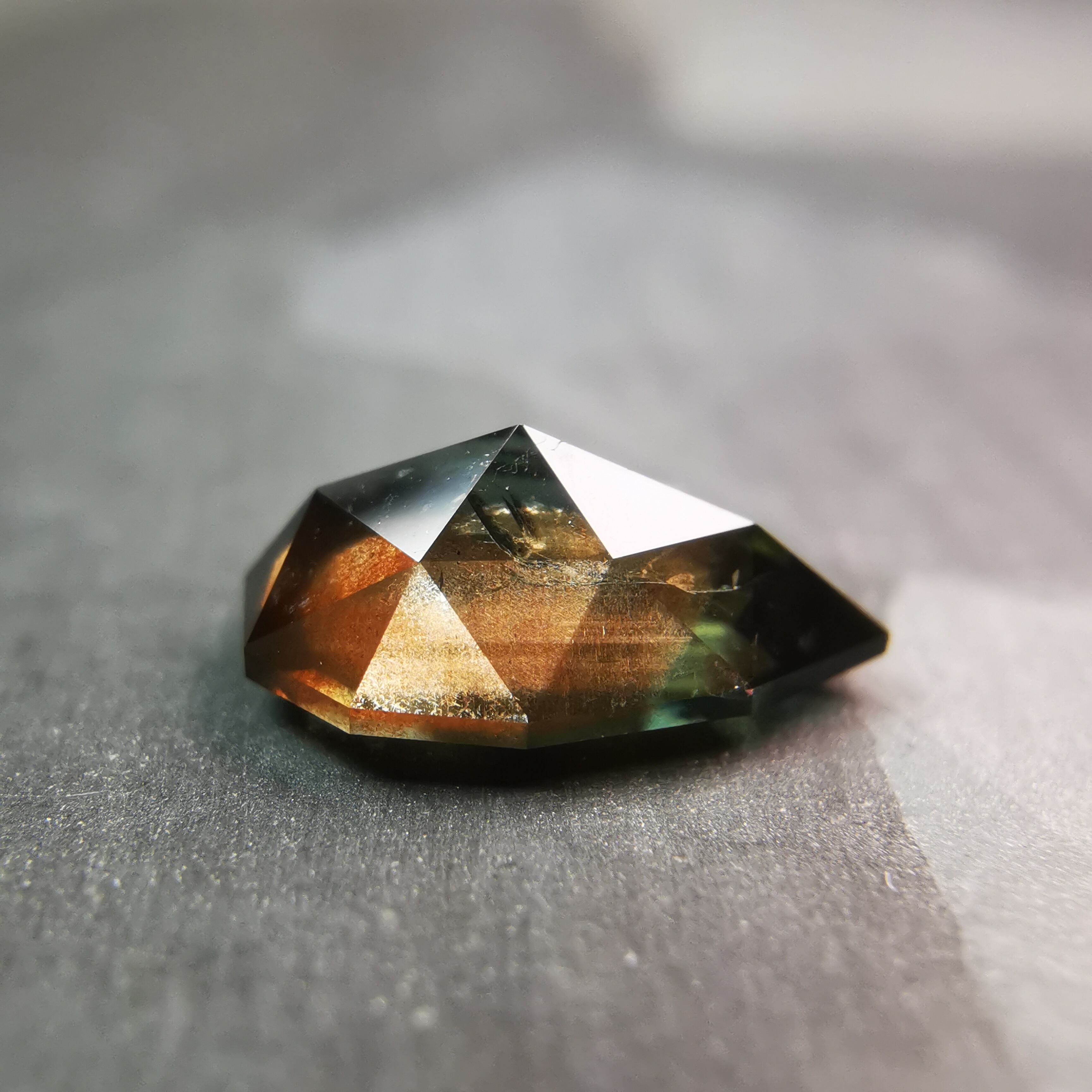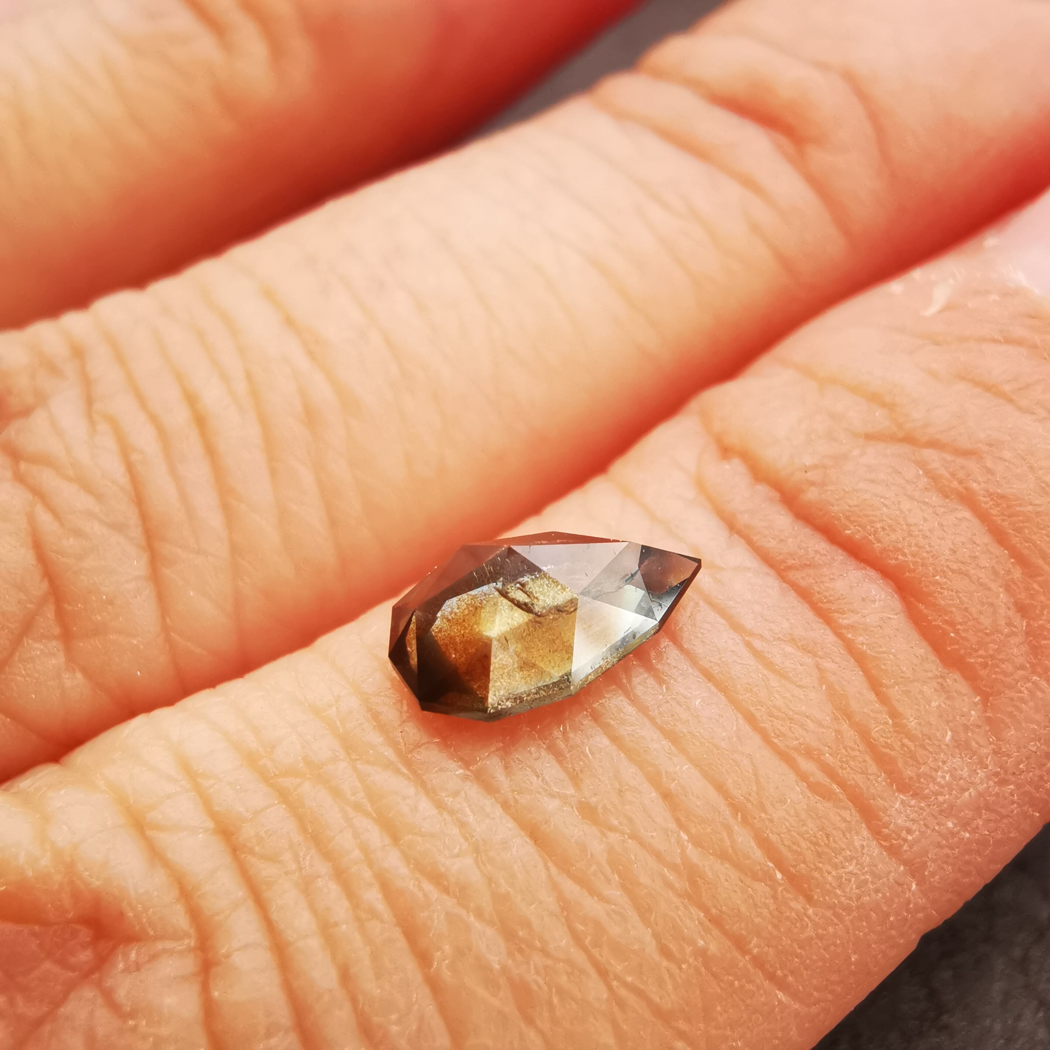 ローズカットの先端からおしりにかけて、シルバー、ゴールド、ブロンズ色のシラーが現れます。