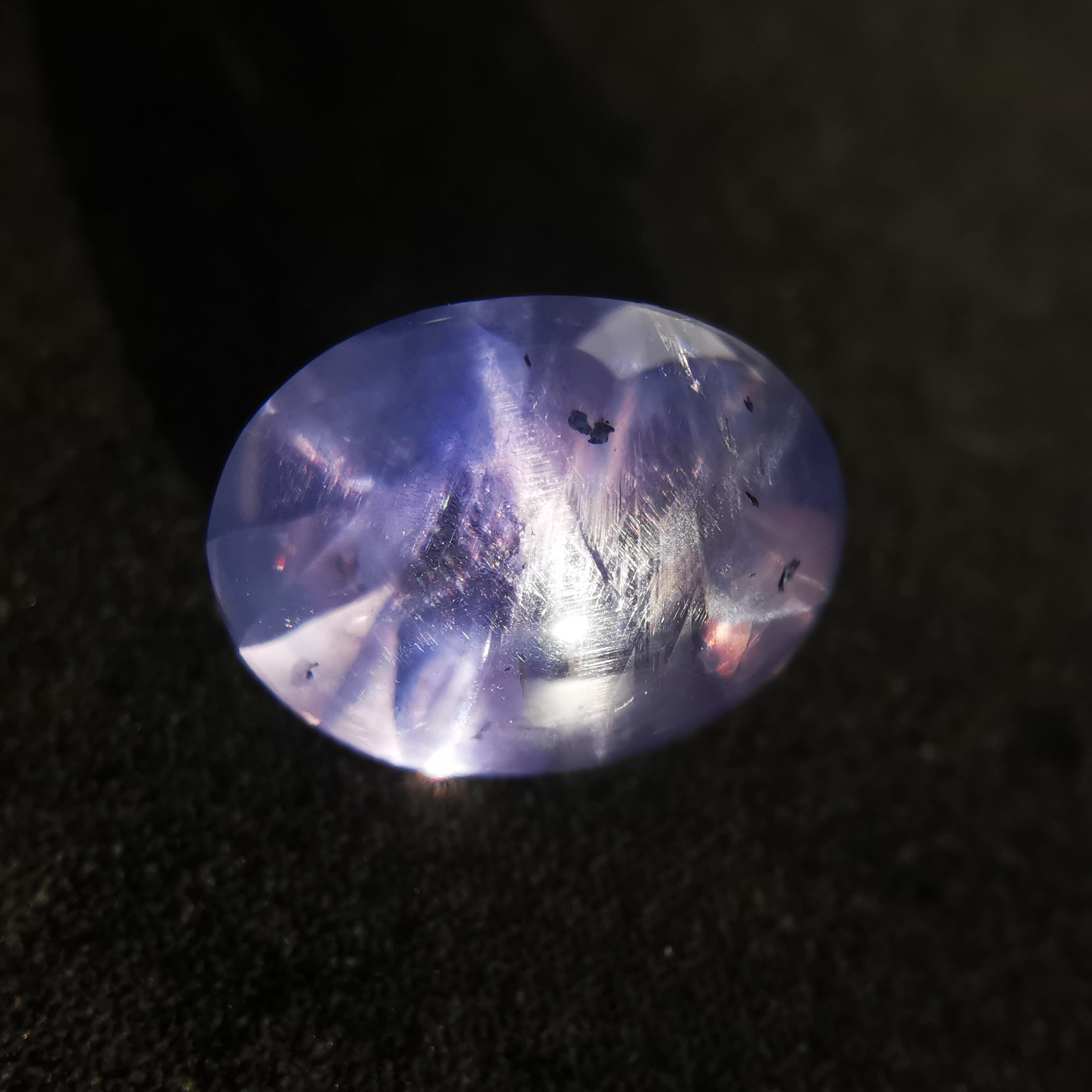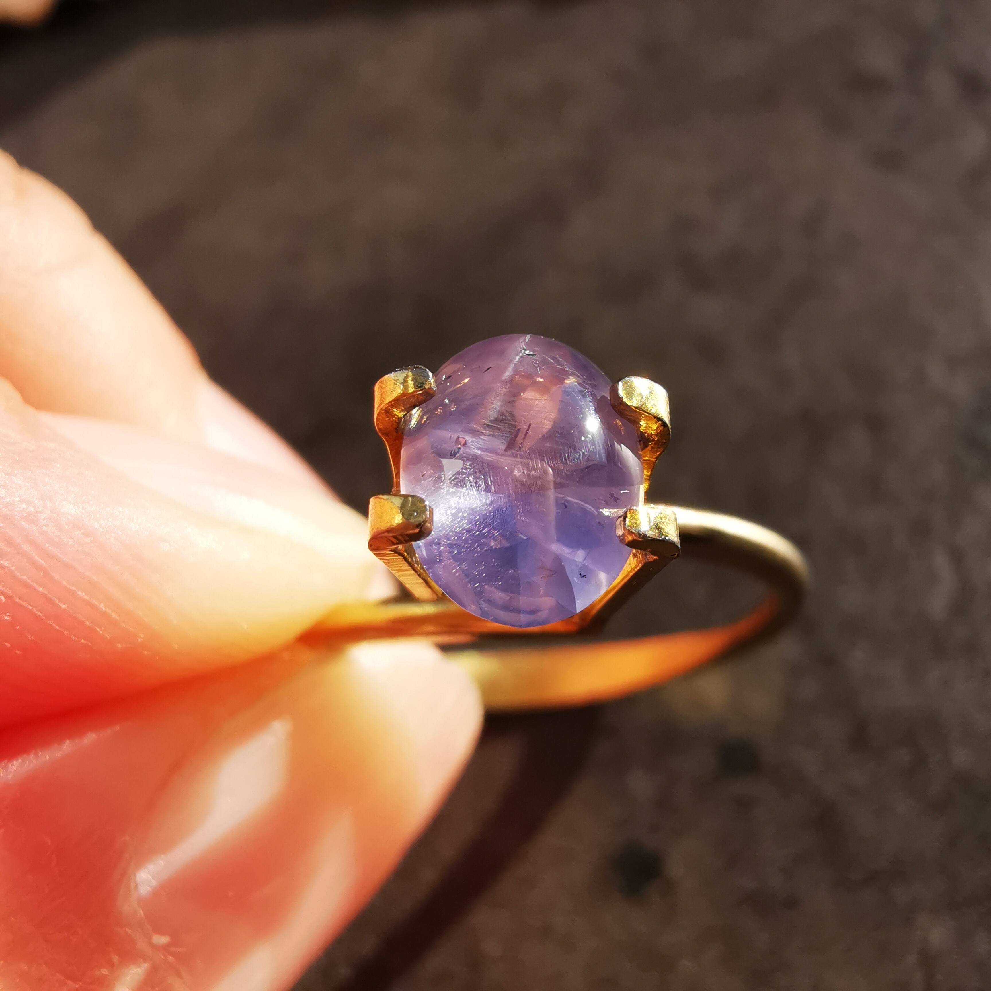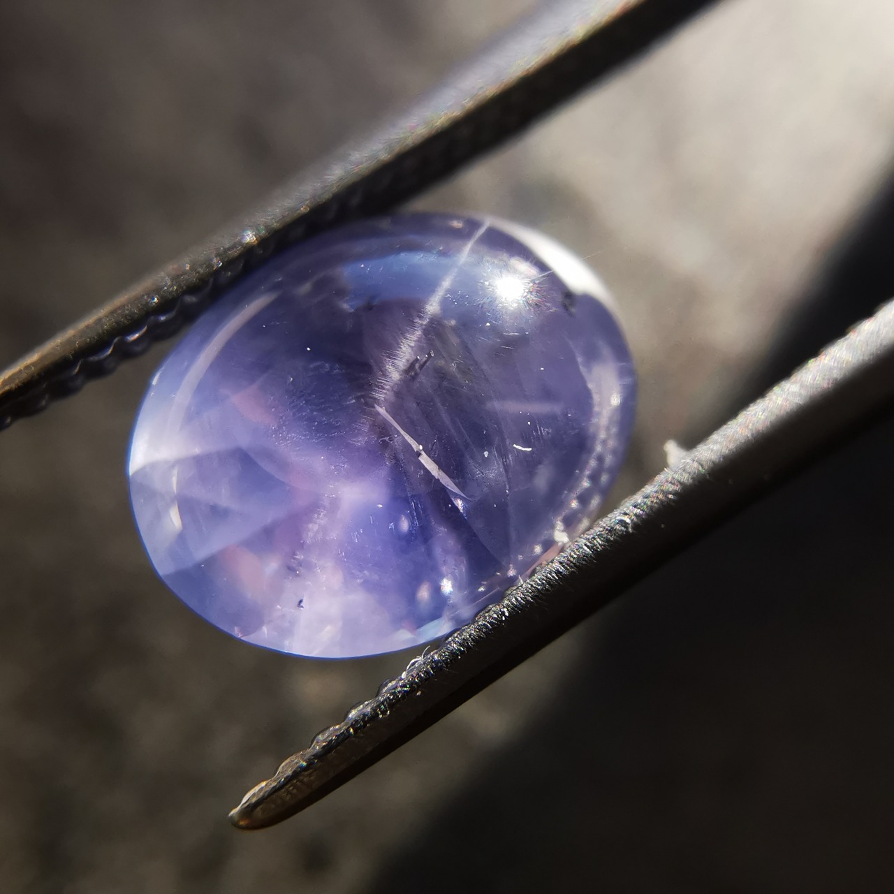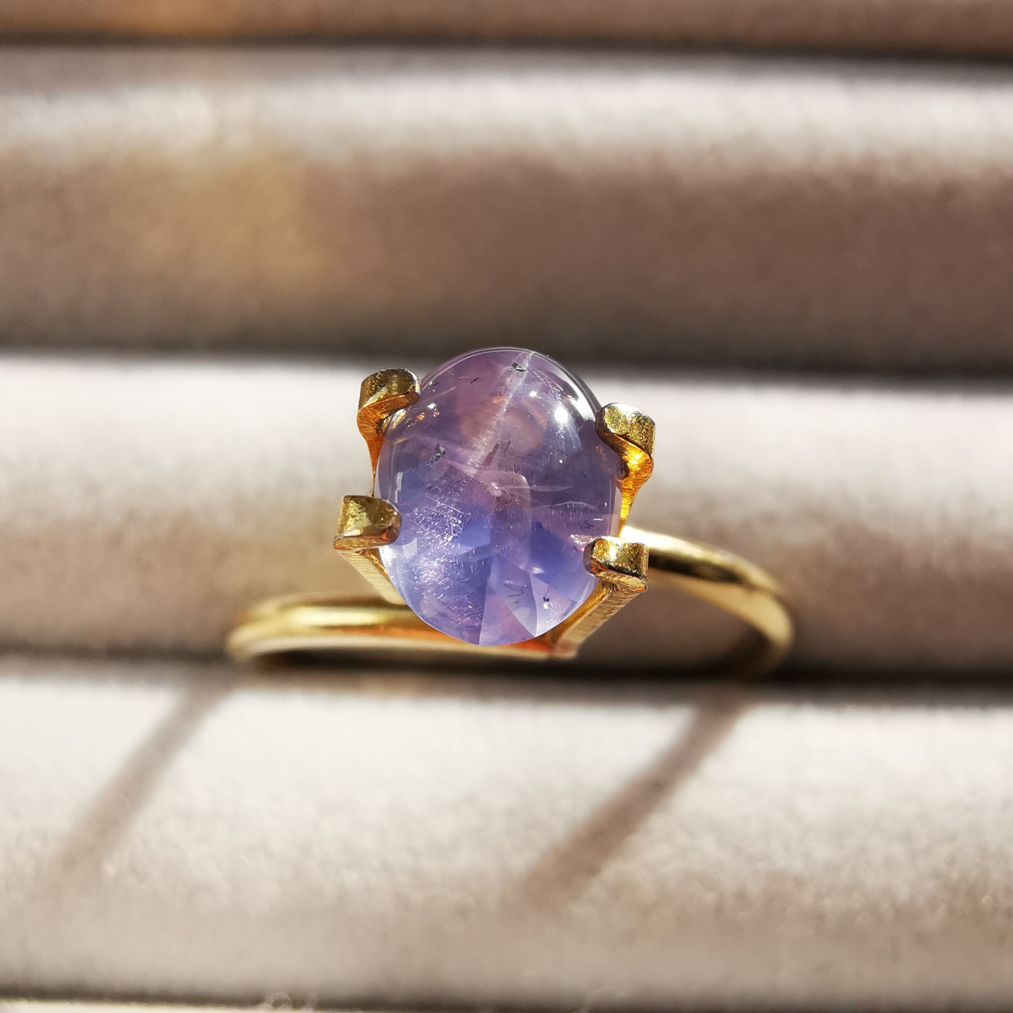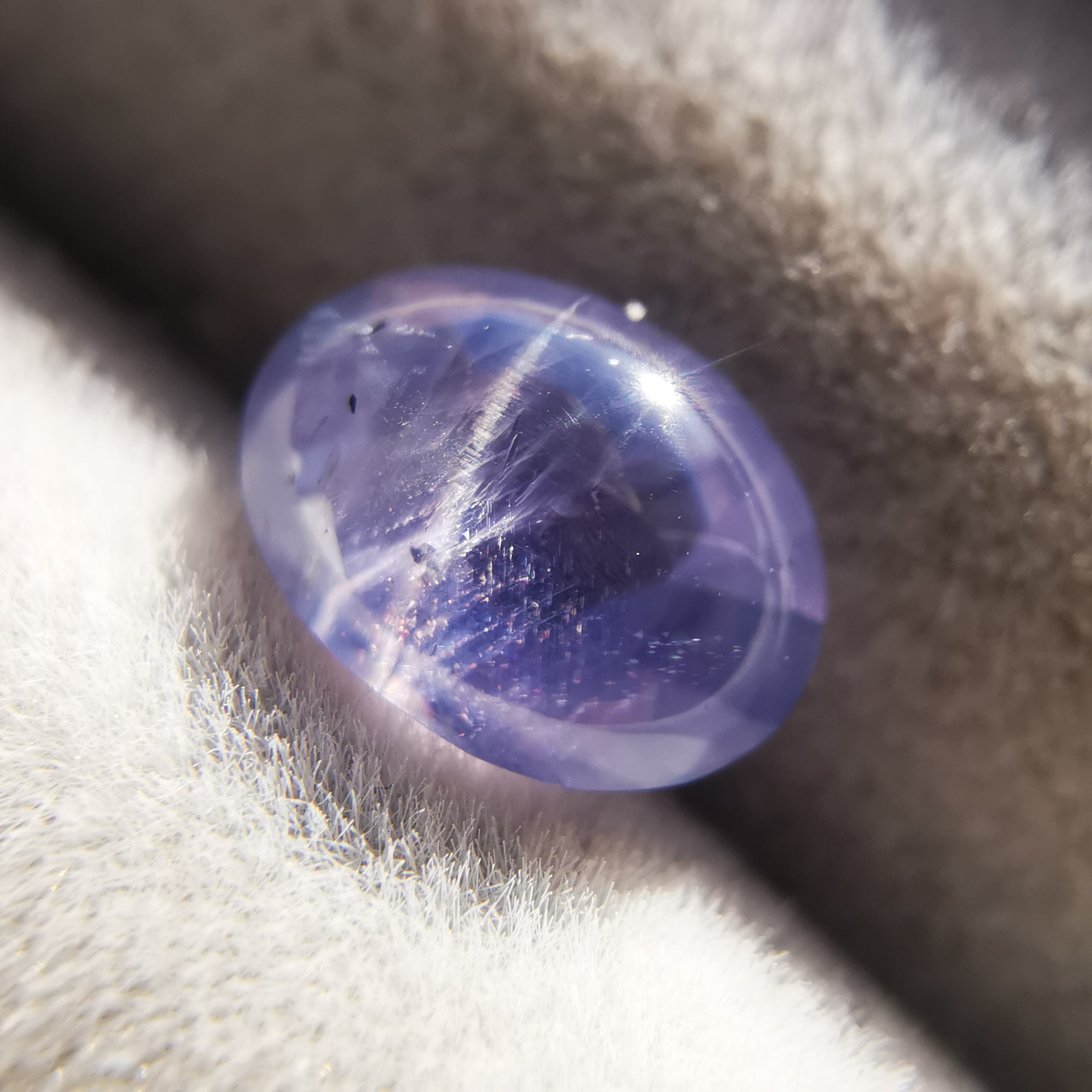 力強い印象があるスターサファイアですが、淡く透明感の高いパープルの石に浮かぶ、極細いシルクのラインはとても繊細で儚げ、石の奥から溢れるファセットのきらめきは、スターサファイアの印象を変えるような一石です。