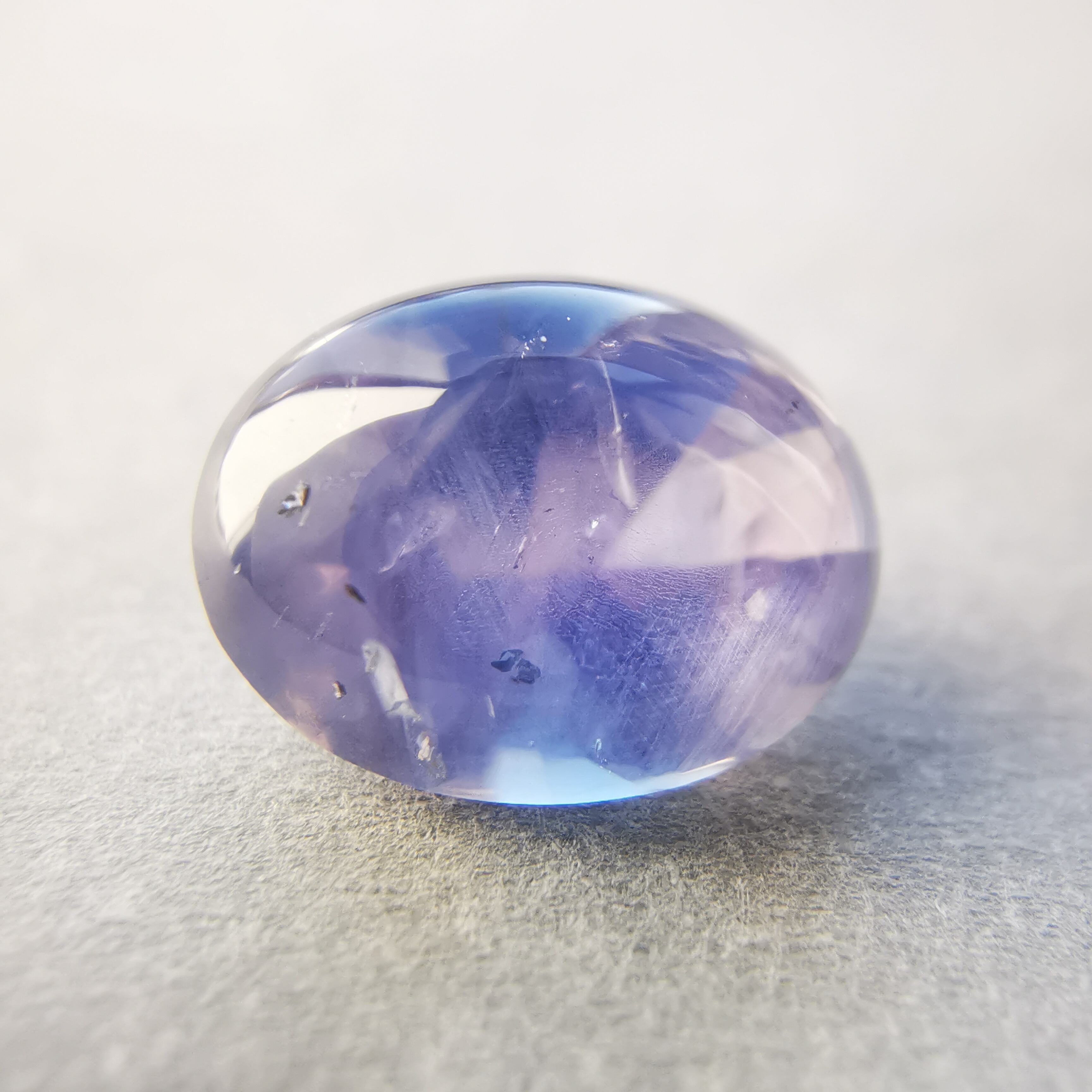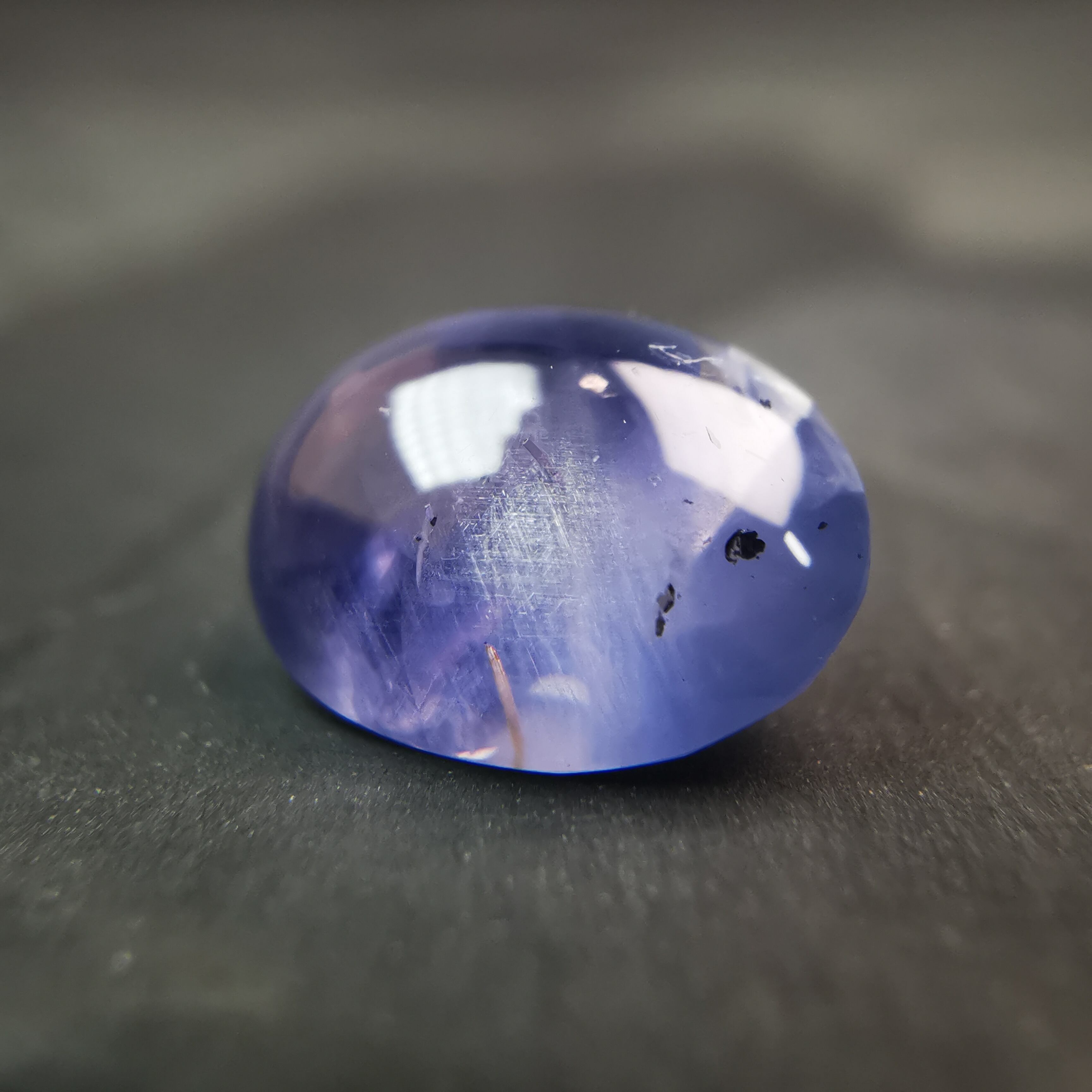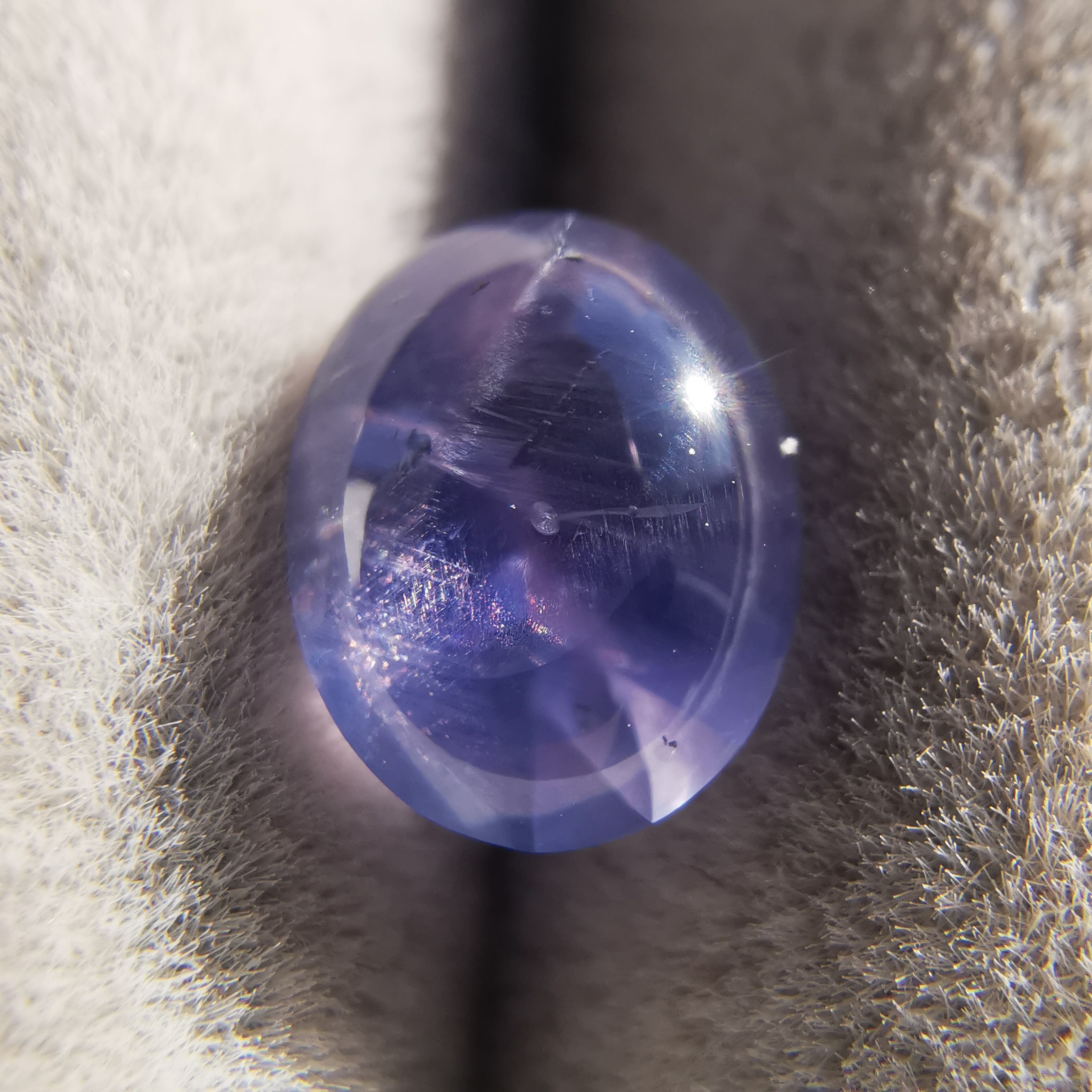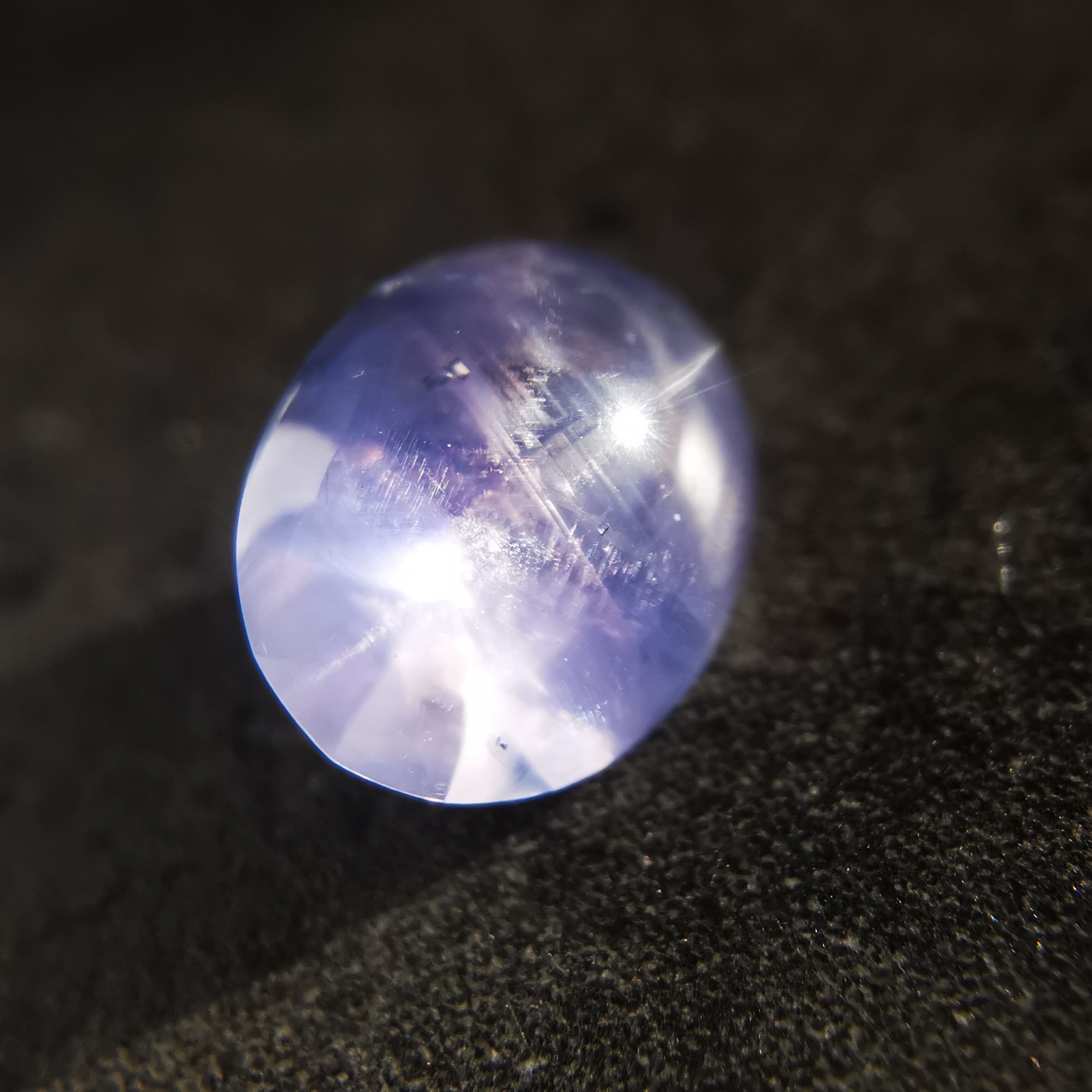 透明度の高いスターサファイアをバフトップカットにすることで、ファセットカットのきらめきと、スター効果/アステリズムを同時に楽しむことができるようになりました。