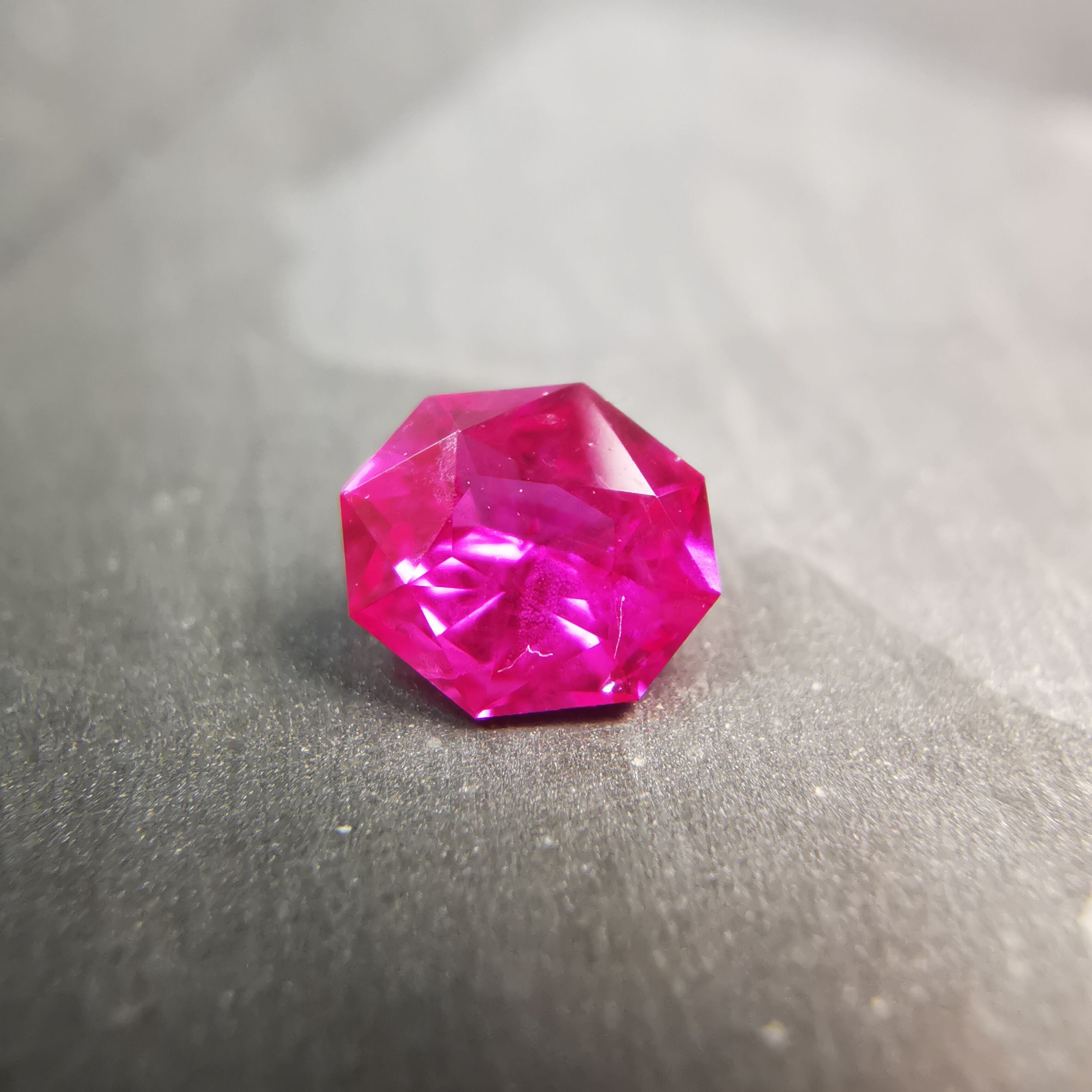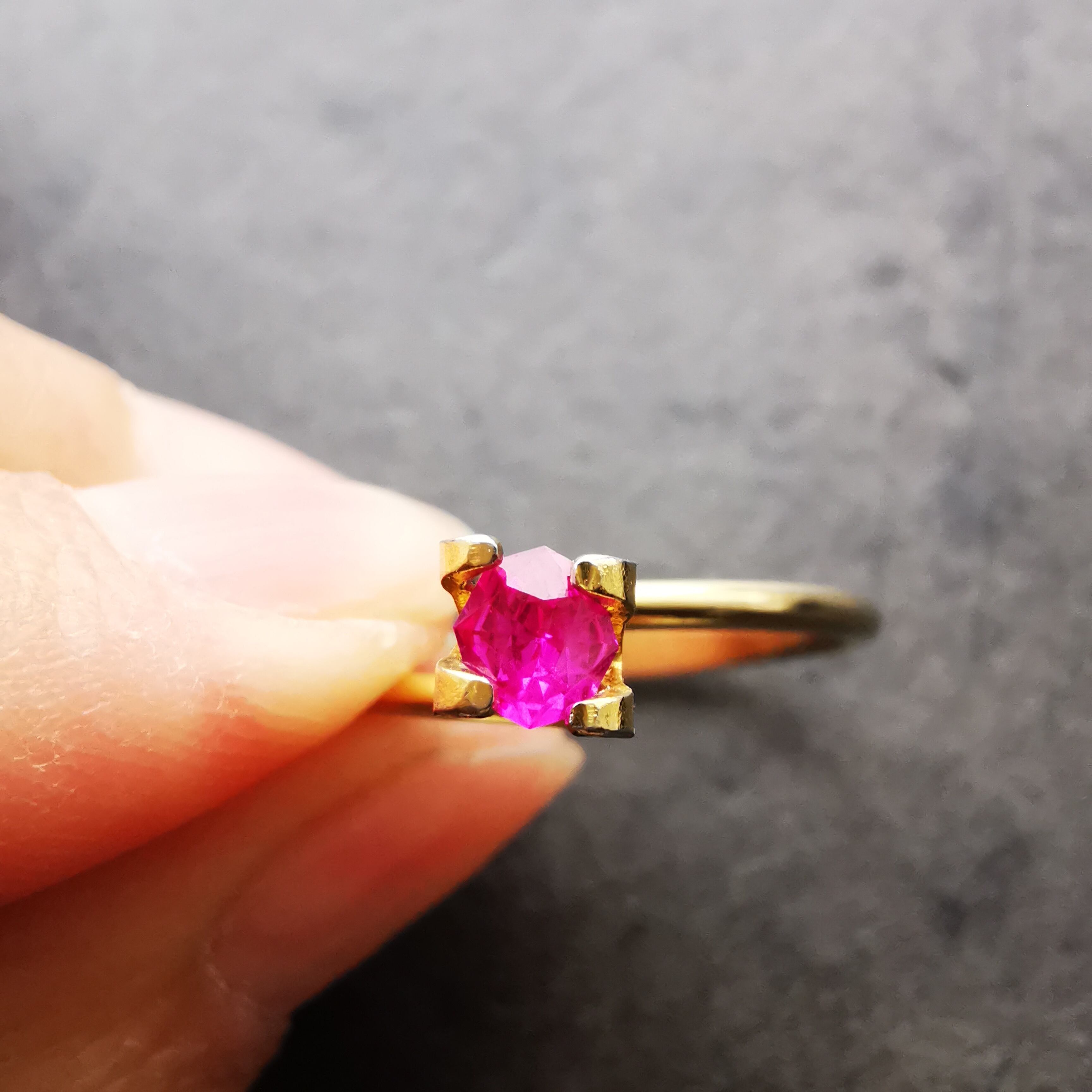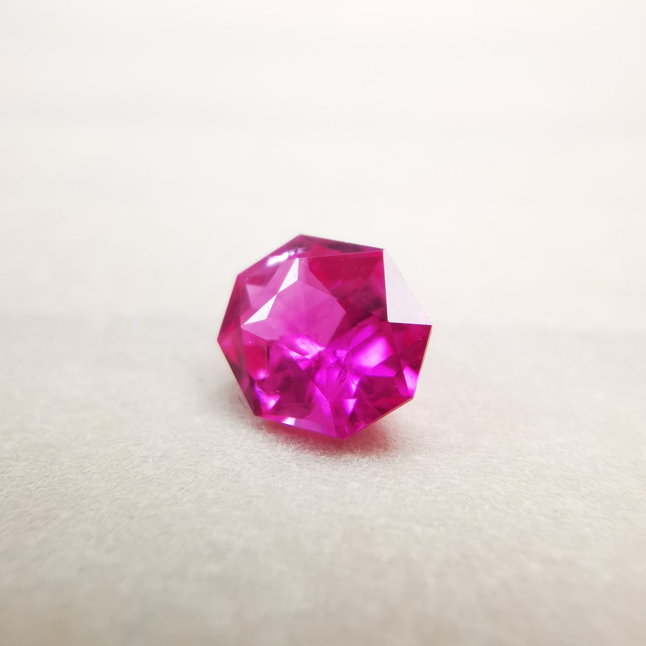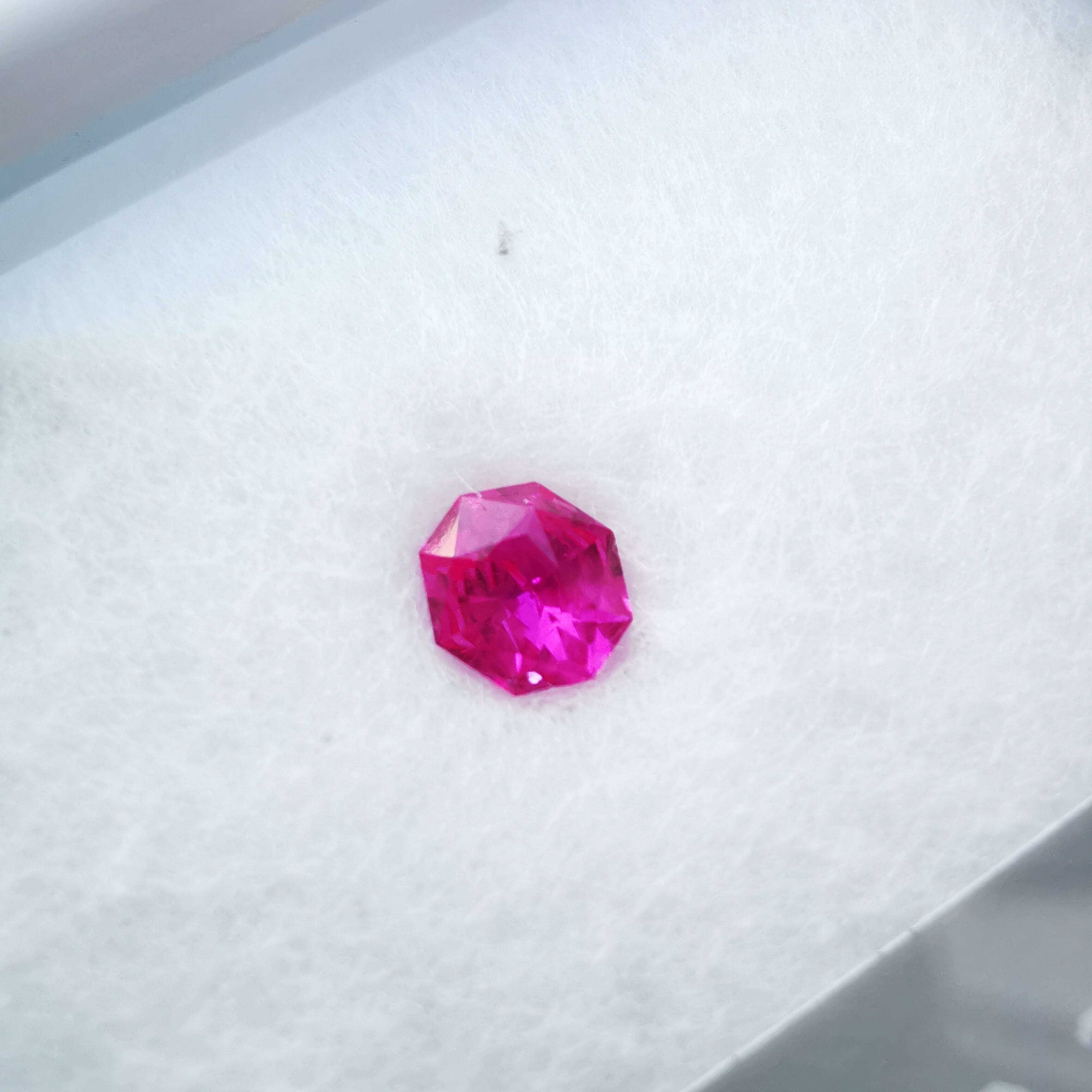 ルビーの色範囲の中でもかなりピンクよりの一石で、飾らずに言うなら、どピンクです。