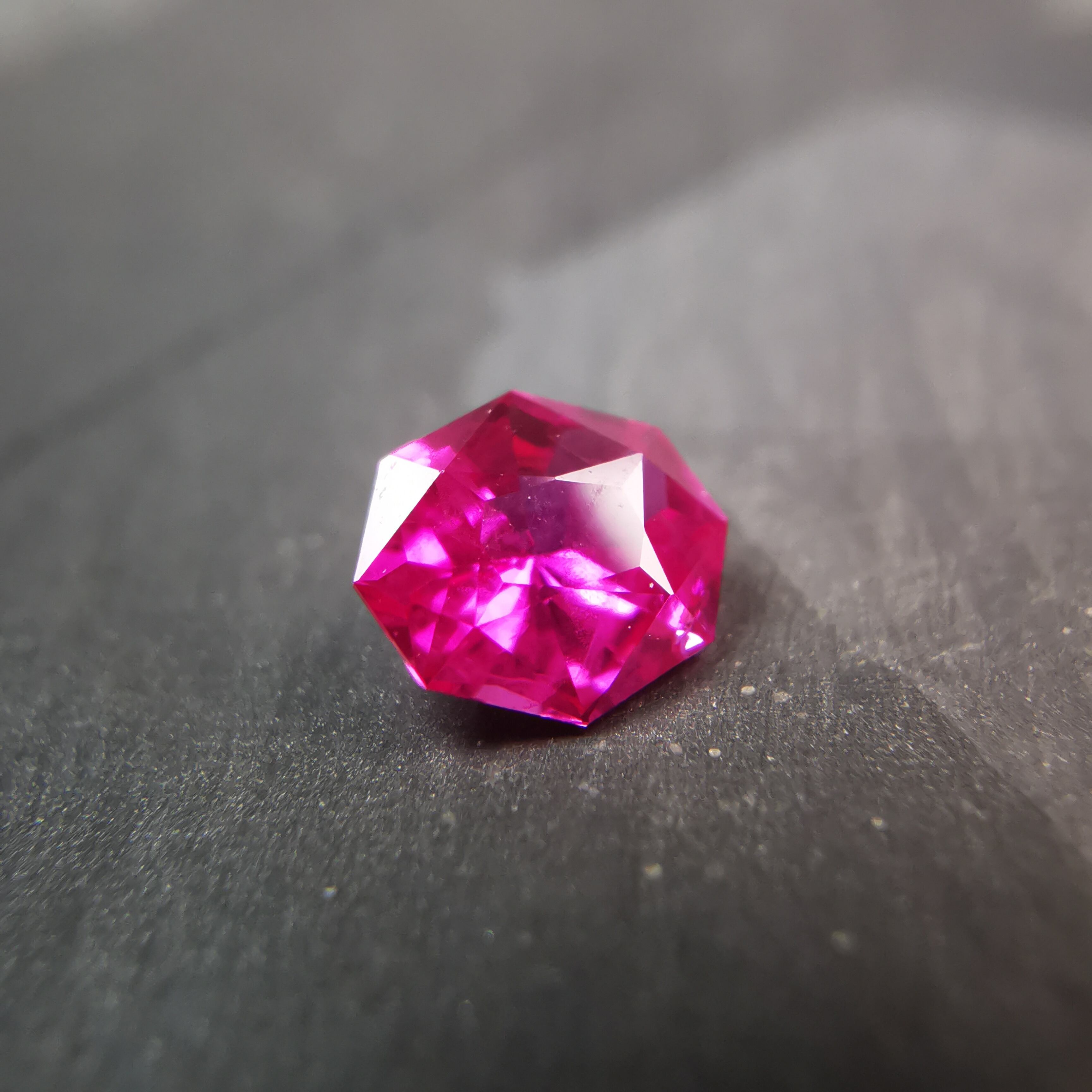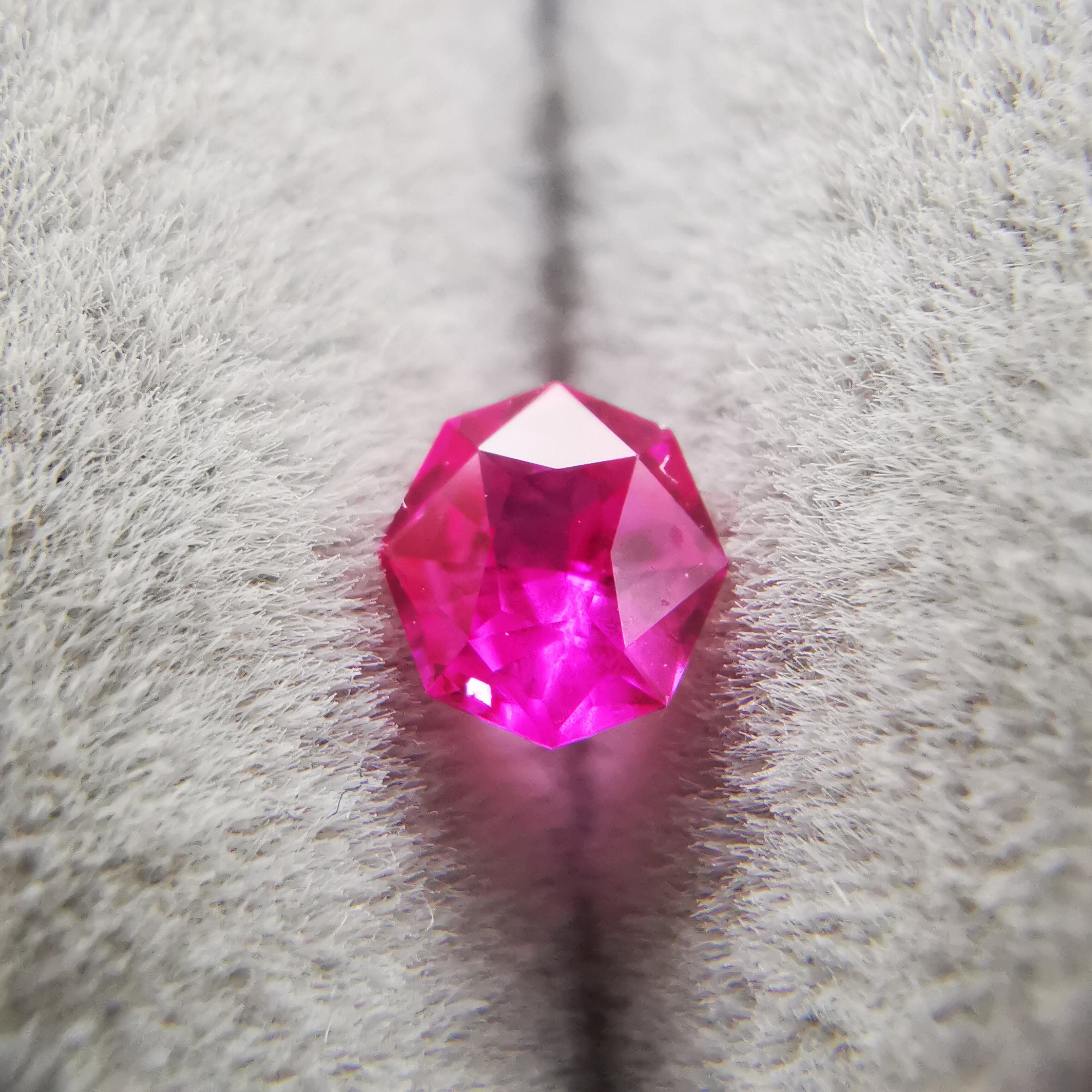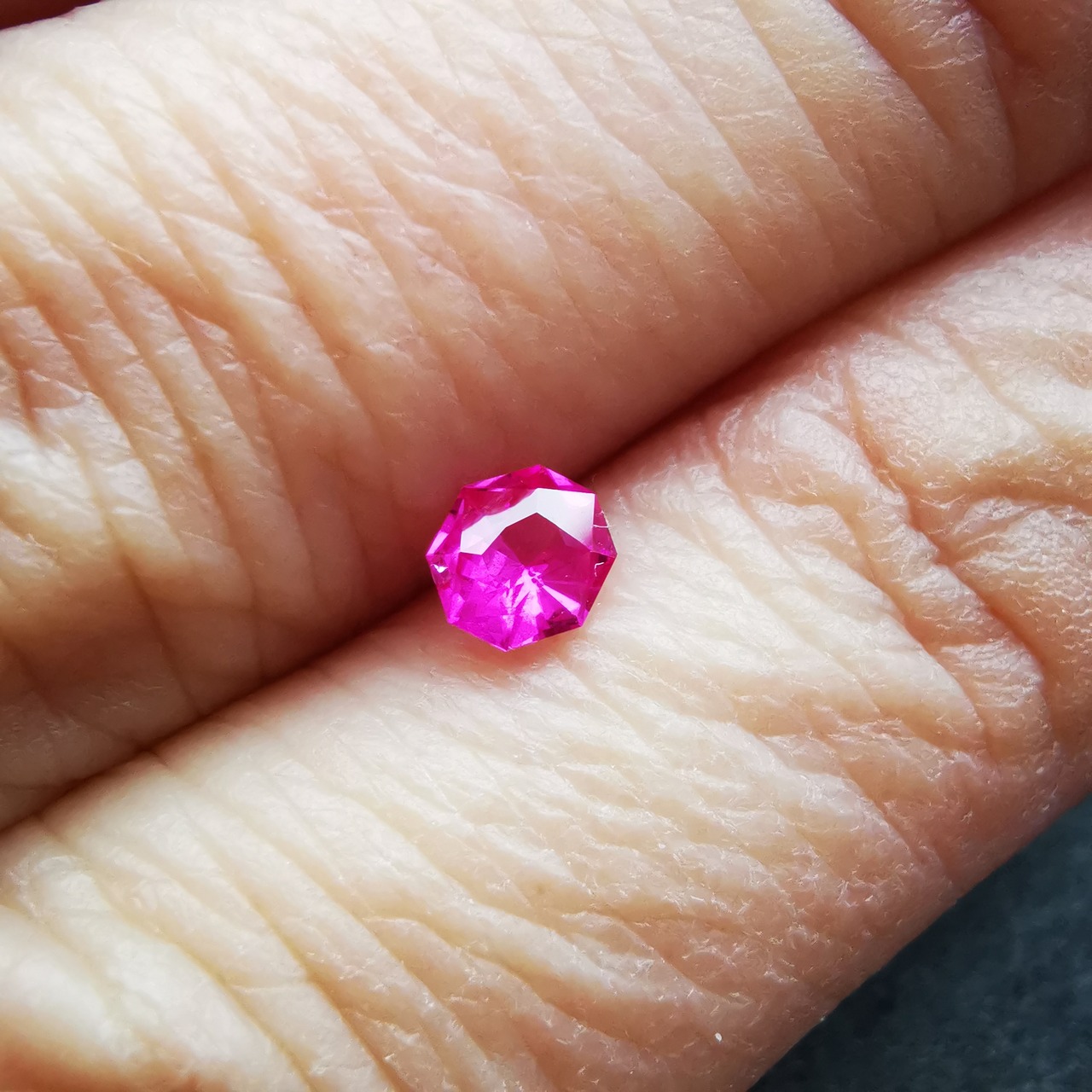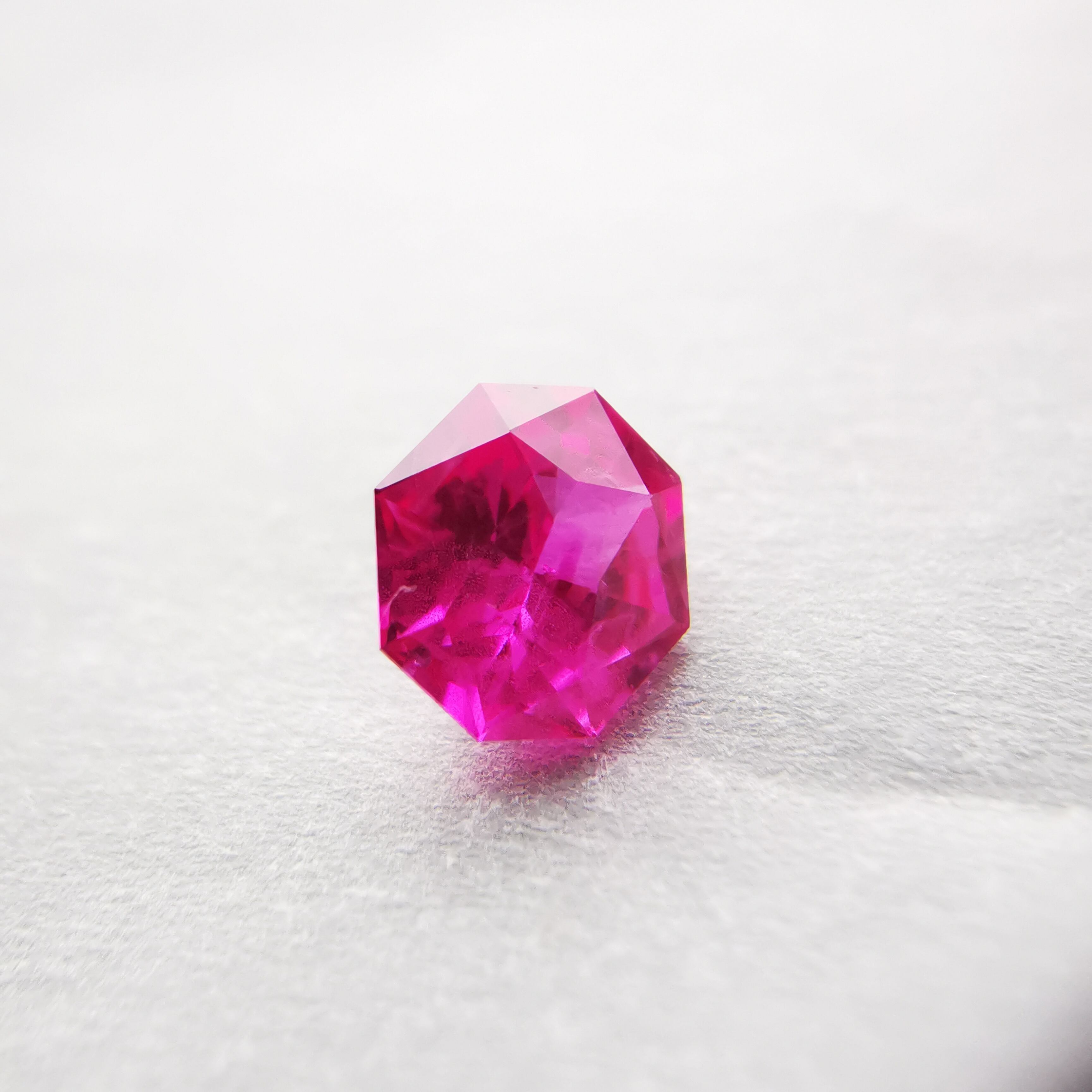 ルビーの色範囲の中でもかなりピンクよりの一石で、飾らずに言うなら、どピンクです。