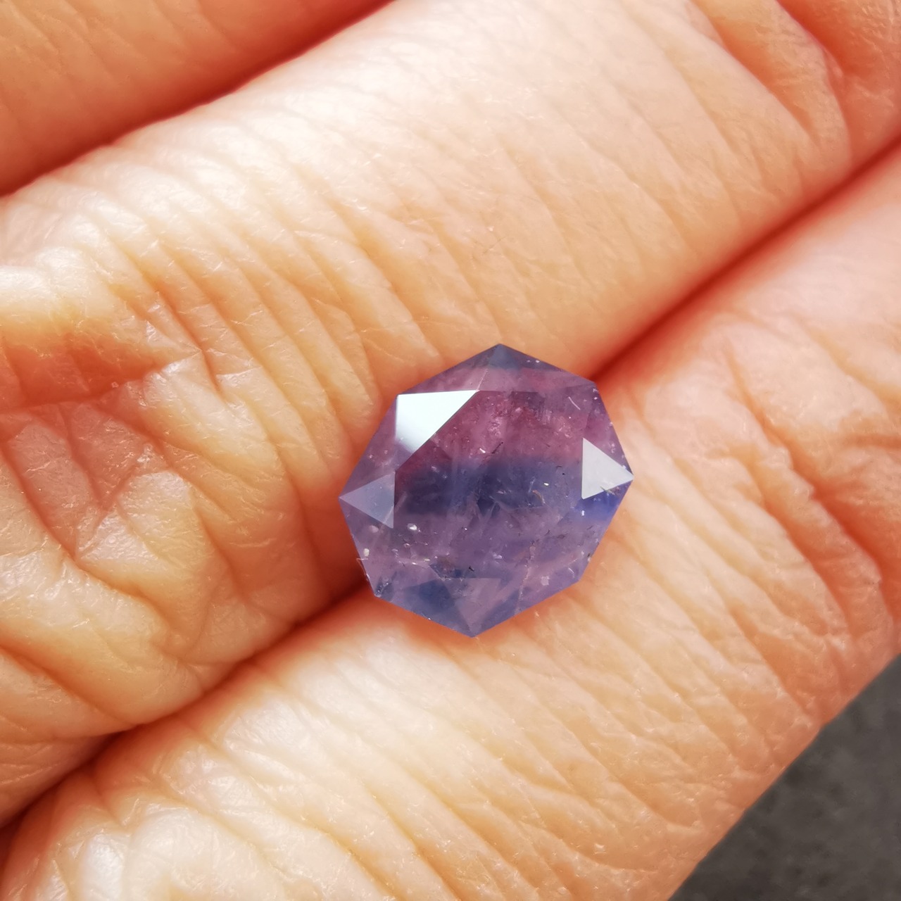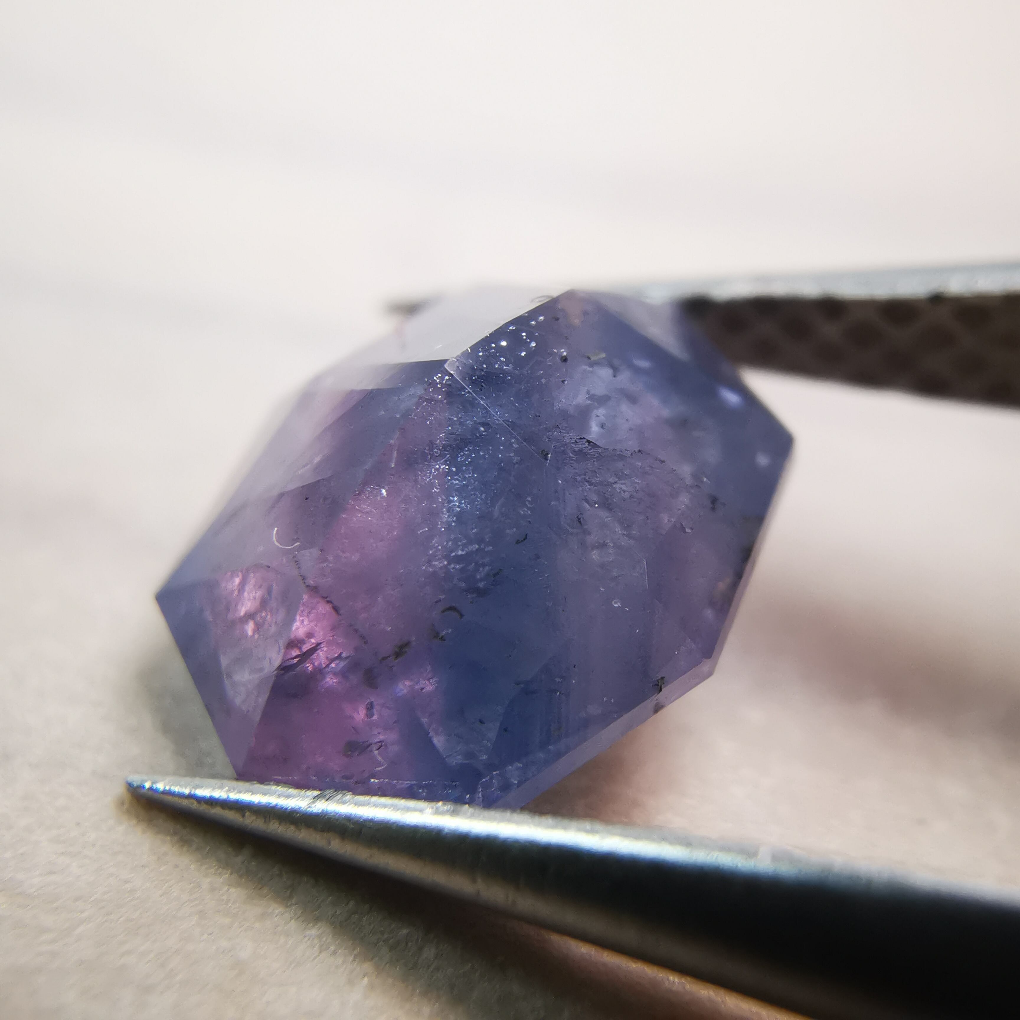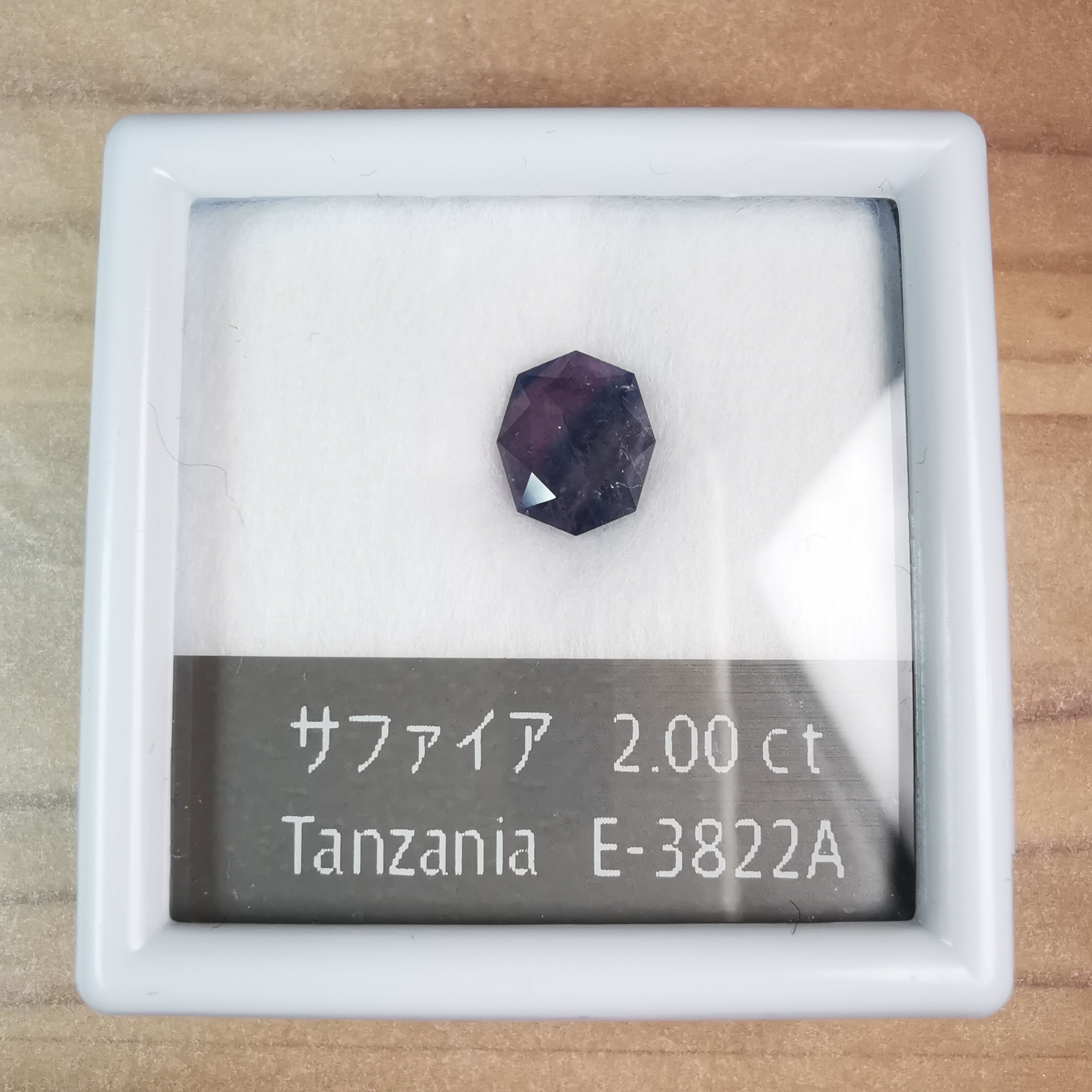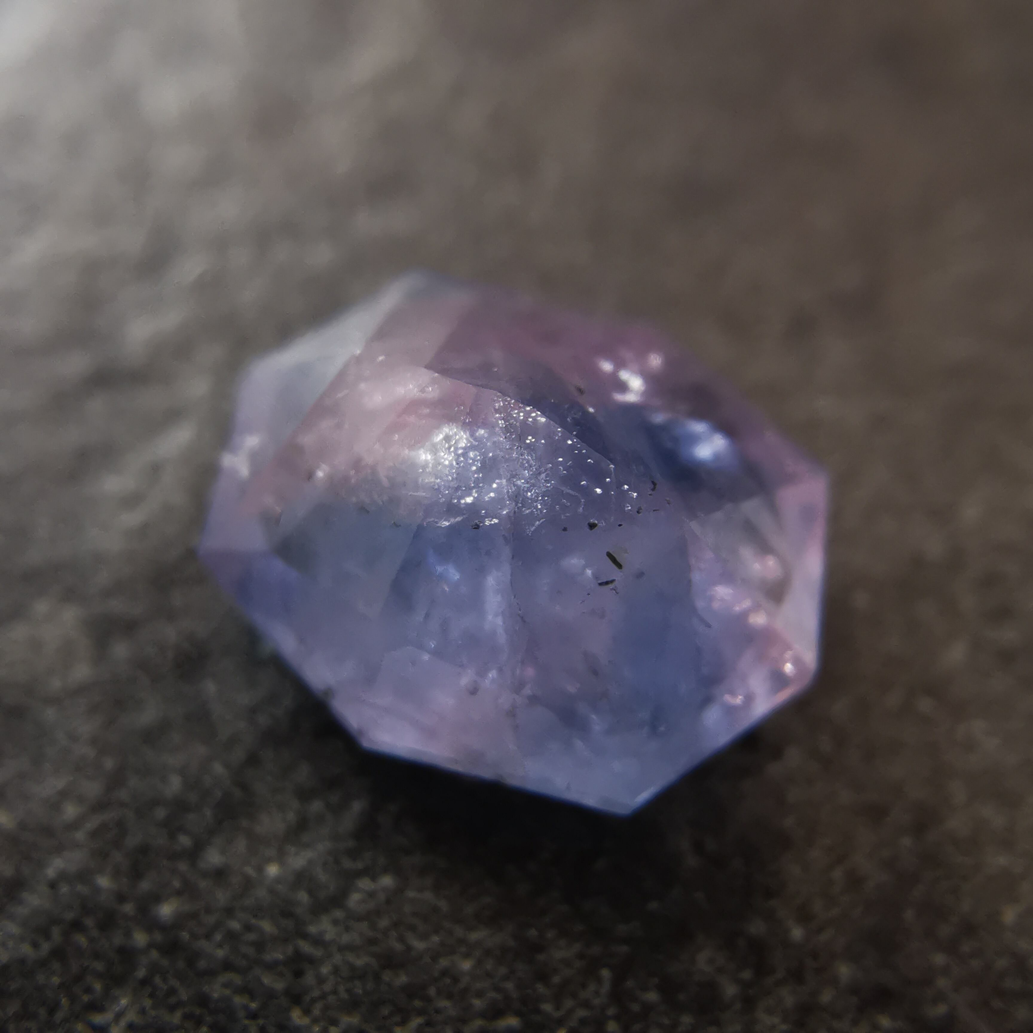 くすんだ青紫/鳩羽色に、濃い青紫/紺藍色の模様が入ったサファイアです。