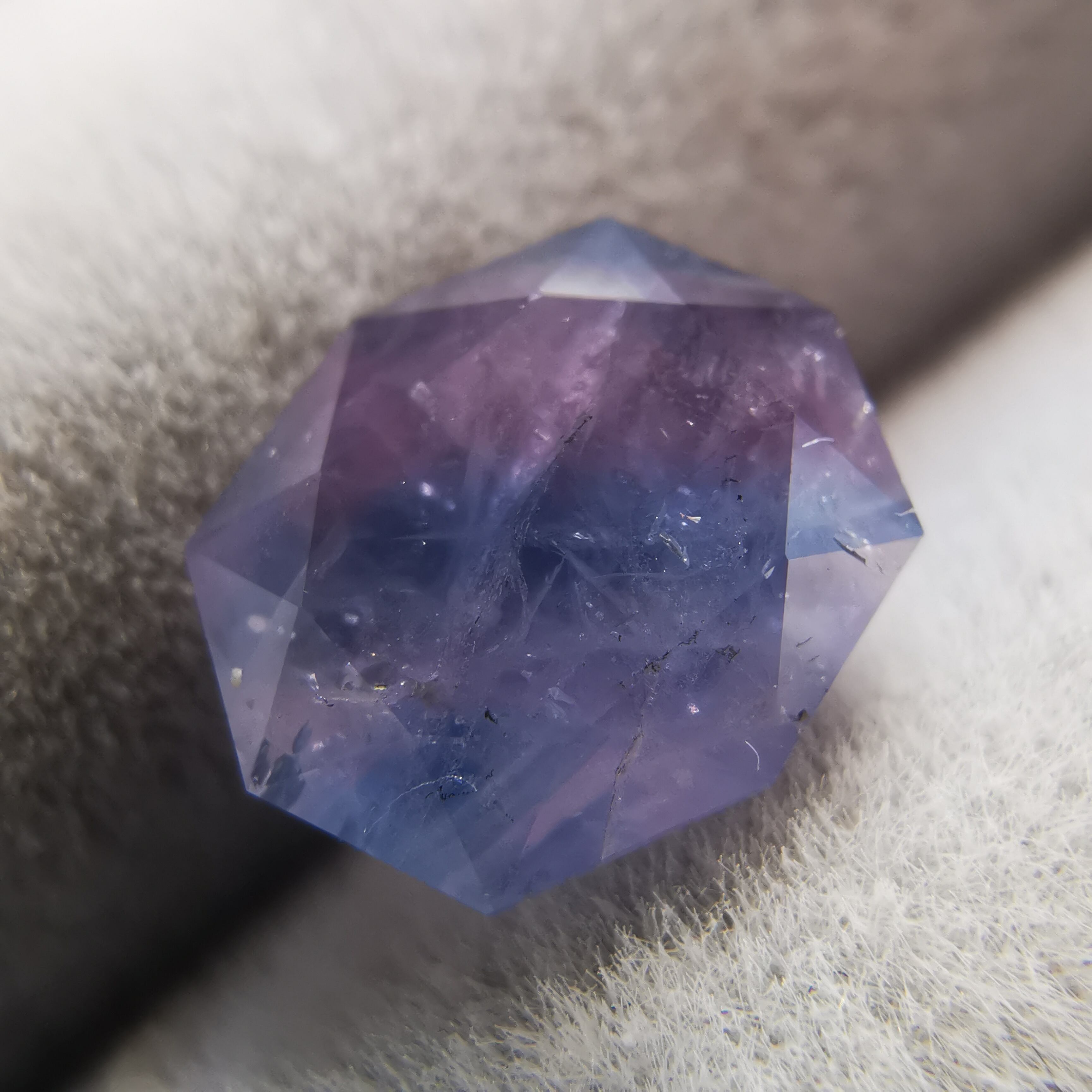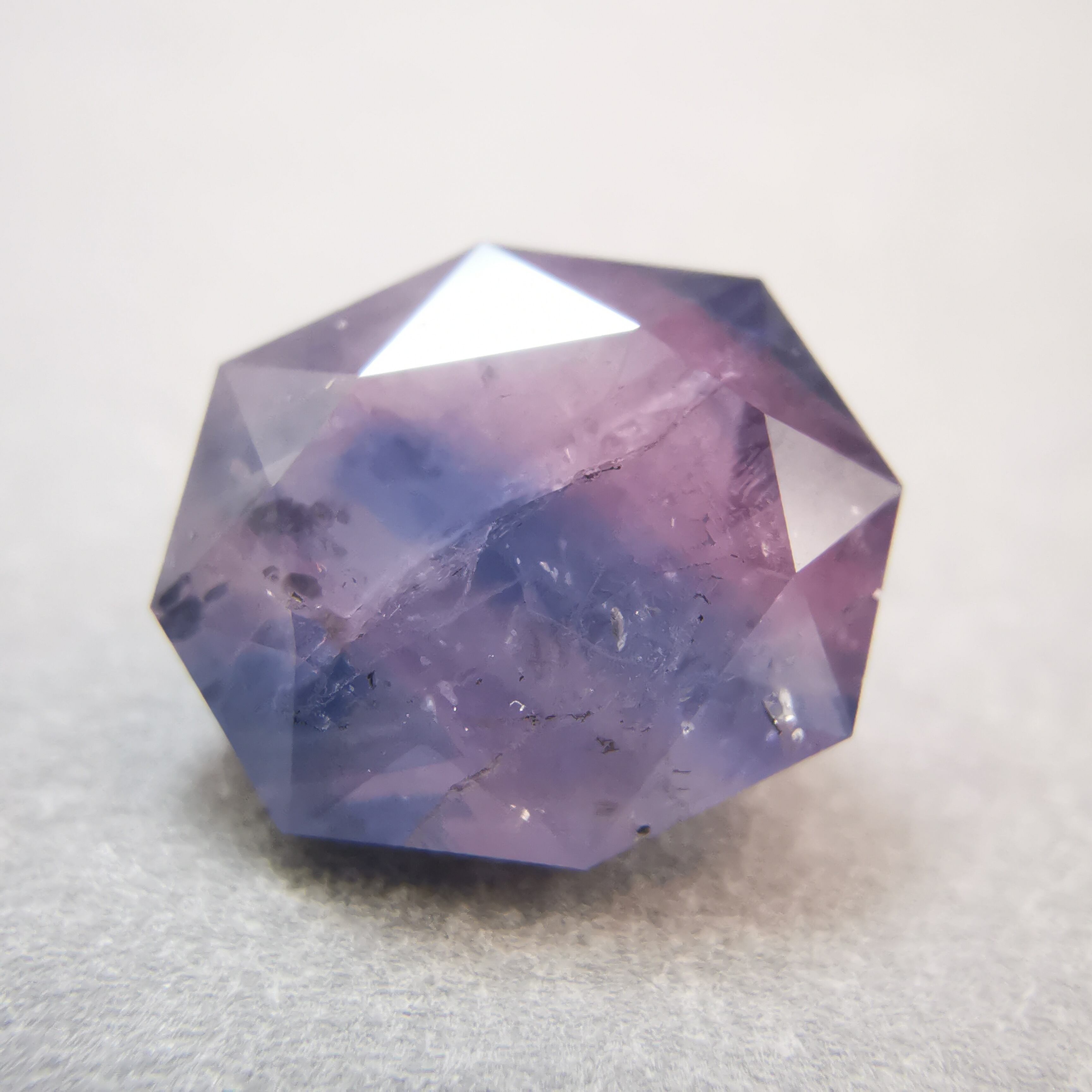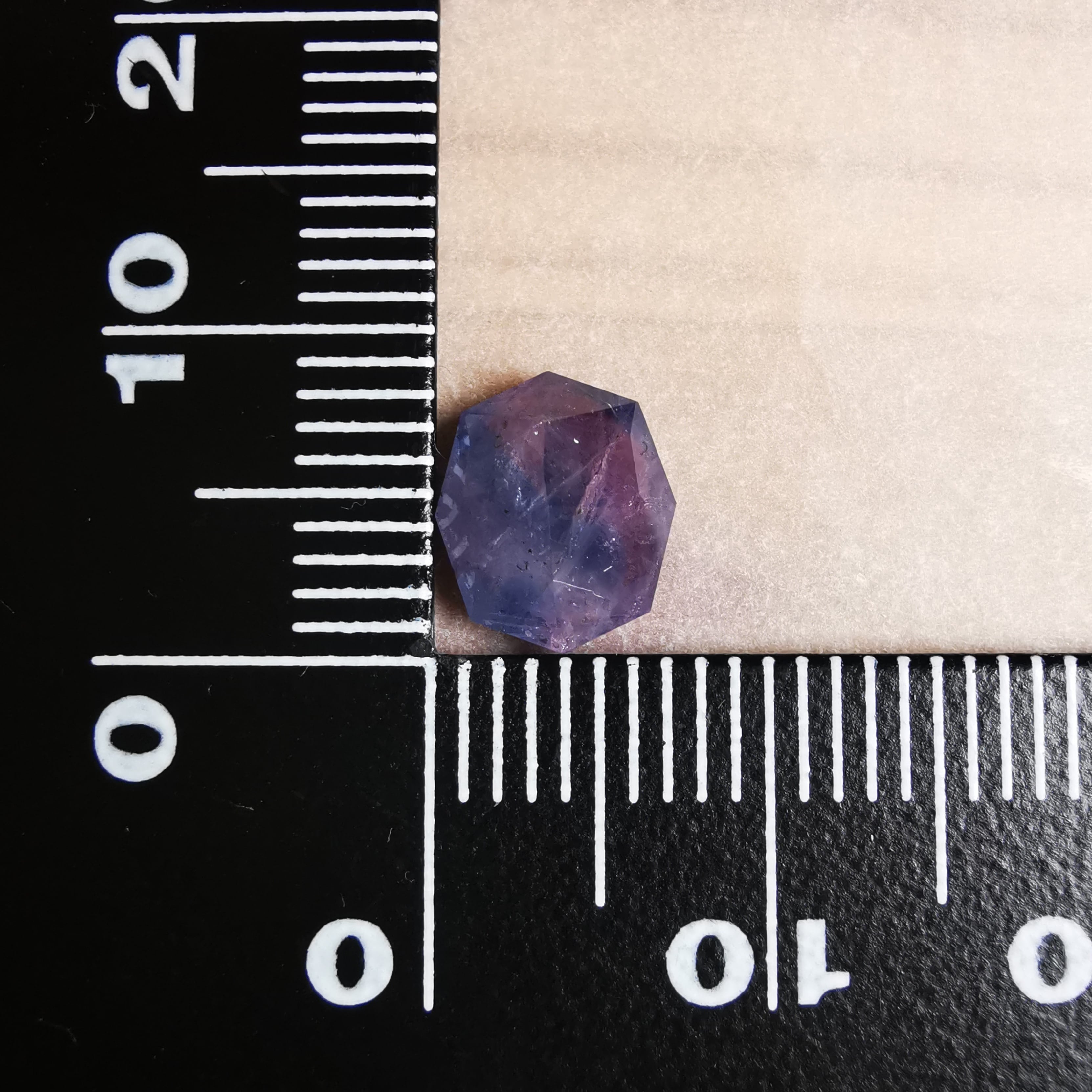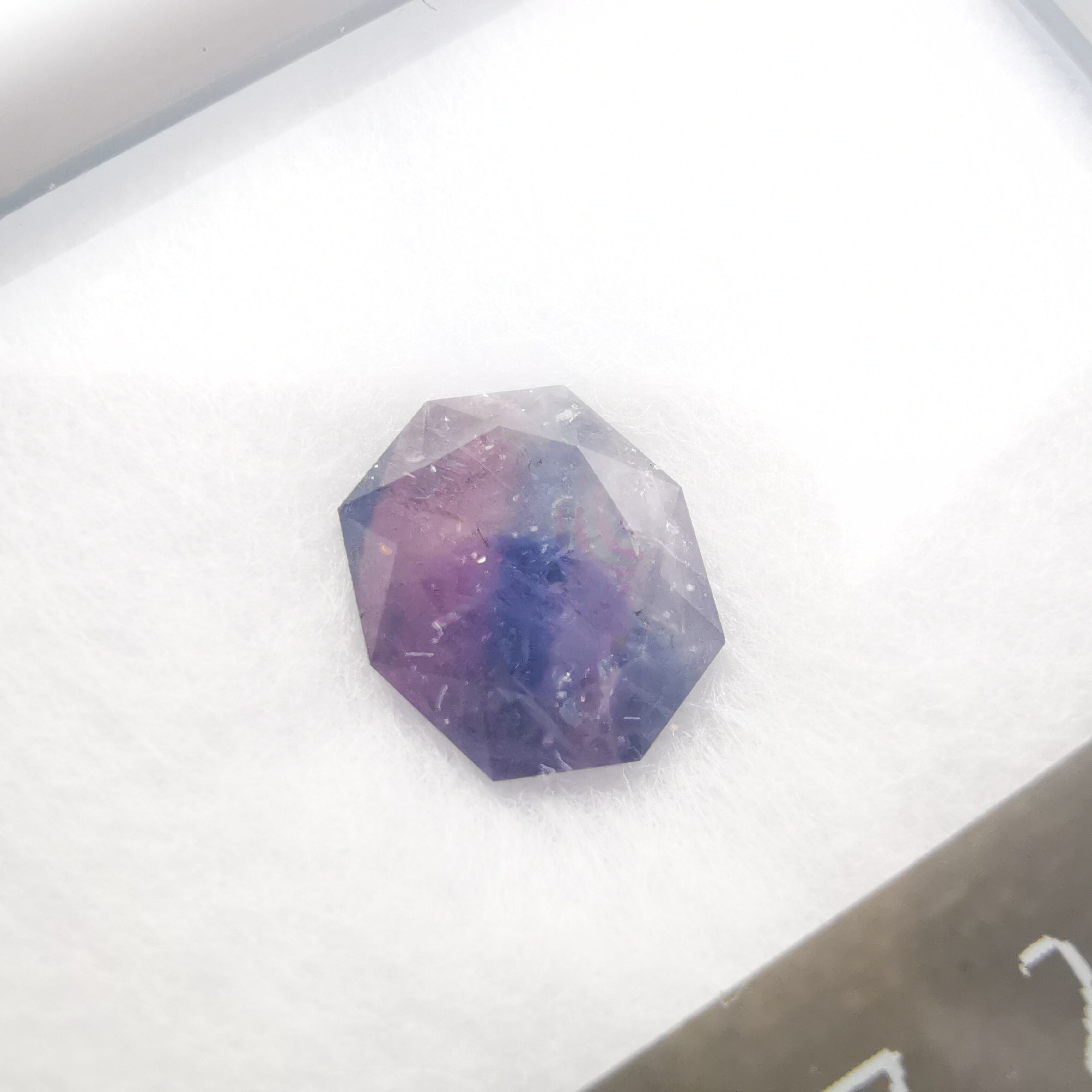 くすんだ青紫/鳩羽色に、濃い青紫/紺藍色の模様が入ったサファイアです。