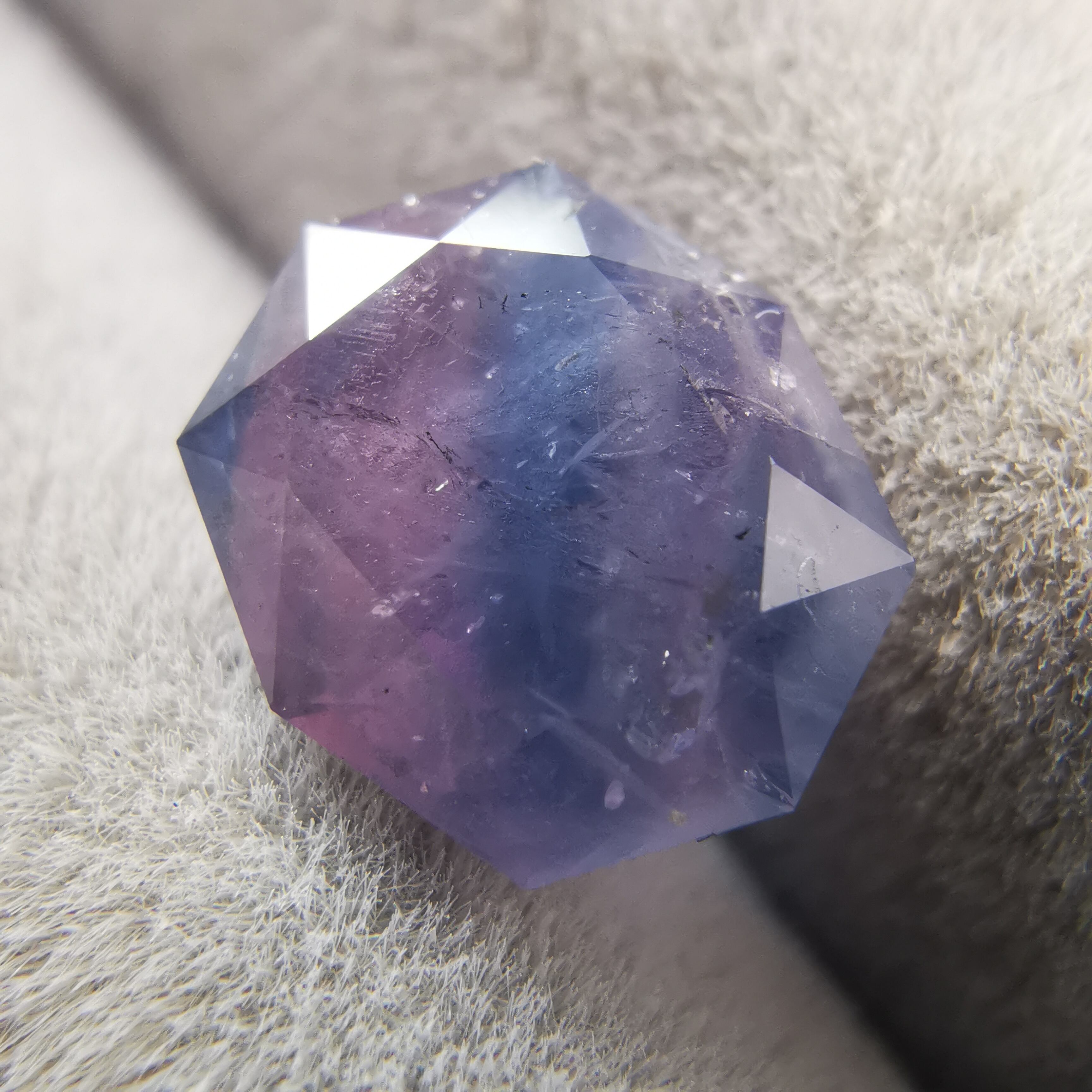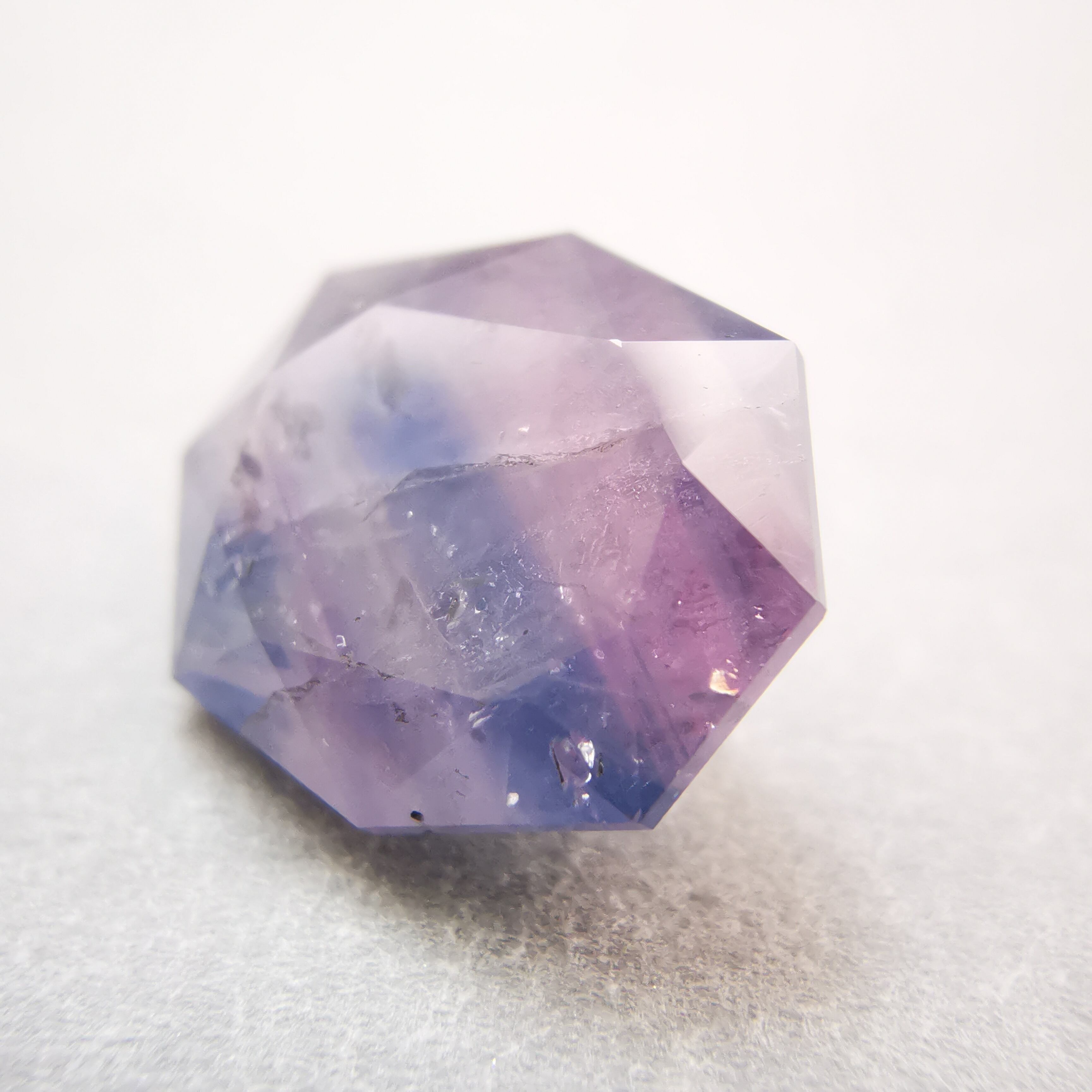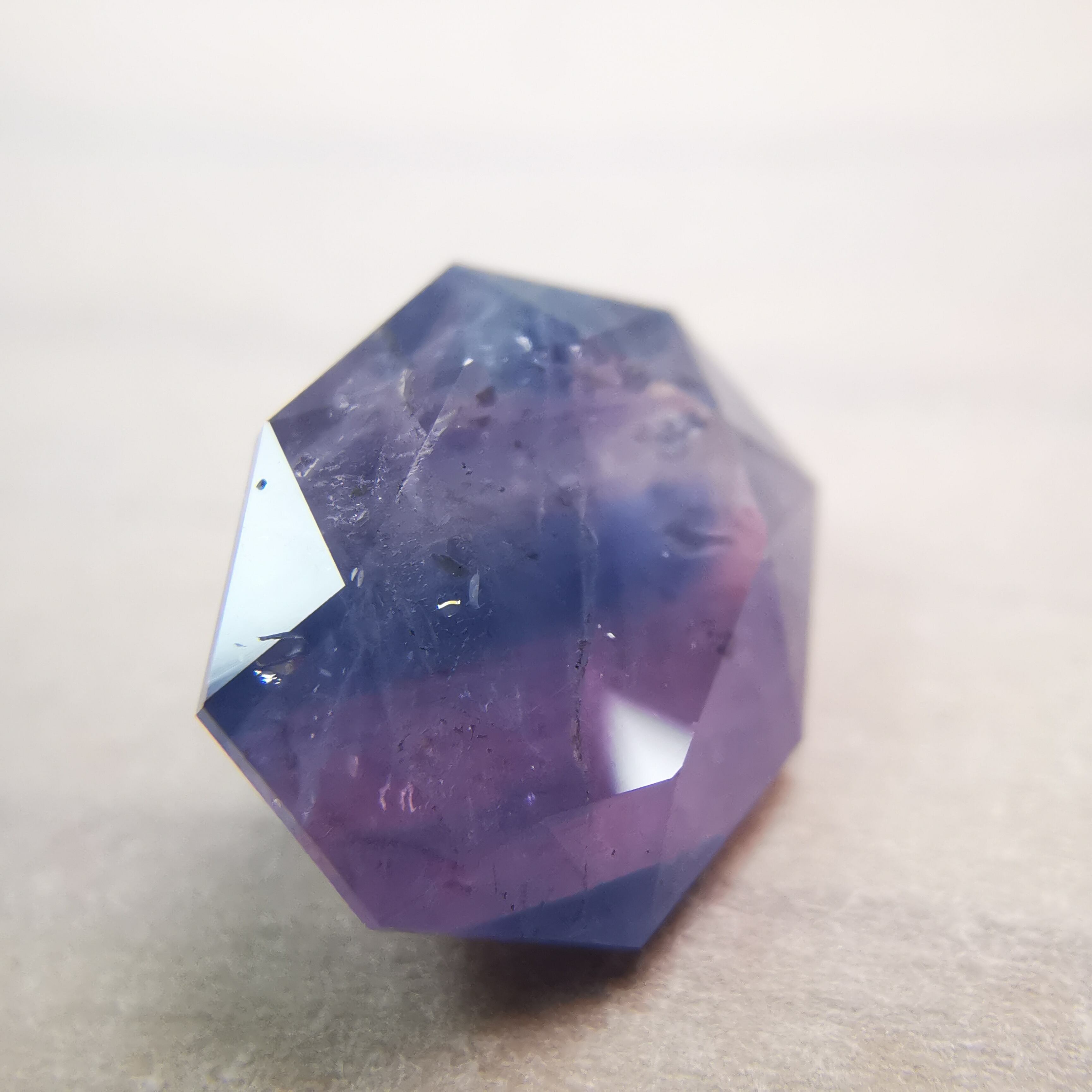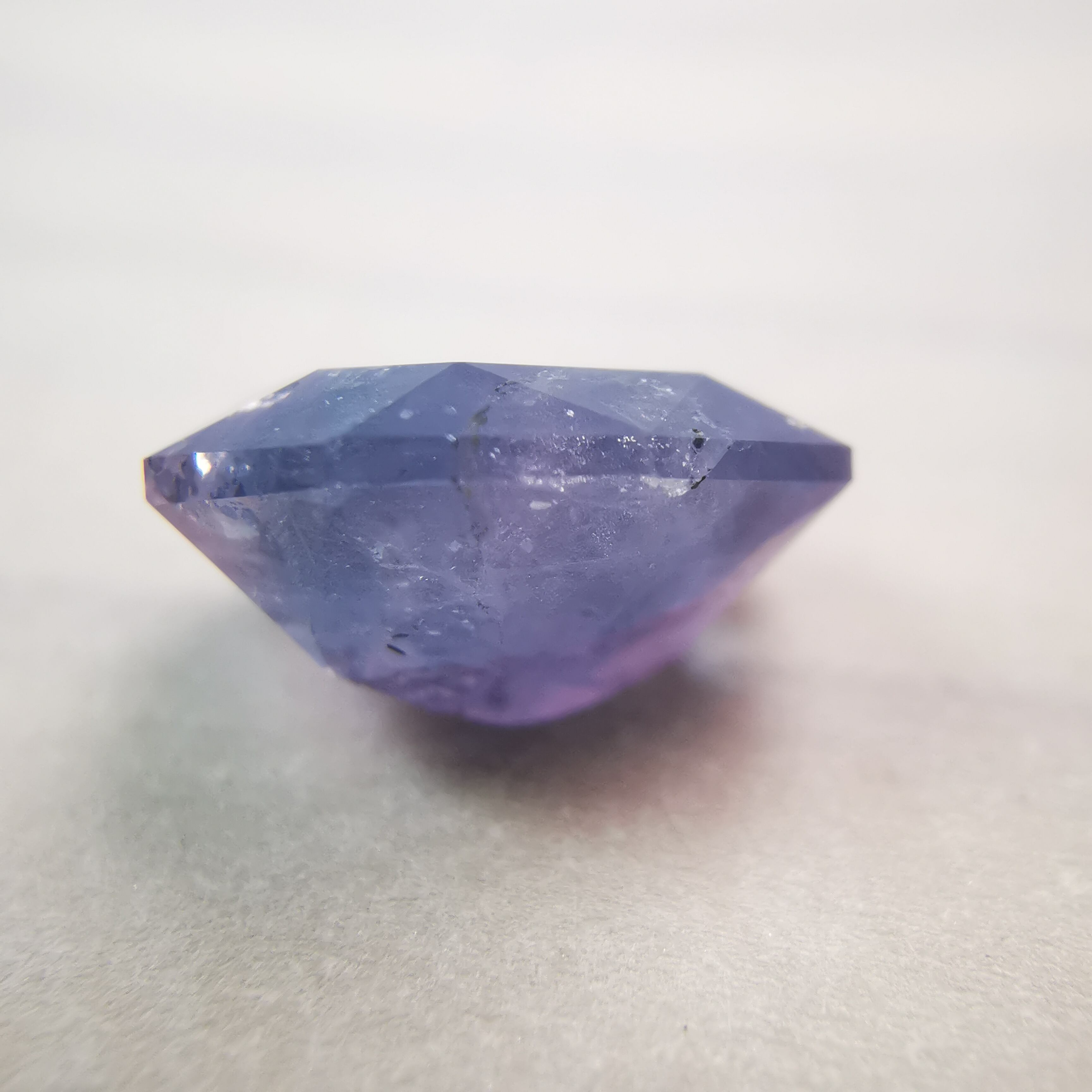 くすんだ青紫/鳩羽色に、濃い青紫/紺藍色の模様が入ったサファイアです。