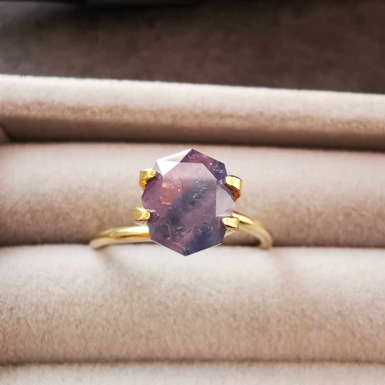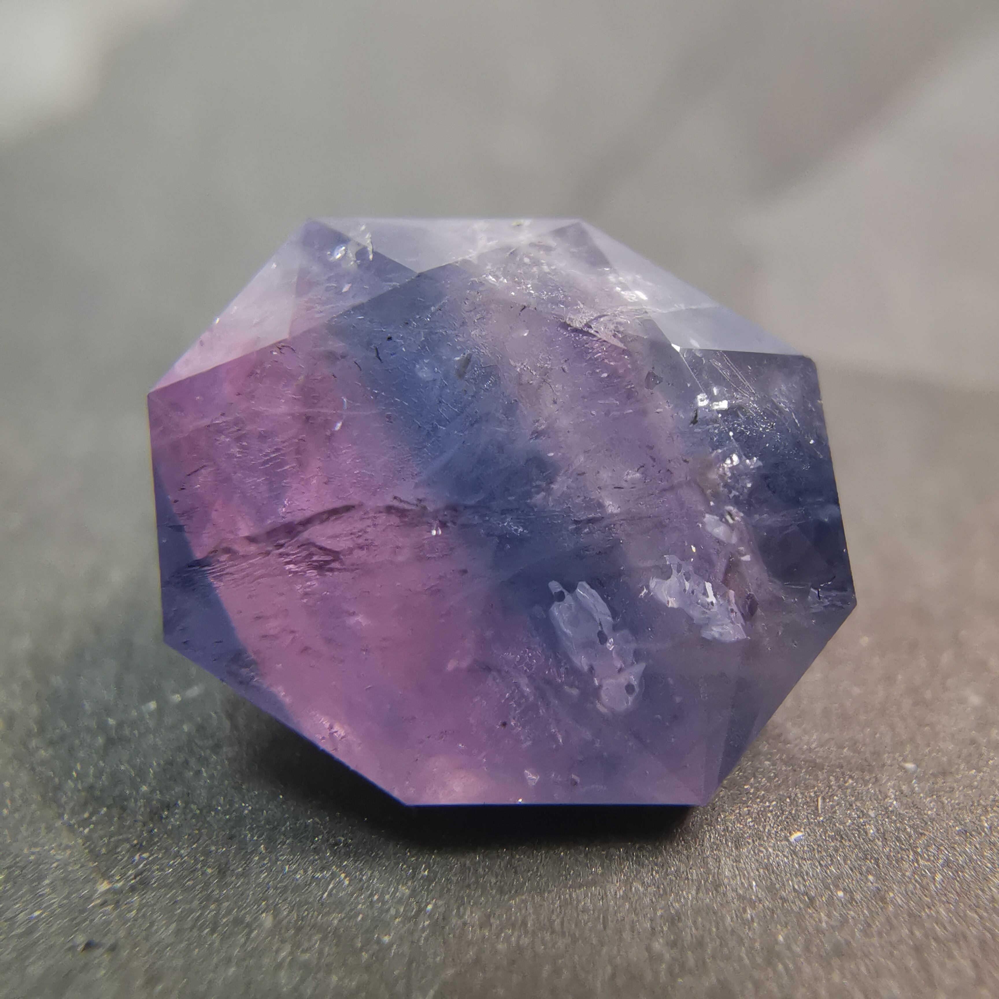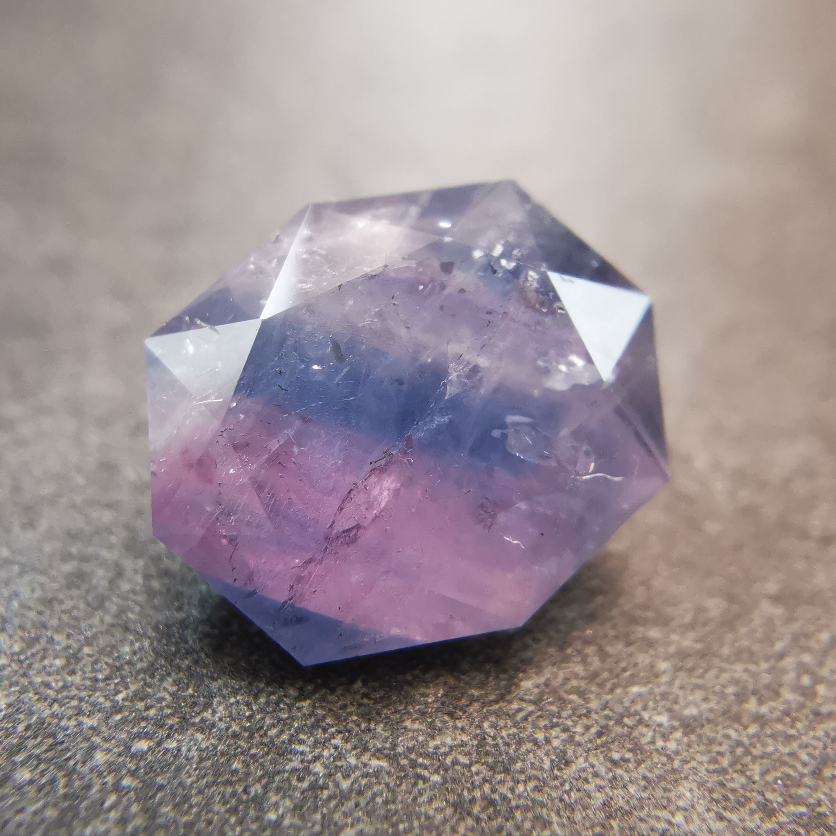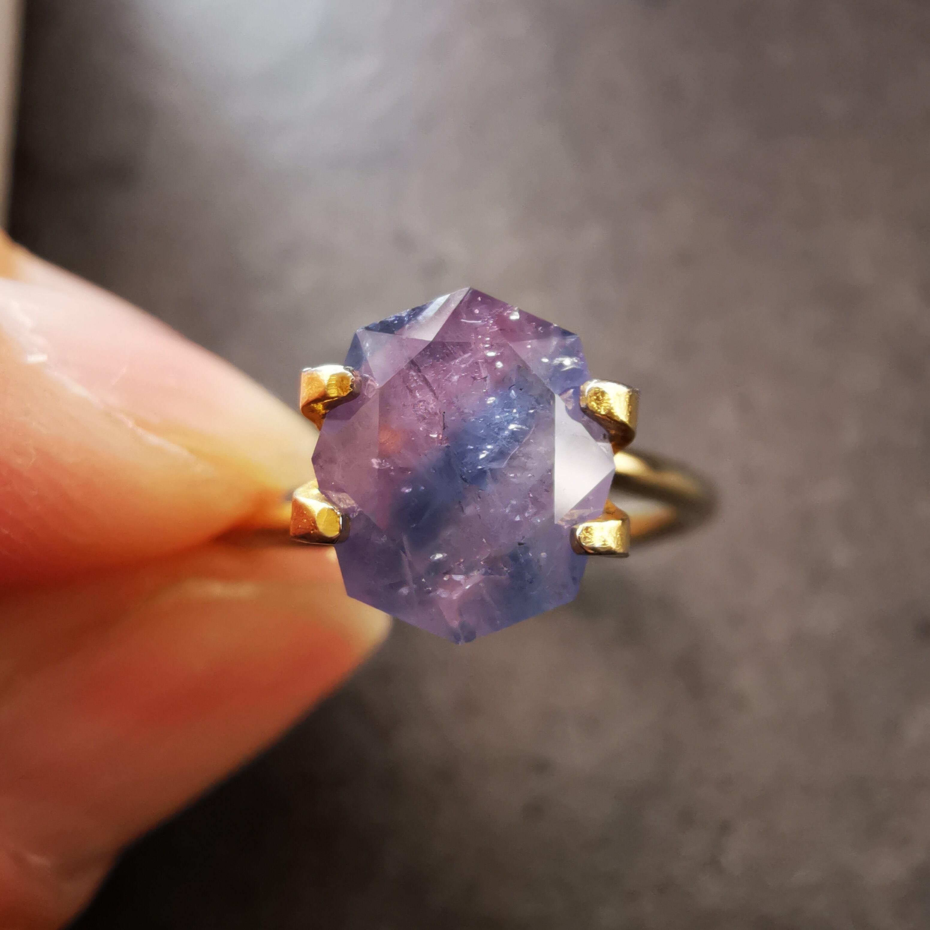 くすんだ青紫/鳩羽色に、濃い青紫/紺藍色の模様が入ったサファイアです。