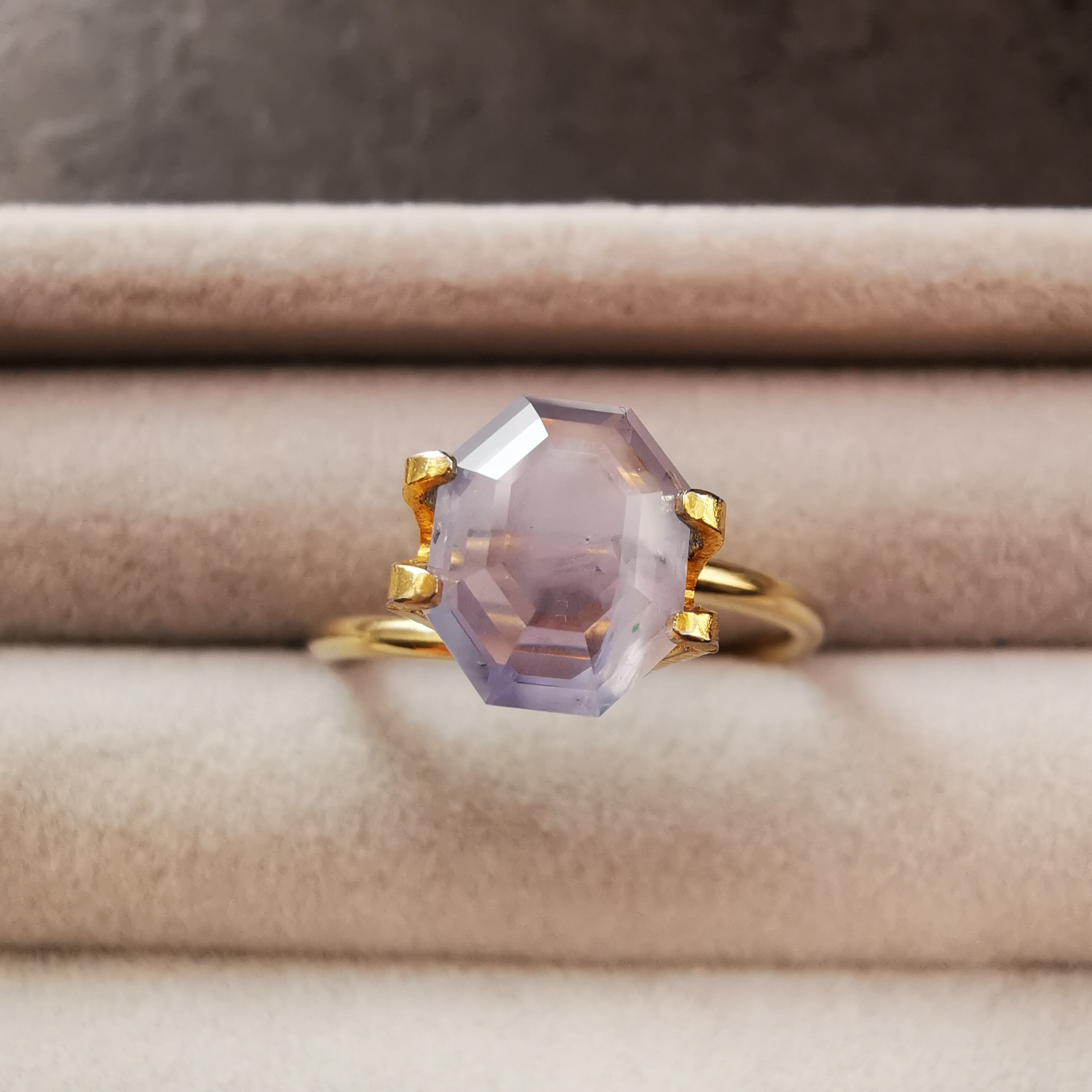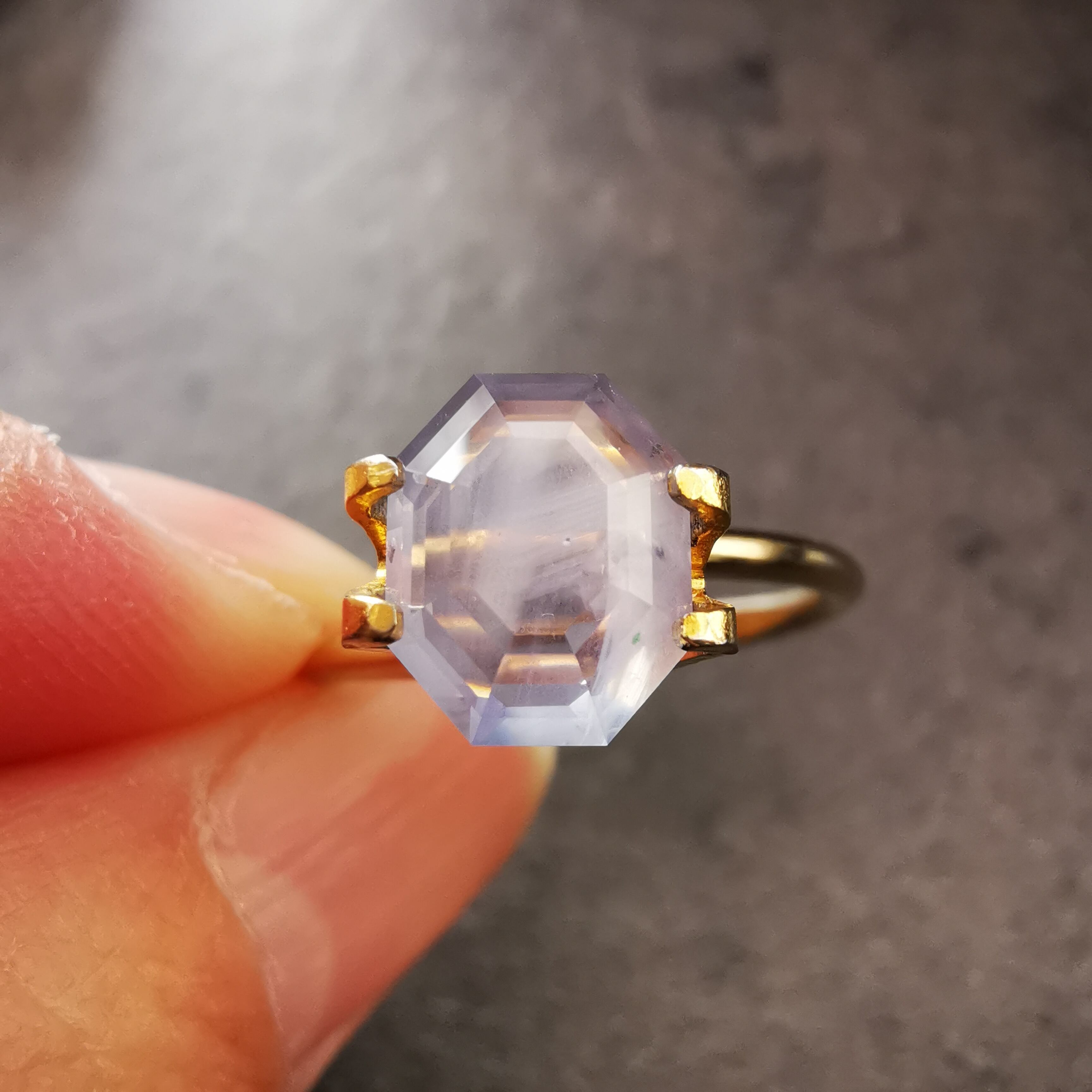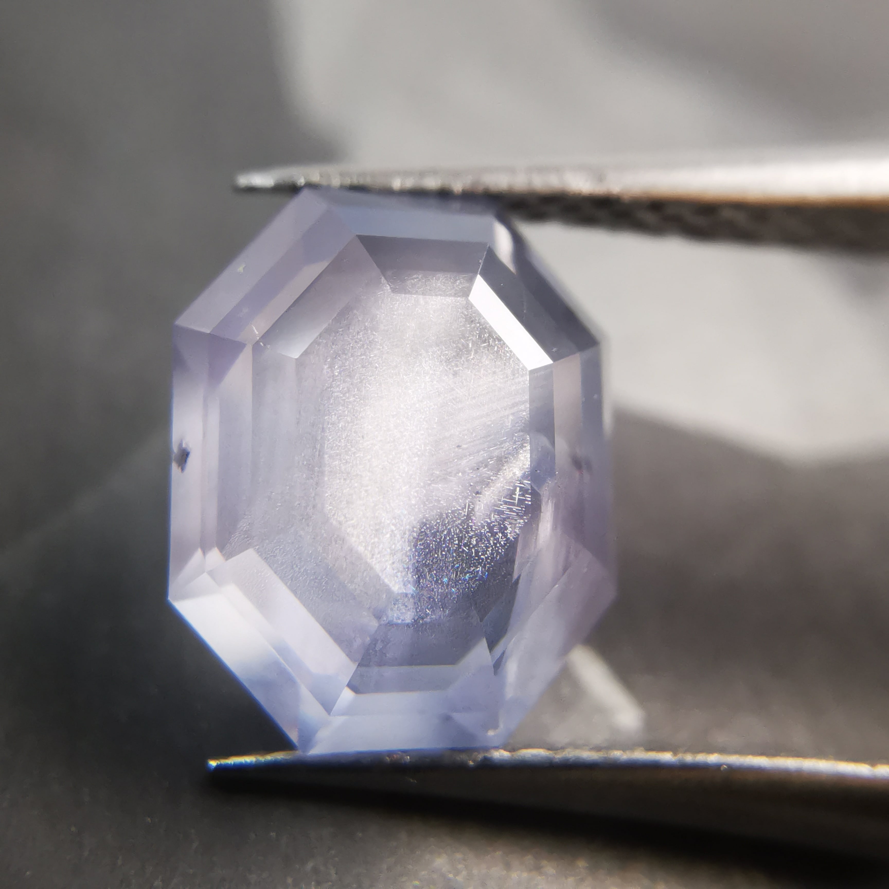 ごく淡いやわらかい青みの紫/クロッカス色のサファイアです。