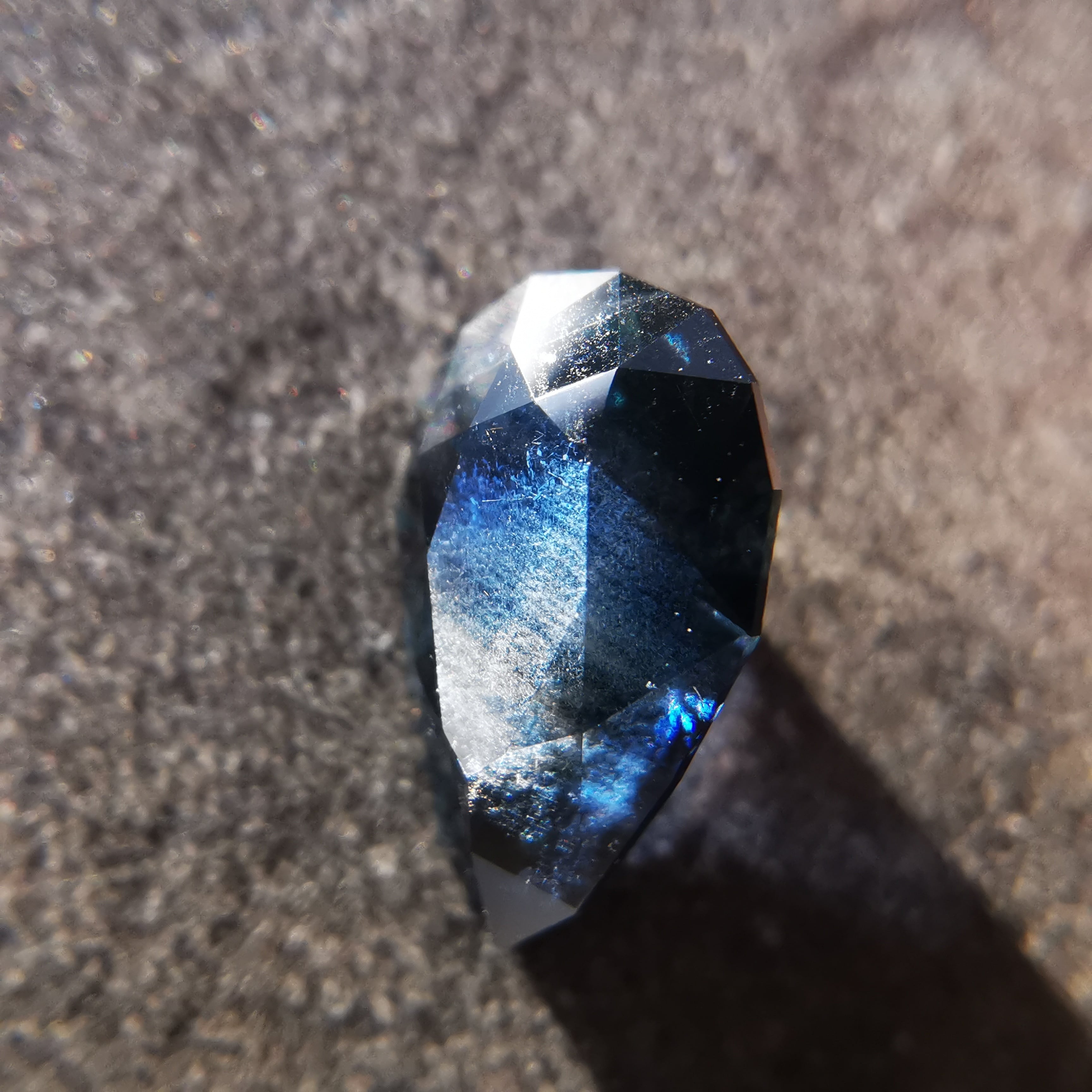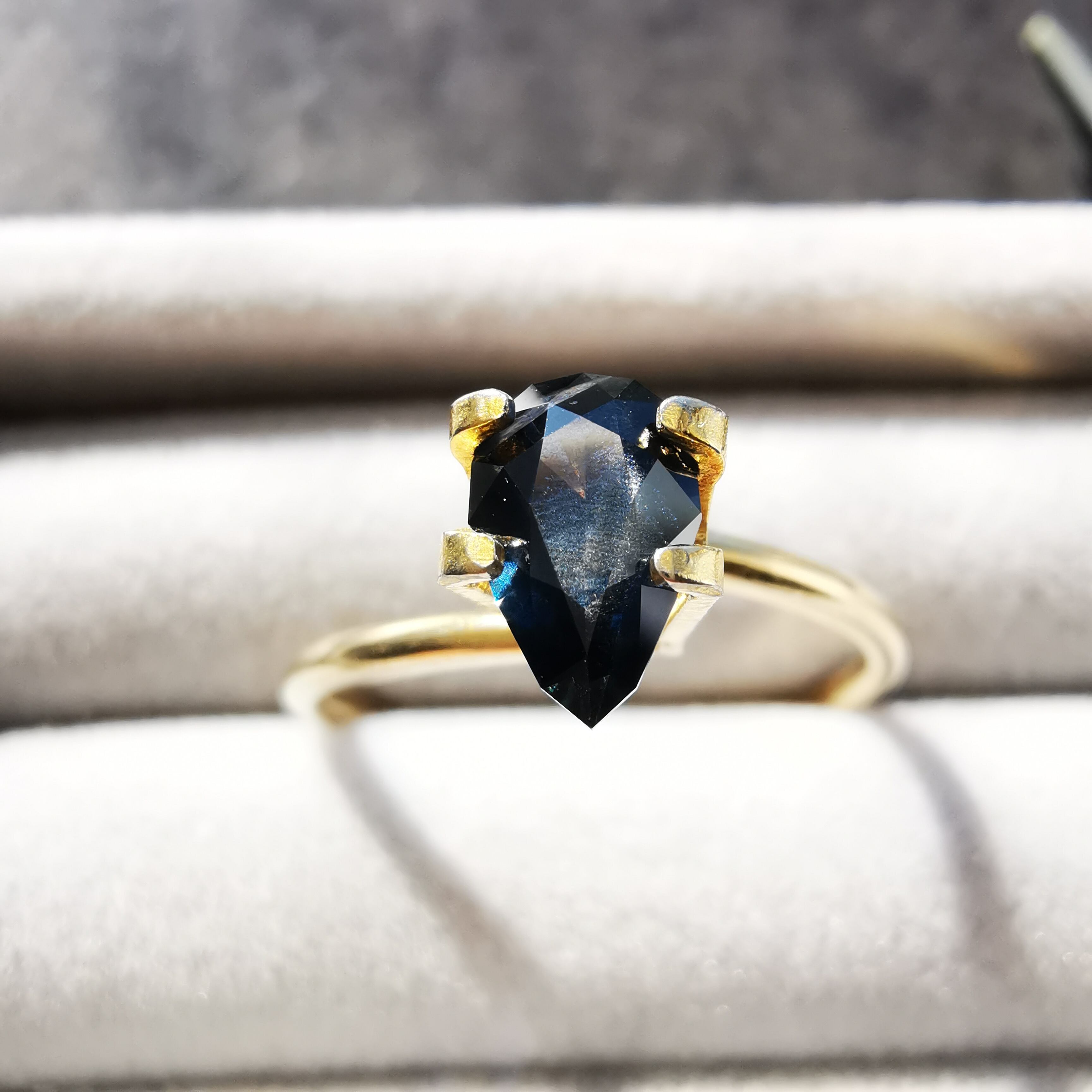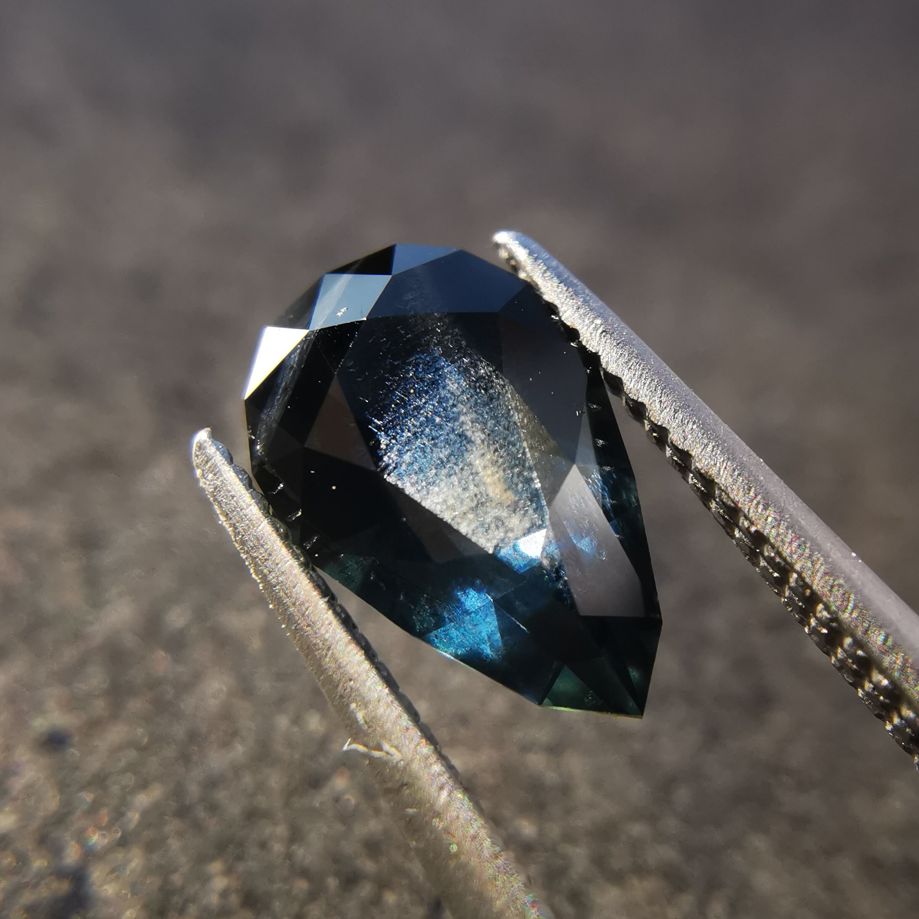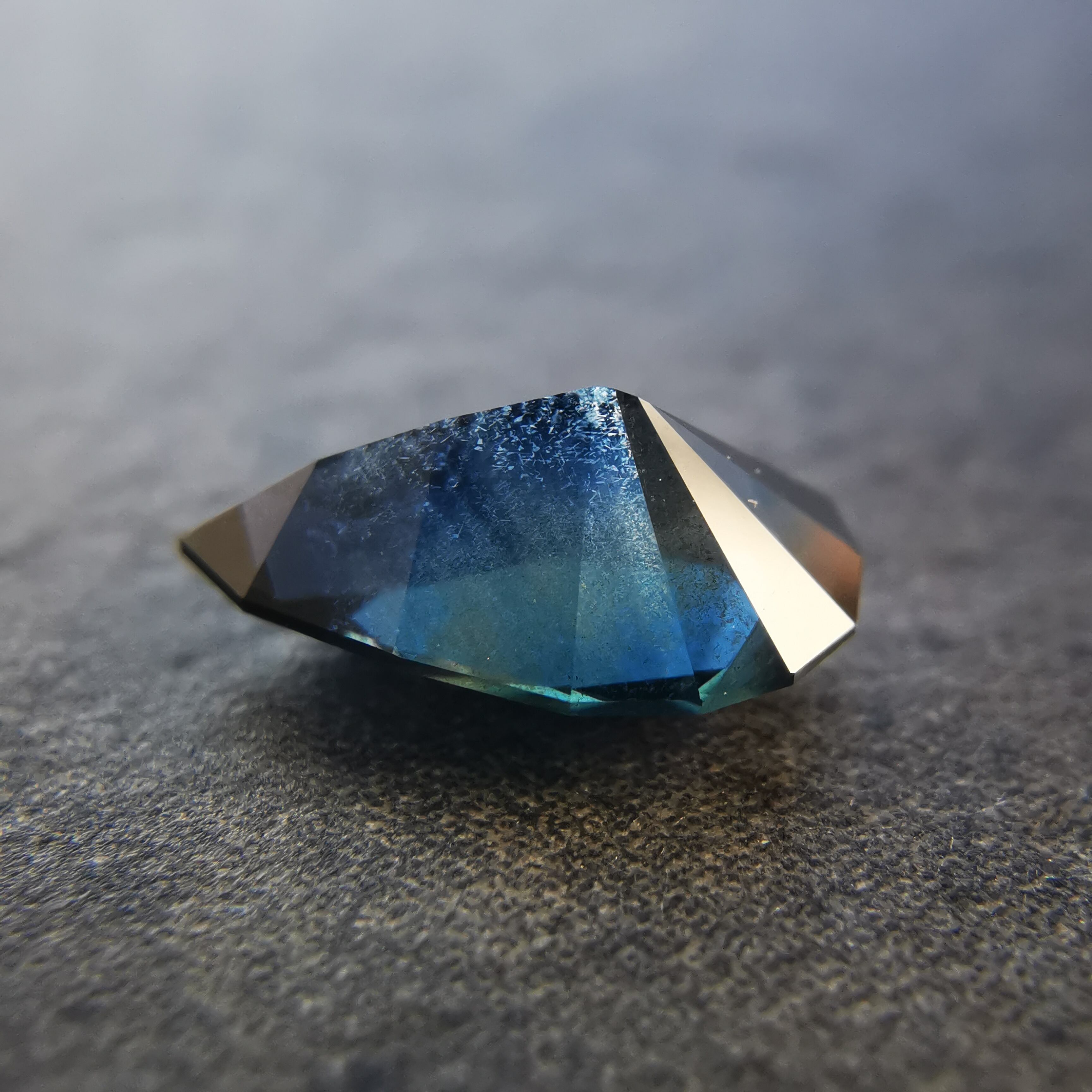 夜を思わせる、暗いティールカラーのサファイアです。