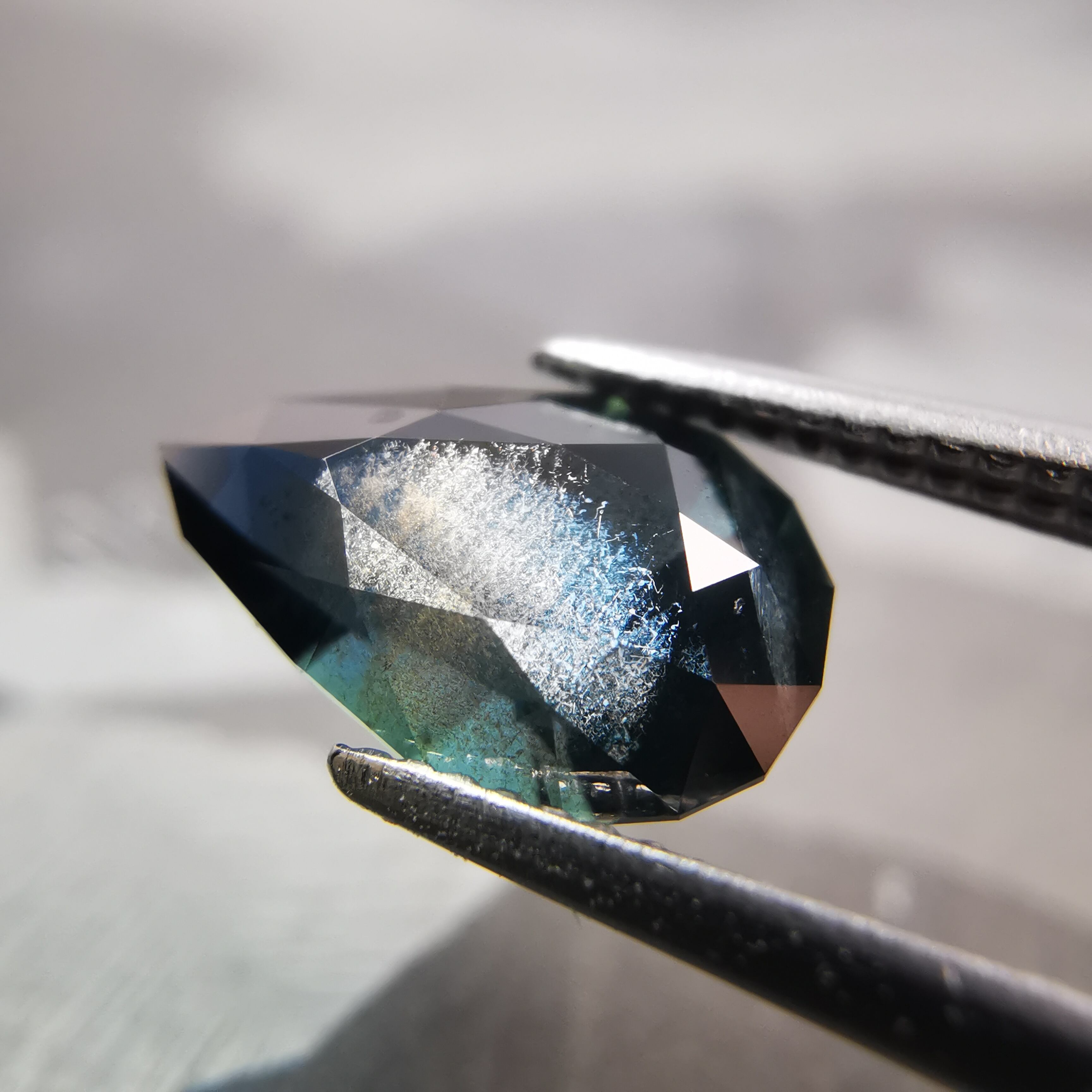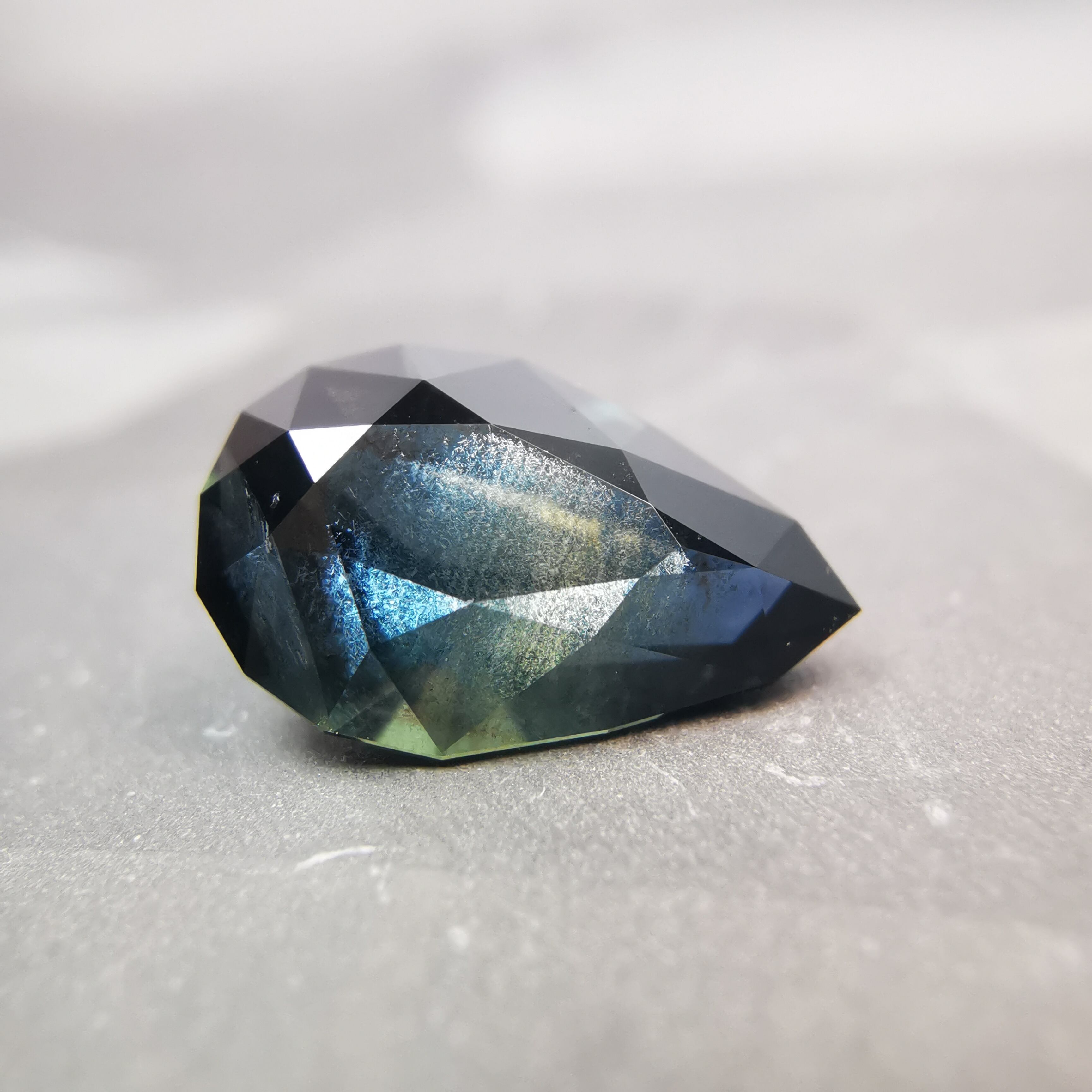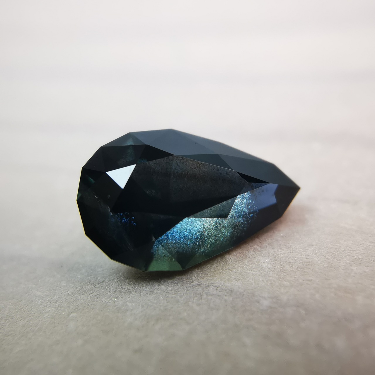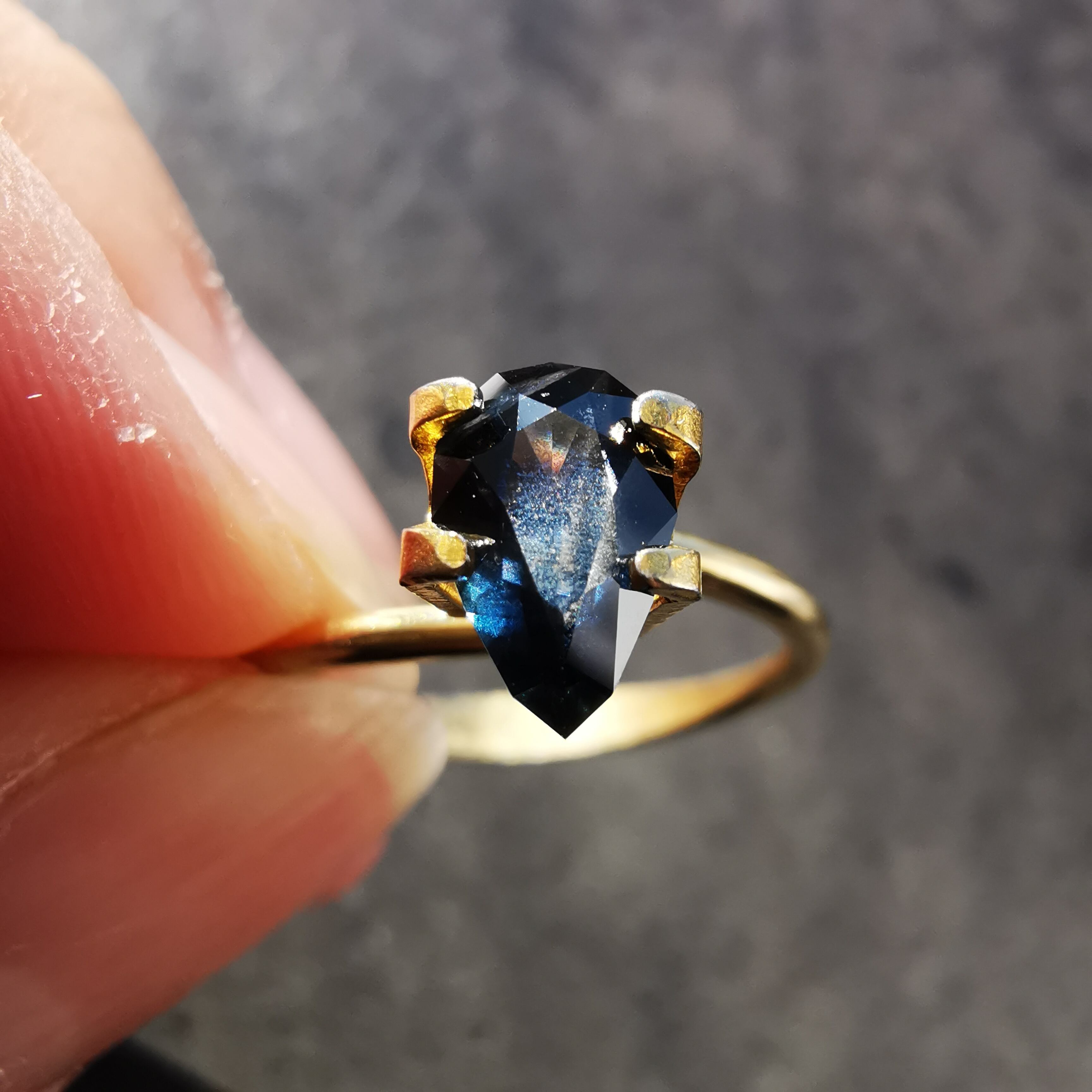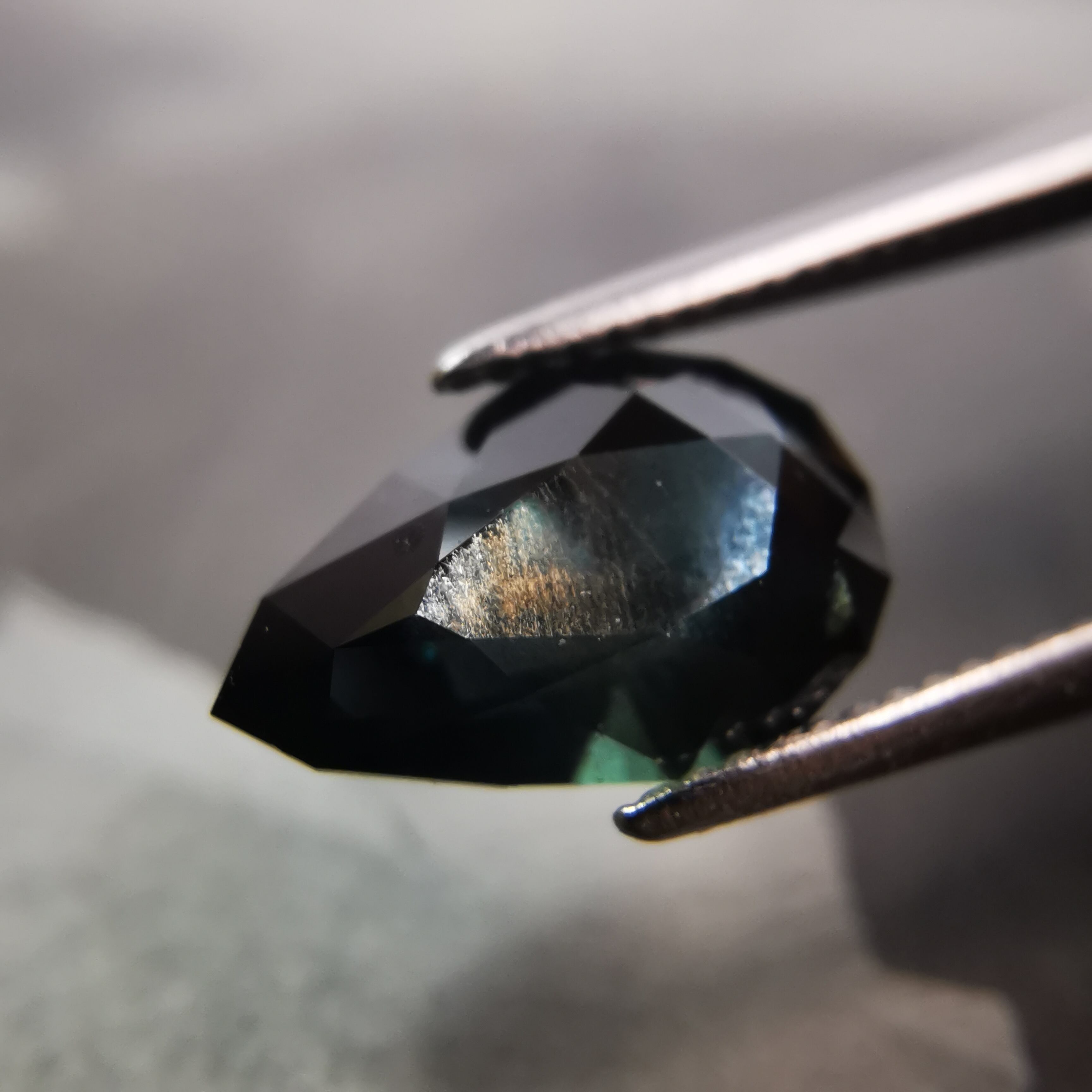 夜を思わせる、暗いティールカラーのサファイアです。